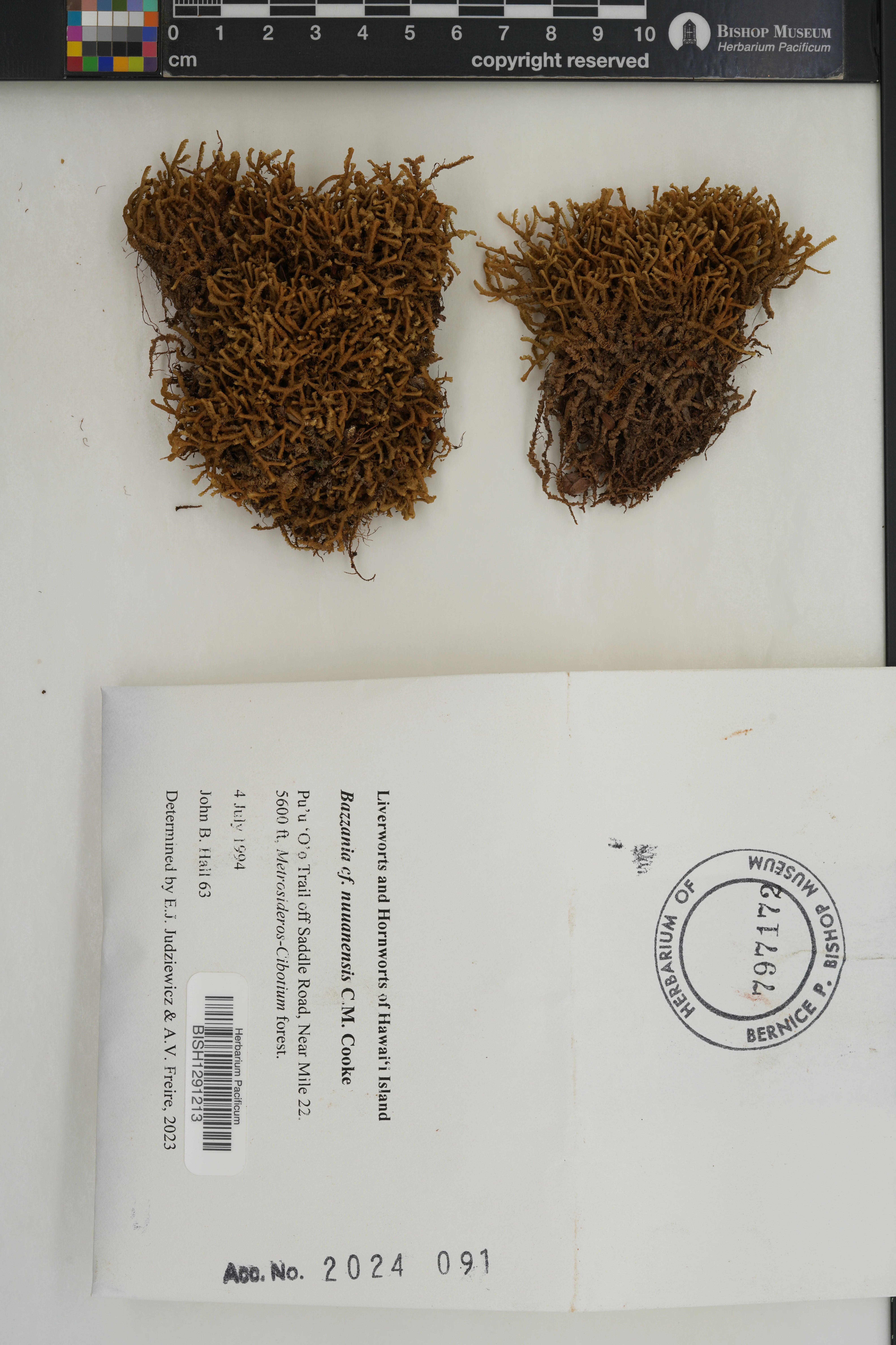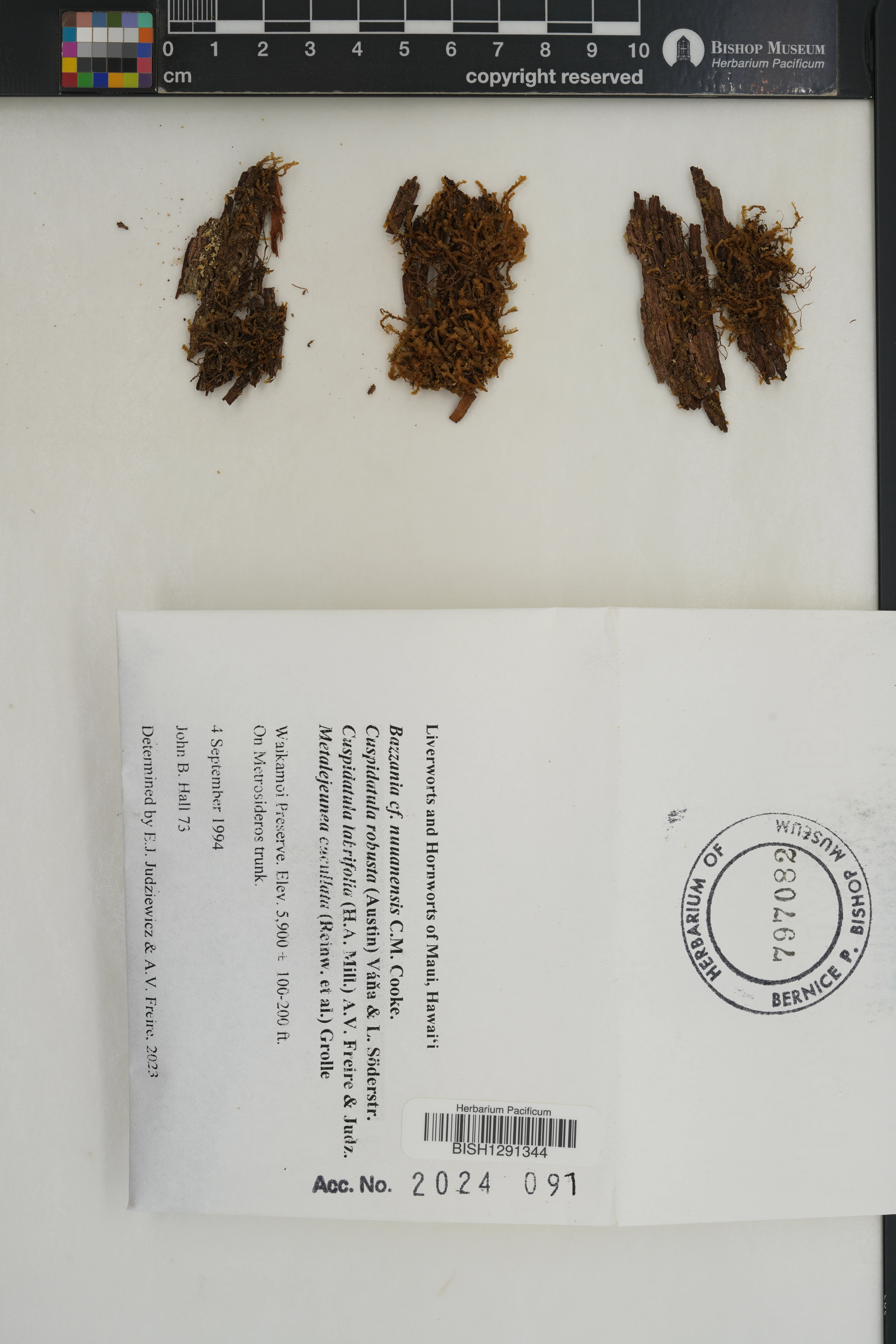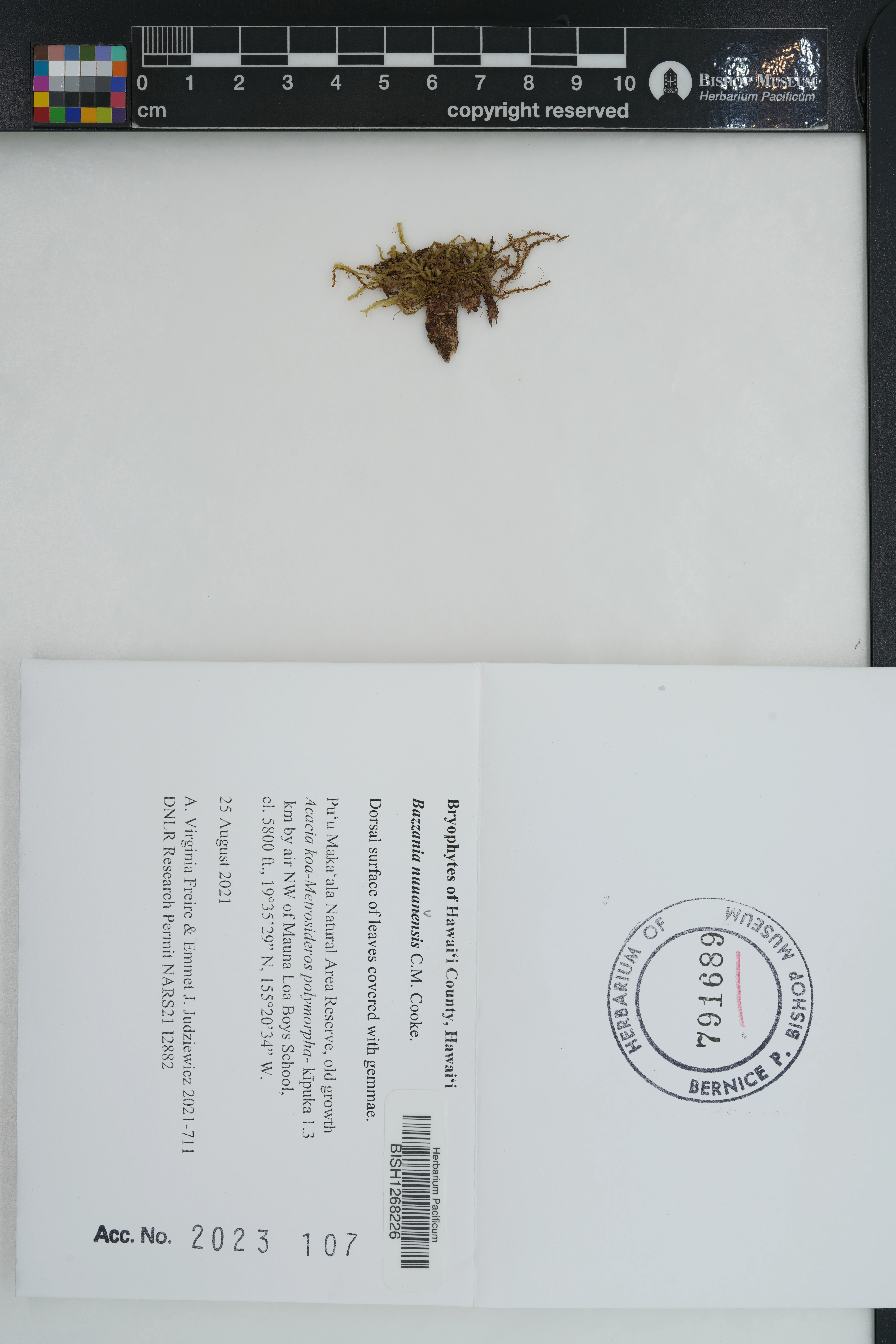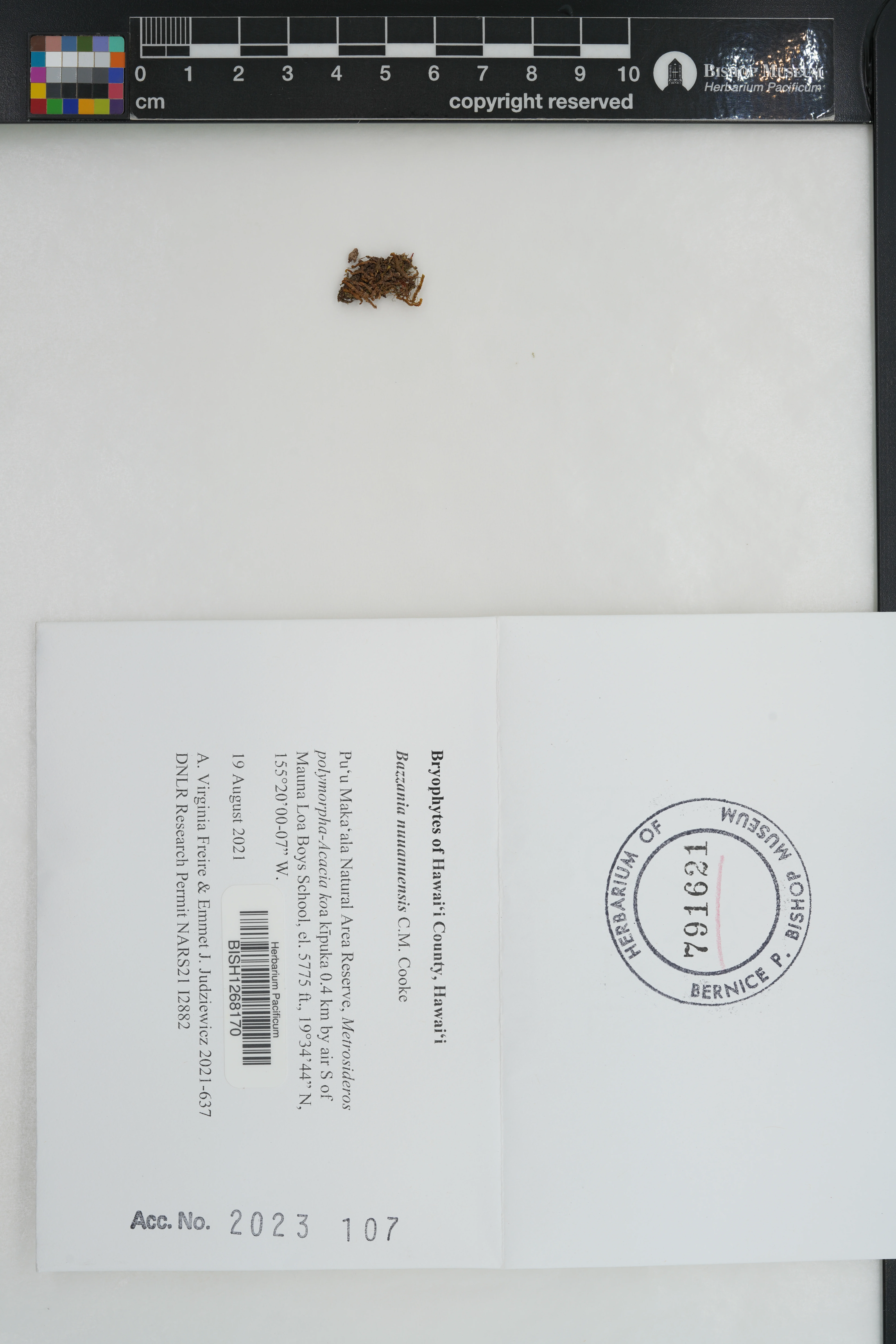 Kingdom: Viridiplantae Phylum: Marchantiophyta Class/Clade: Jungermanniopsida Order: Jungermanniales Family: Lepidoziaceae Genus: Bazzania