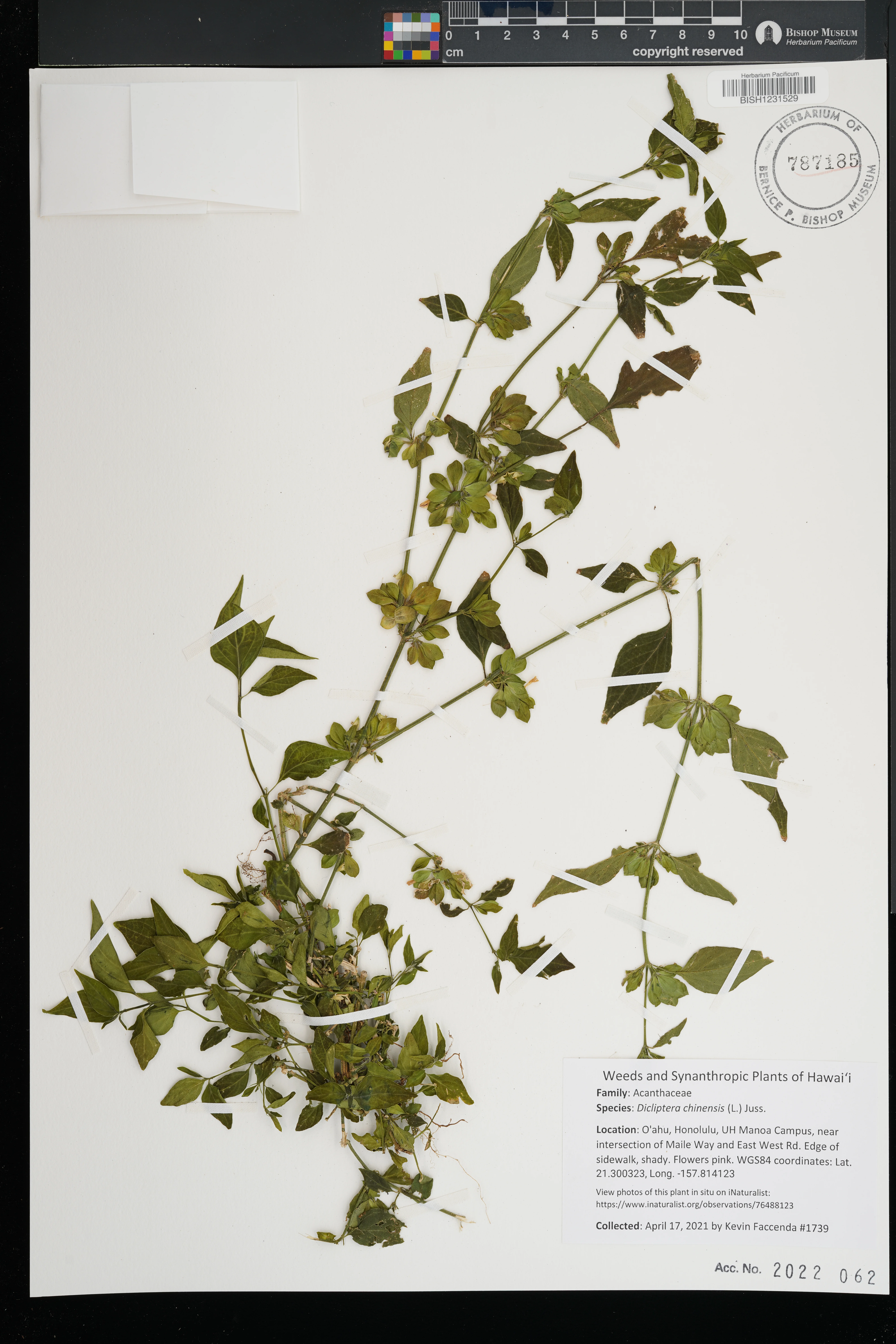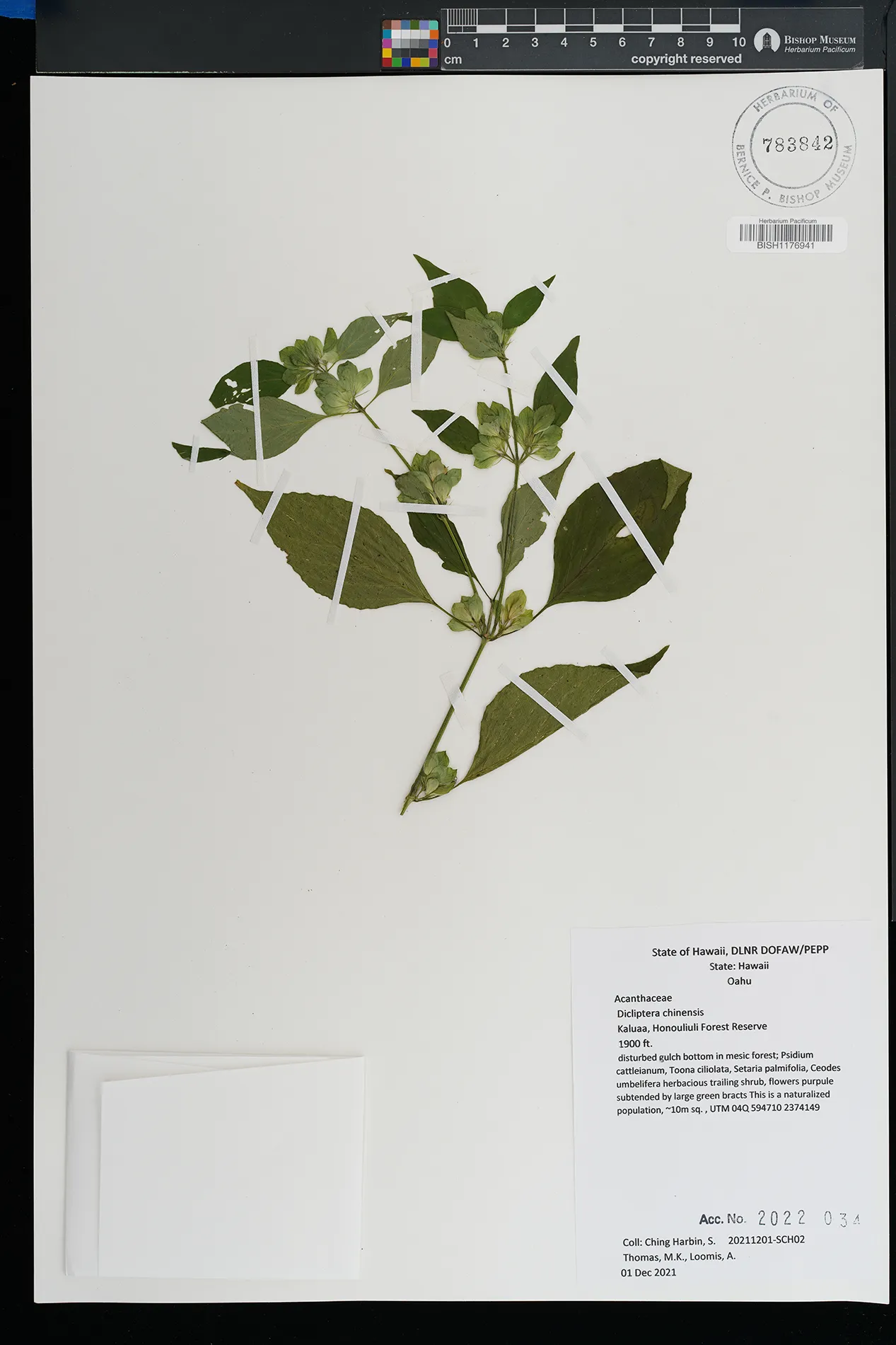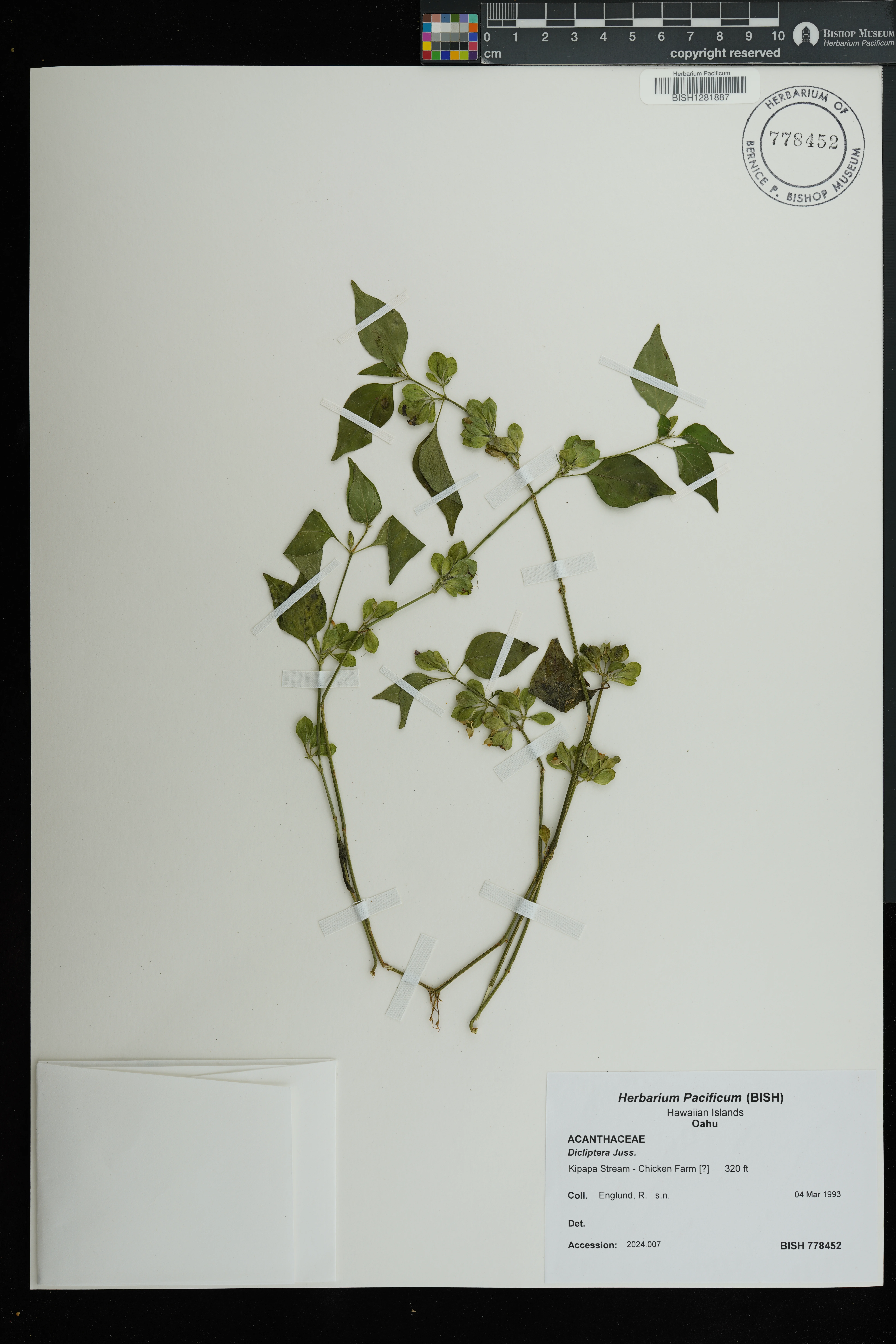 Common weak-stemmed herb in dappled shade on dirt bank of road leading to beach, adjacent to wetland area. Overstory of Hibiscus tiliaceus, Terminalia catappa, Samanea saman. |