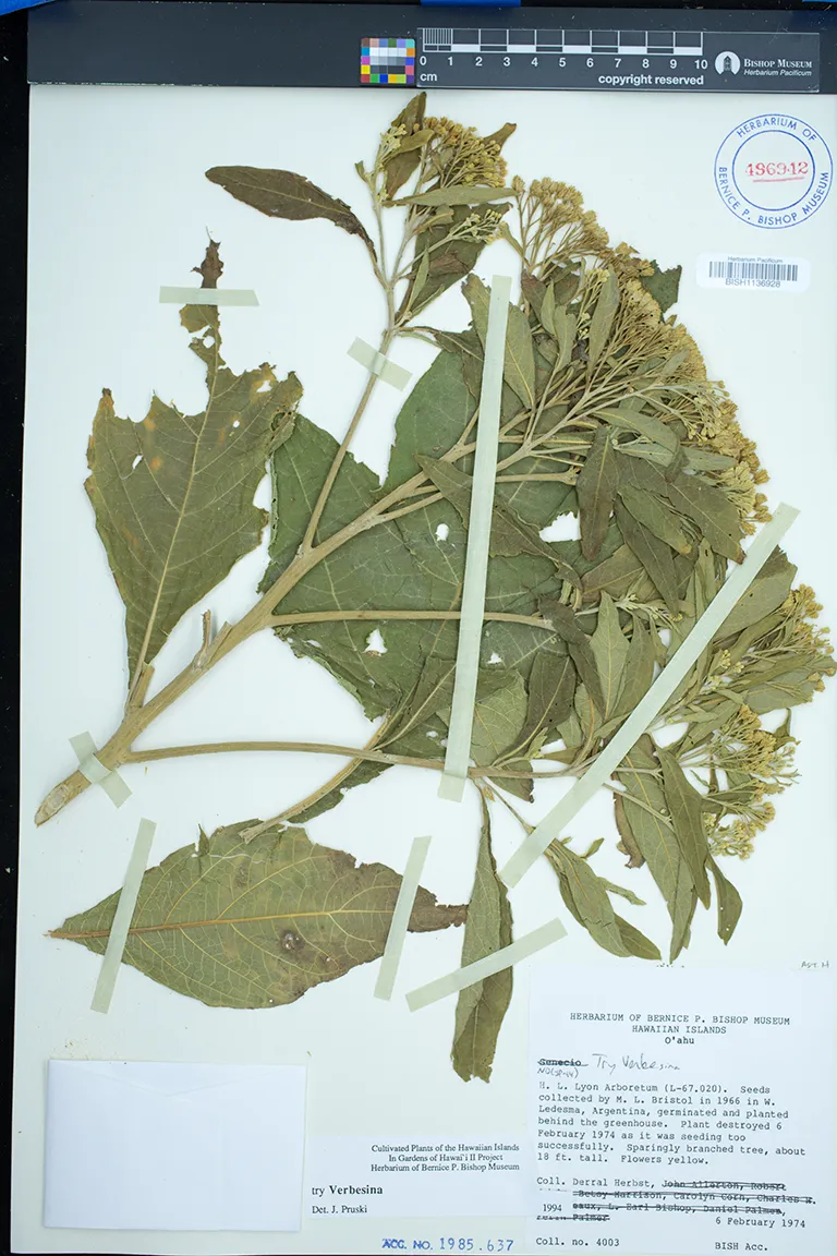 Kingdom: Viridiplantae Phylum: Magnoliophyta Class/Clade: Eudicot-Asterids Order: Asterales Family: Asteraceae Genus: Verbesina