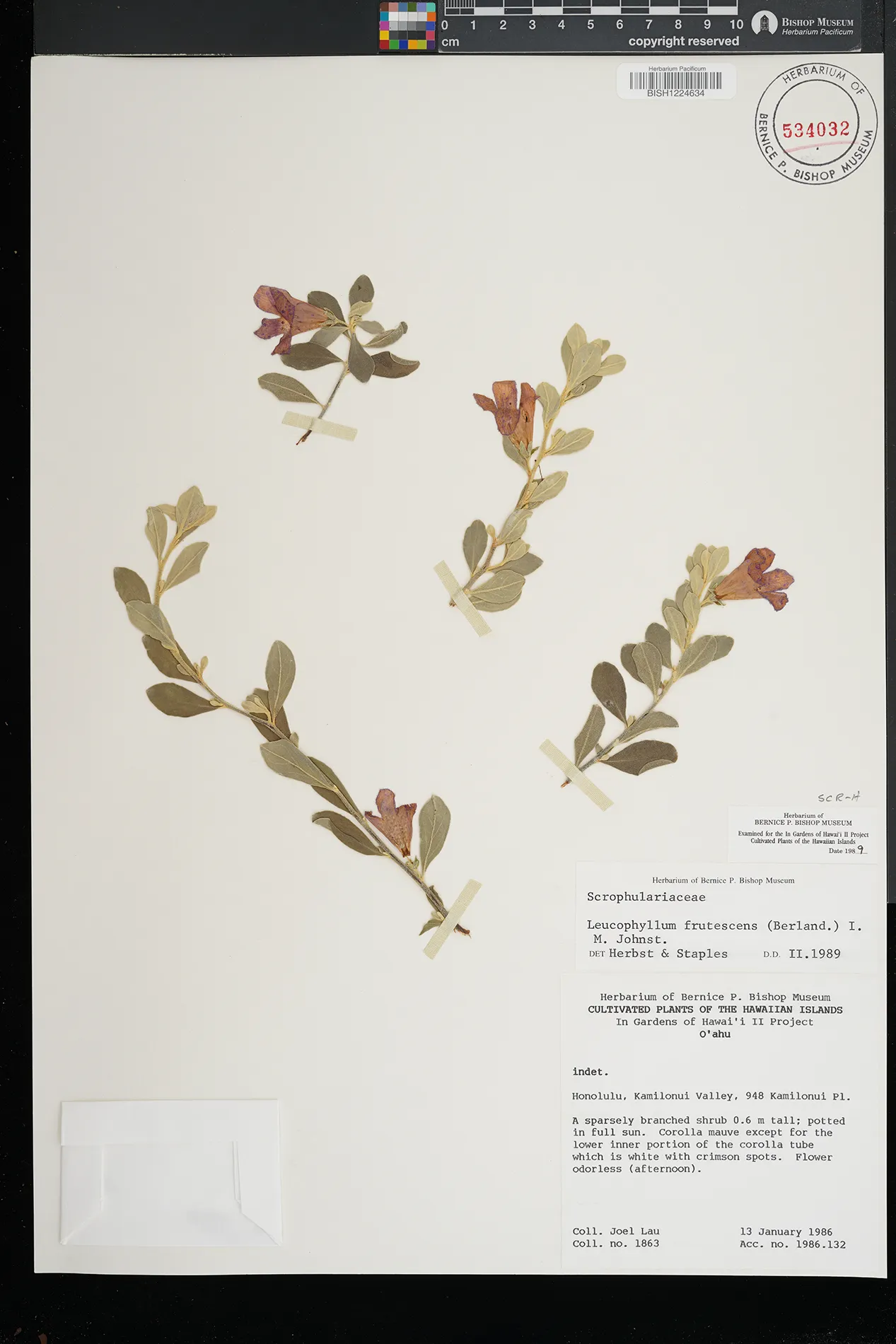 Four plants growing among Scaevola sericea in open sunny area near coast. |