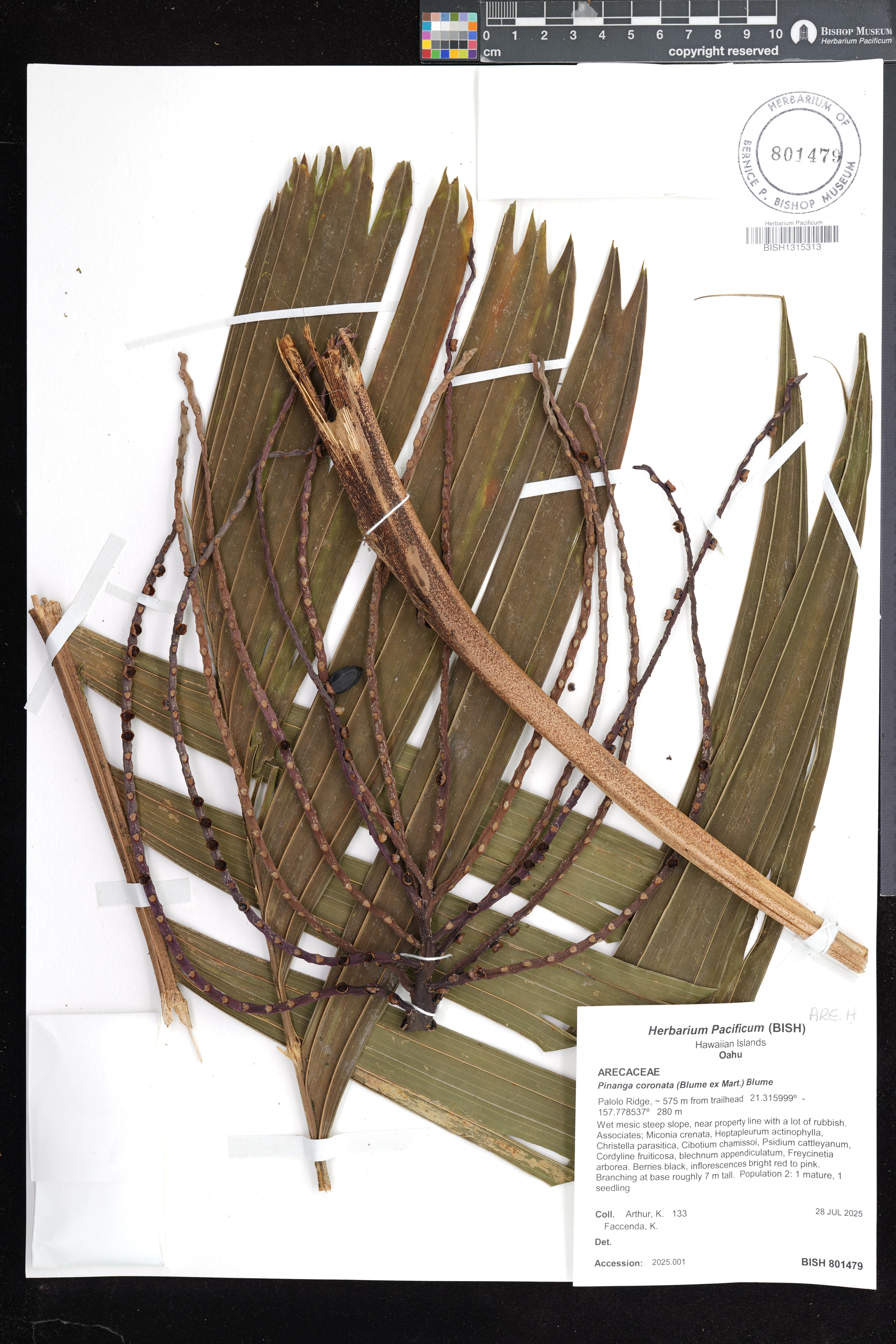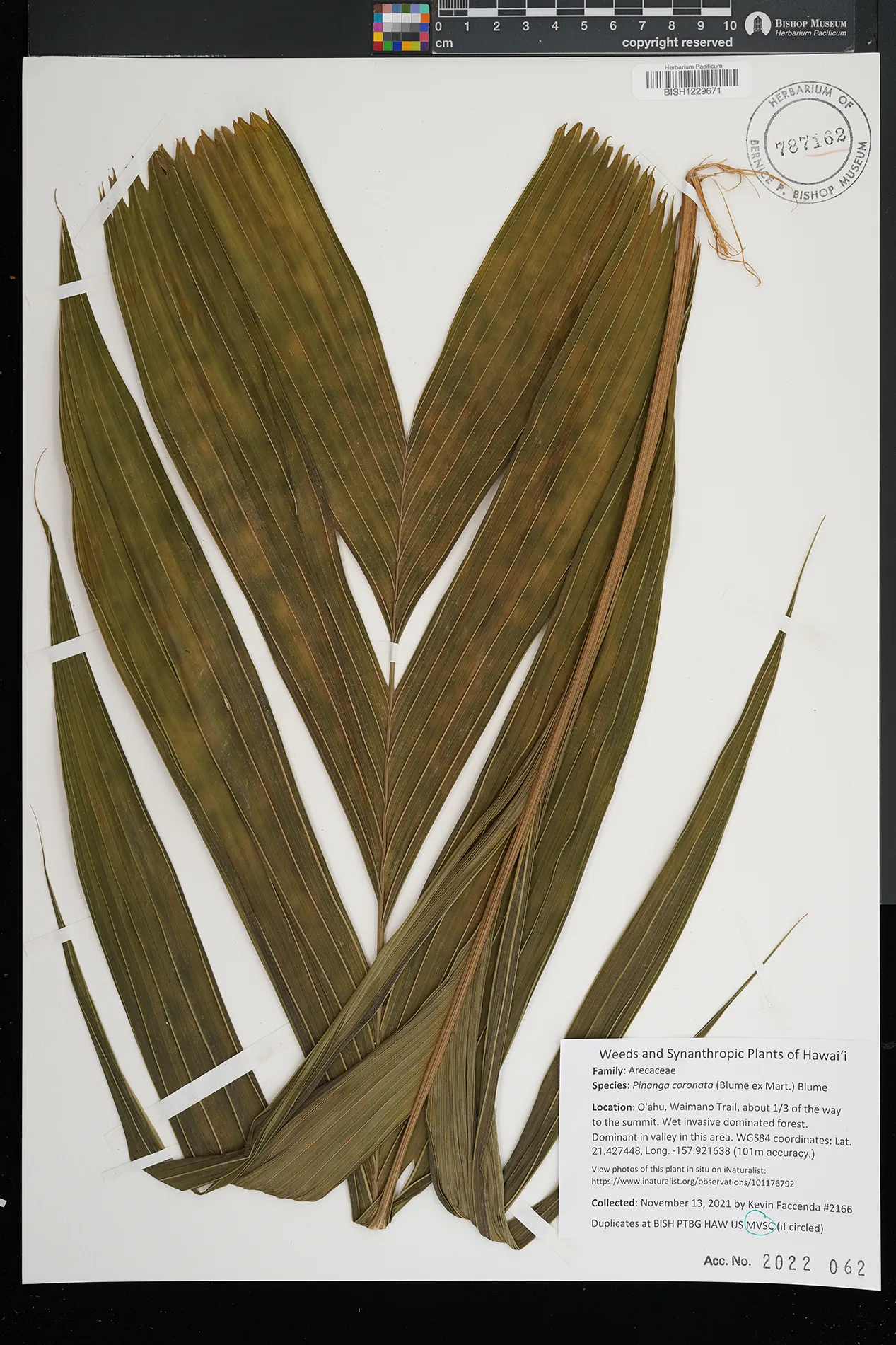 Naturalized. Associates: Cestrum nocturnum, Psidium guajava, Enterolobium cyclocarpum, Archontophoenix alexandrae. |