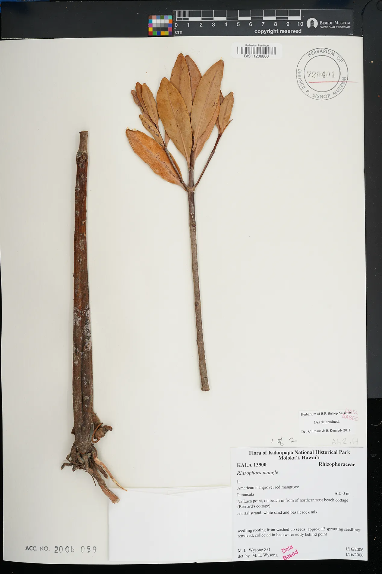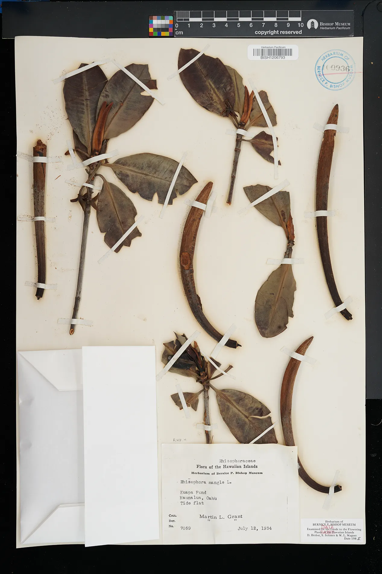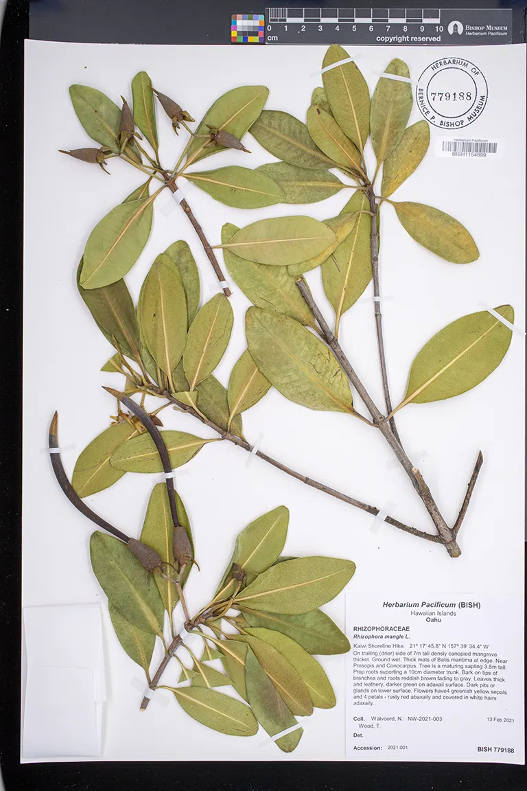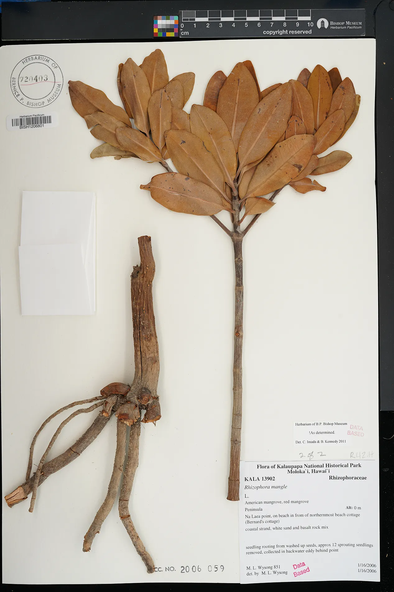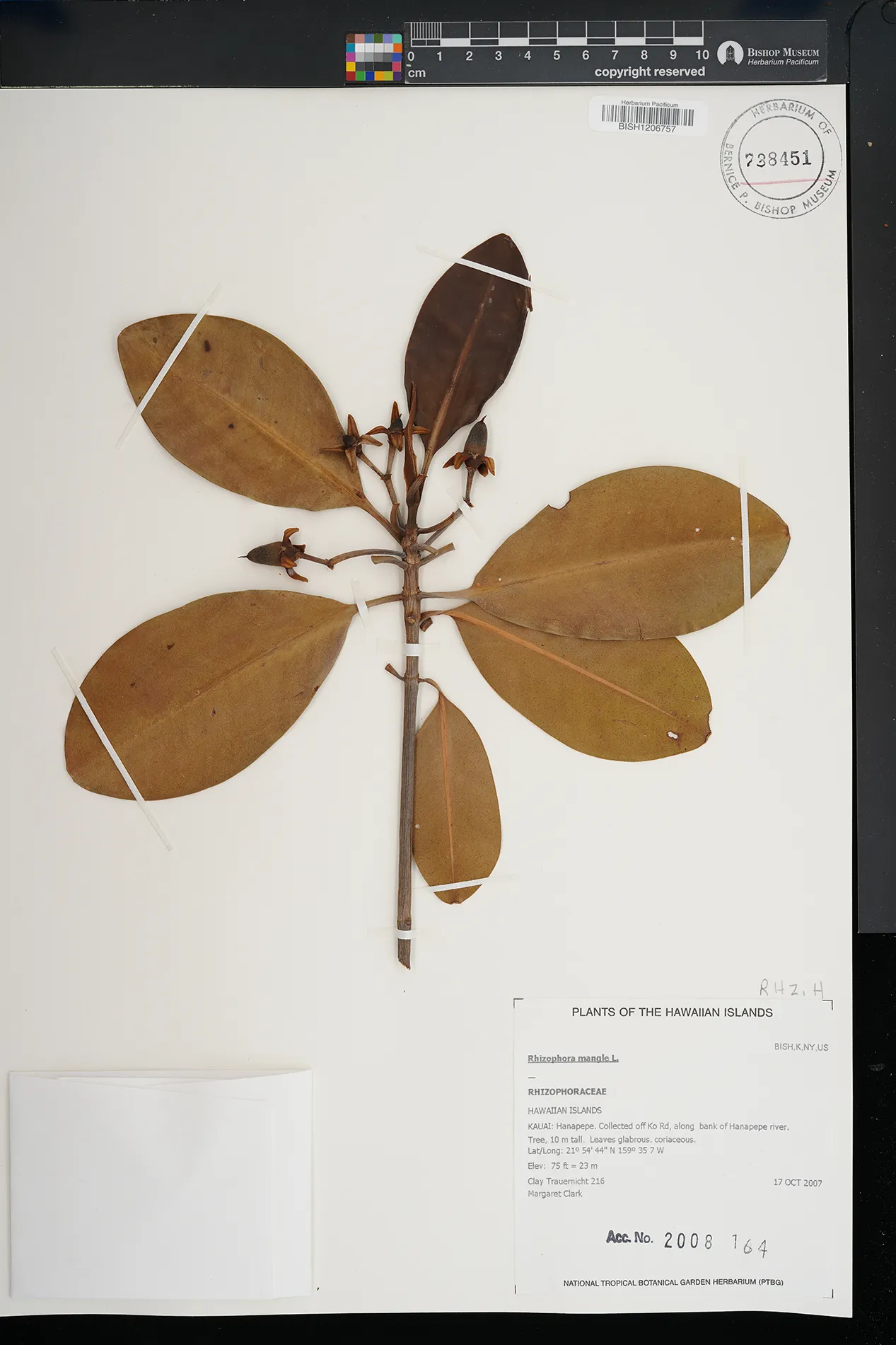 Dominant tree species on mudflats fronting the ocean, along with Hibiscus tiliaceus and Thespesia populnea. |