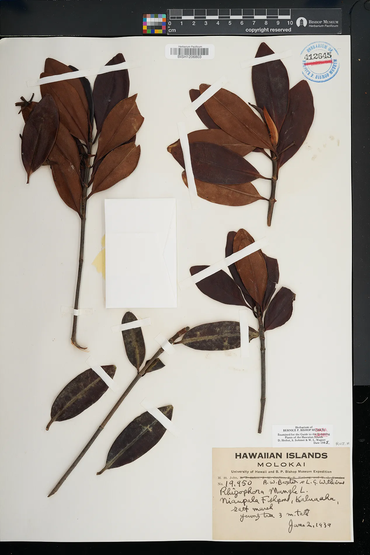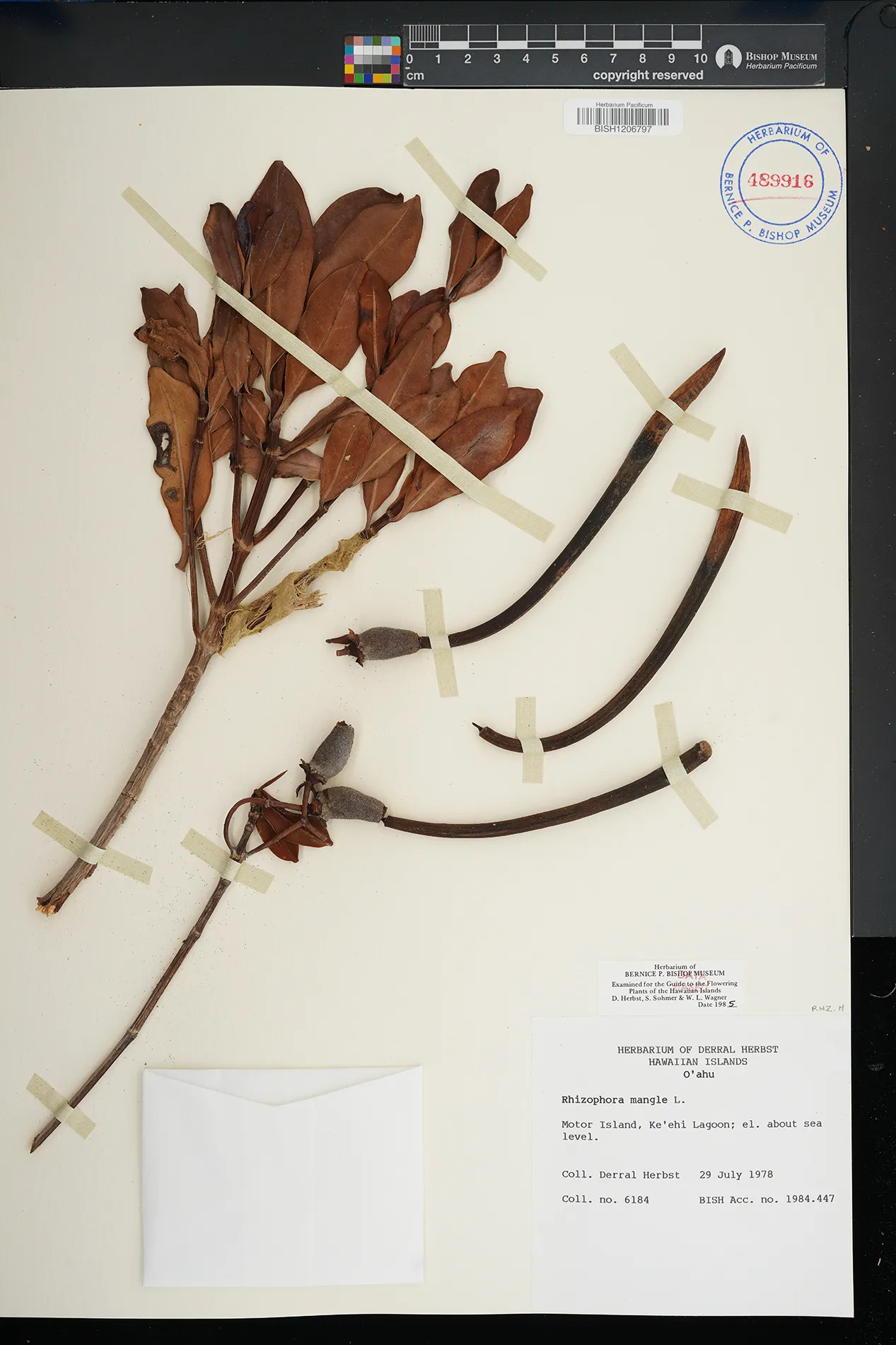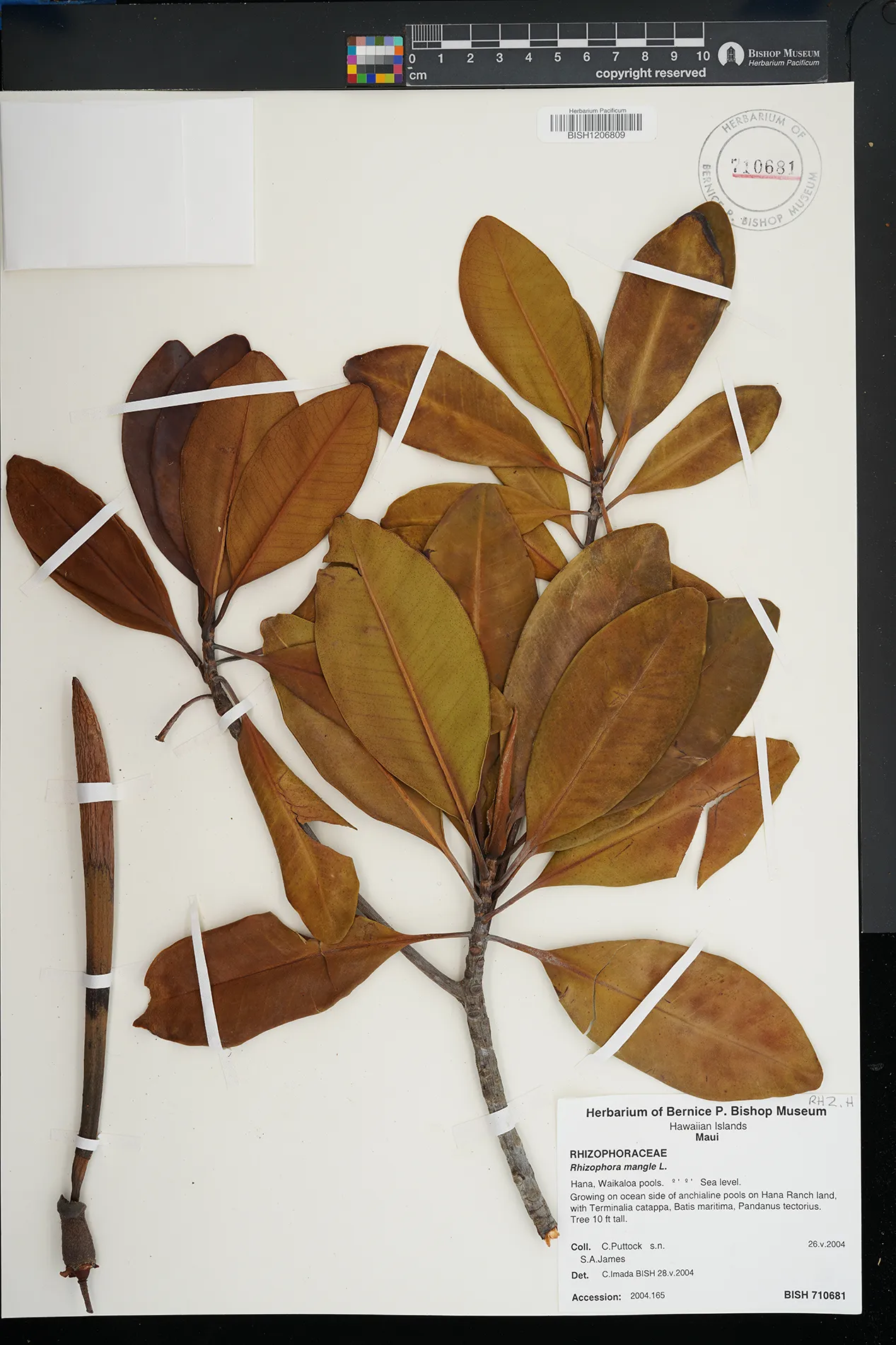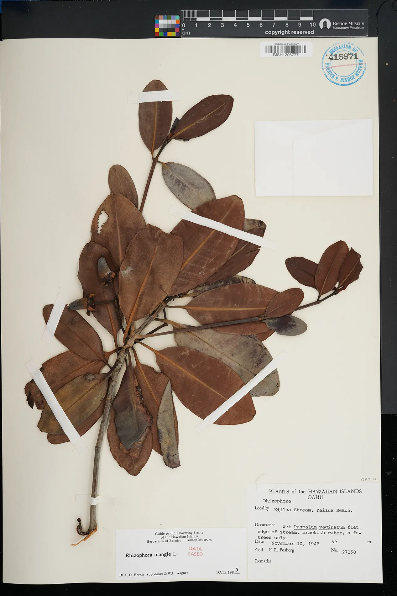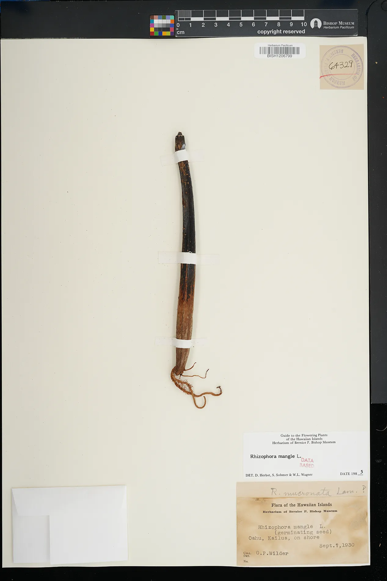 Dominant tree species on mudflats fronting the ocean, along with Hibiscus tiliaceus and Thespesia populnea. |