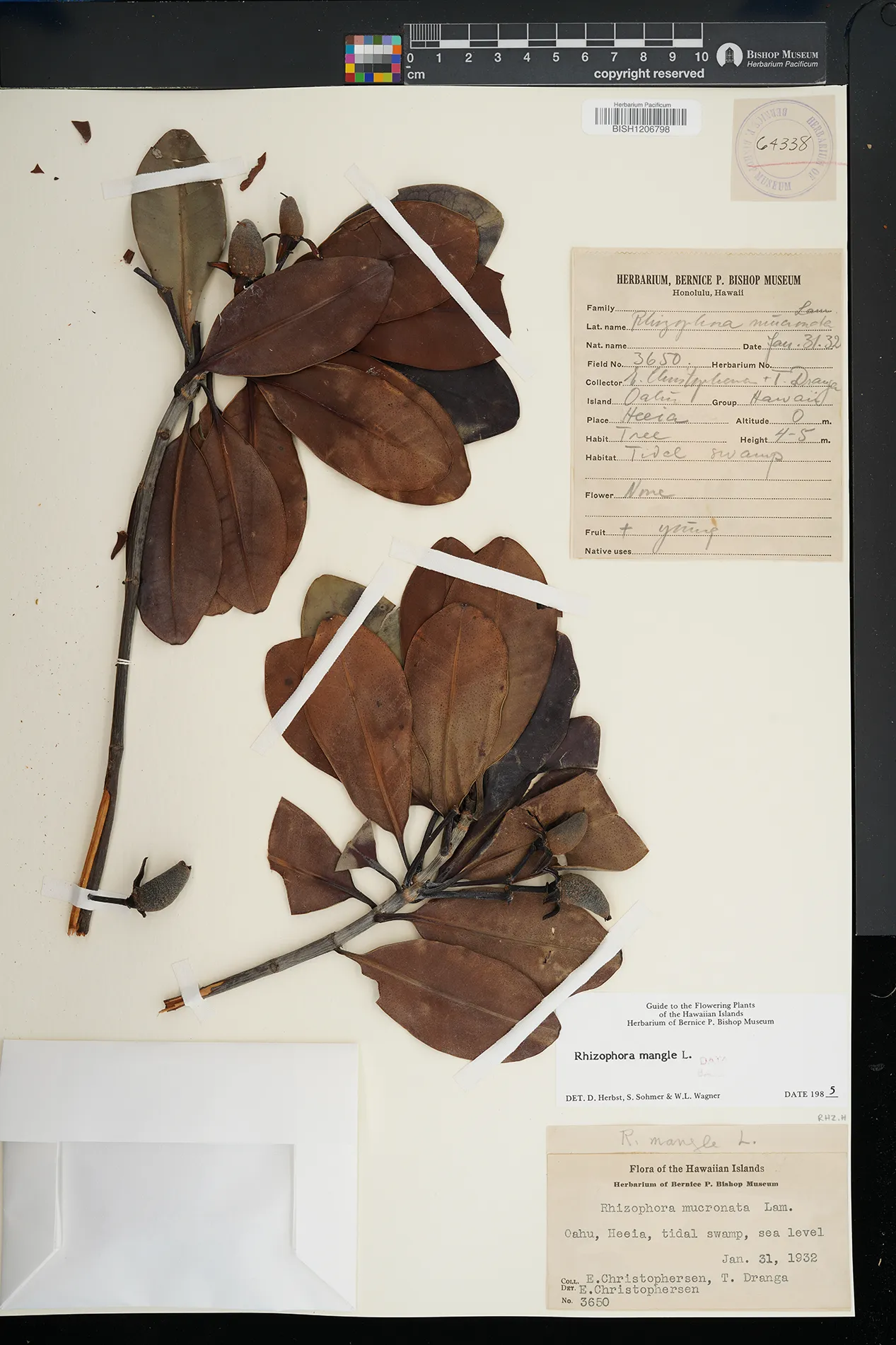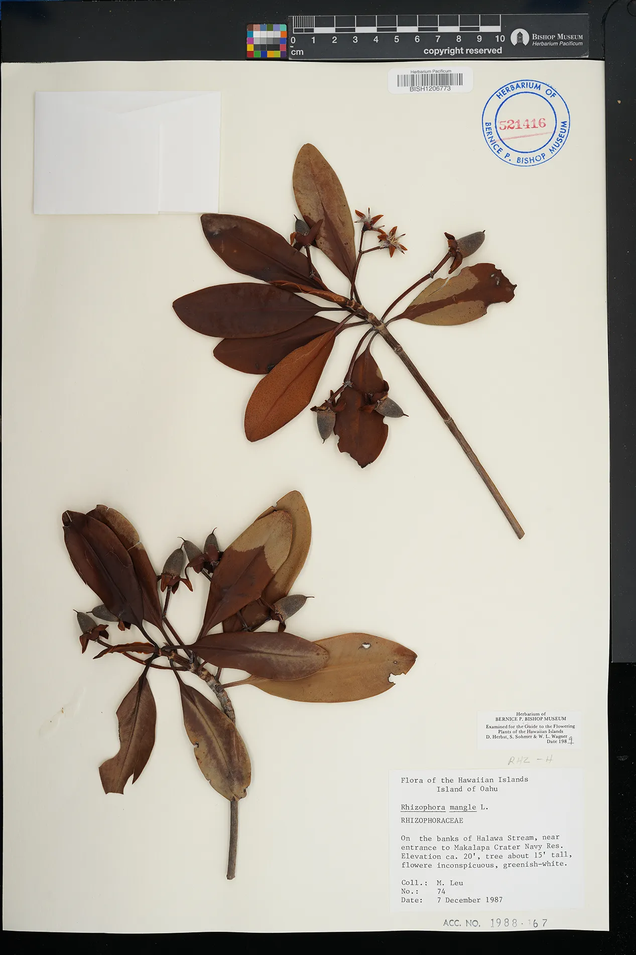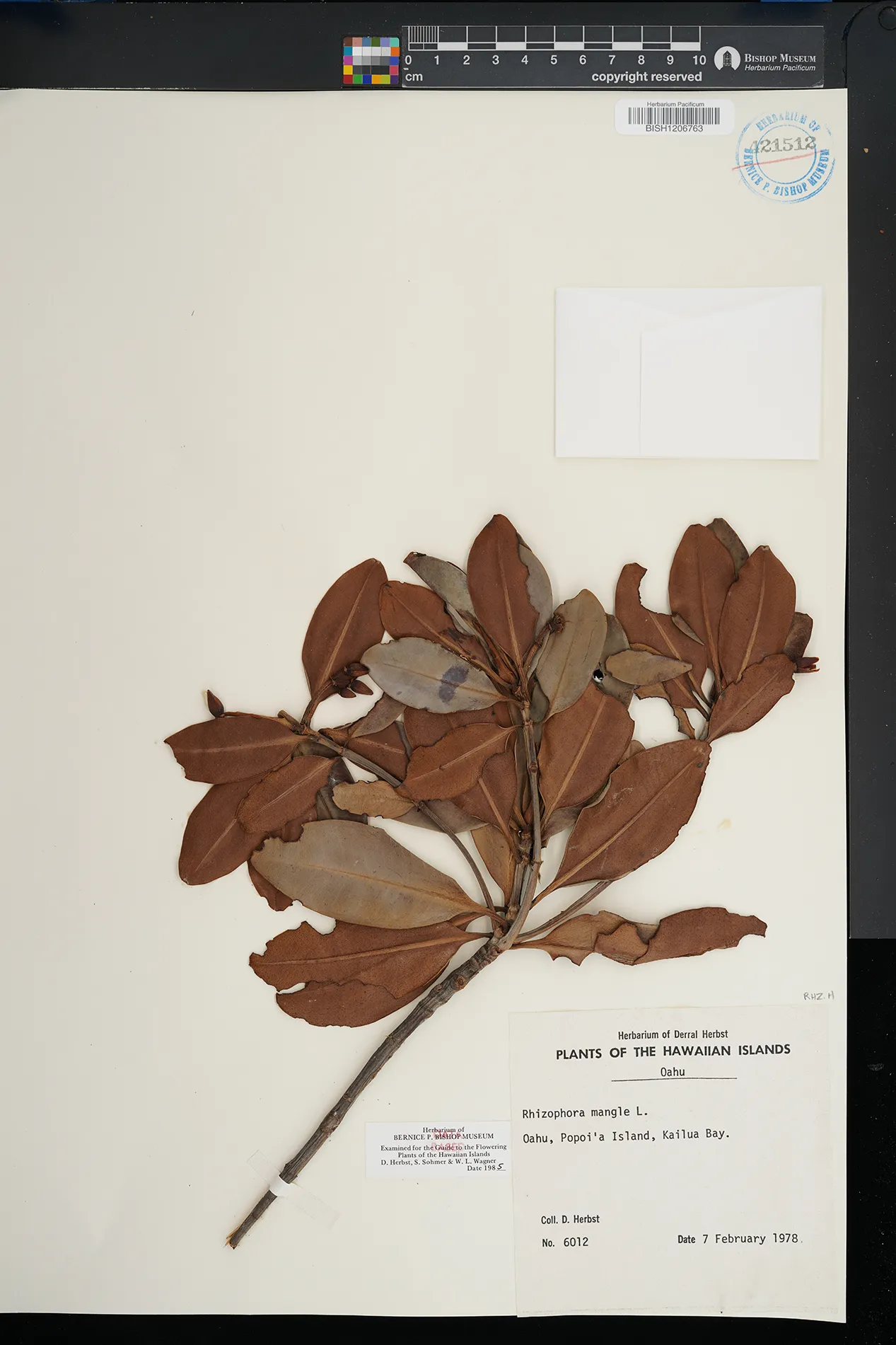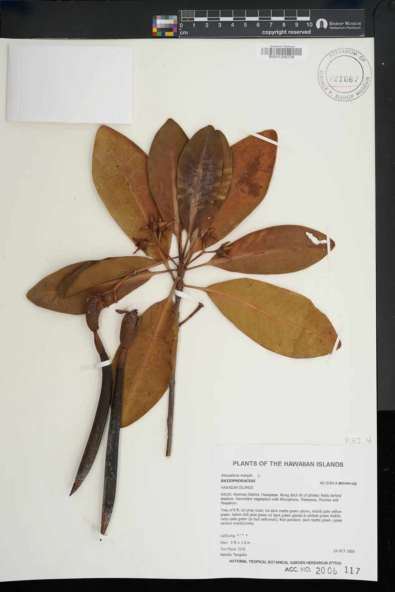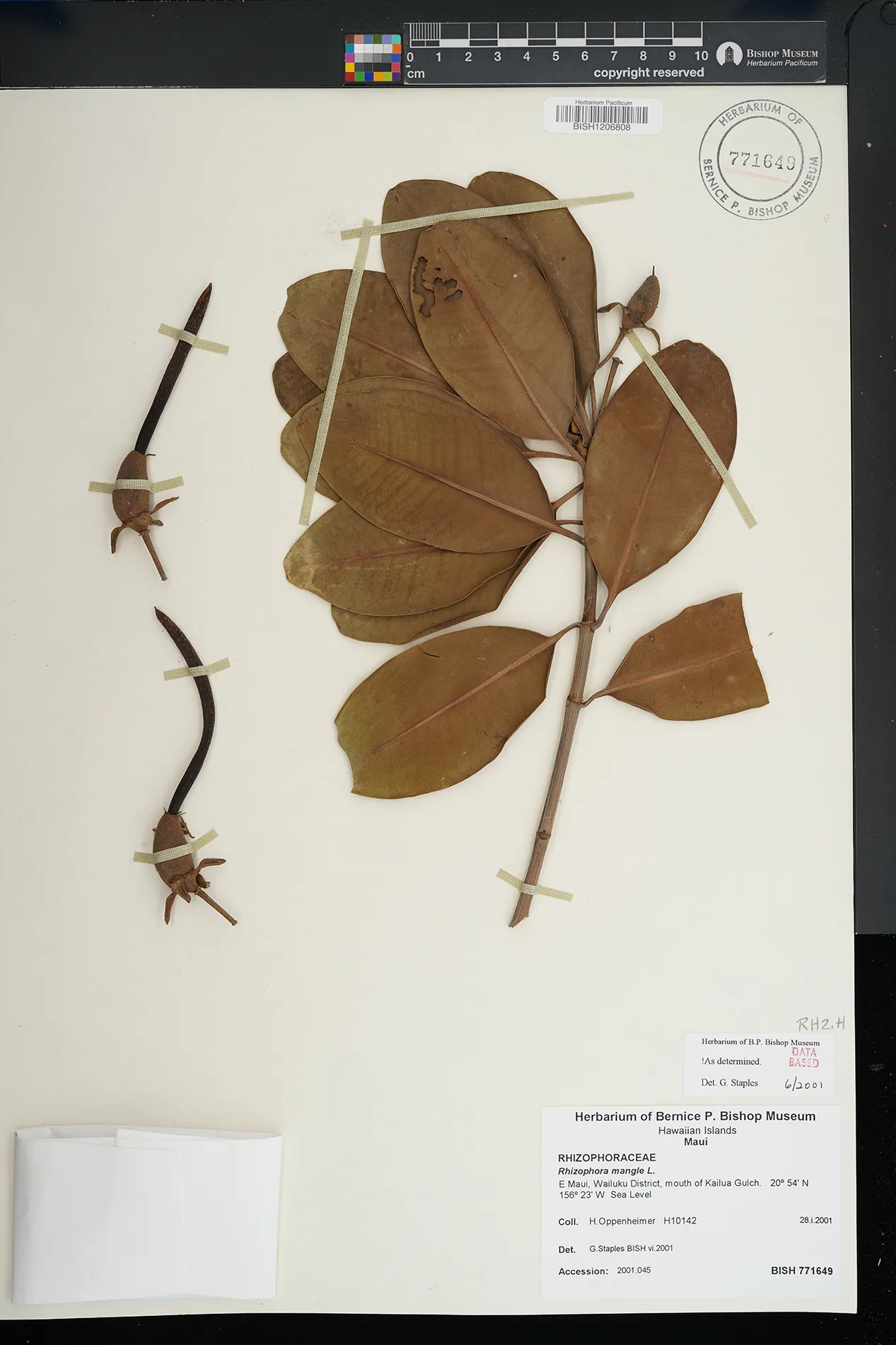 Dominant tree species on mudflats fronting the ocean, along with Hibiscus tiliaceus and Thespesia populnea. |