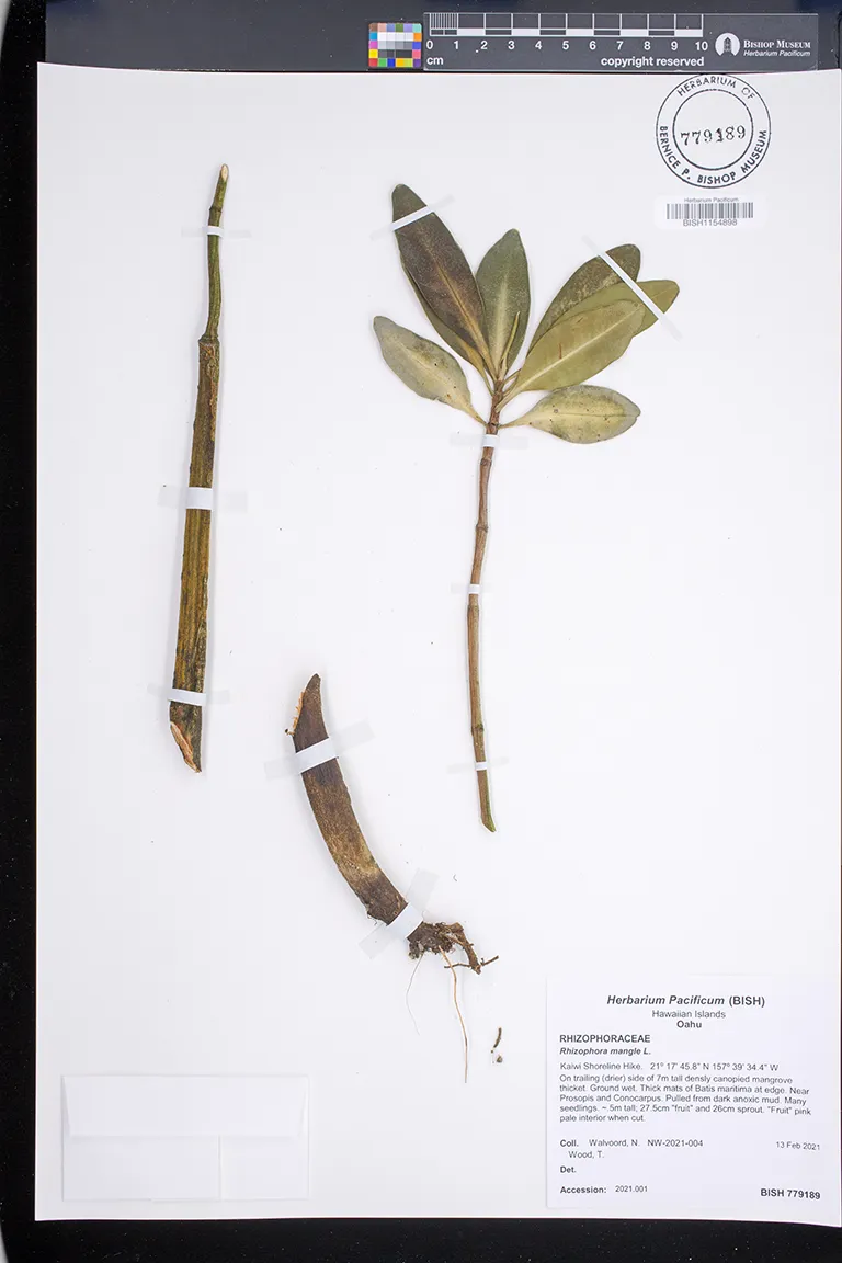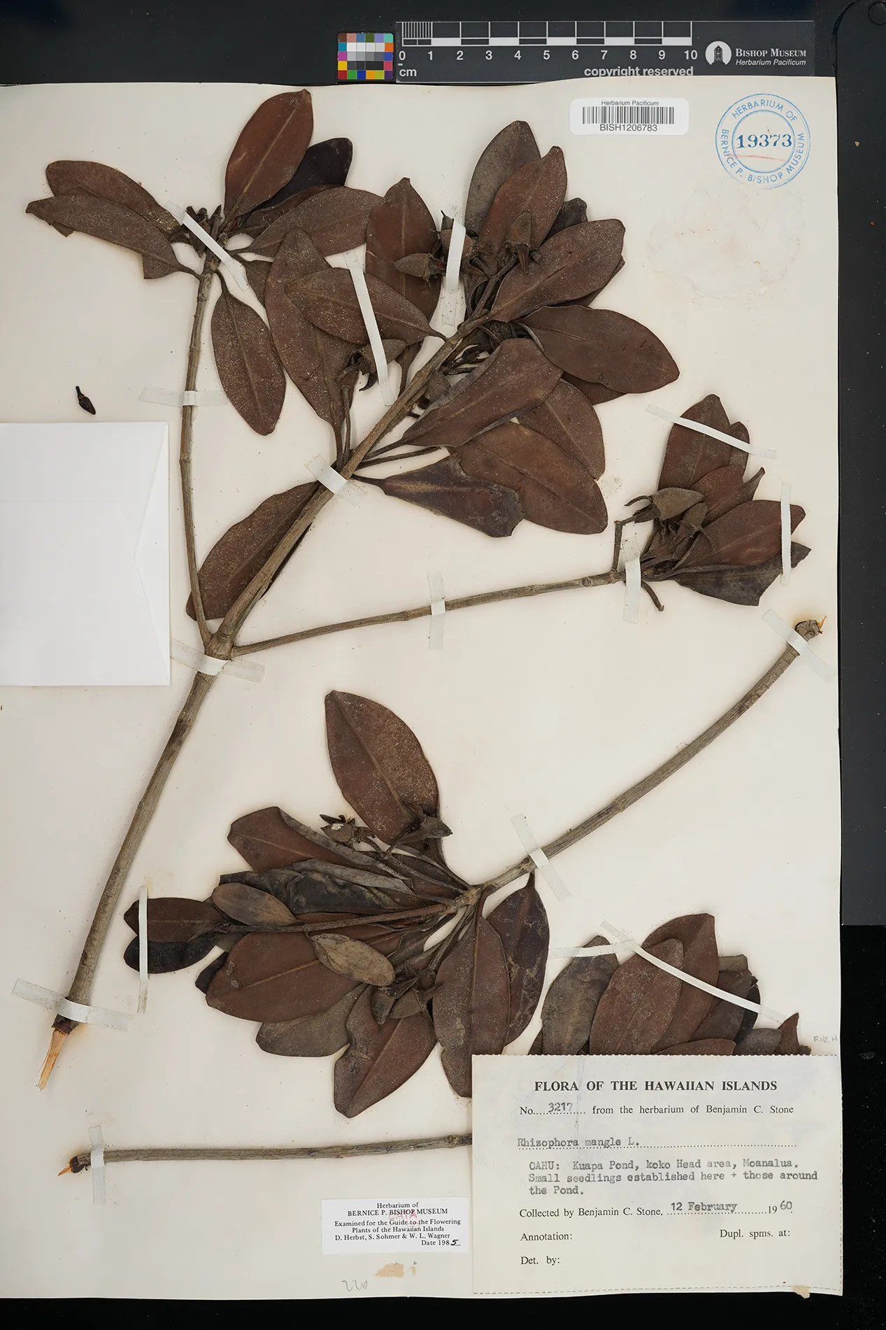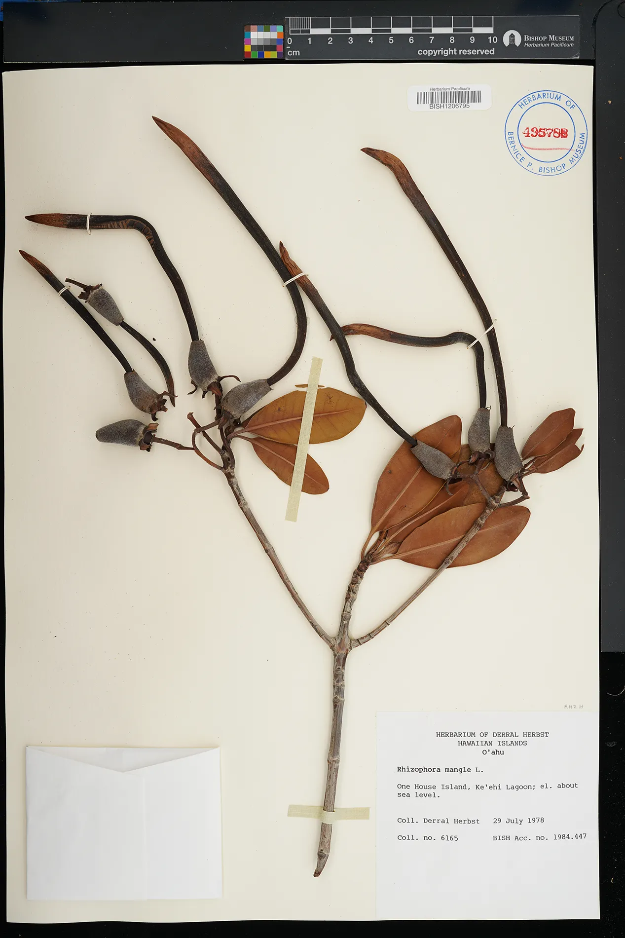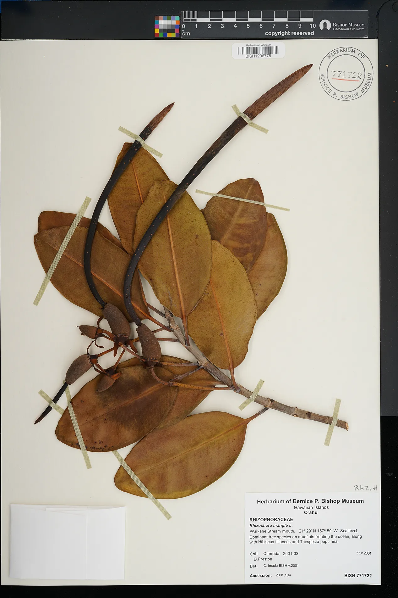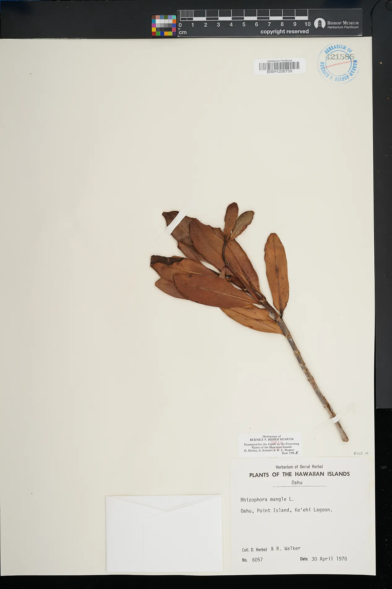 Dominant tree species on mudflats fronting the ocean, along with Hibiscus tiliaceus and Thespesia populnea. |