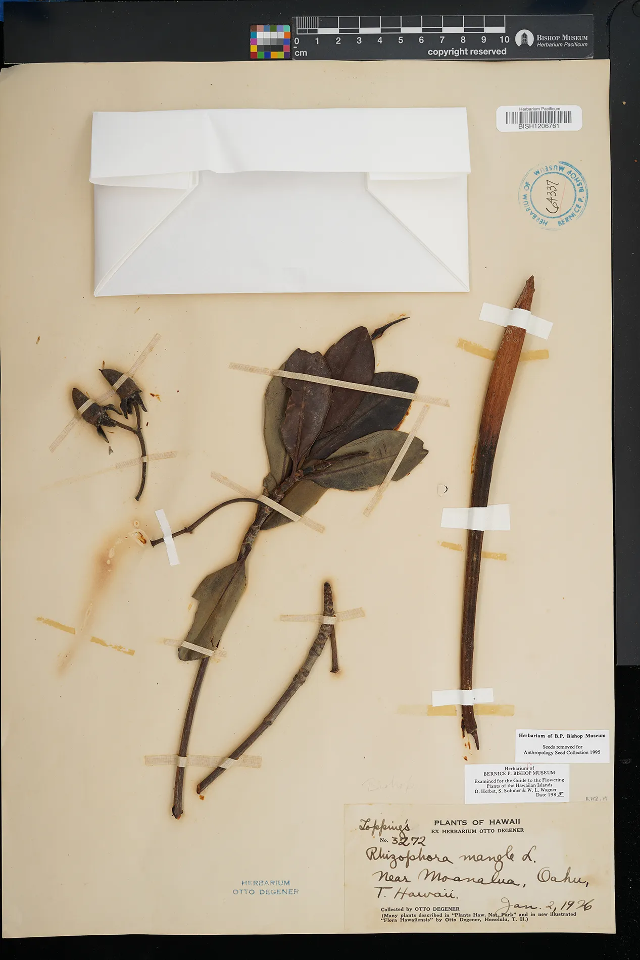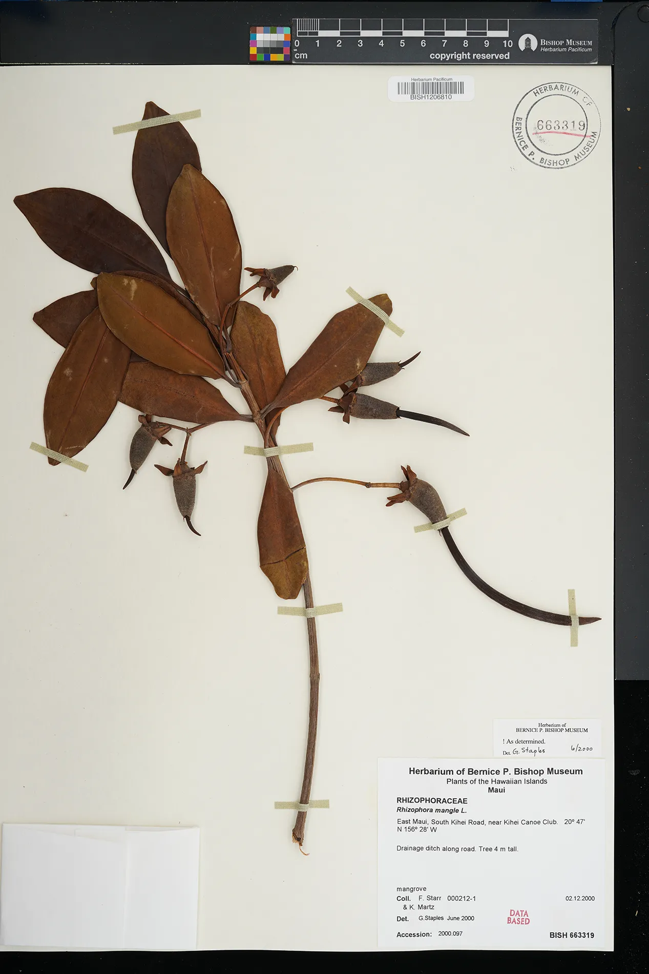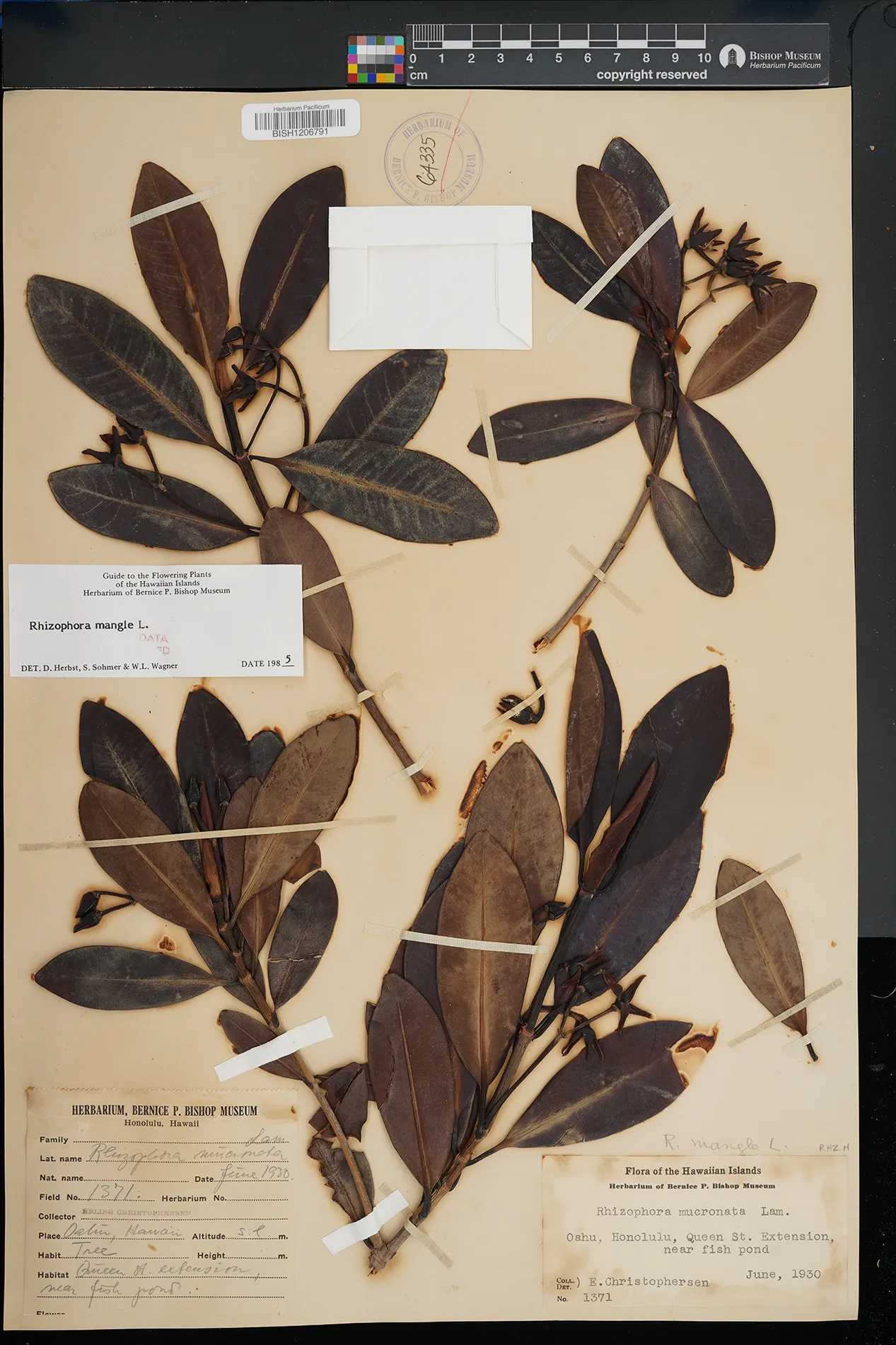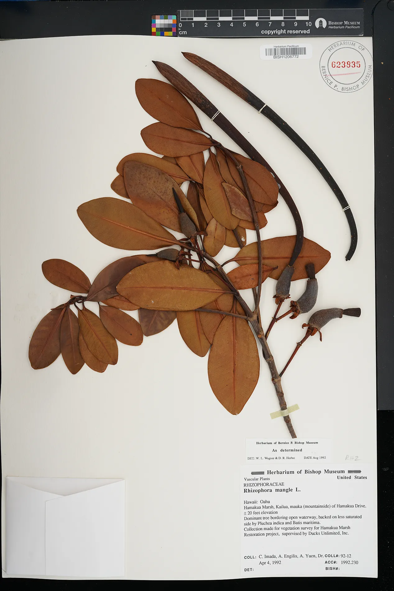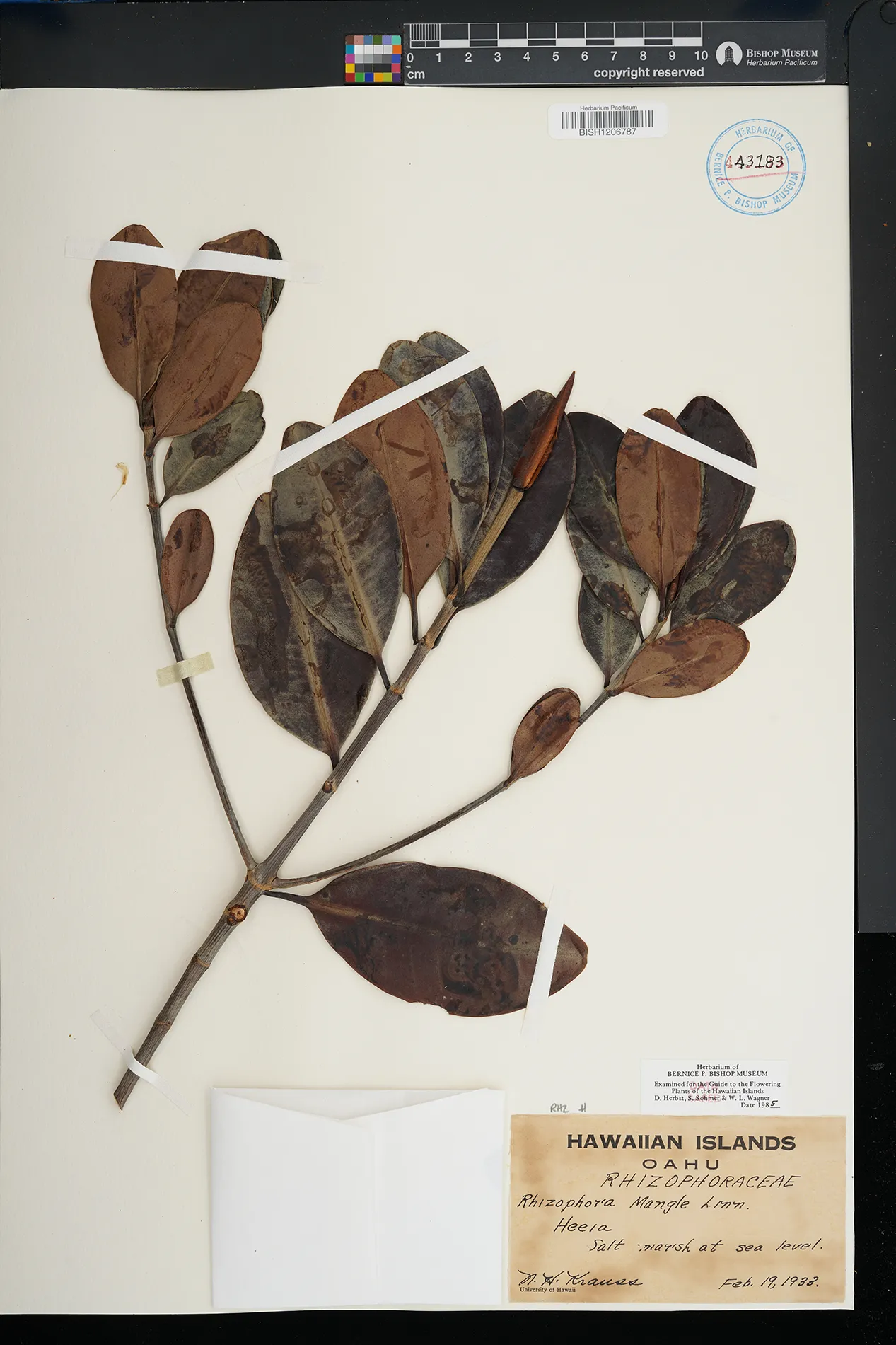 Dominant tree species on mudflats fronting the ocean, along with Hibiscus tiliaceus and Thespesia populnea. |