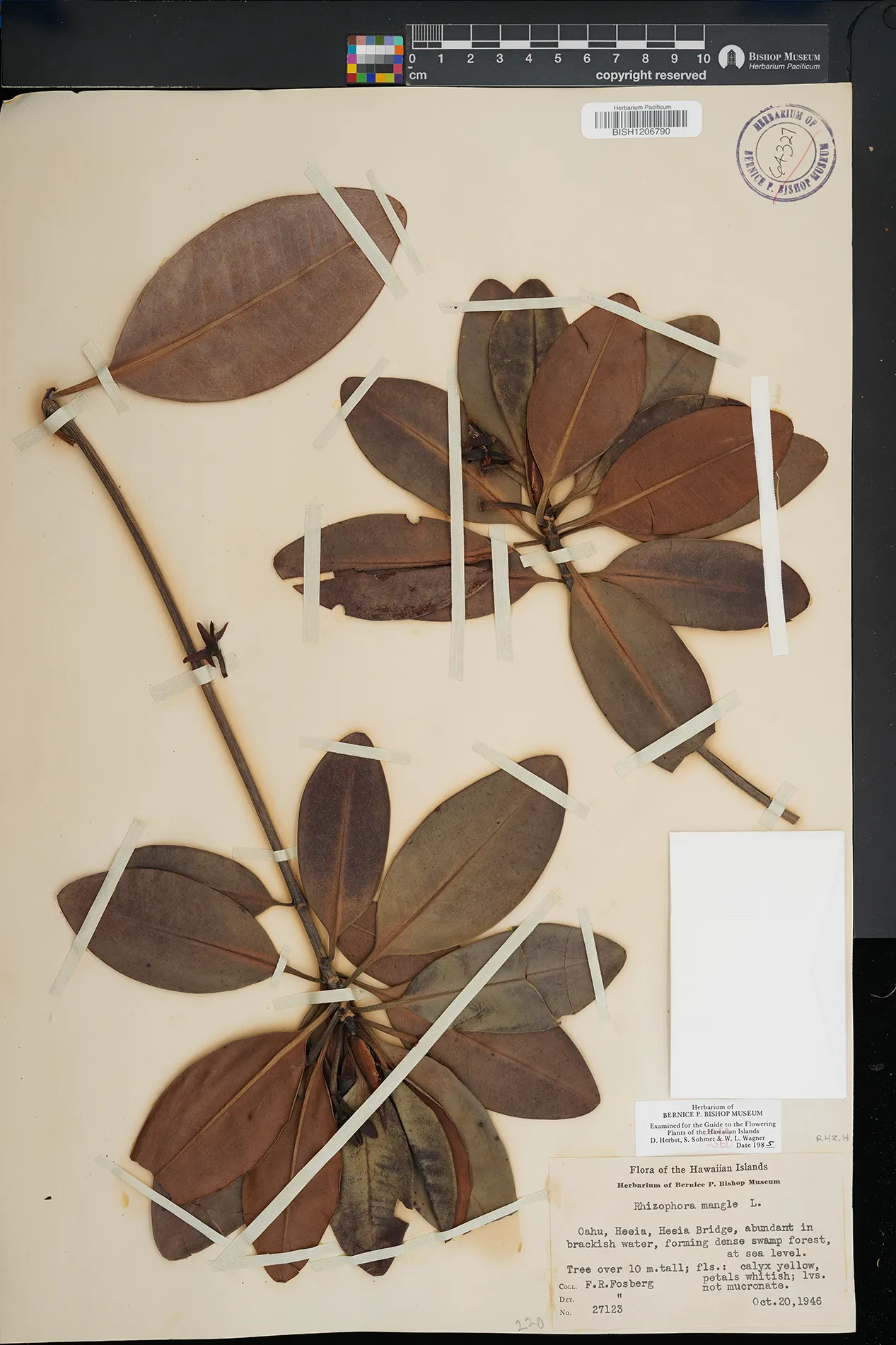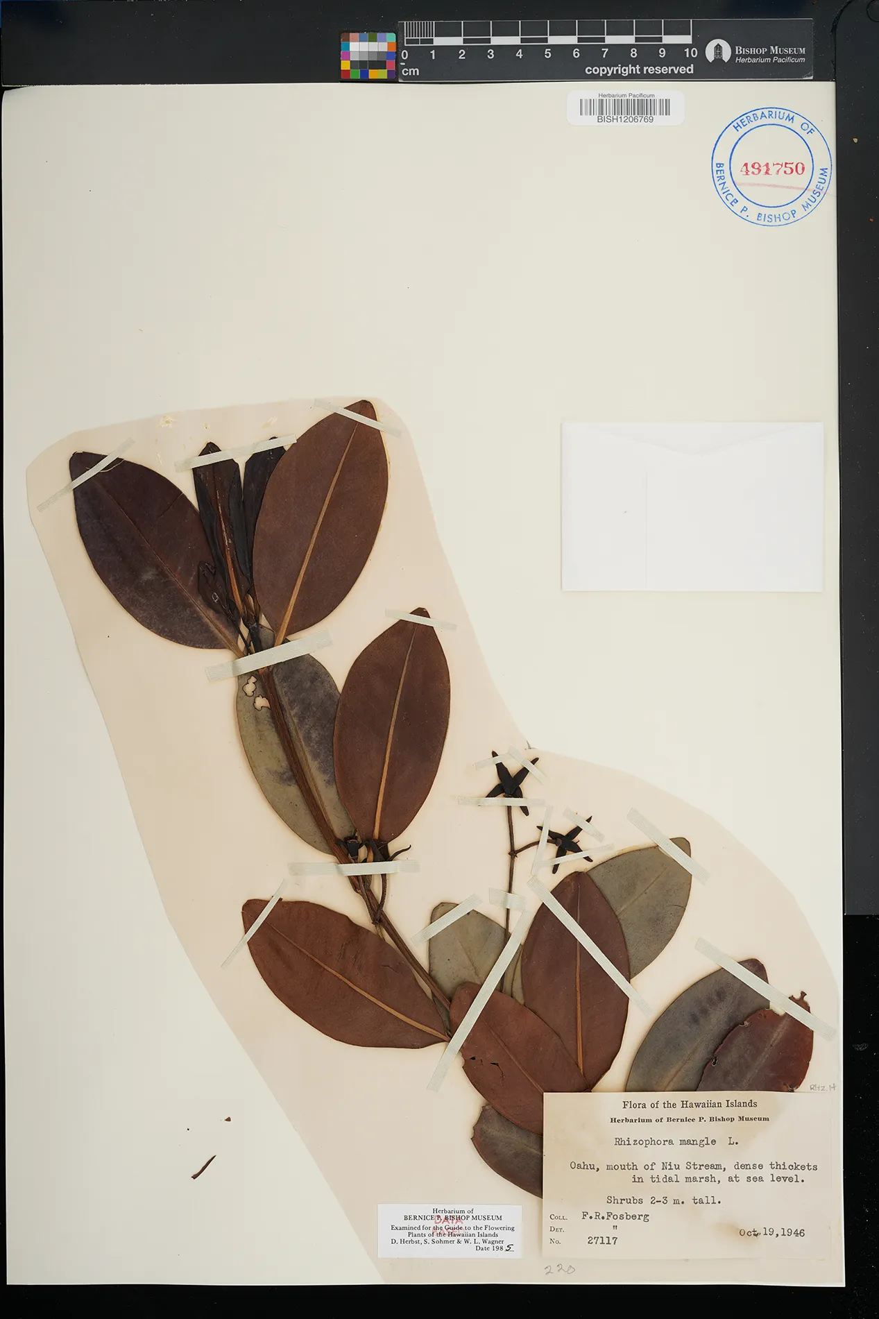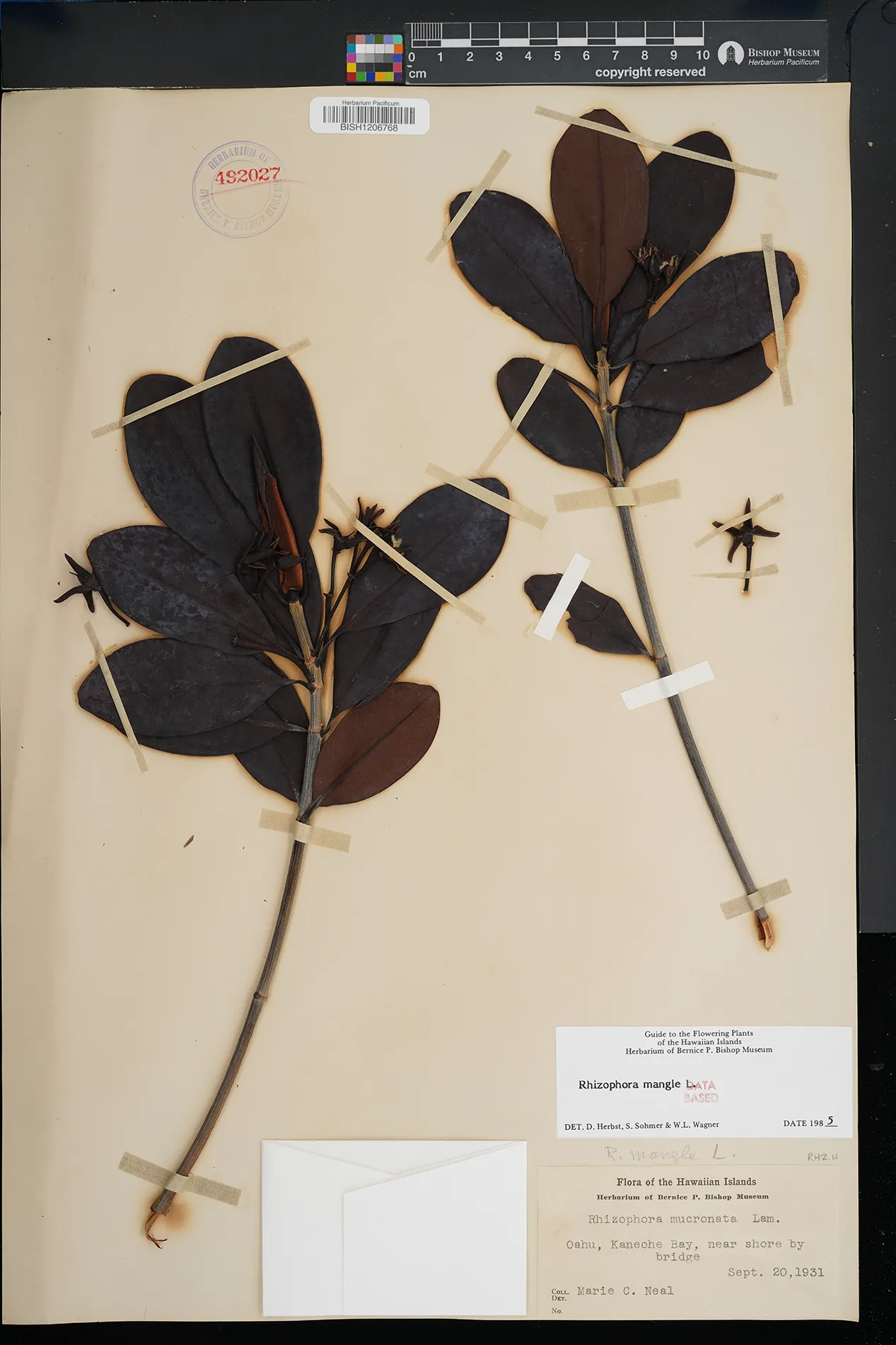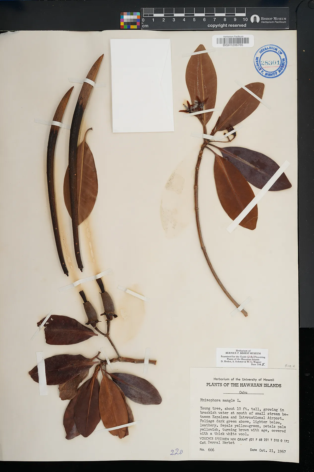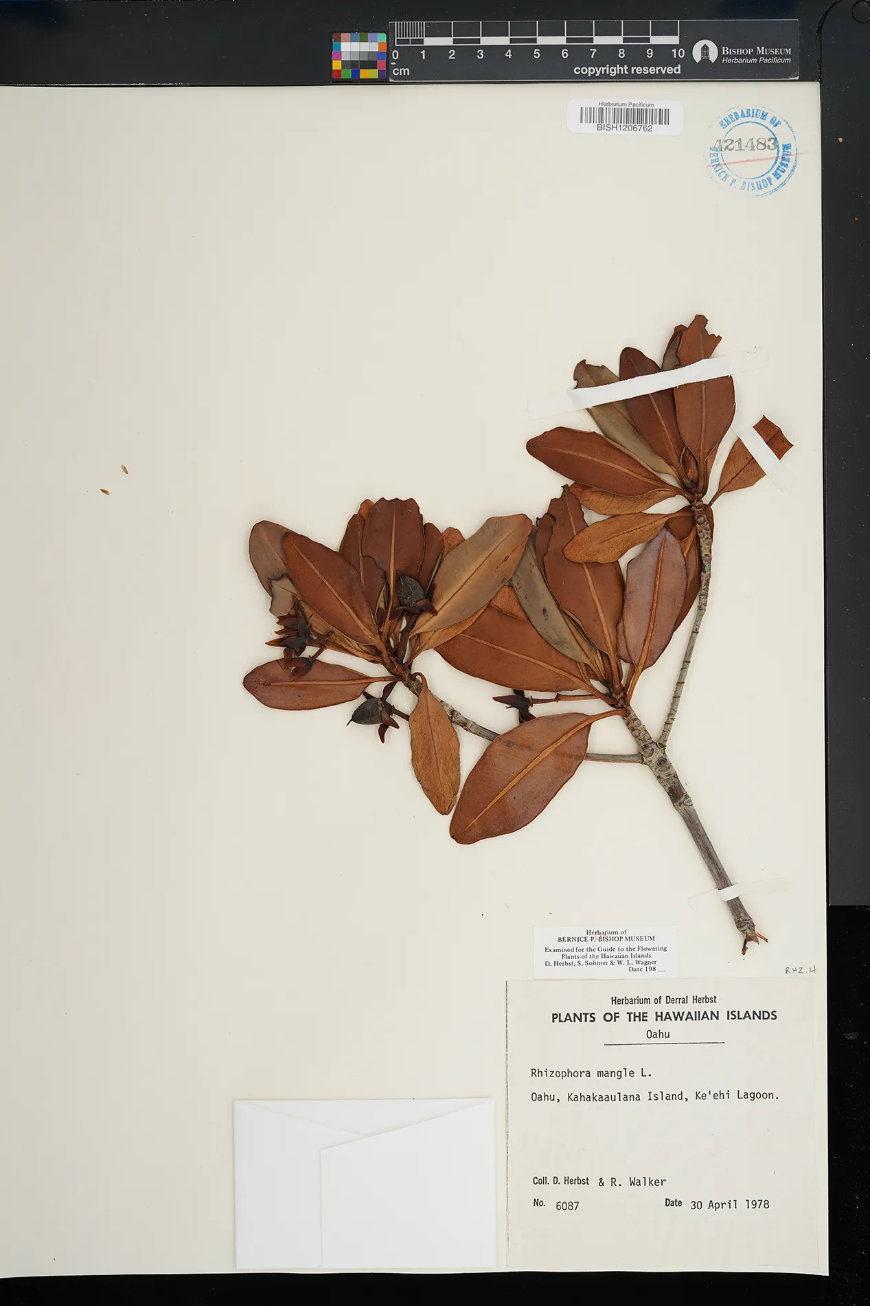Dominant tree species on mudflats fronting the ocean, along with Hibiscus tiliaceus and Thespesia populnea. |