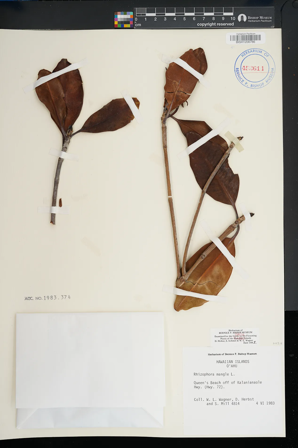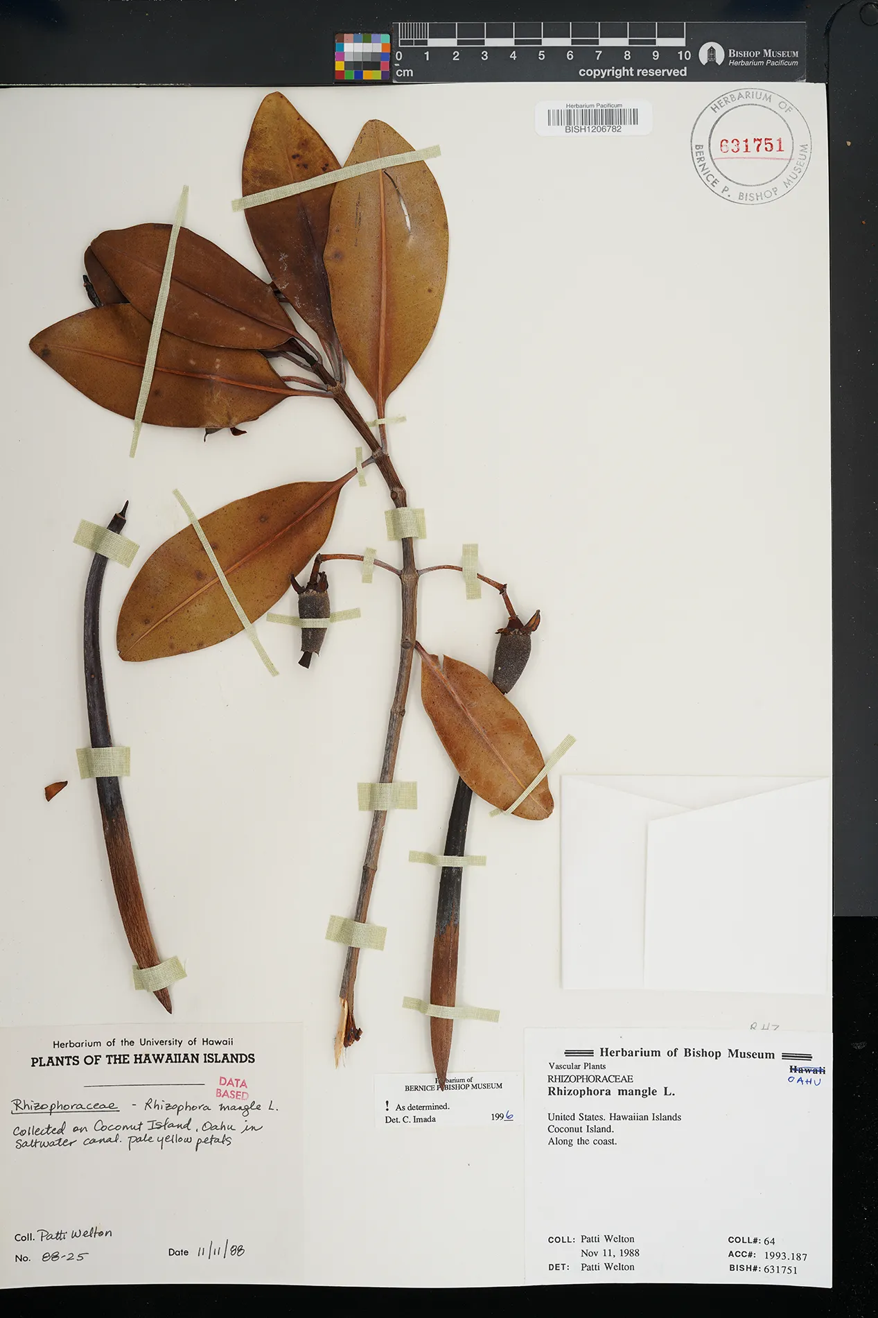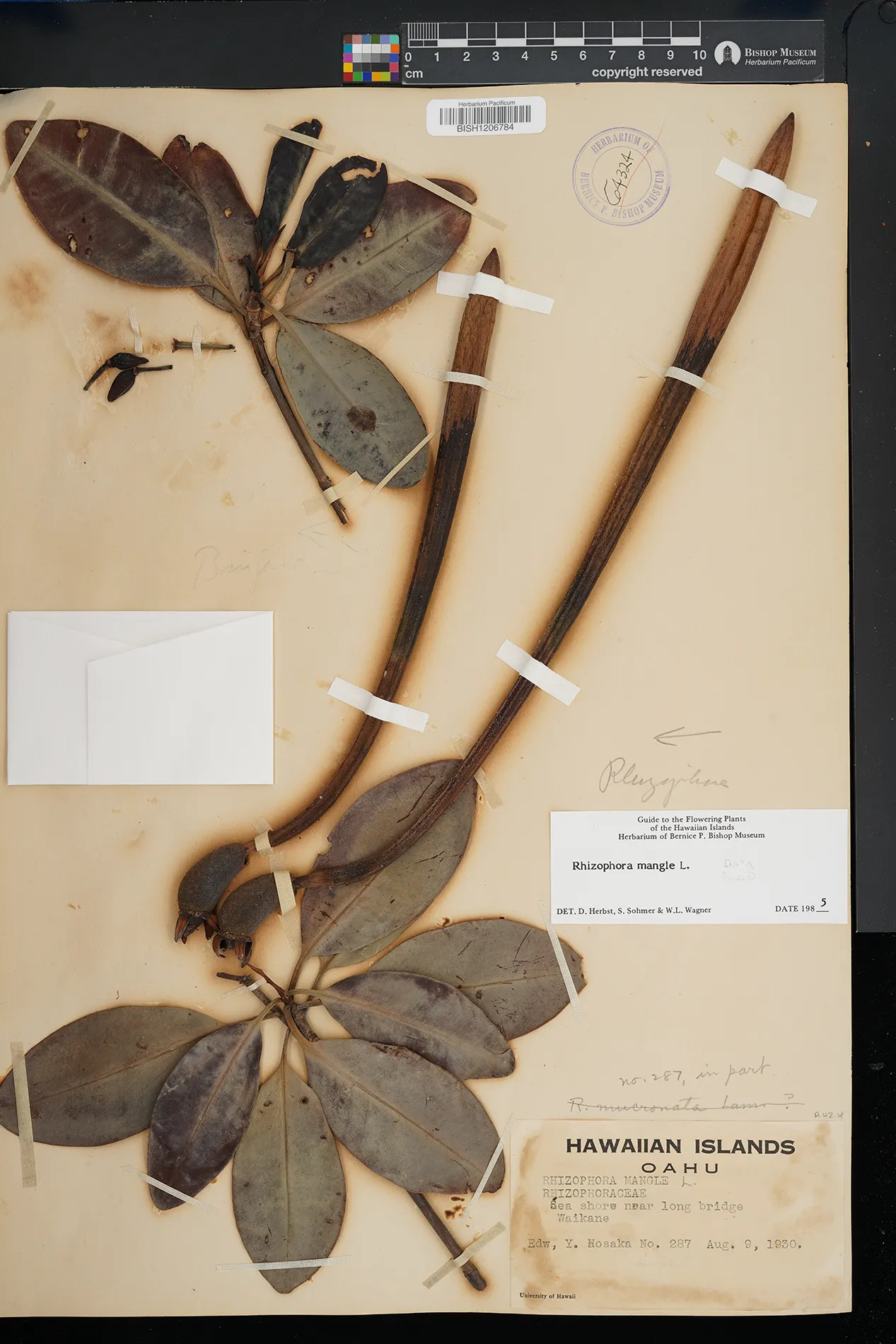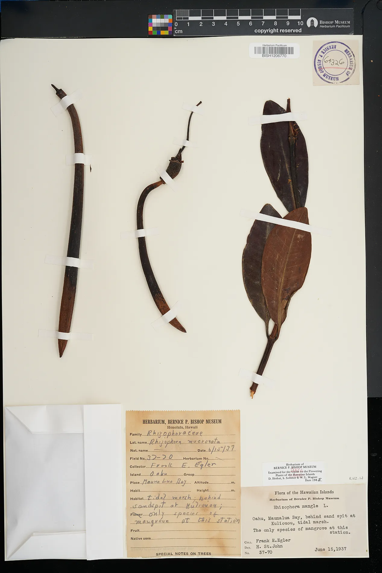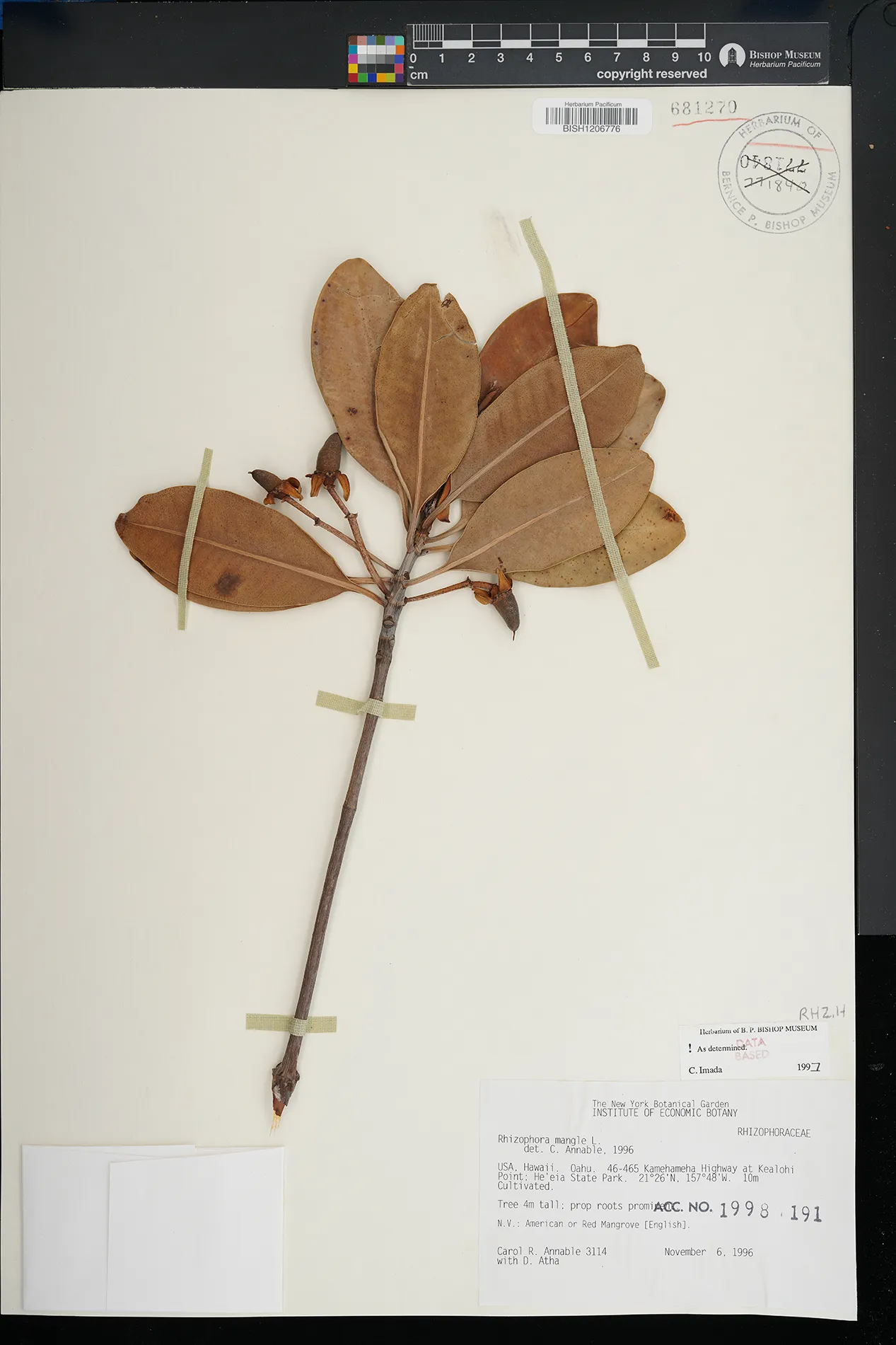 Dominant tree species on mudflats fronting the ocean, along with Hibiscus tiliaceus and Thespesia populnea. |
