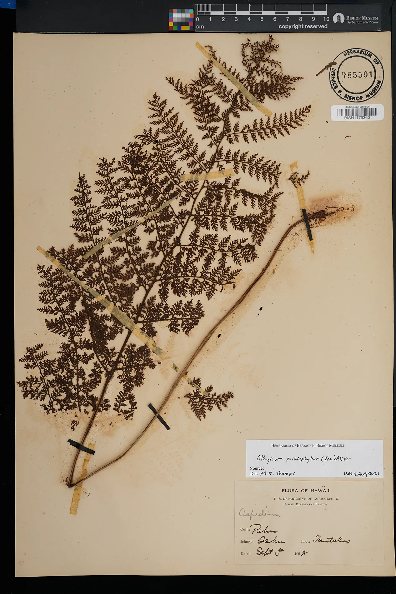 Growing on dry stream bed in shade among Tectaria sp. Common. |
