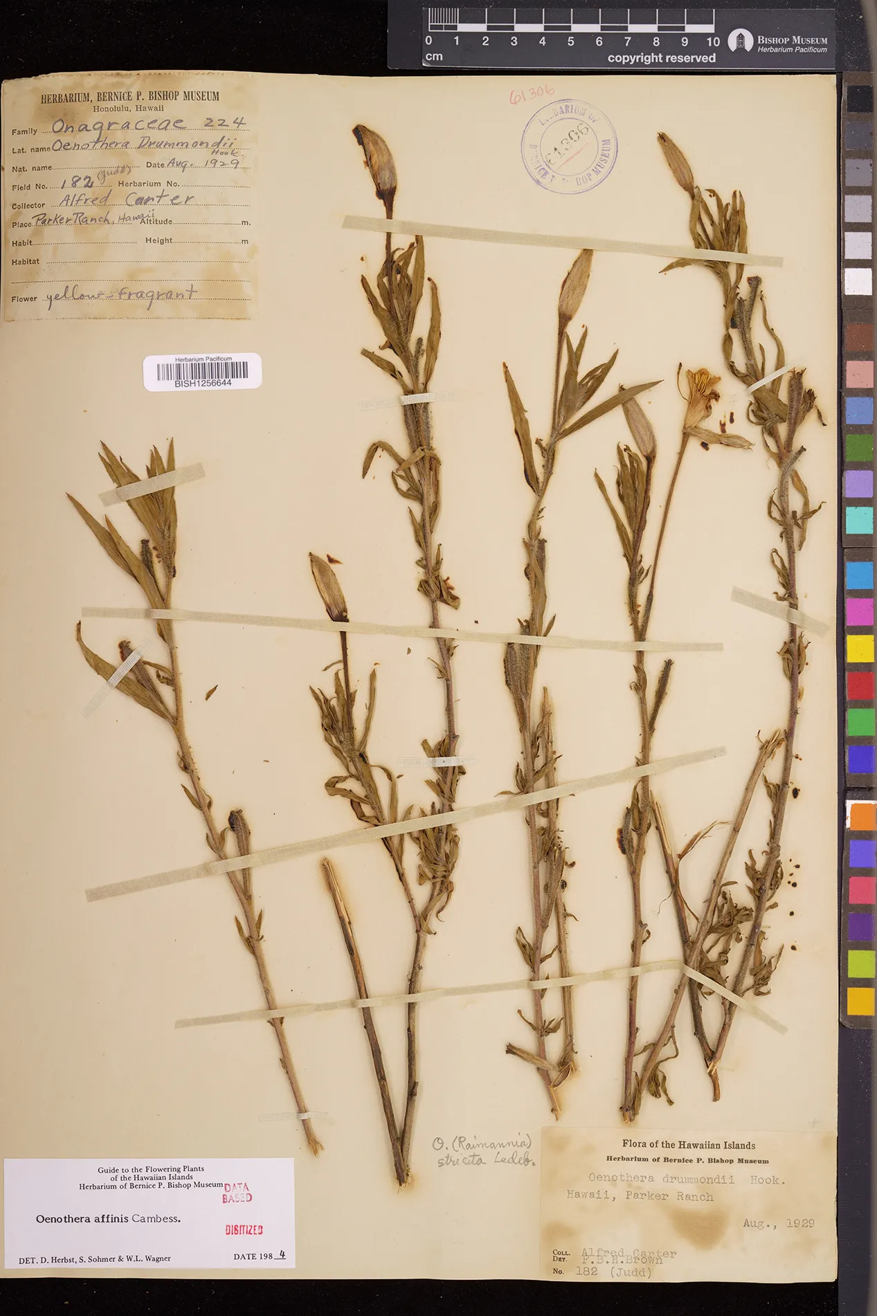 7 Oenothera affinis Cambess. Parker Ranch PRESERVED_SPECIMEN Carter, A. 182 Hawaii BISH 8/1/1929