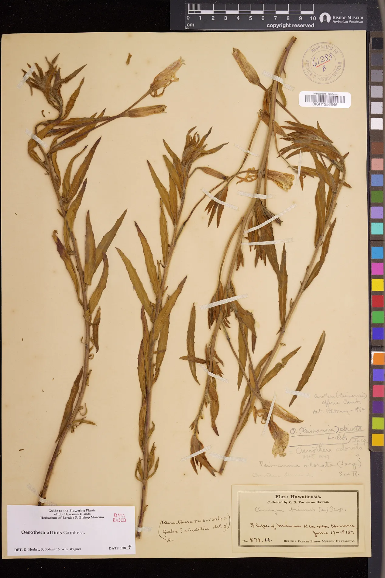 5 Oenothera affinis Cambess. slopes of mauna kea near humuula PRESERVED_SPECIMEN forbes, c.n. collector number: 879 Hawaii BISH 6/17/1915
