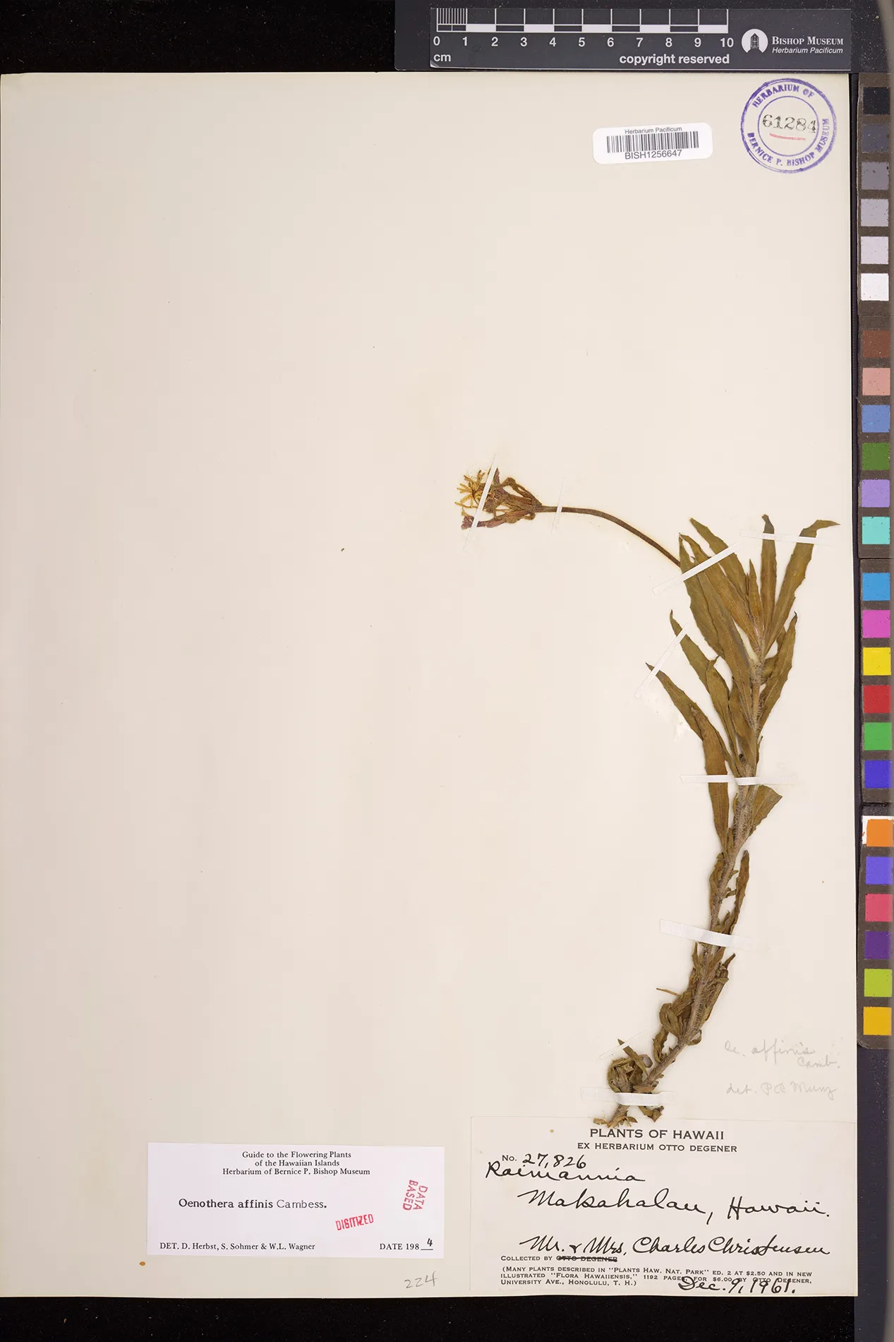 1 Oenothera affinis Cambess. Makahalau PRESERVED_SPECIMEN Christensen, C. 27826 Hawaii BISH 12/9/1961