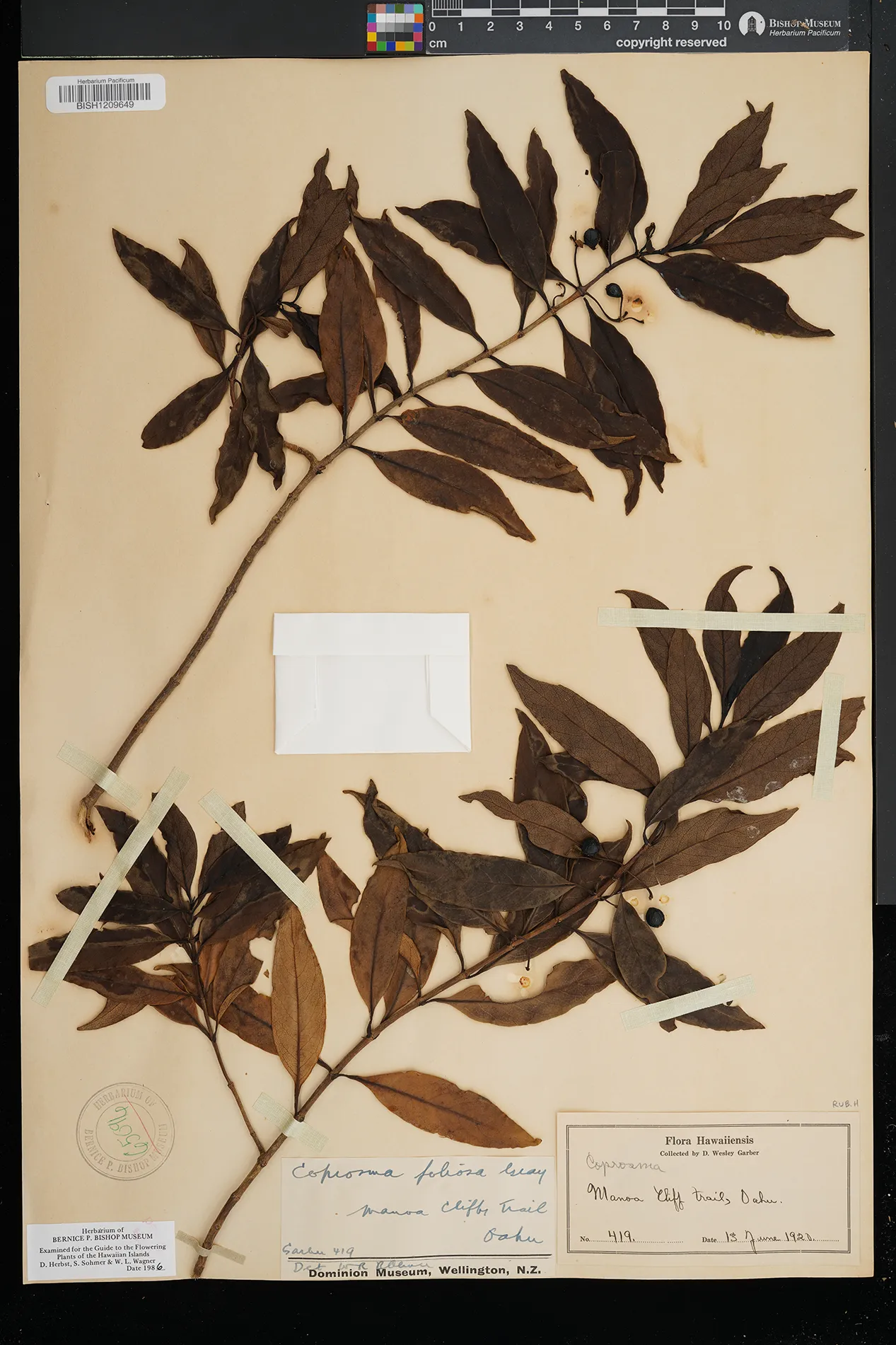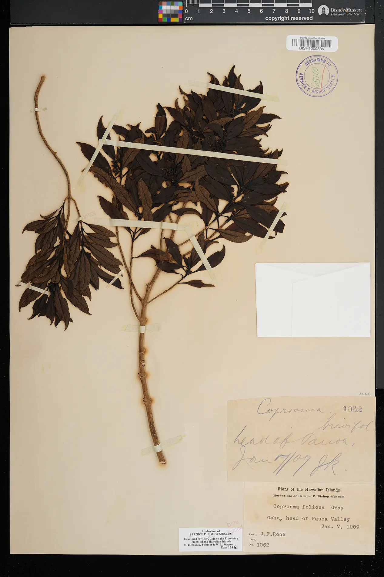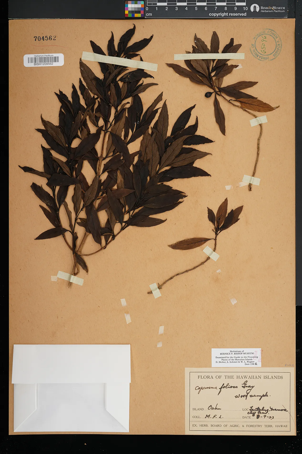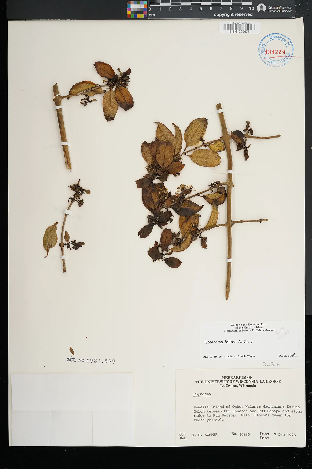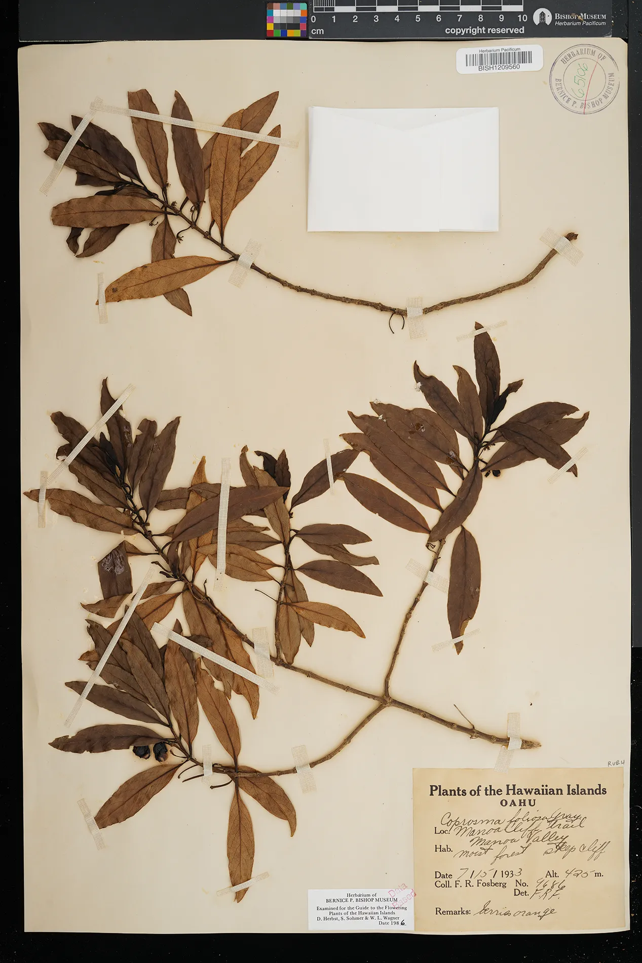 Growing in open Metrosideros forest with scattered Dodonaea, Wikstroemia, Scaevola, Santalum freycinetianum, Vaccinium, Gouldia, Dubautia, and groundcover of Dicranopteris, Lycopodium cernuum, and Nephrolepis. |