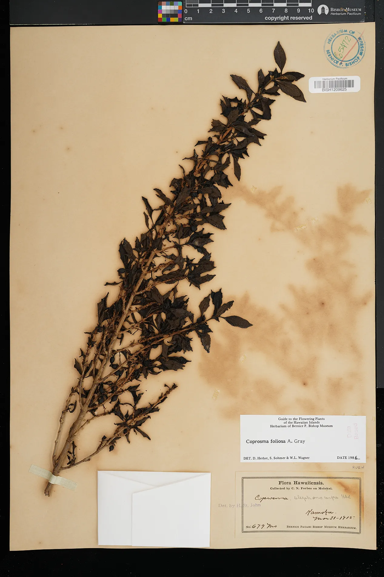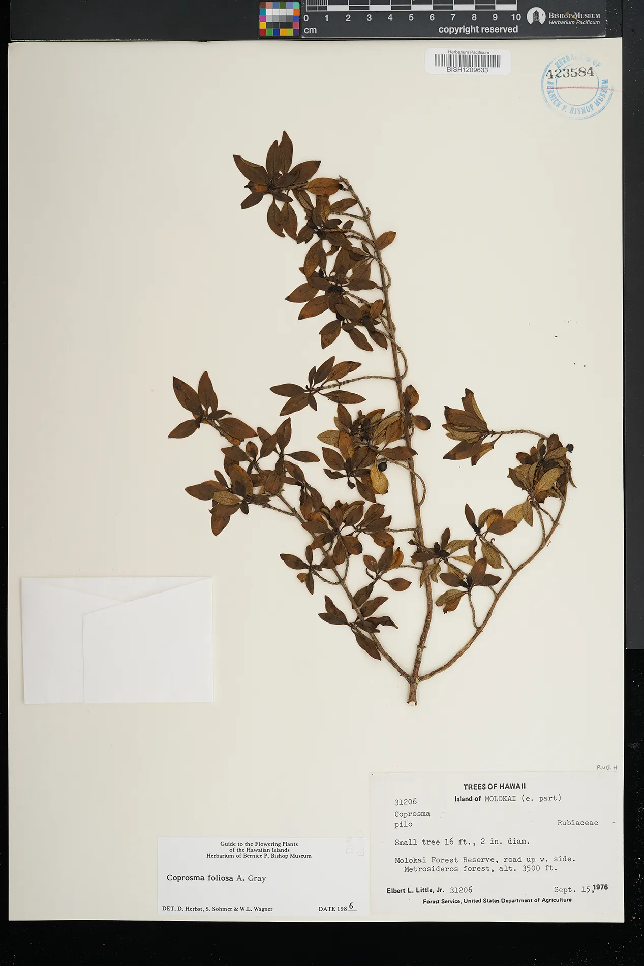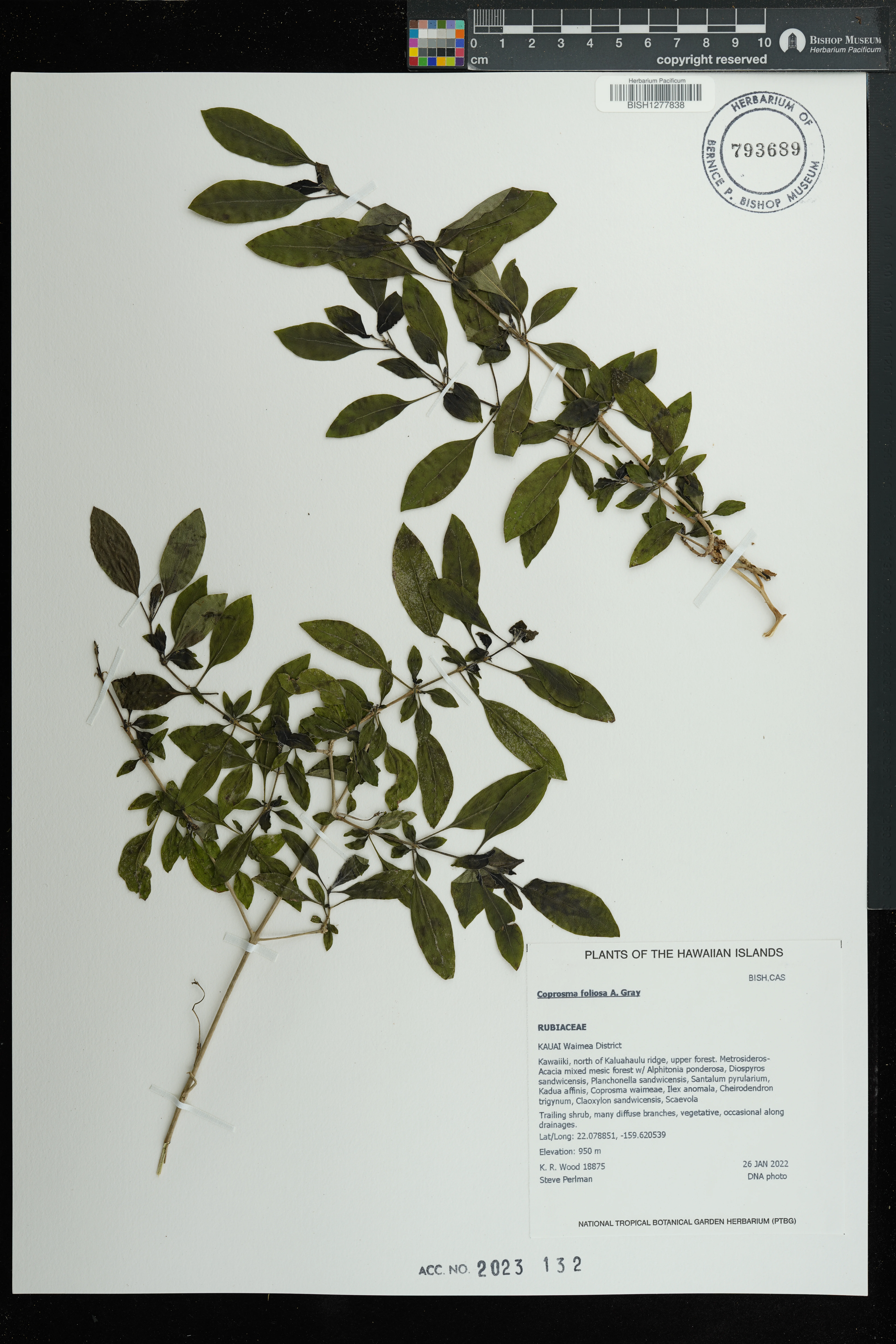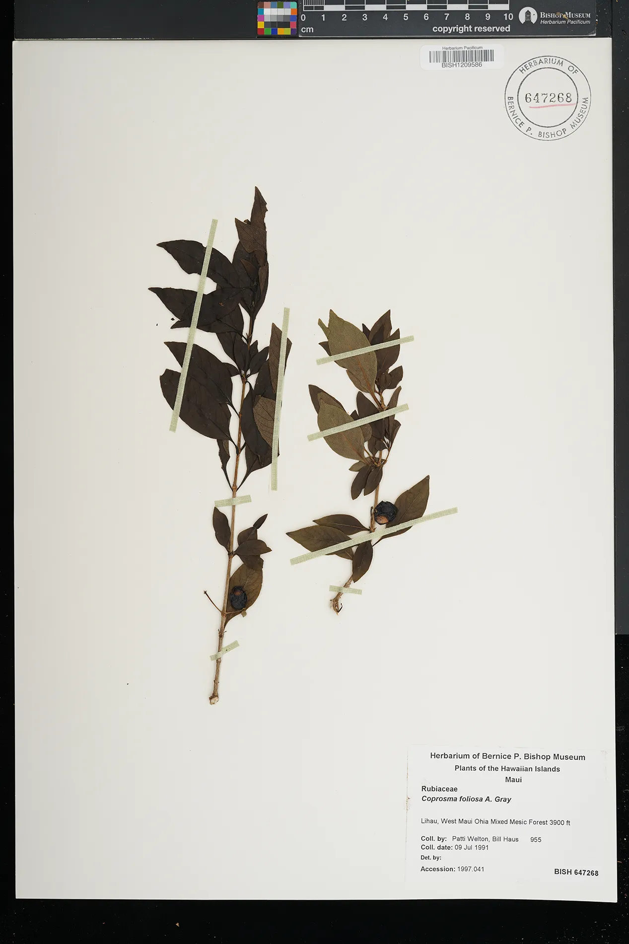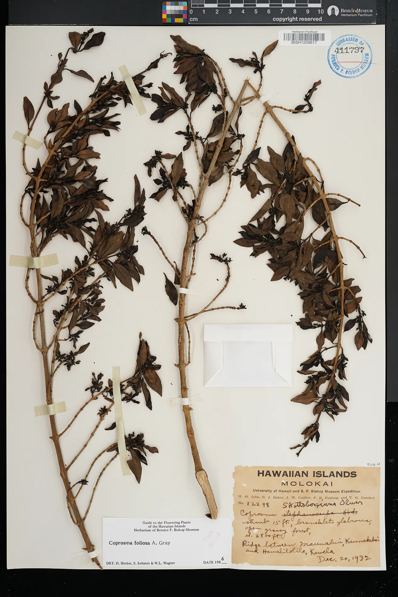 Metrosideros-Acacia-Alphitonia montane mesic forest with Euphorbia atrococca, Myrsine lanaiensis, Dodonaea viscosa, Psychotria mariniana, Wikstroema furcata, Diospyros sandwicensis, Kadua affinis, Coprosma waimeae, C. foliosa, Polyscias kavaiensis, Anti |