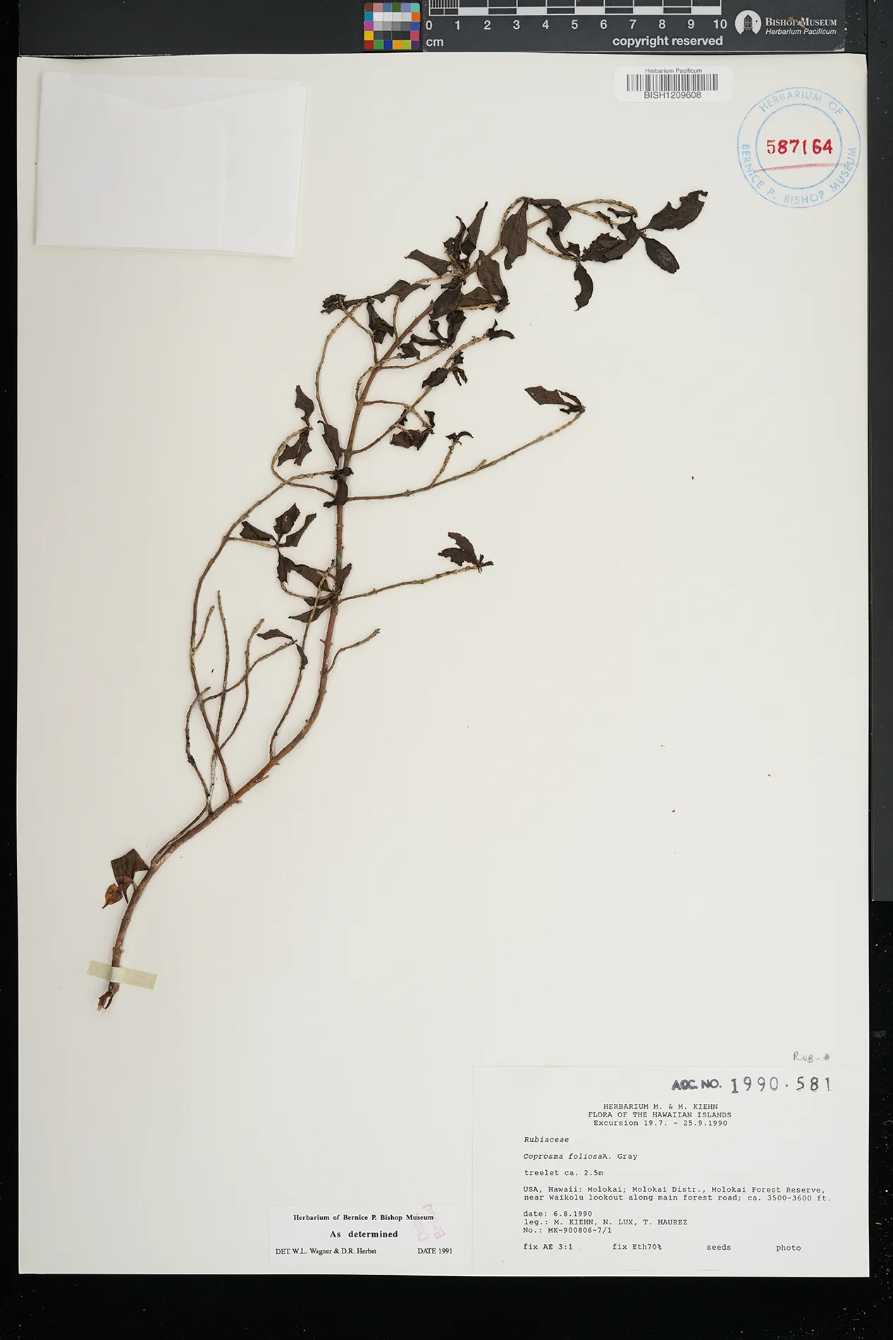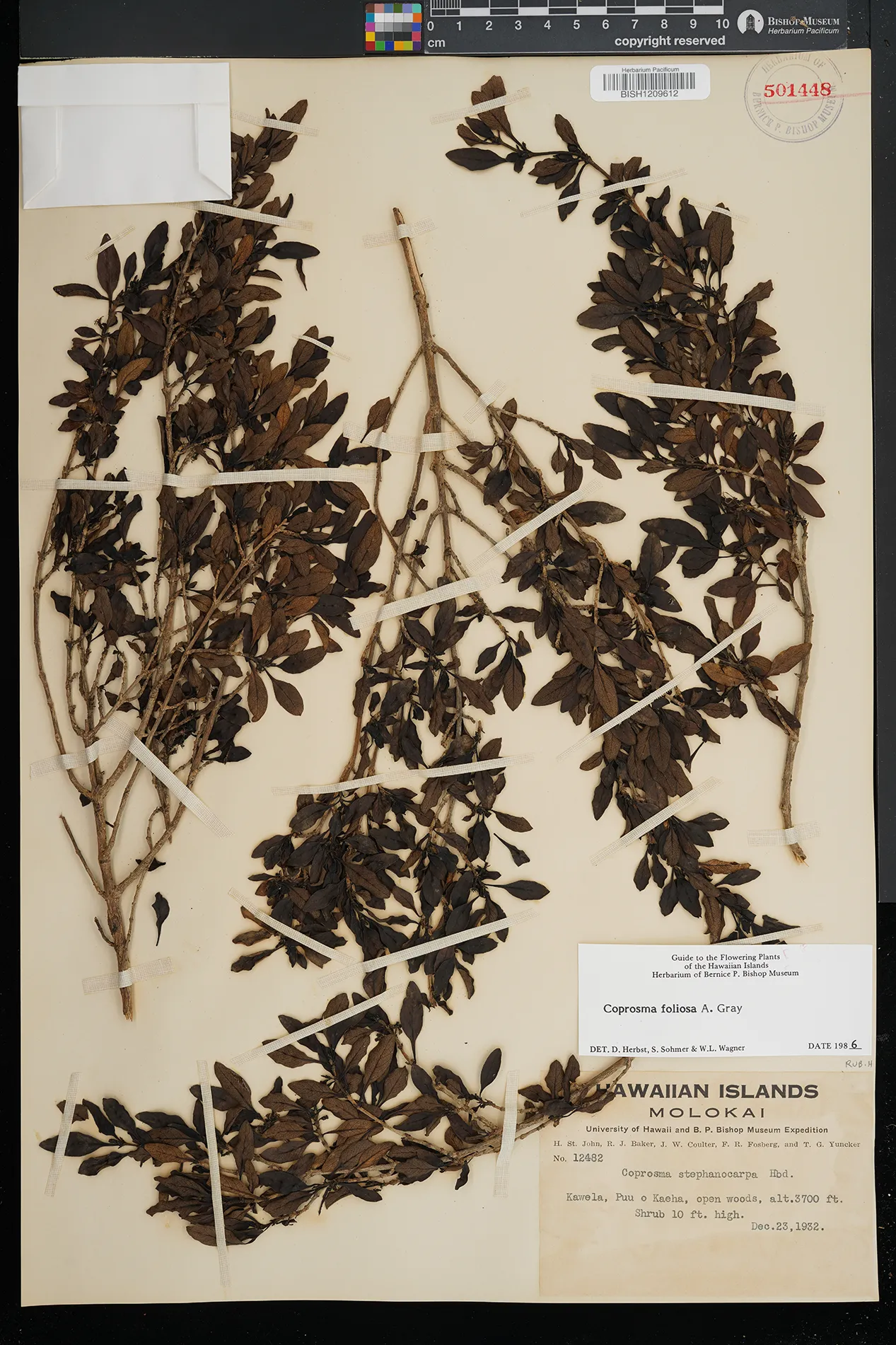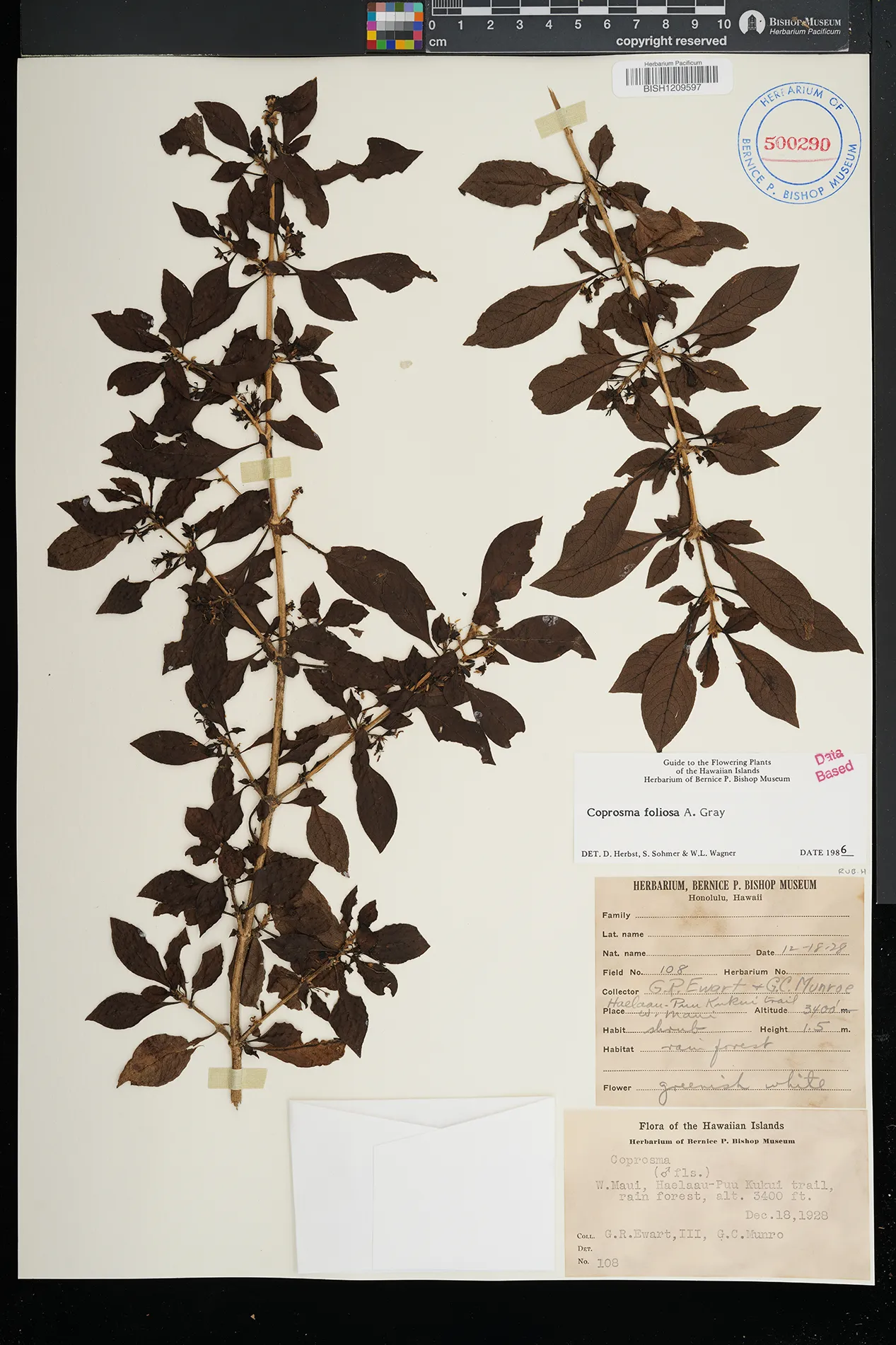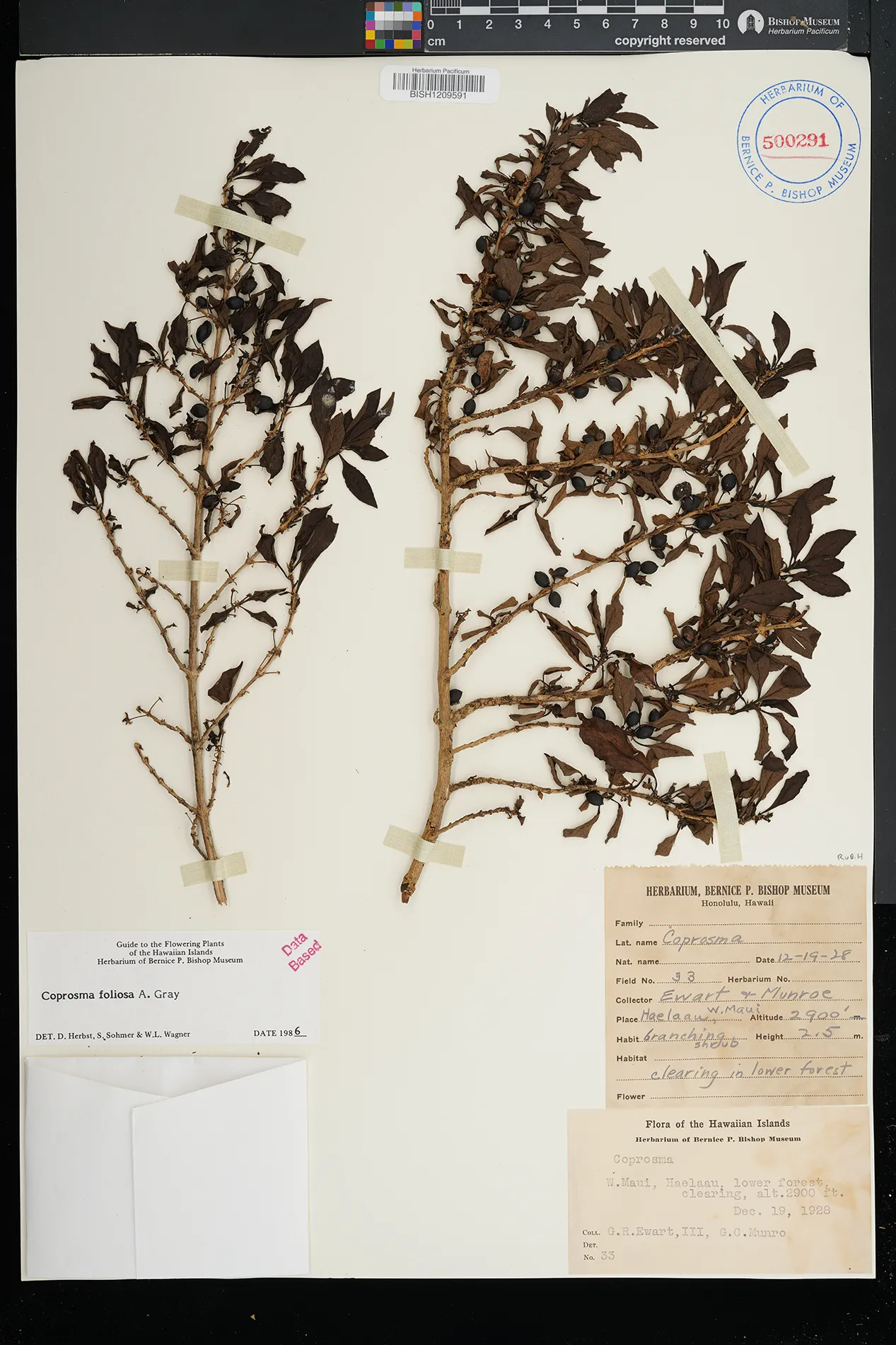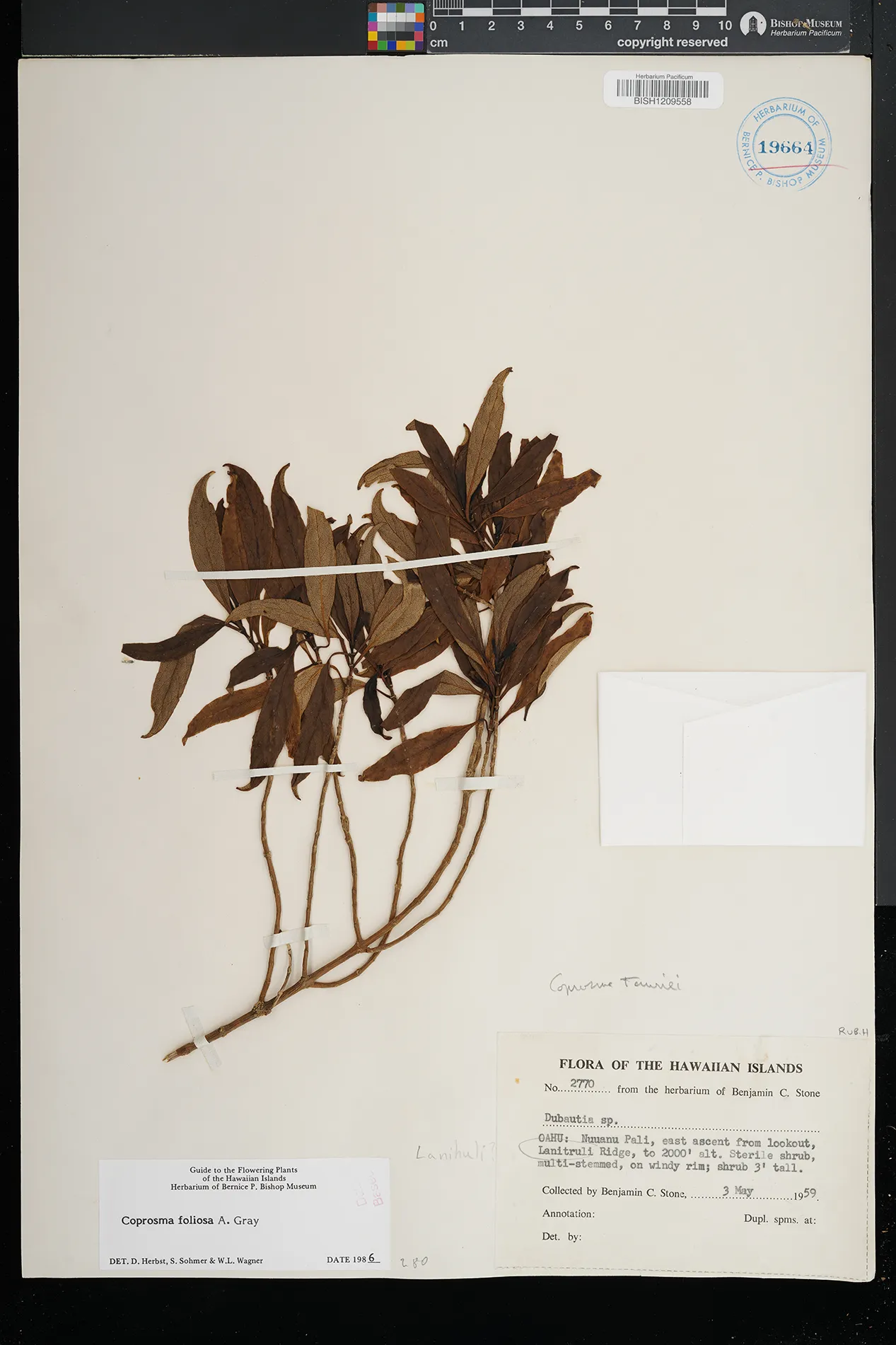 Metrosideros-Acacia-Alphitonia montane mesic forest with Euphorbia atrococca, Myrsine lanaiensis, Dodonaea viscosa, Psychotria mariniana, Wikstroema furcata, Diospyros sandwicensis, Kadua affinis, Coprosma waimeae, C. foliosa, Polyscias kavaiensis, Anti |