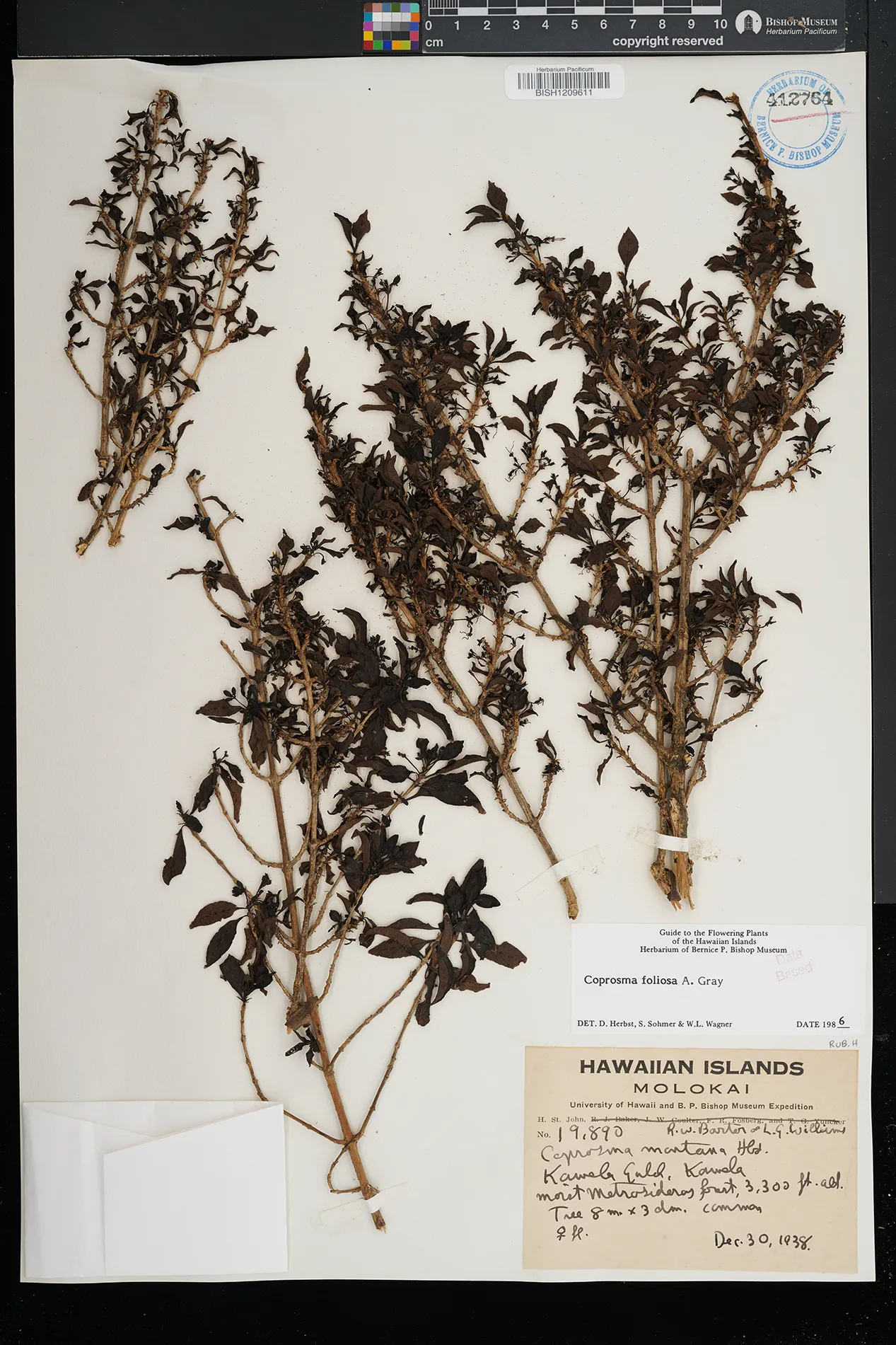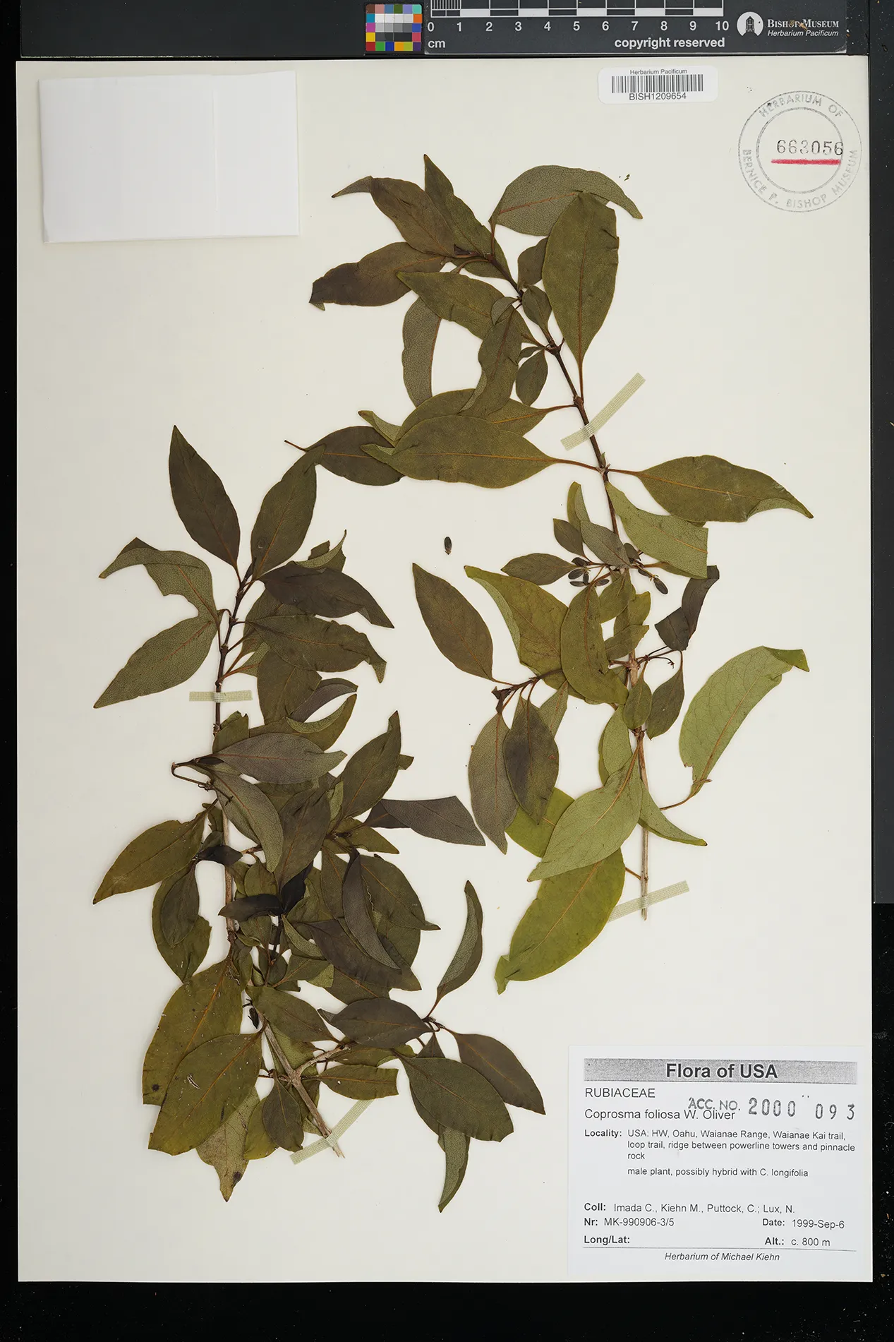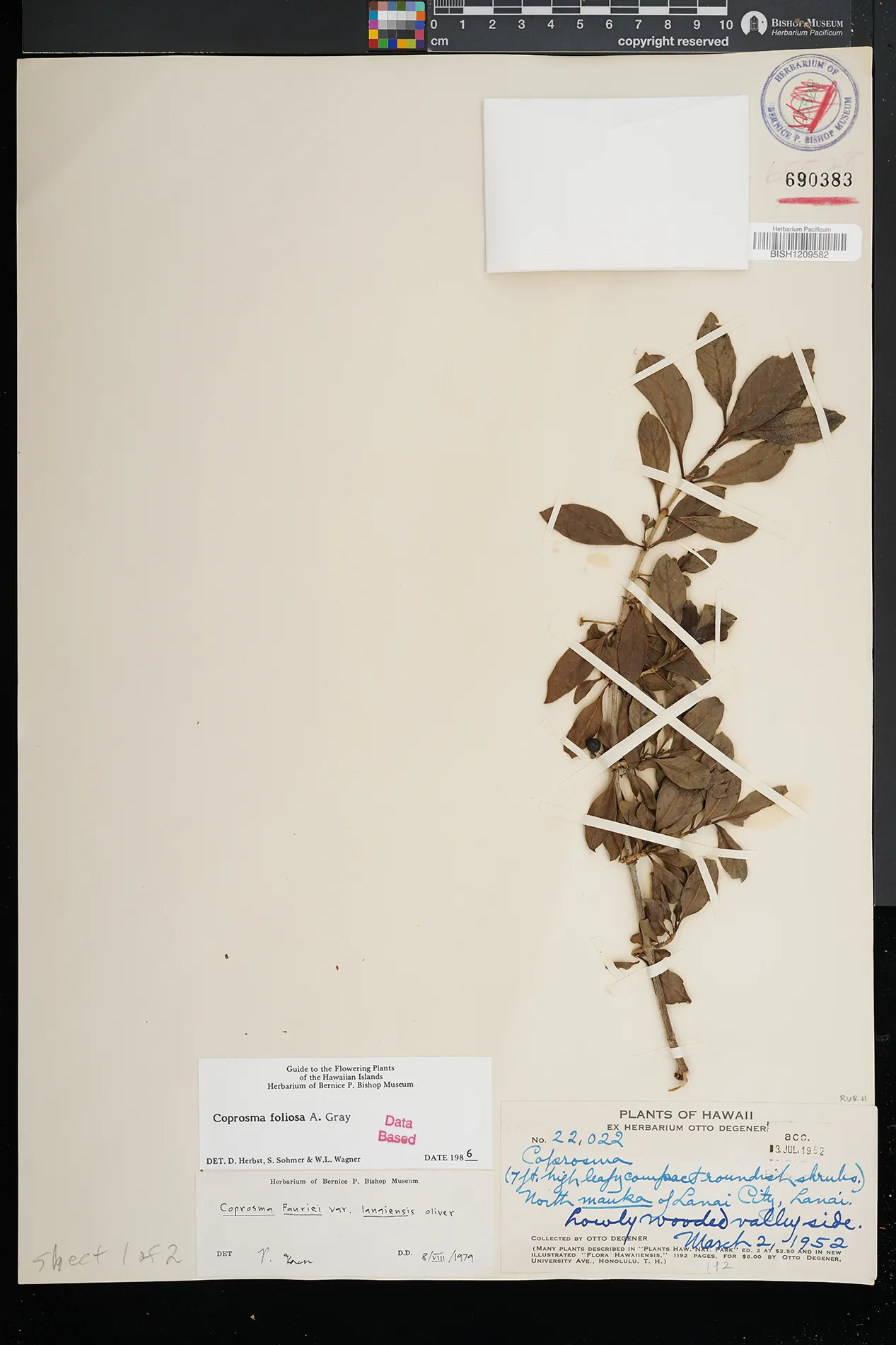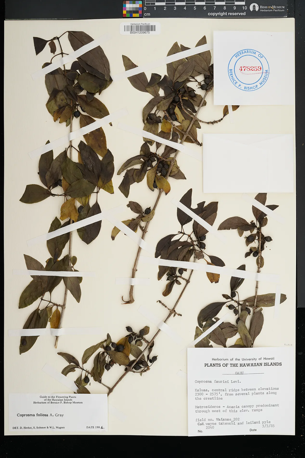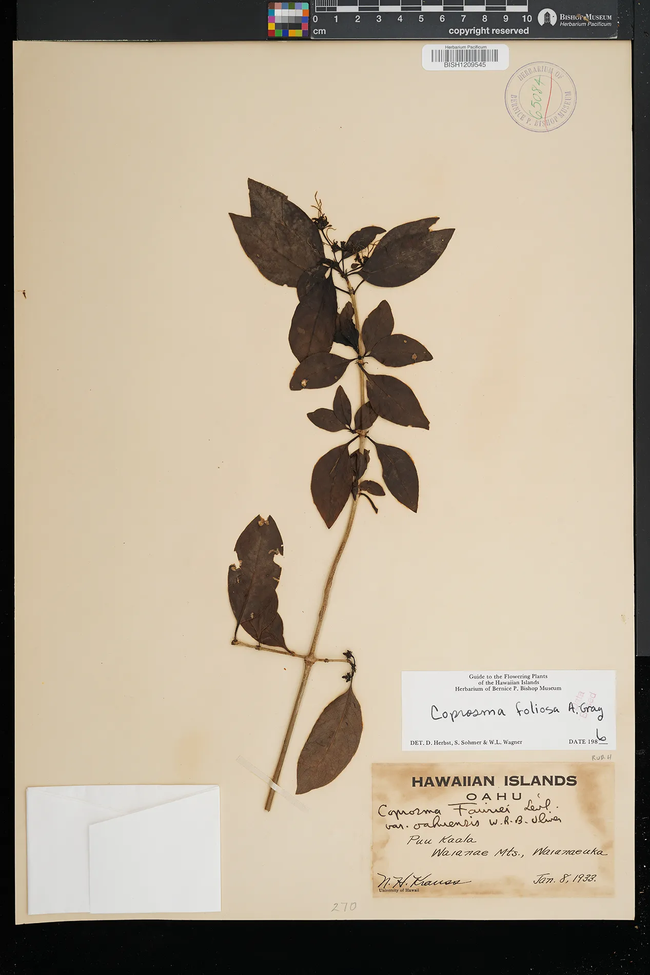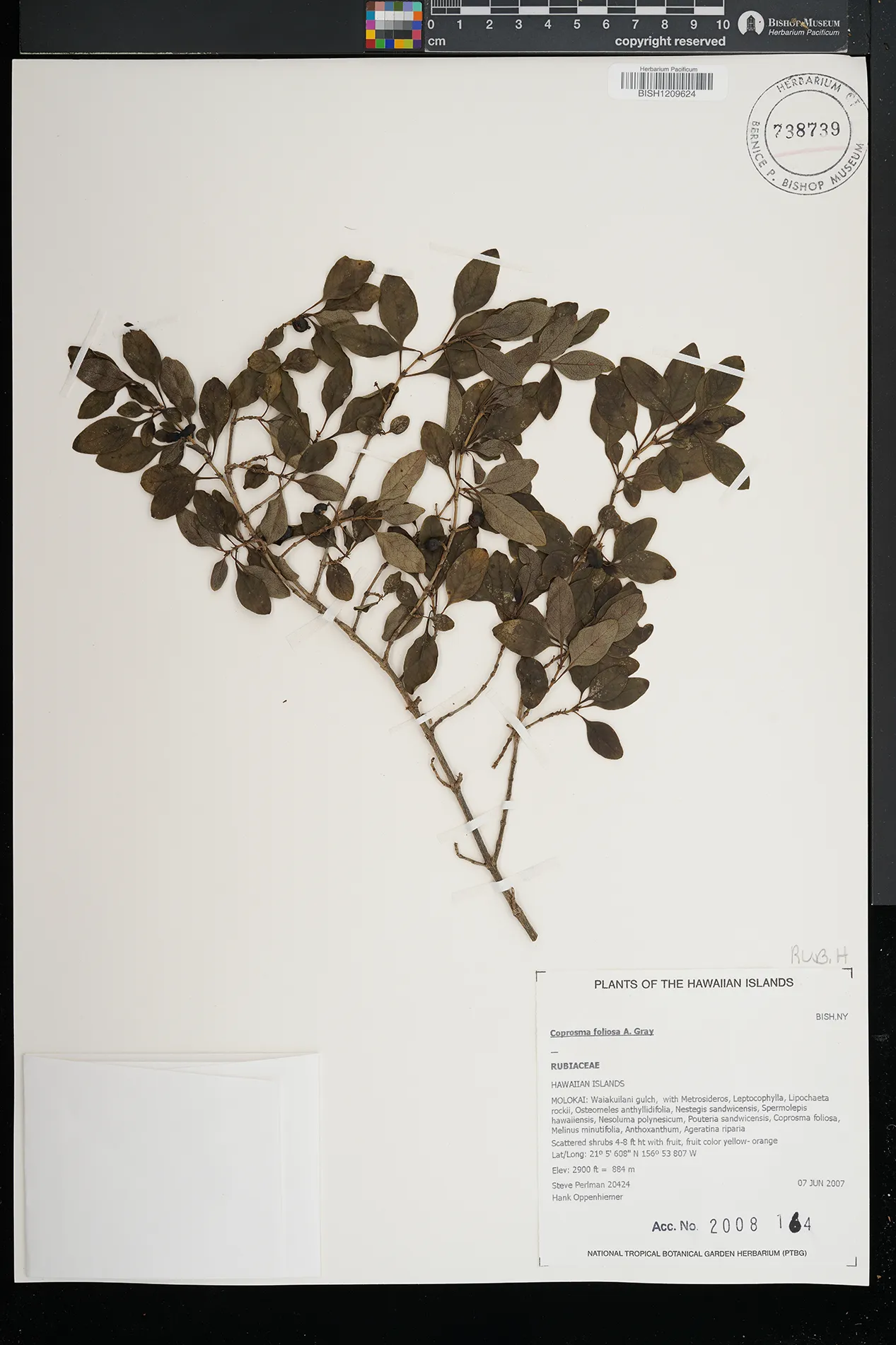 Metrosideros-Acacia-Alphitonia montane mesic forest with Euphorbia atrococca, Myrsine lanaiensis, Dodonaea viscosa, Psychotria mariniana, Wikstroema furcata, Diospyros sandwicensis, Kadua affinis, Coprosma waimeae, C. foliosa, Polyscias kavaiensis, Anti |