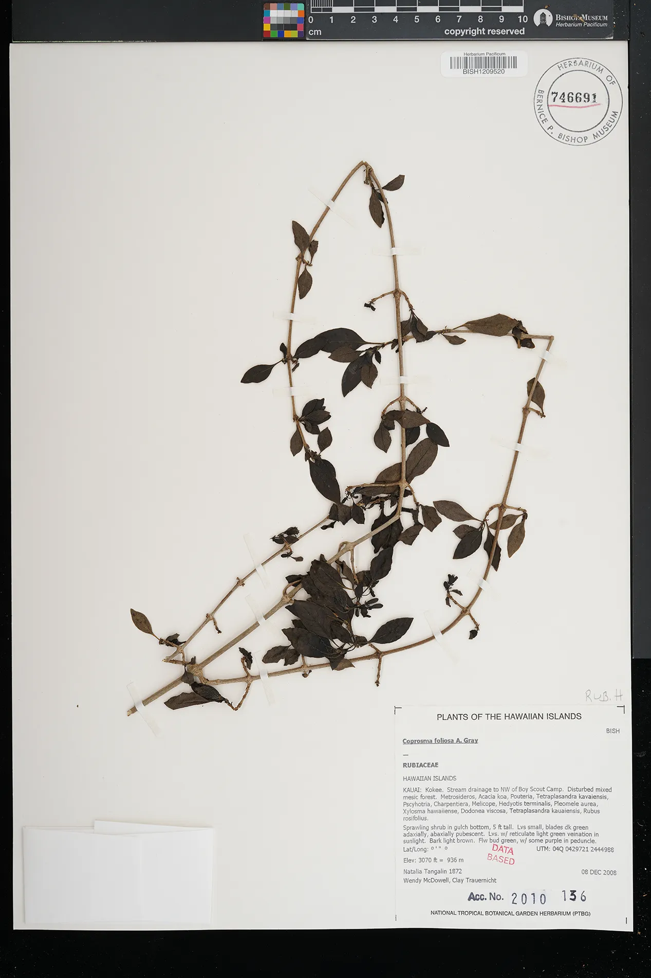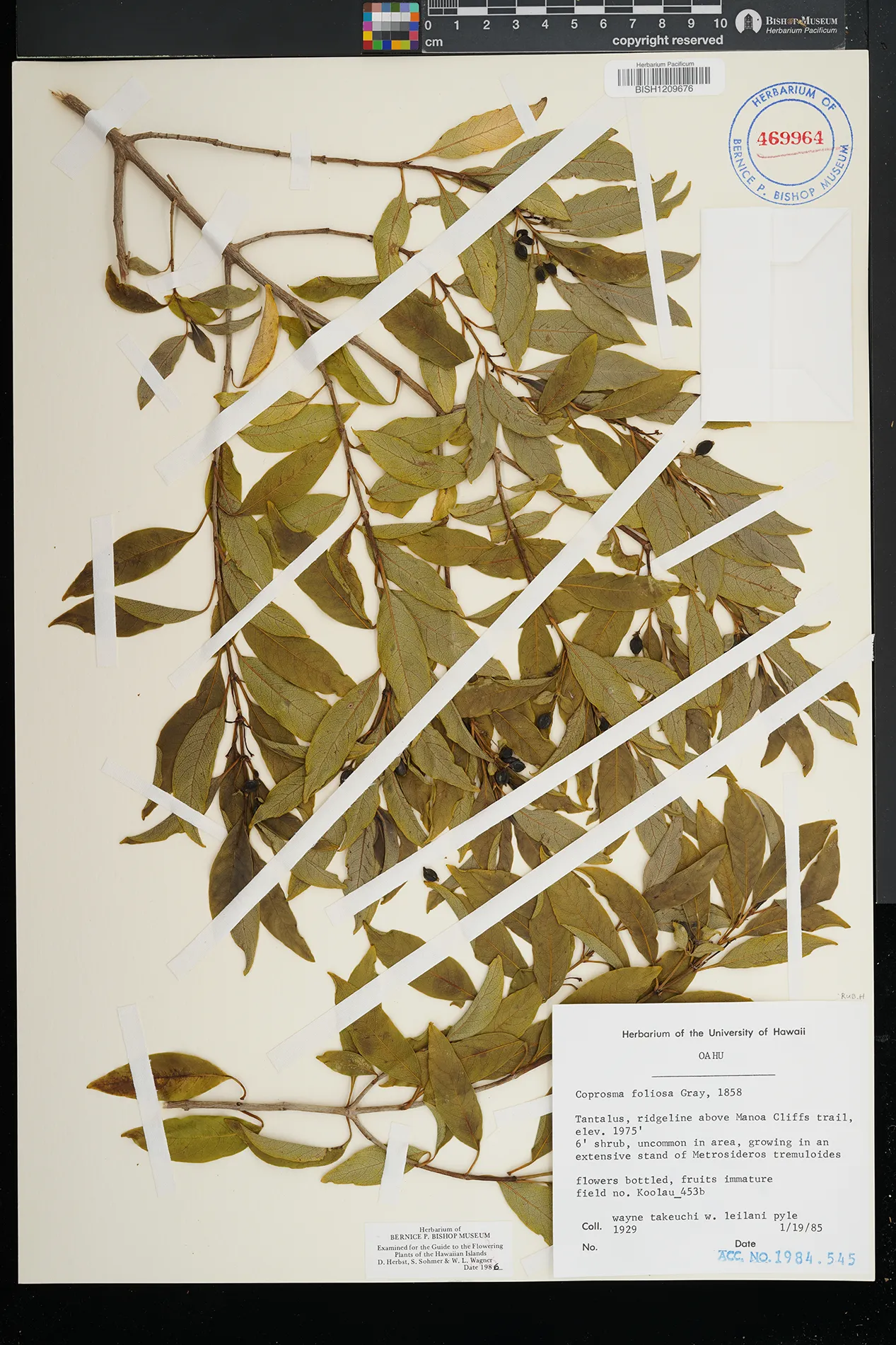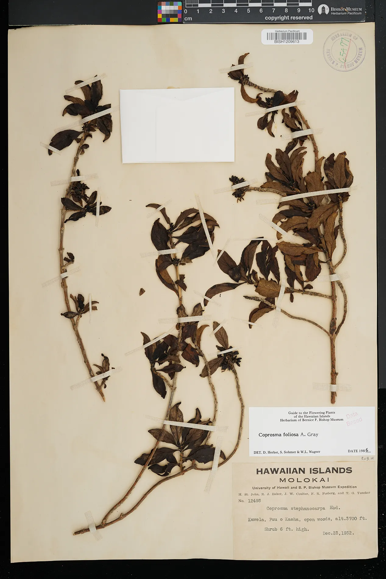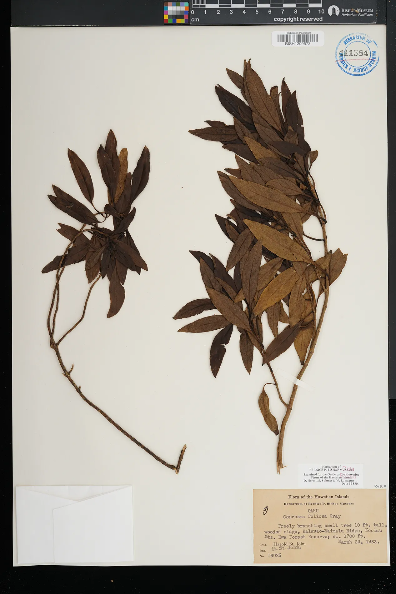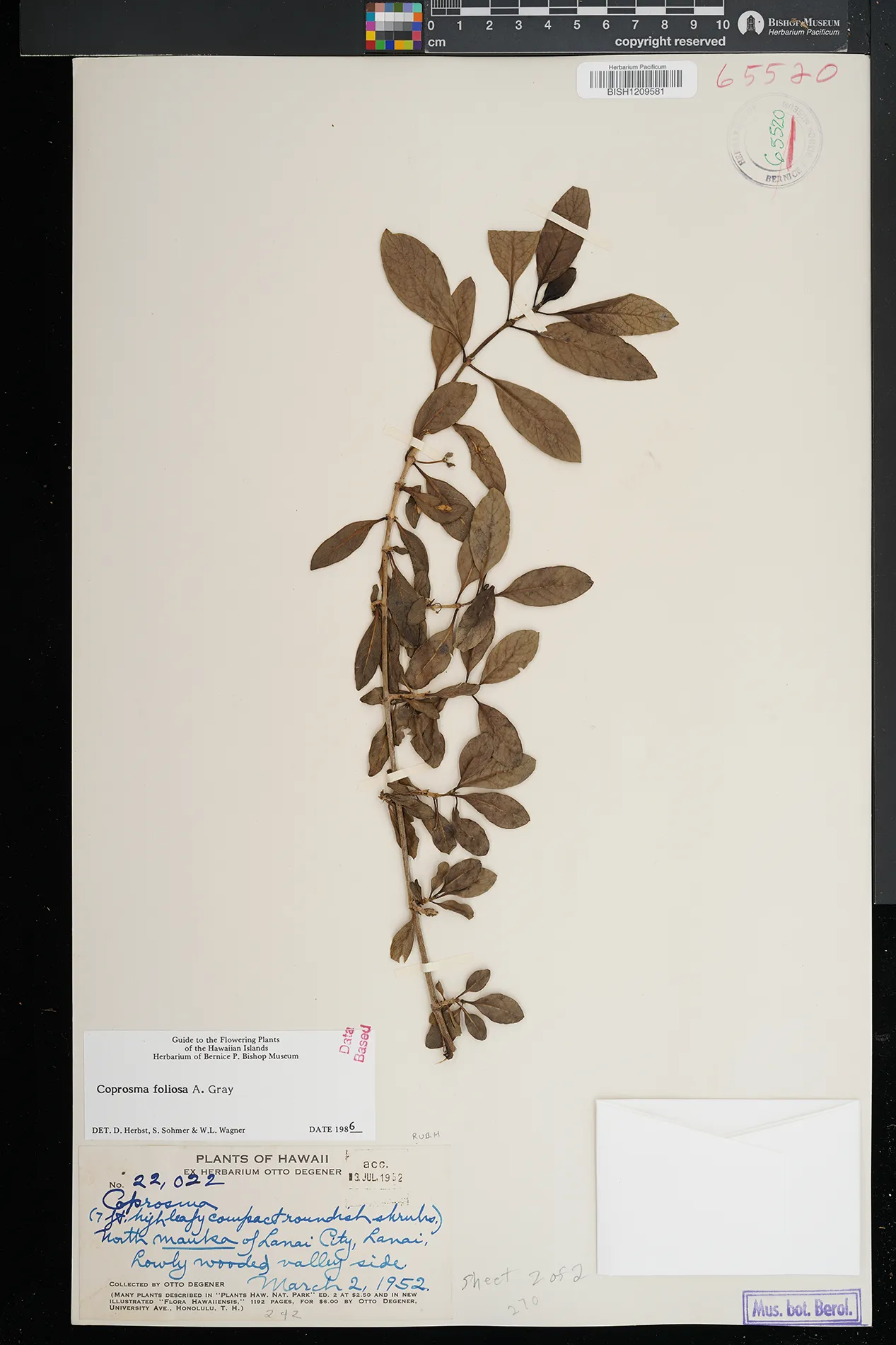 Metrosideros-Acacia-Alphitonia montane mesic forest with Euphorbia atrococca, Myrsine lanaiensis, Dodonaea viscosa, Psychotria mariniana, Wikstroema furcata, Diospyros sandwicensis, Kadua affinis, Coprosma waimeae, C. foliosa, Polyscias kavaiensis, Anti |