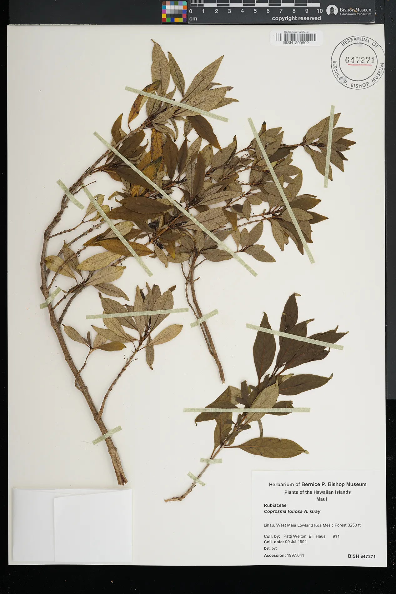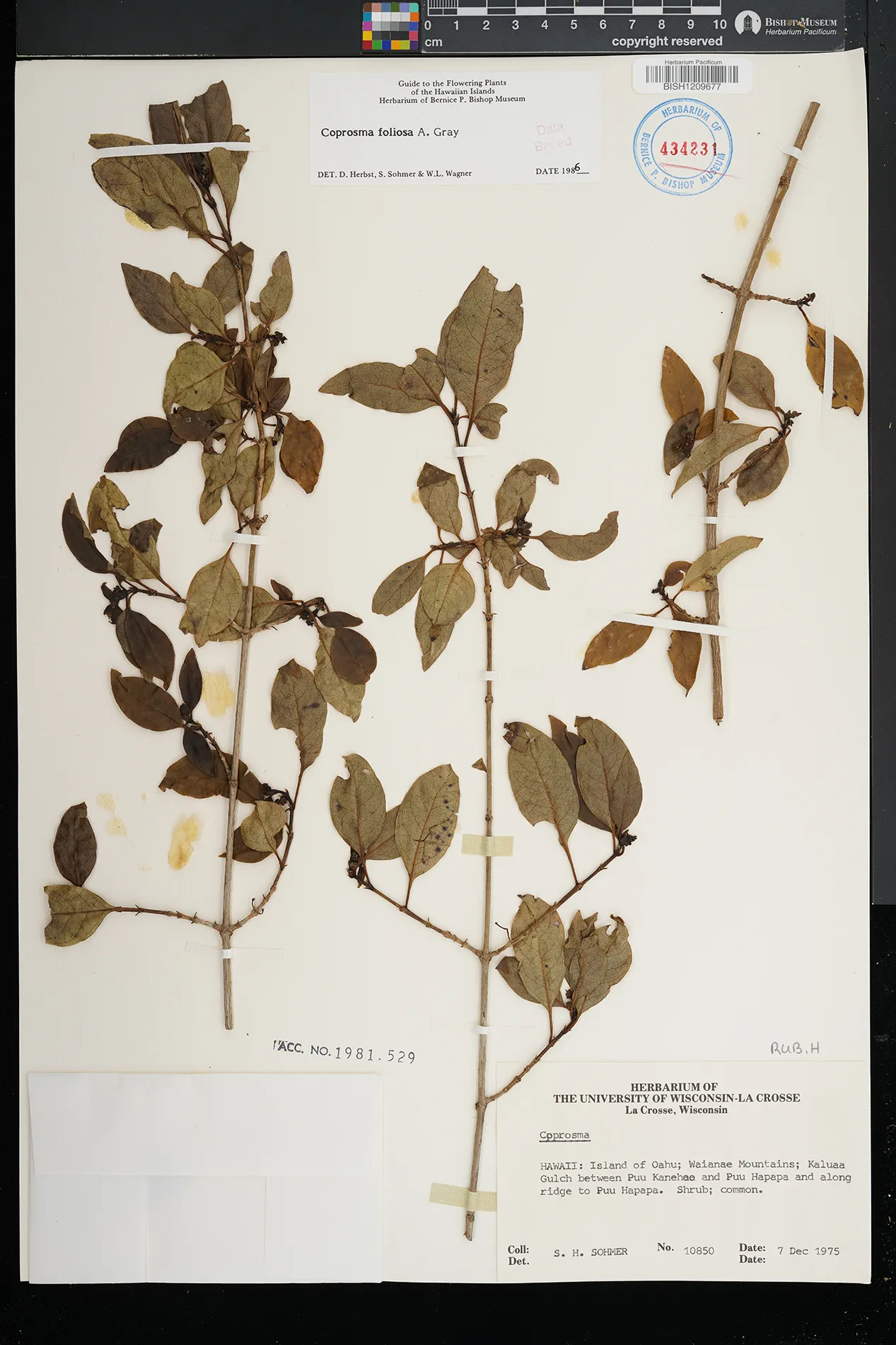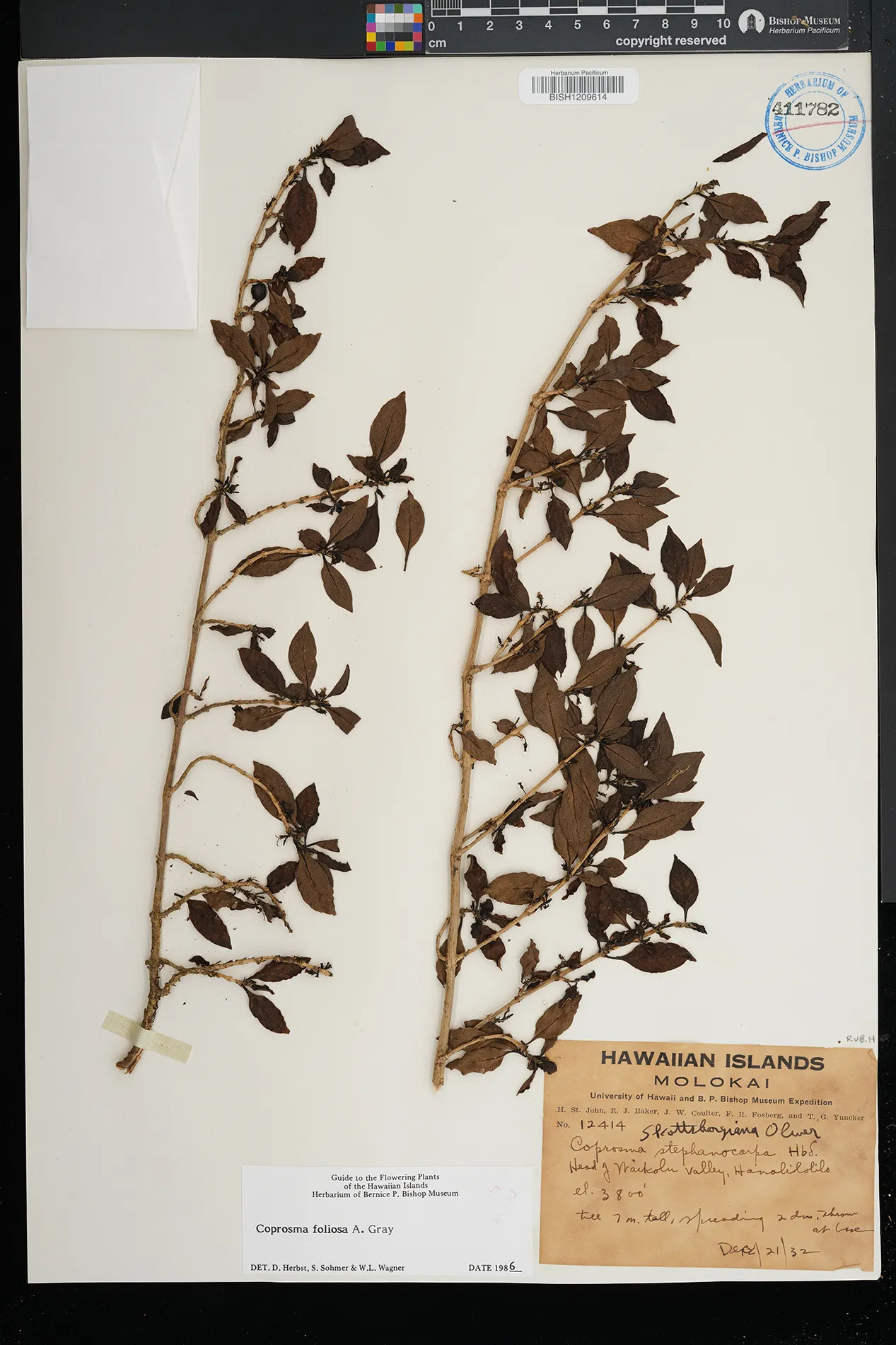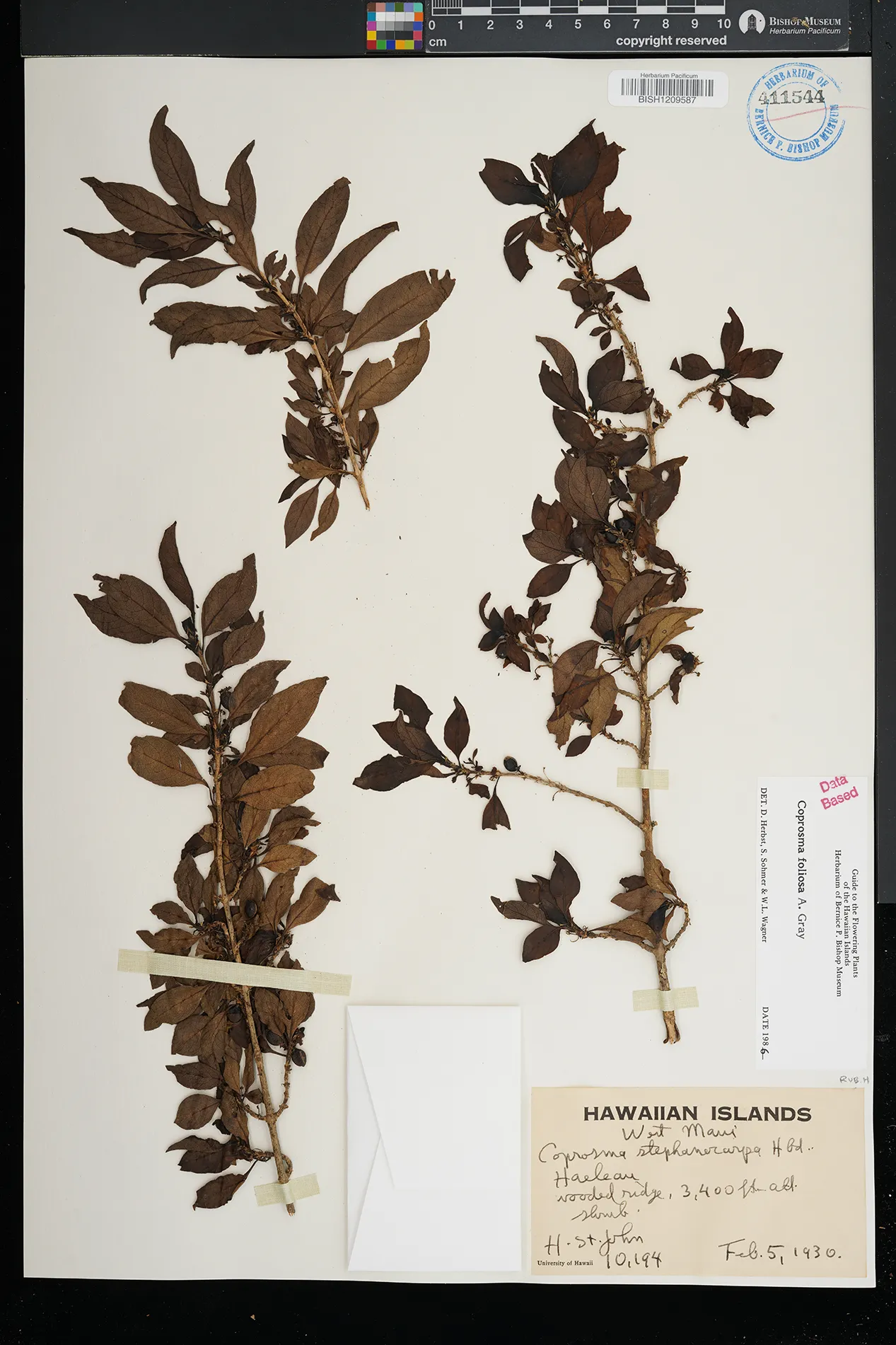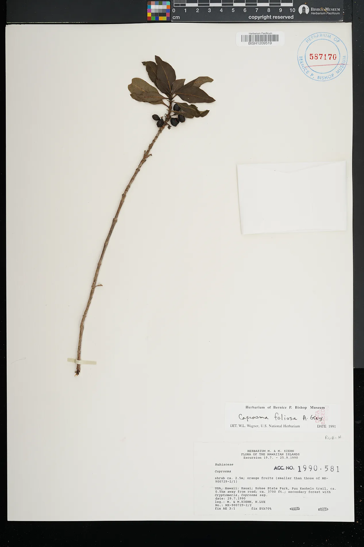 Metrosideros-Acacia-Alphitonia montane mesic forest with Euphorbia atrococca, Myrsine lanaiensis, Dodonaea viscosa, Psychotria mariniana, Wikstroema furcata, Diospyros sandwicensis, Kadua affinis, Coprosma waimeae, C. foliosa, Polyscias kavaiensis, Anti |
