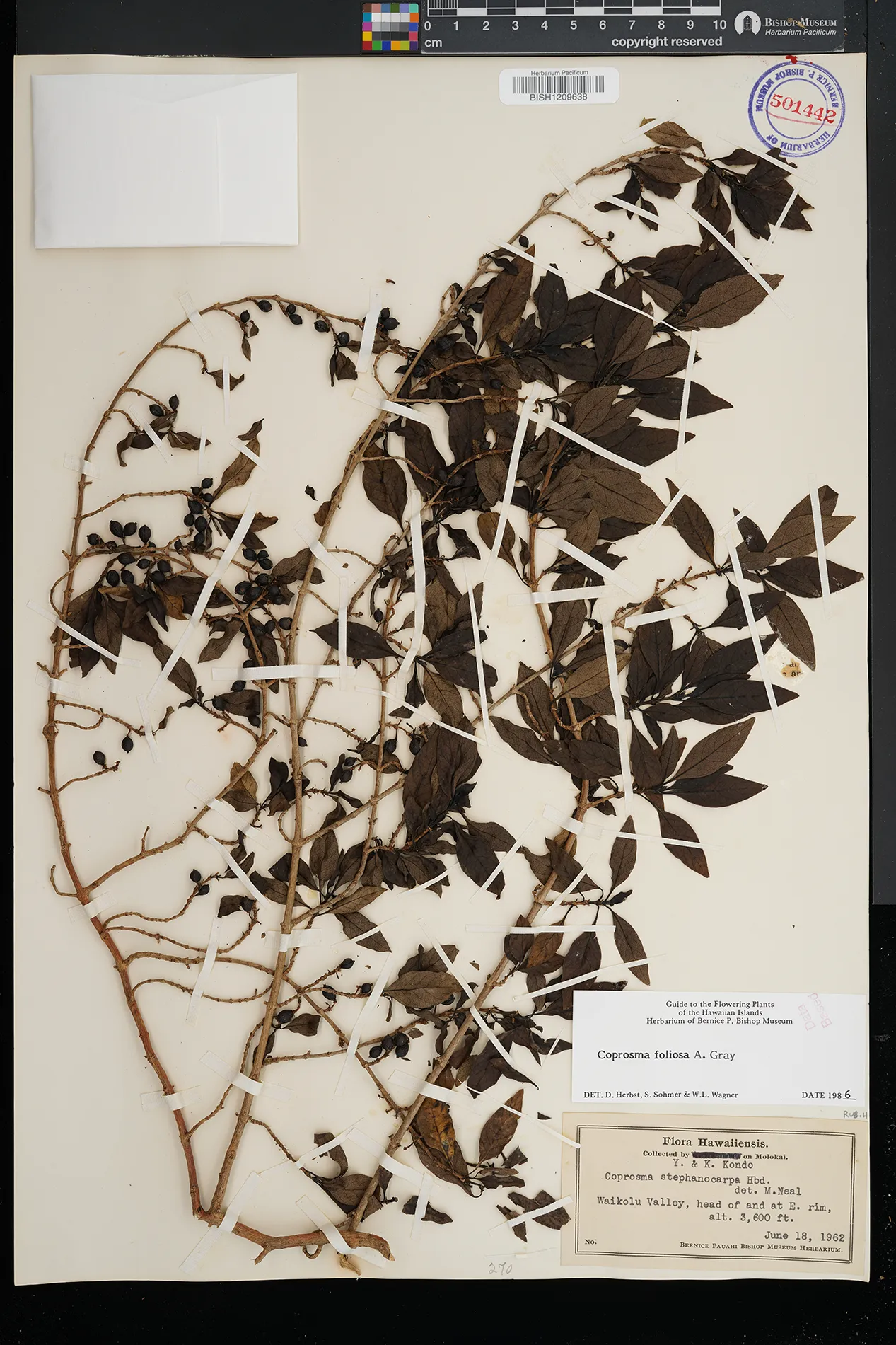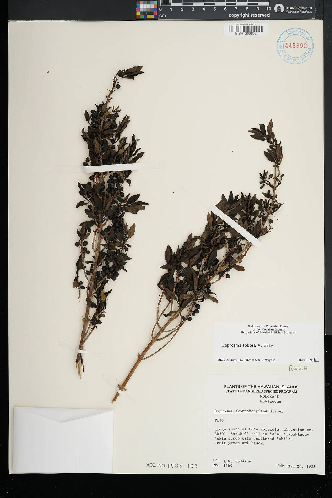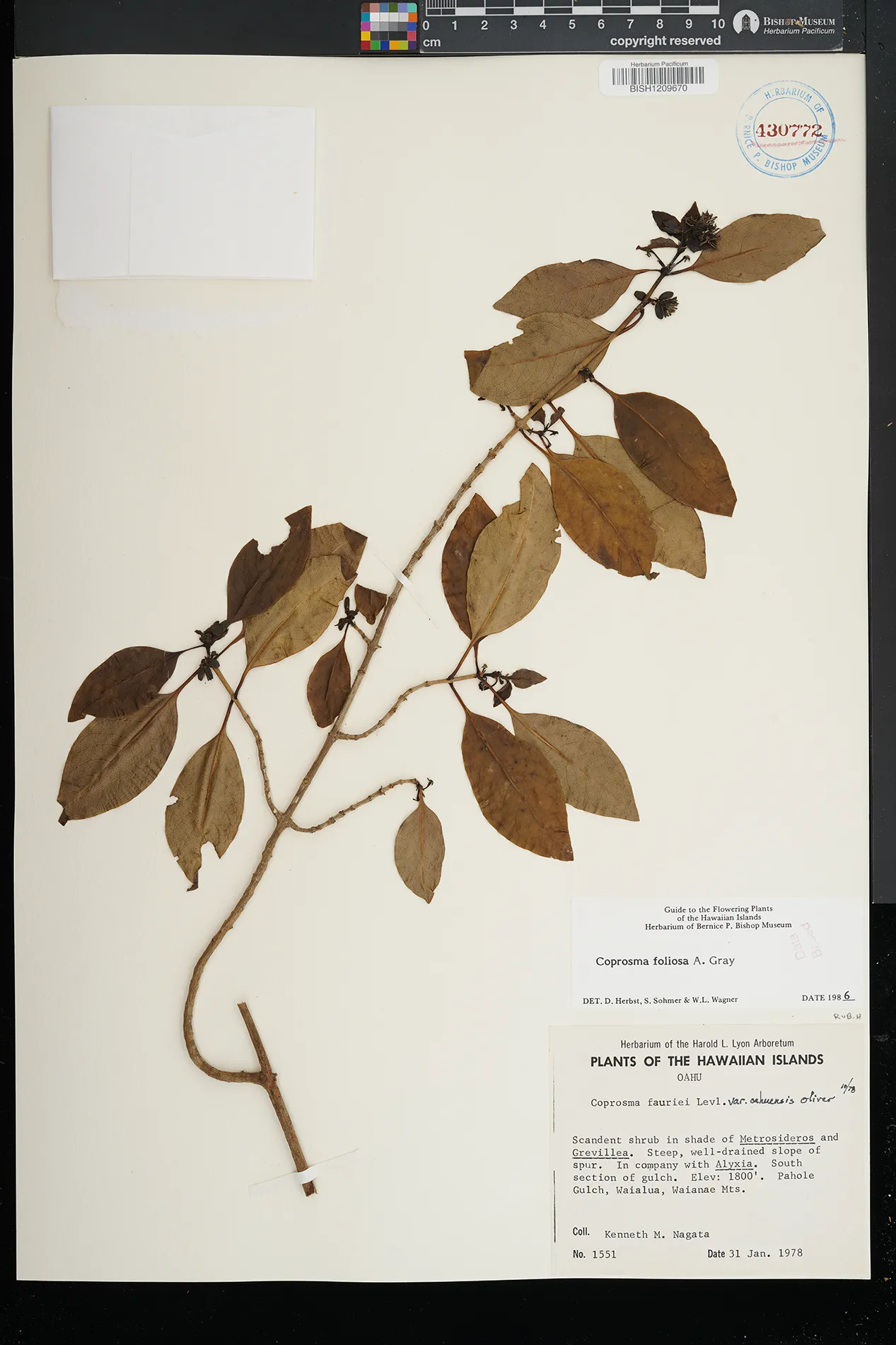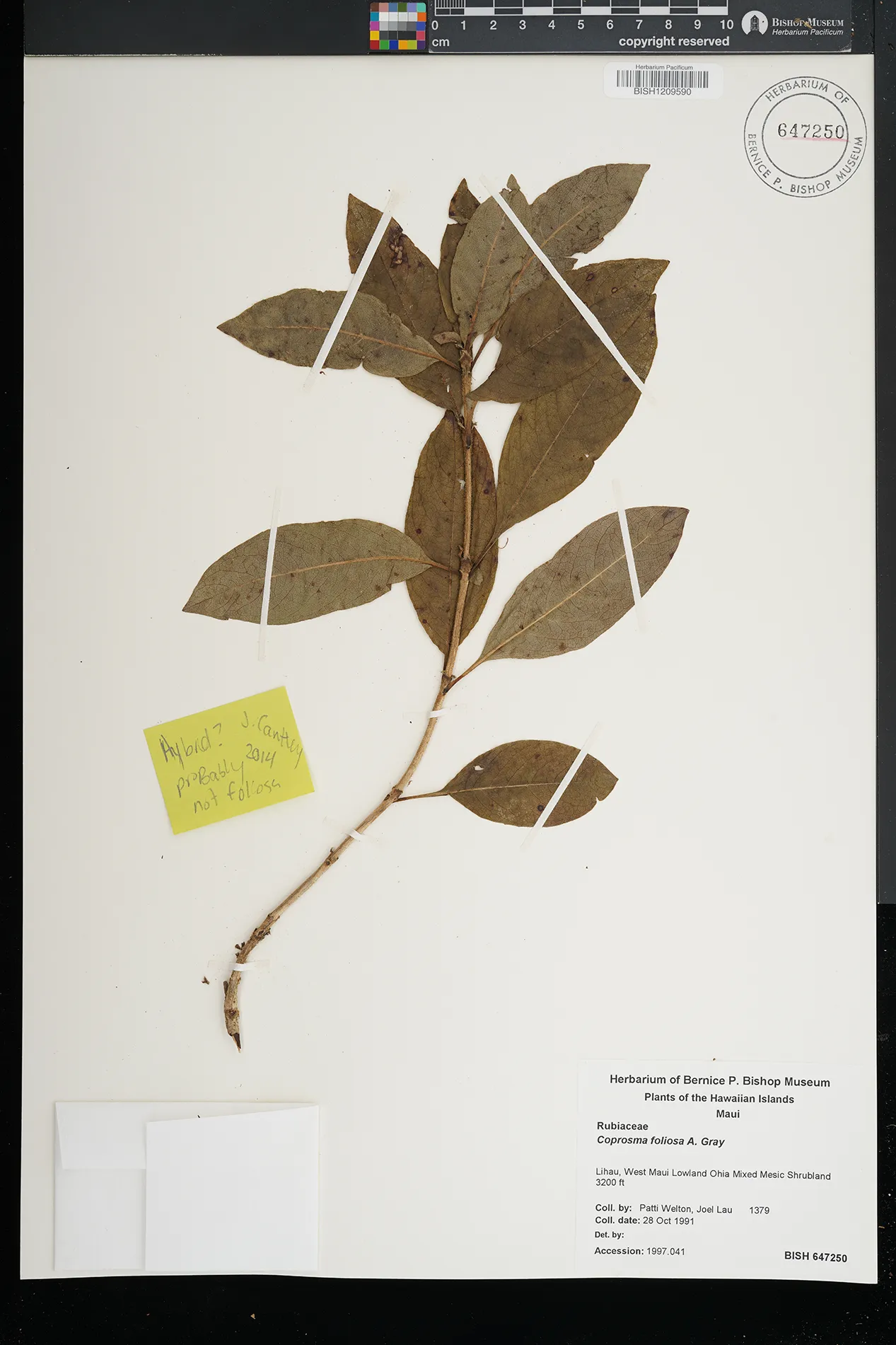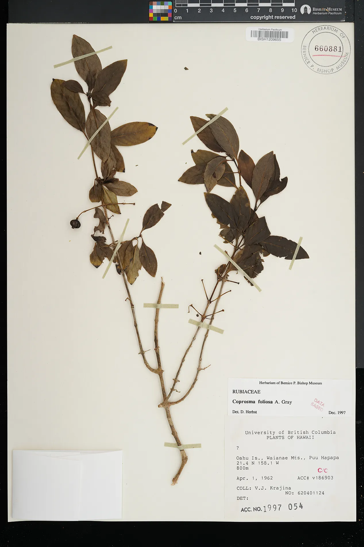 Metrosideros-Acacia-Alphitonia montane mesic forest with Euphorbia atrococca, Myrsine lanaiensis, Dodonaea viscosa, Psychotria mariniana, Wikstroema furcata, Diospyros sandwicensis, Kadua affinis, Coprosma waimeae, C. foliosa, Polyscias kavaiensis, Anti |
