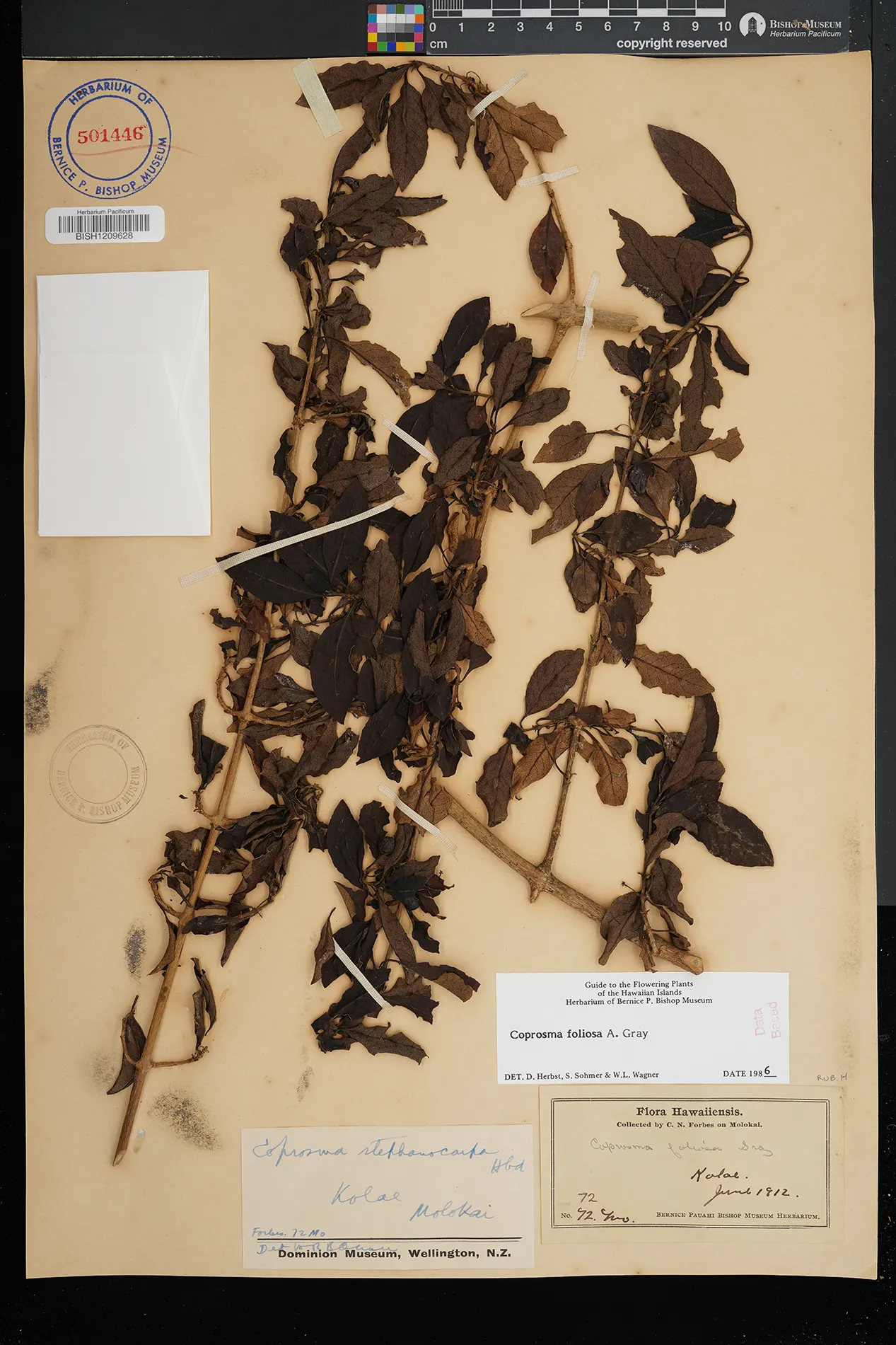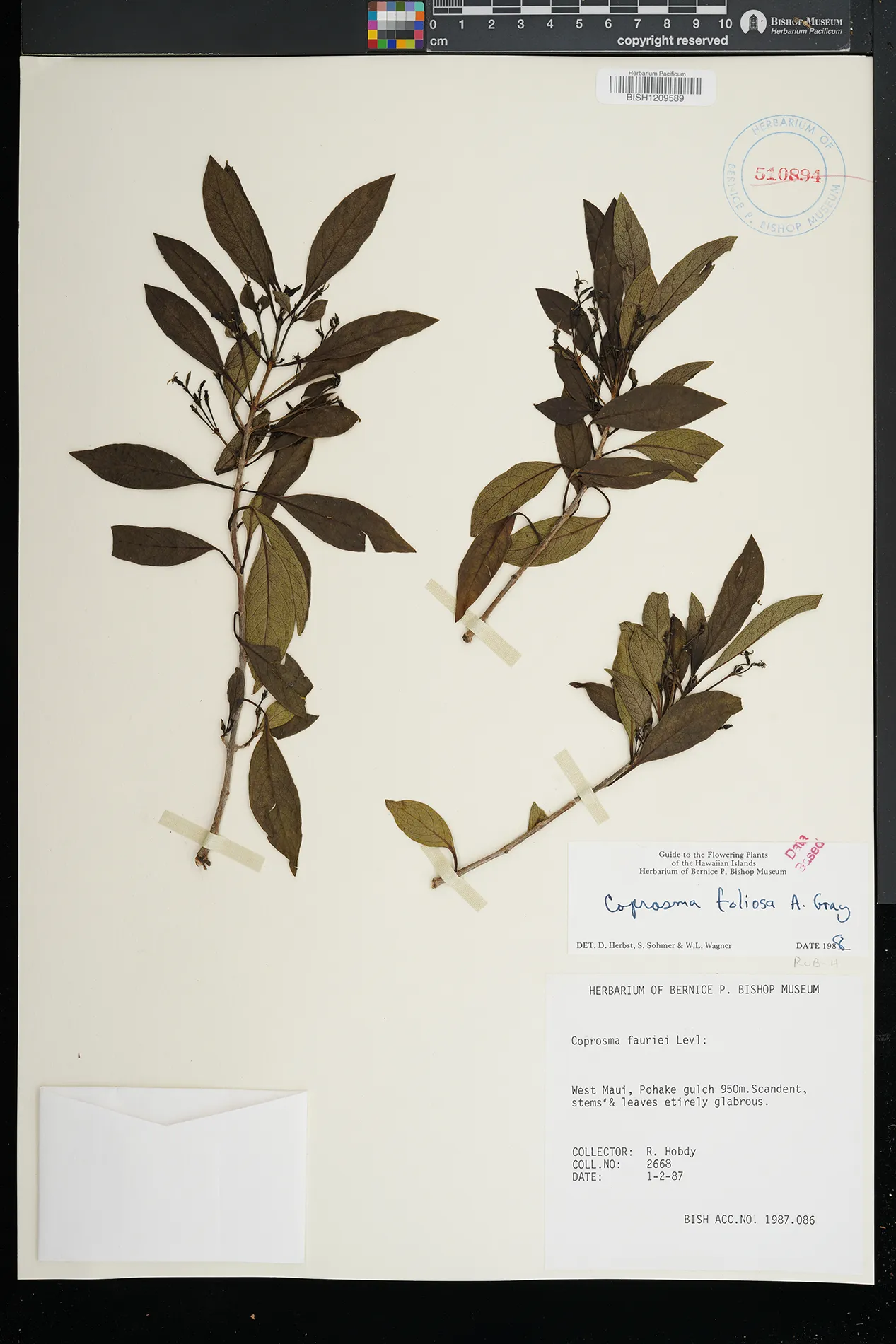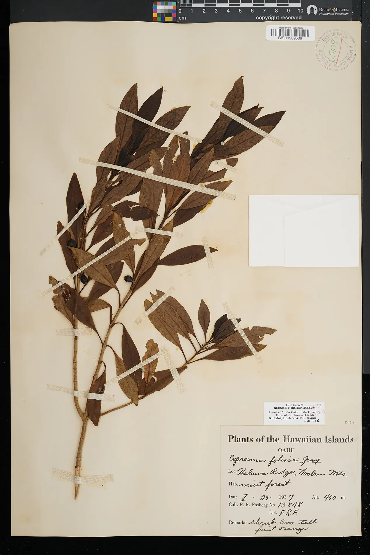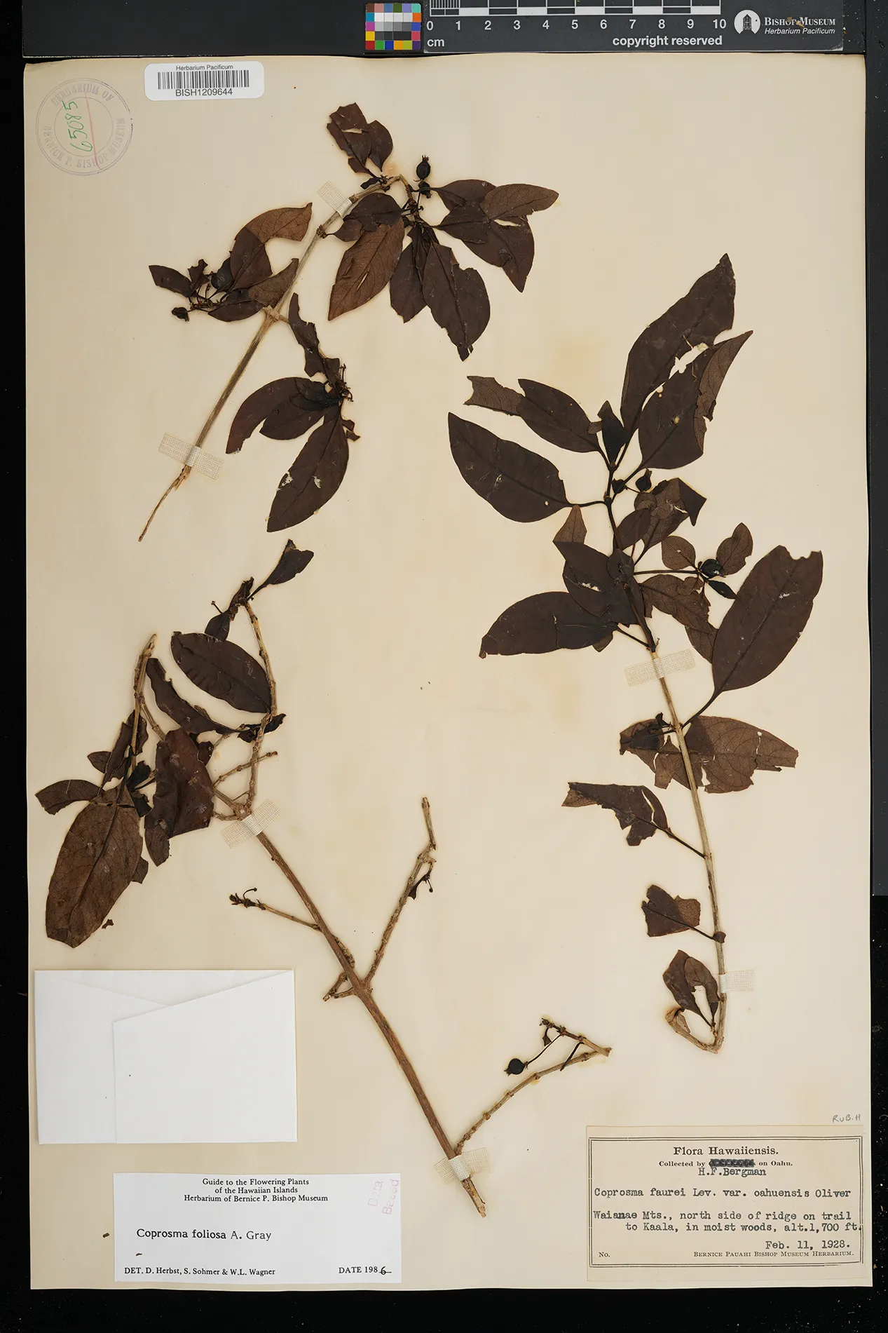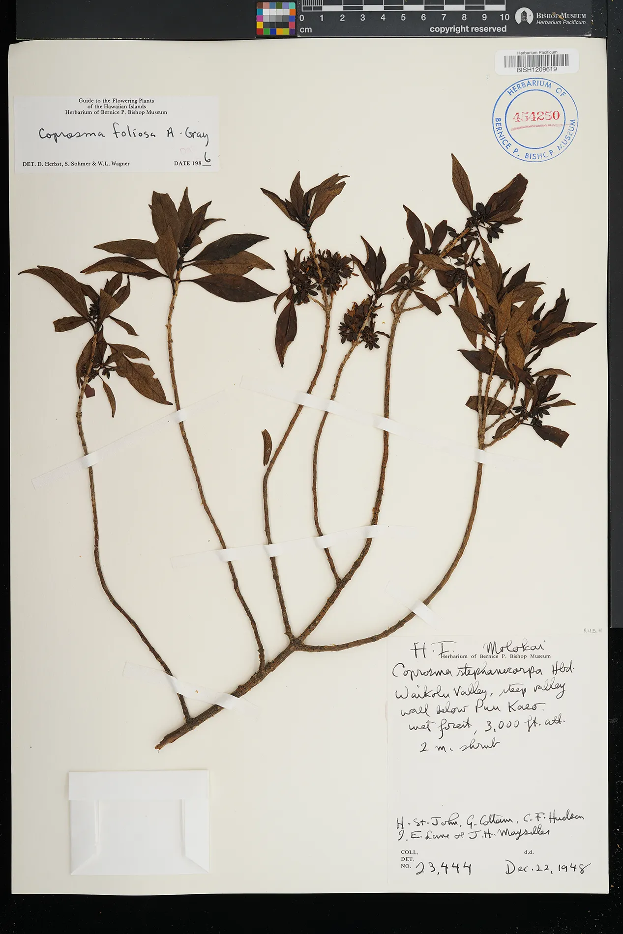 Metrosideros-Acacia-Alphitonia montane mesic forest with Euphorbia atrococca, Myrsine lanaiensis, Dodonaea viscosa, Psychotria mariniana, Wikstroema furcata, Diospyros sandwicensis, Kadua affinis, Coprosma waimeae, C. foliosa, Polyscias kavaiensis, Anti |