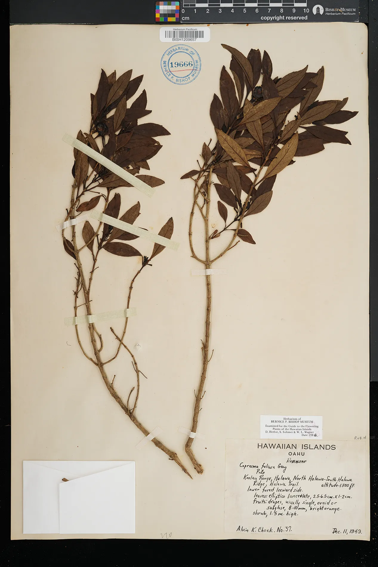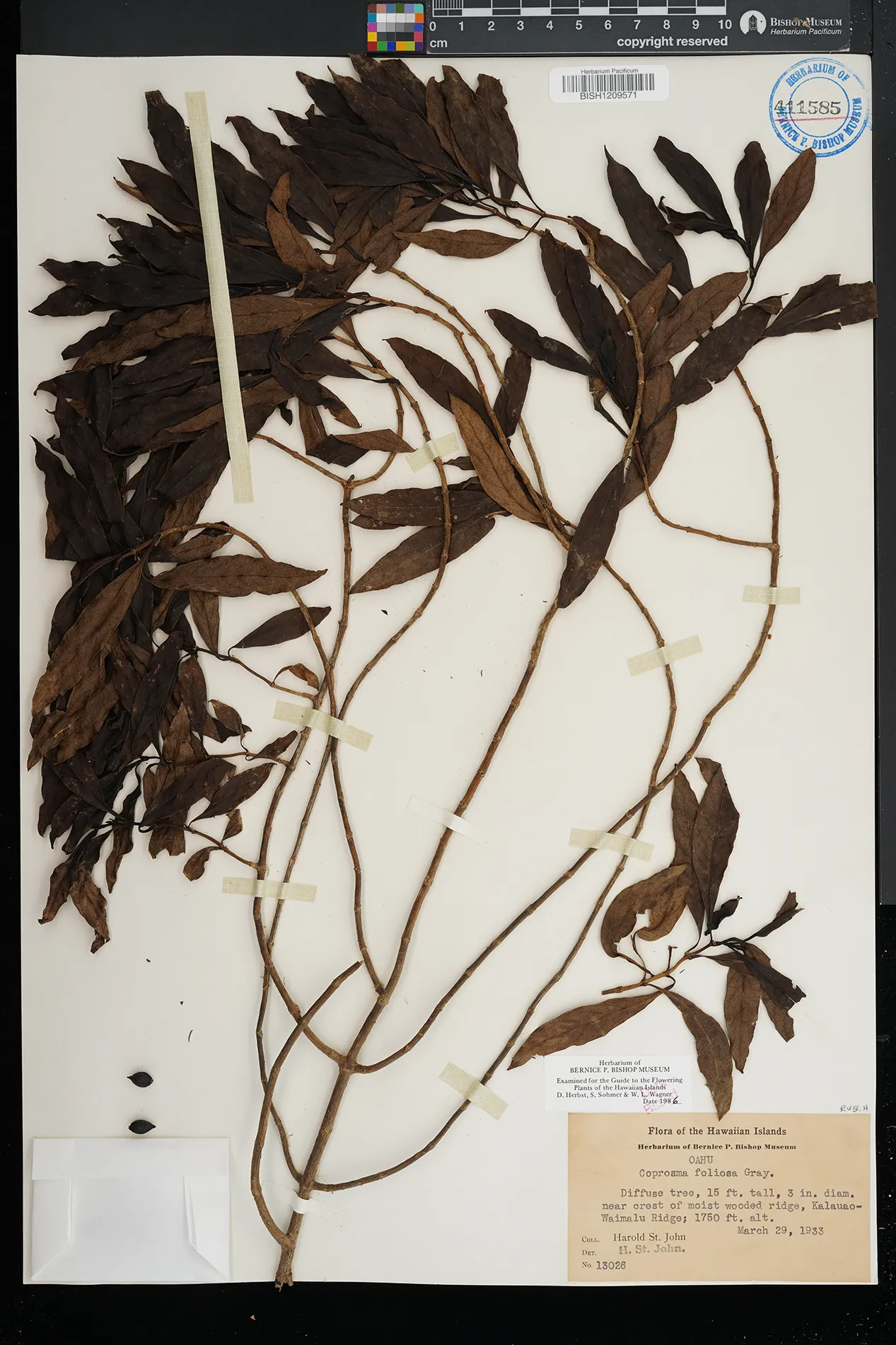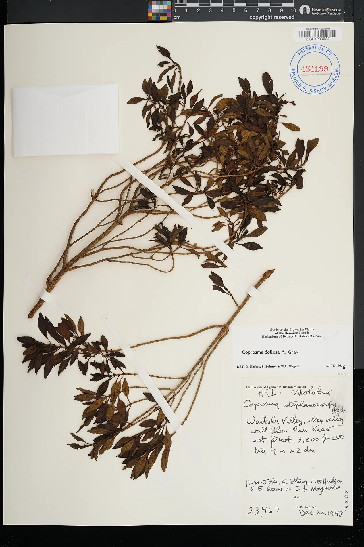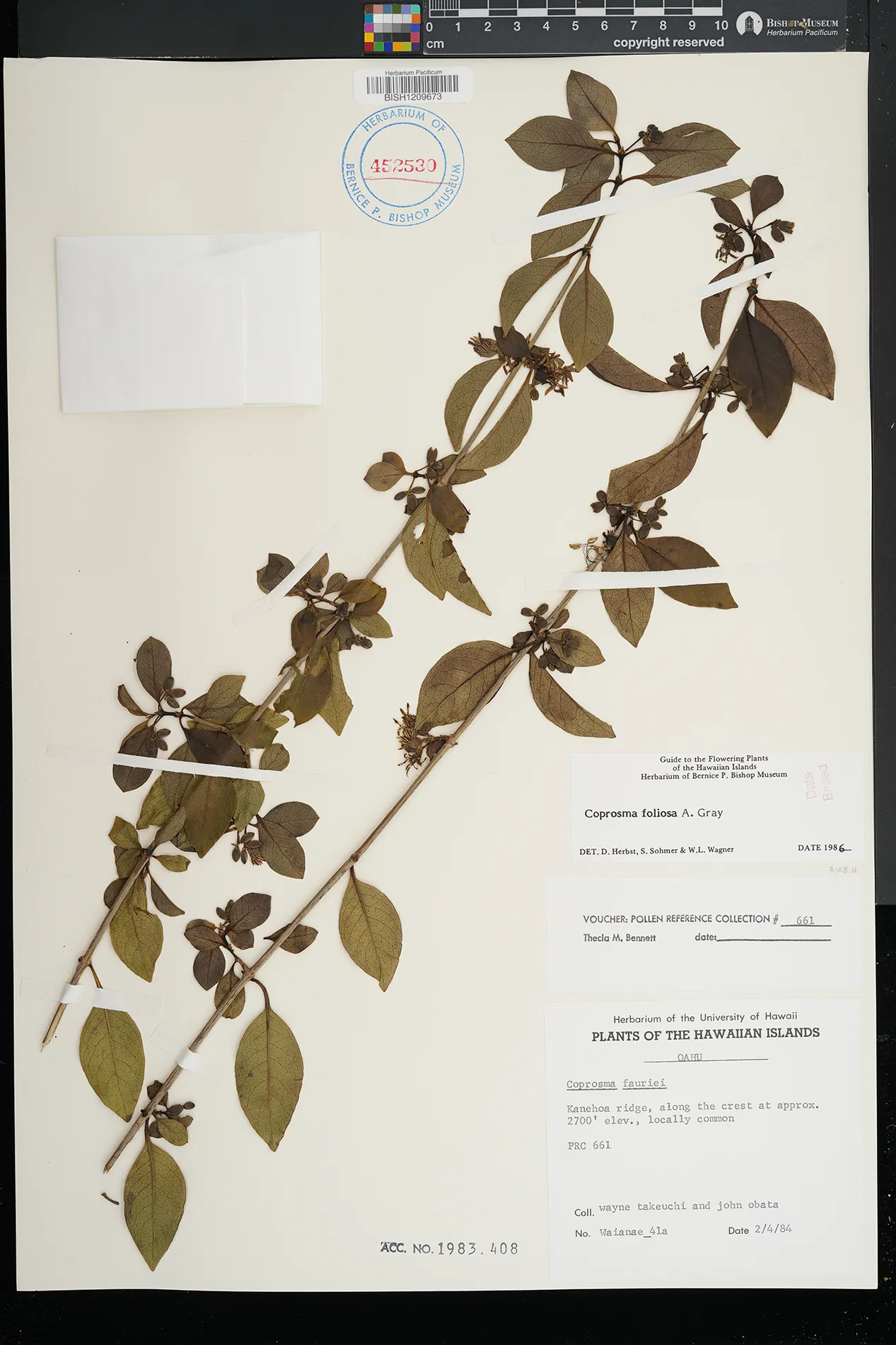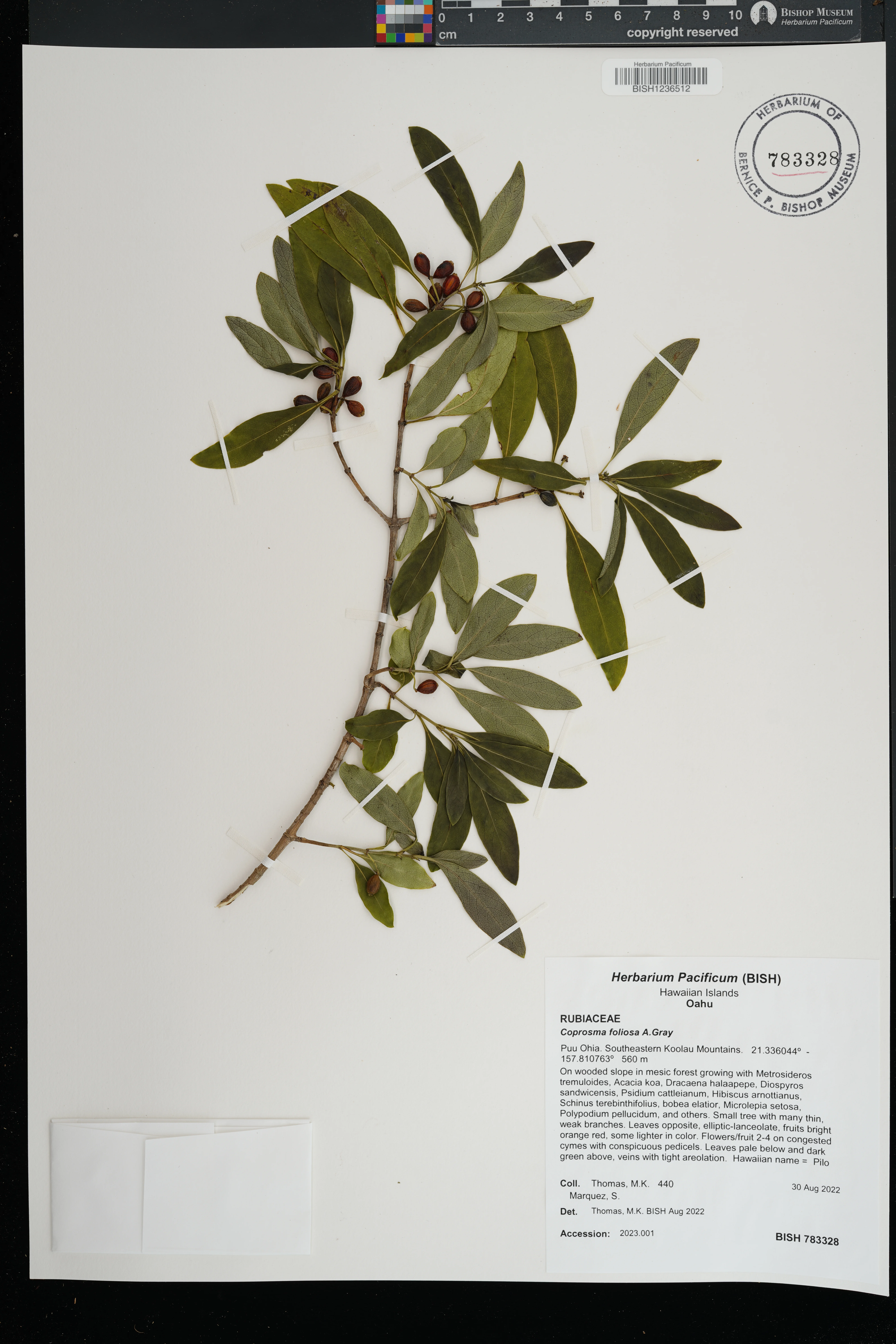 Metrosideros-Acacia-Alphitonia montane mesic forest with Euphorbia atrococca, Myrsine lanaiensis, Dodonaea viscosa, Psychotria mariniana, Wikstroema furcata, Diospyros sandwicensis, Kadua affinis, Coprosma waimeae, C. foliosa, Polyscias kavaiensis, Anti |