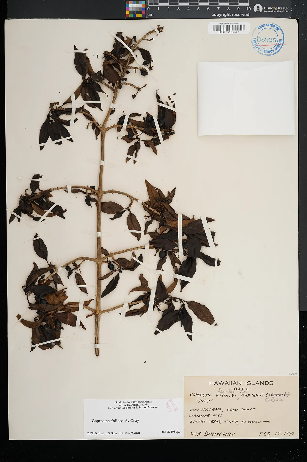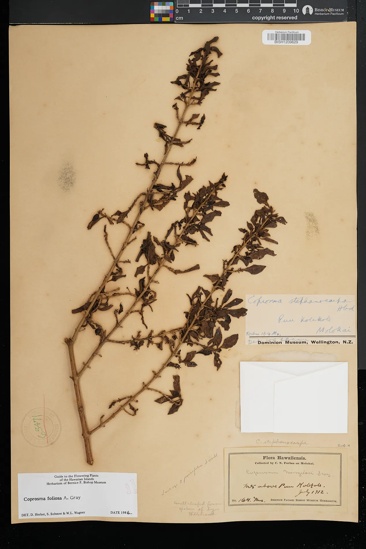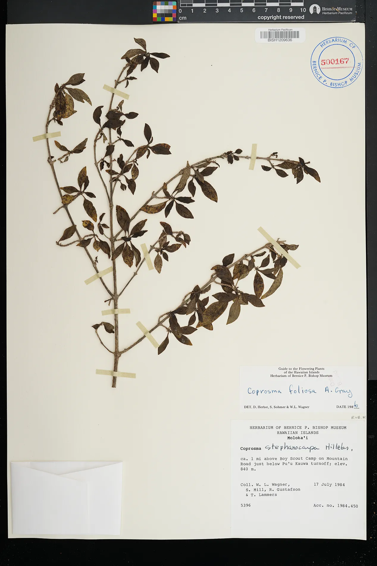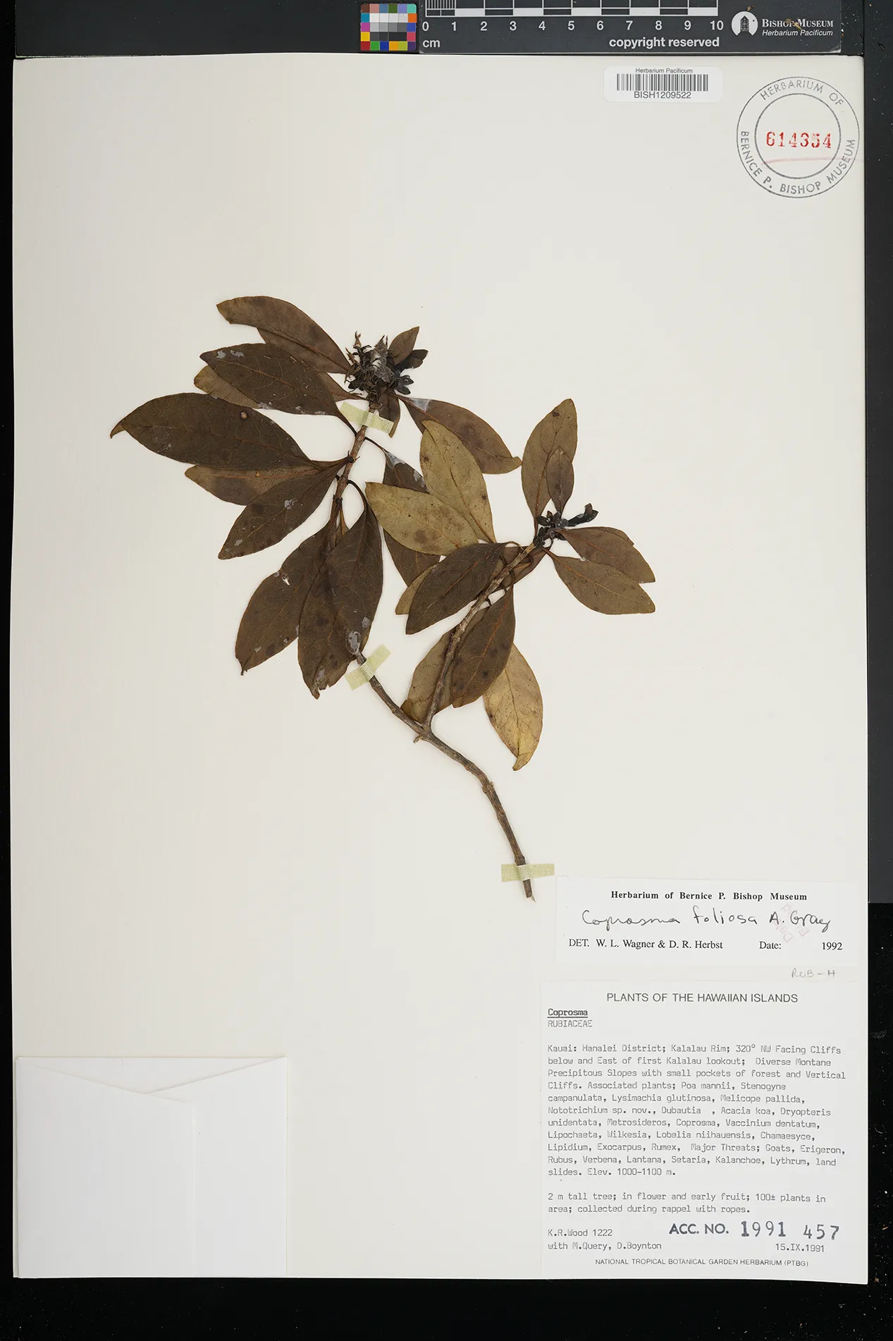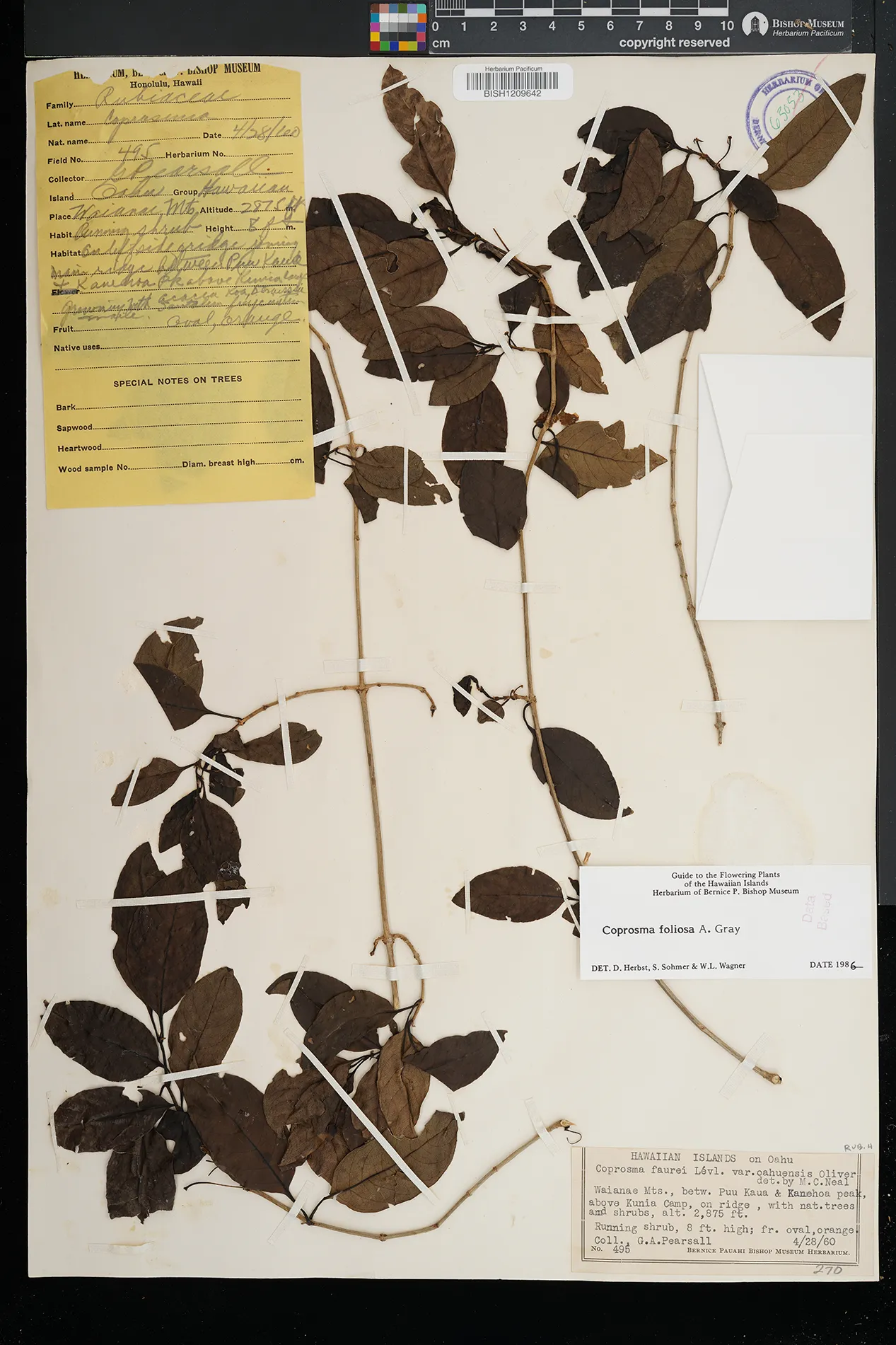 Metrosideros-Acacia-Alphitonia montane mesic forest with Euphorbia atrococca, Myrsine lanaiensis, Dodonaea viscosa, Psychotria mariniana, Wikstroema furcata, Diospyros sandwicensis, Kadua affinis, Coprosma waimeae, C. foliosa, Polyscias kavaiensis, Anti |