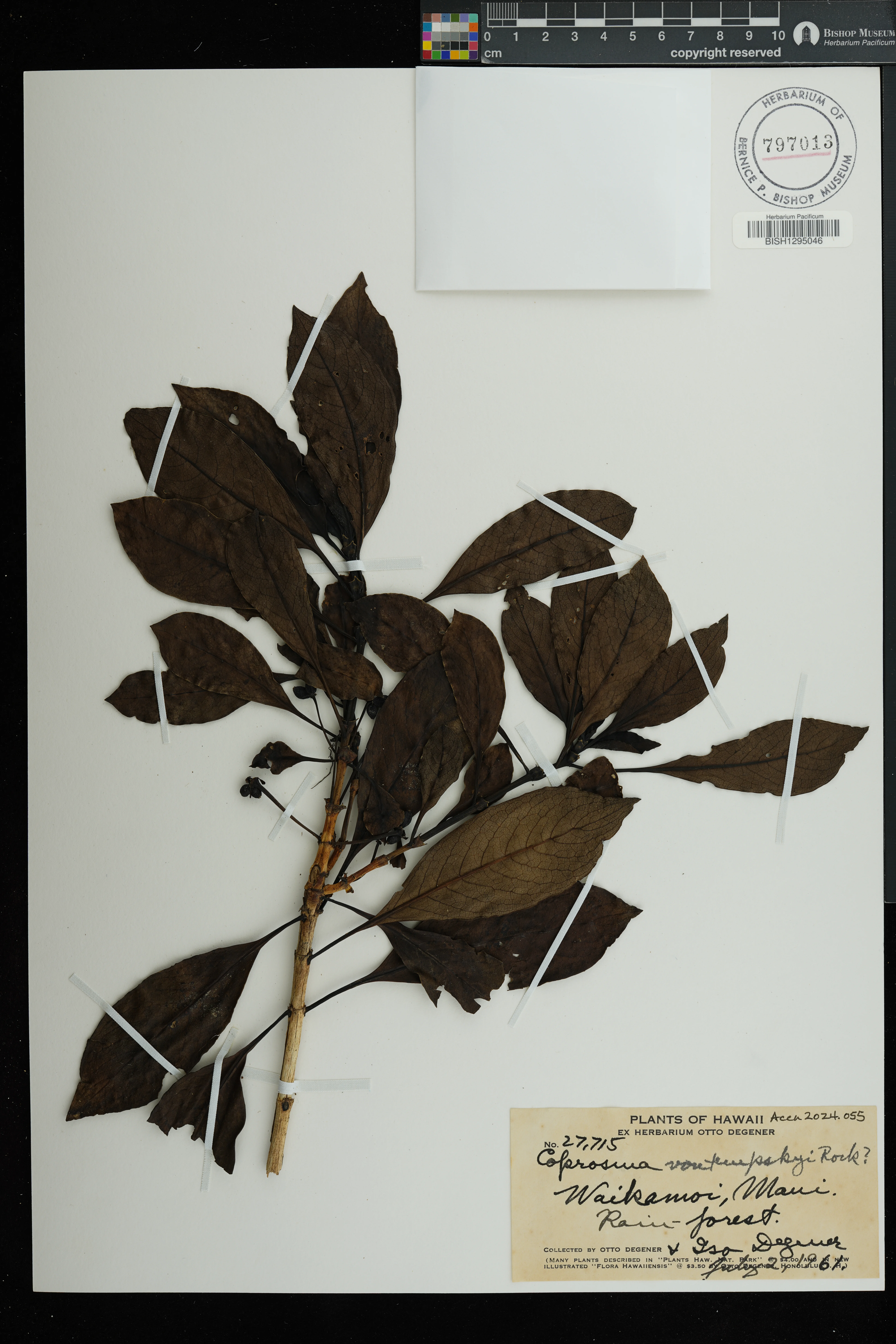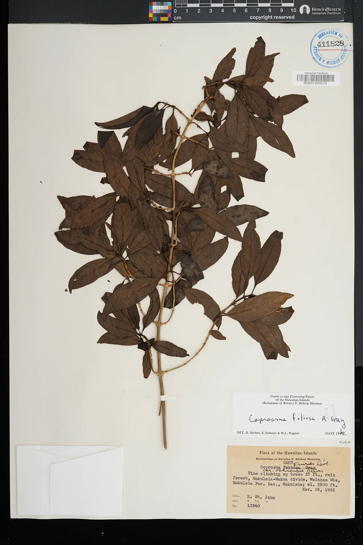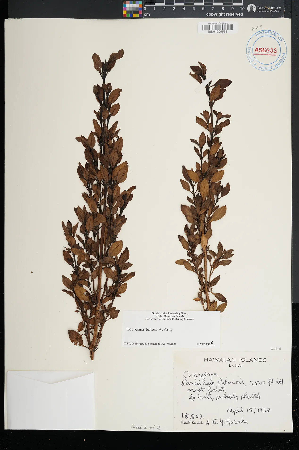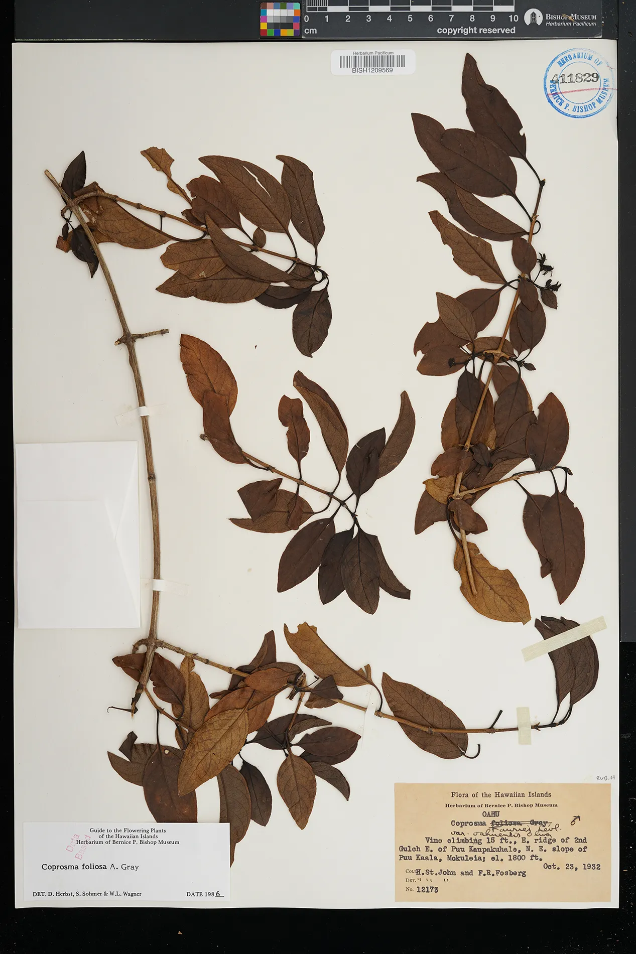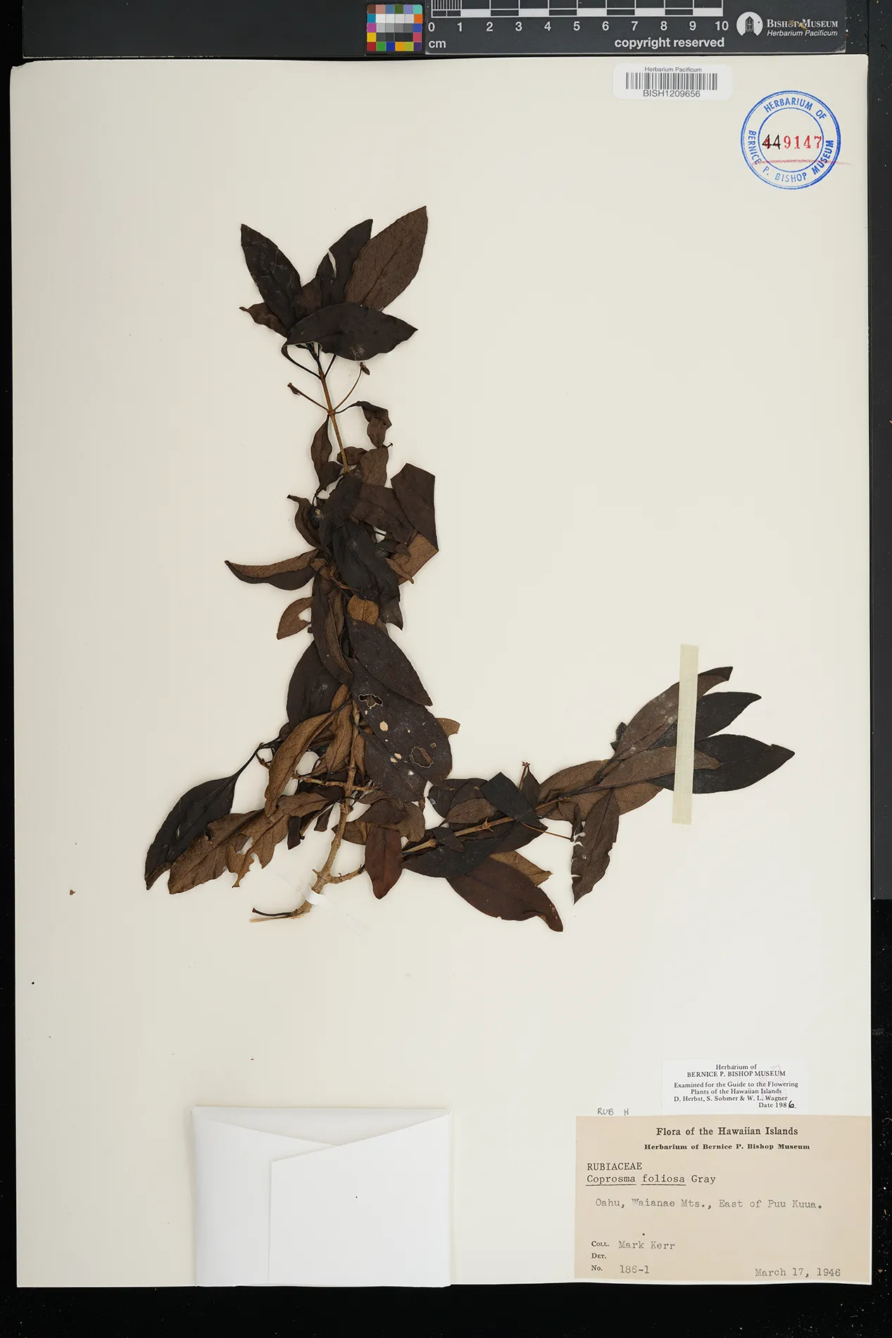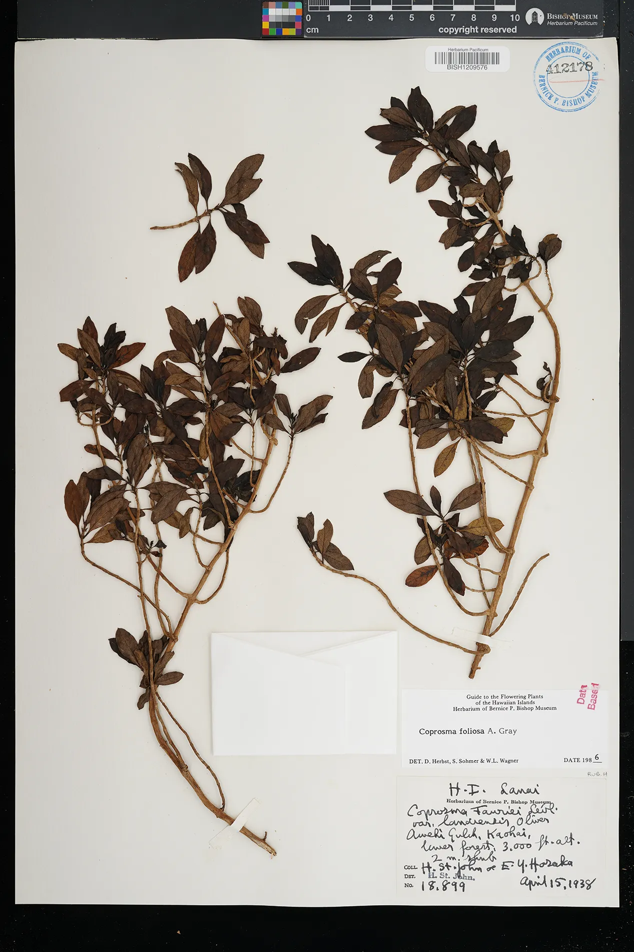 Metrosideros-Acacia-Alphitonia montane mesic forest with Euphorbia atrococca, Myrsine lanaiensis, Dodonaea viscosa, Psychotria mariniana, Wikstroema furcata, Diospyros sandwicensis, Kadua affinis, Coprosma waimeae, C. foliosa, Polyscias kavaiensis, Anti |