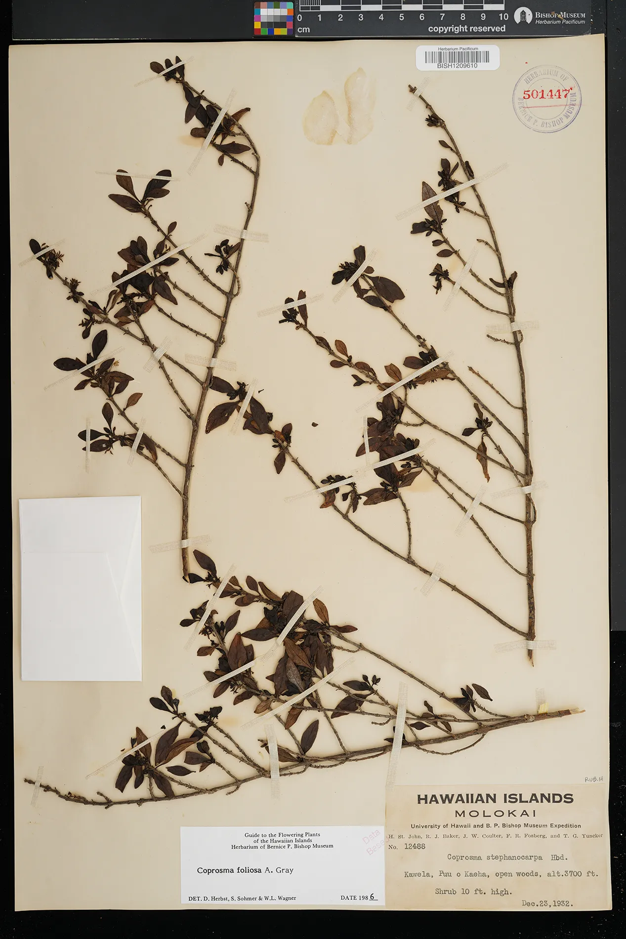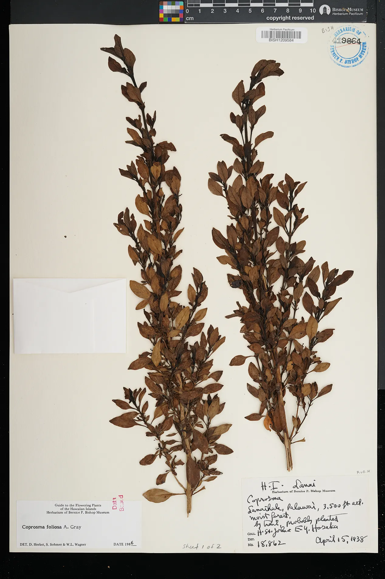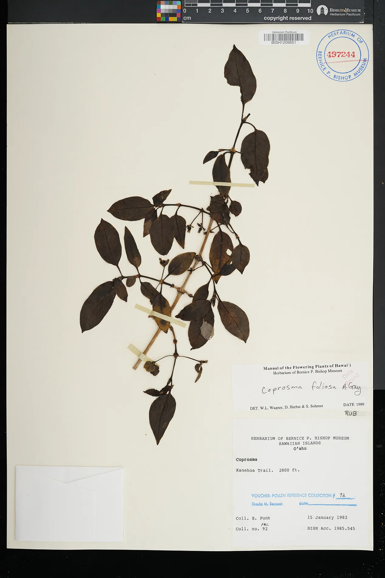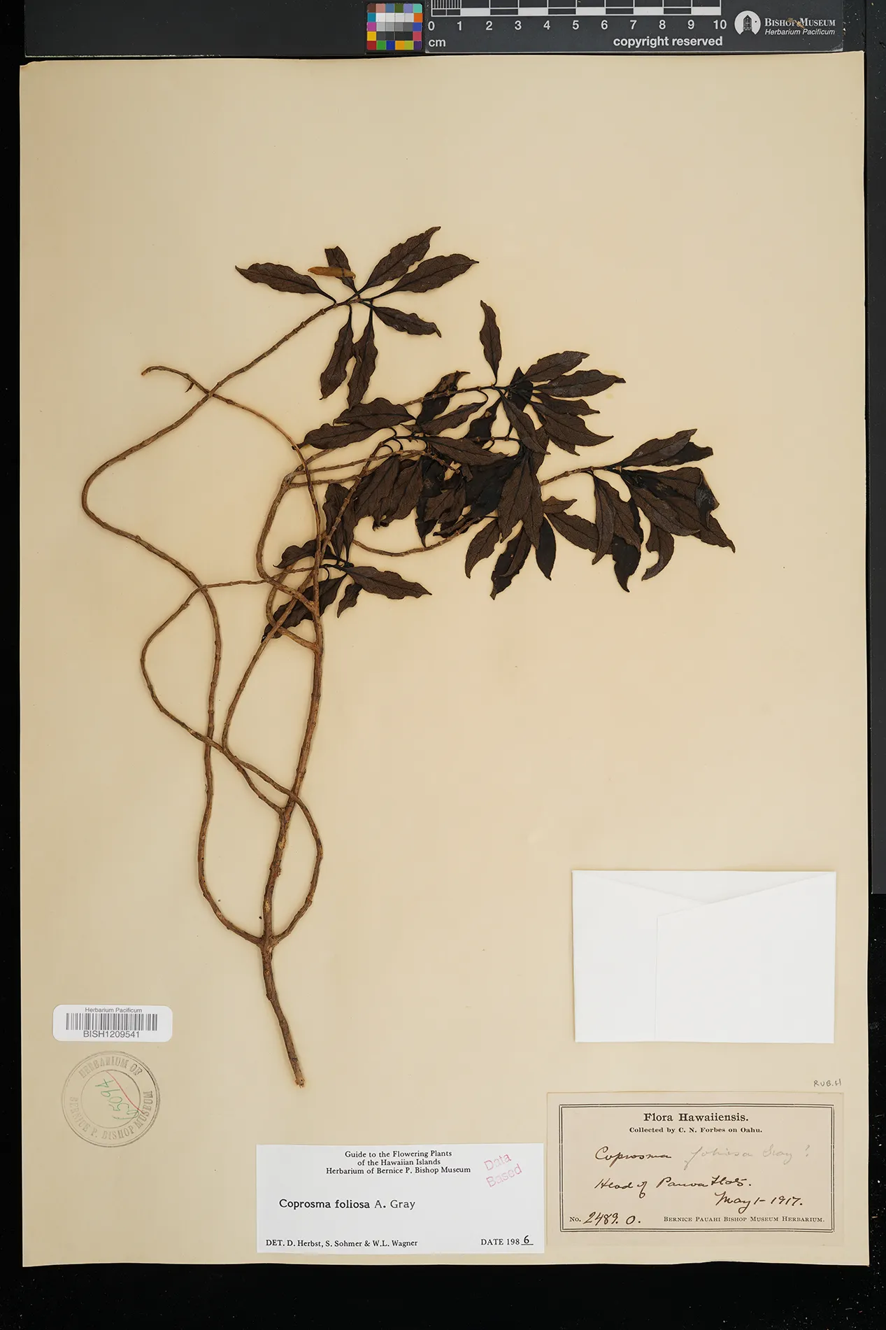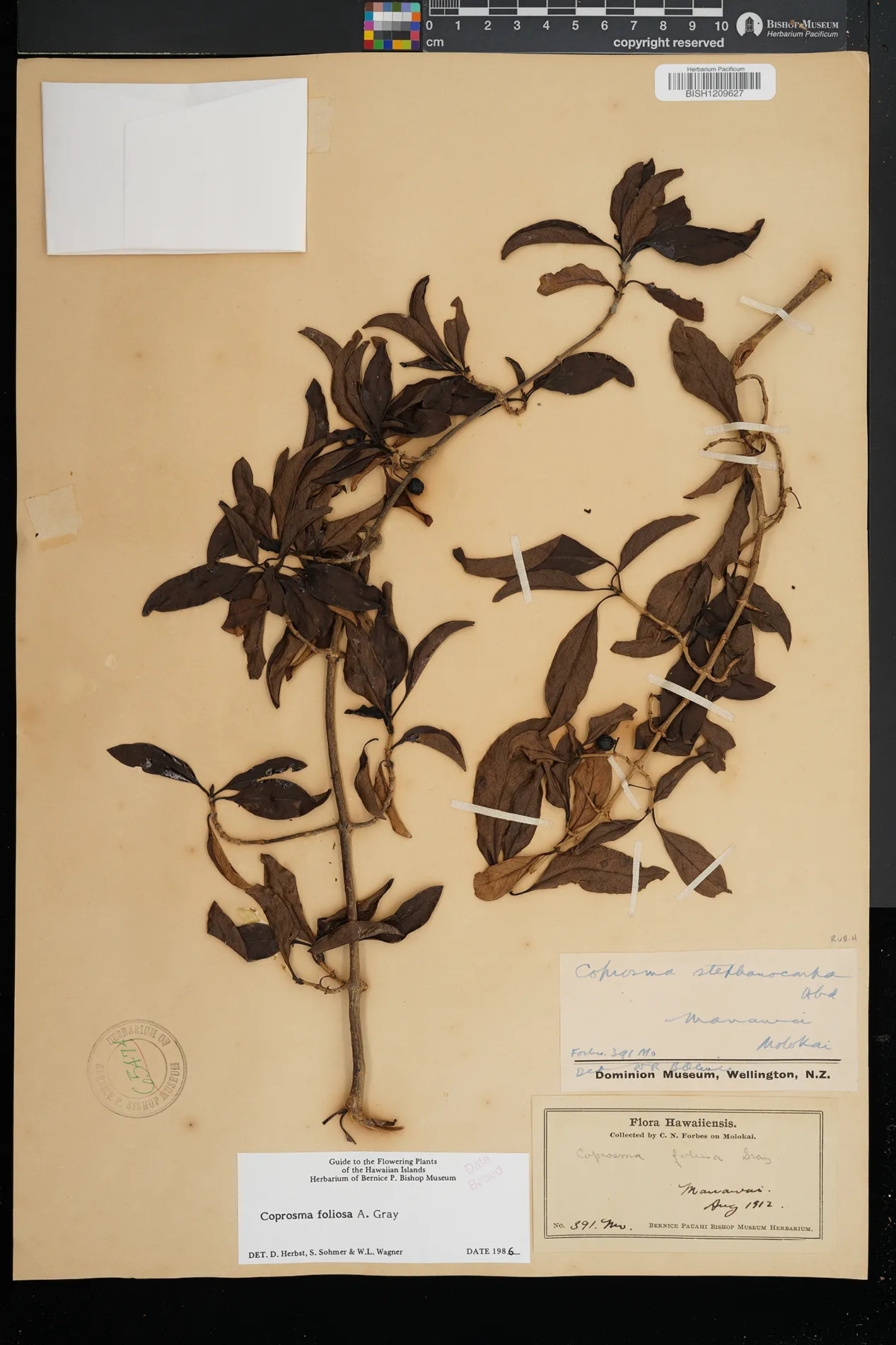 Metrosideros-Acacia-Alphitonia montane mesic forest with Euphorbia atrococca, Myrsine lanaiensis, Dodonaea viscosa, Psychotria mariniana, Wikstroema furcata, Diospyros sandwicensis, Kadua affinis, Coprosma waimeae, C. foliosa, Polyscias kavaiensis, Anti |