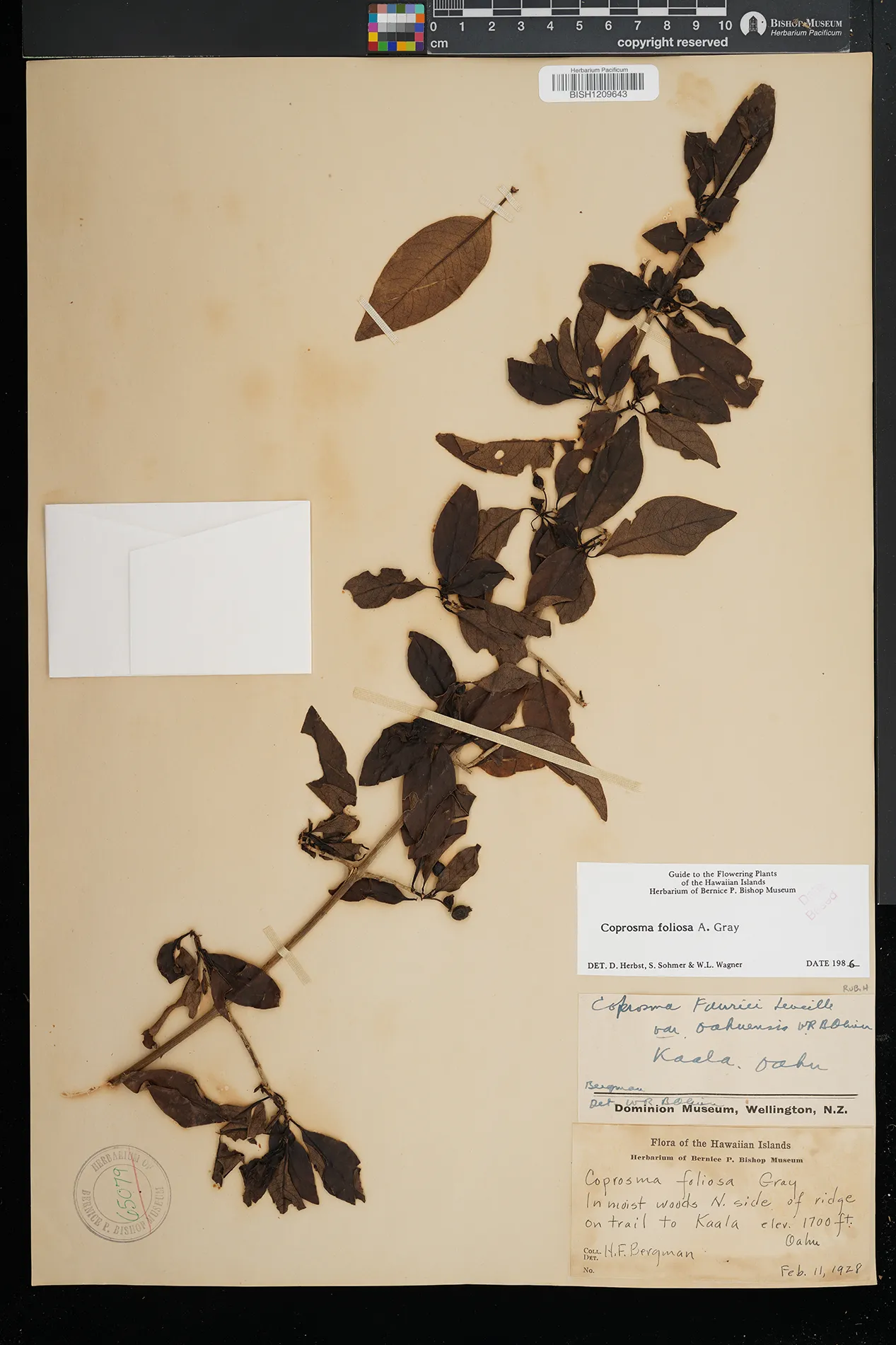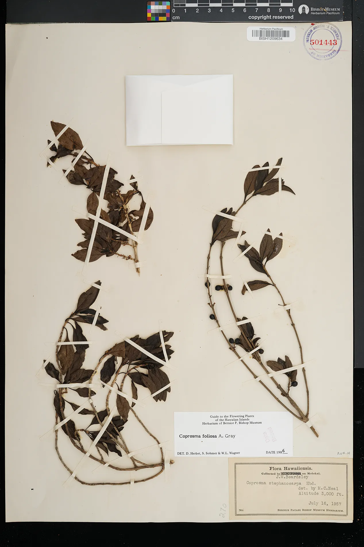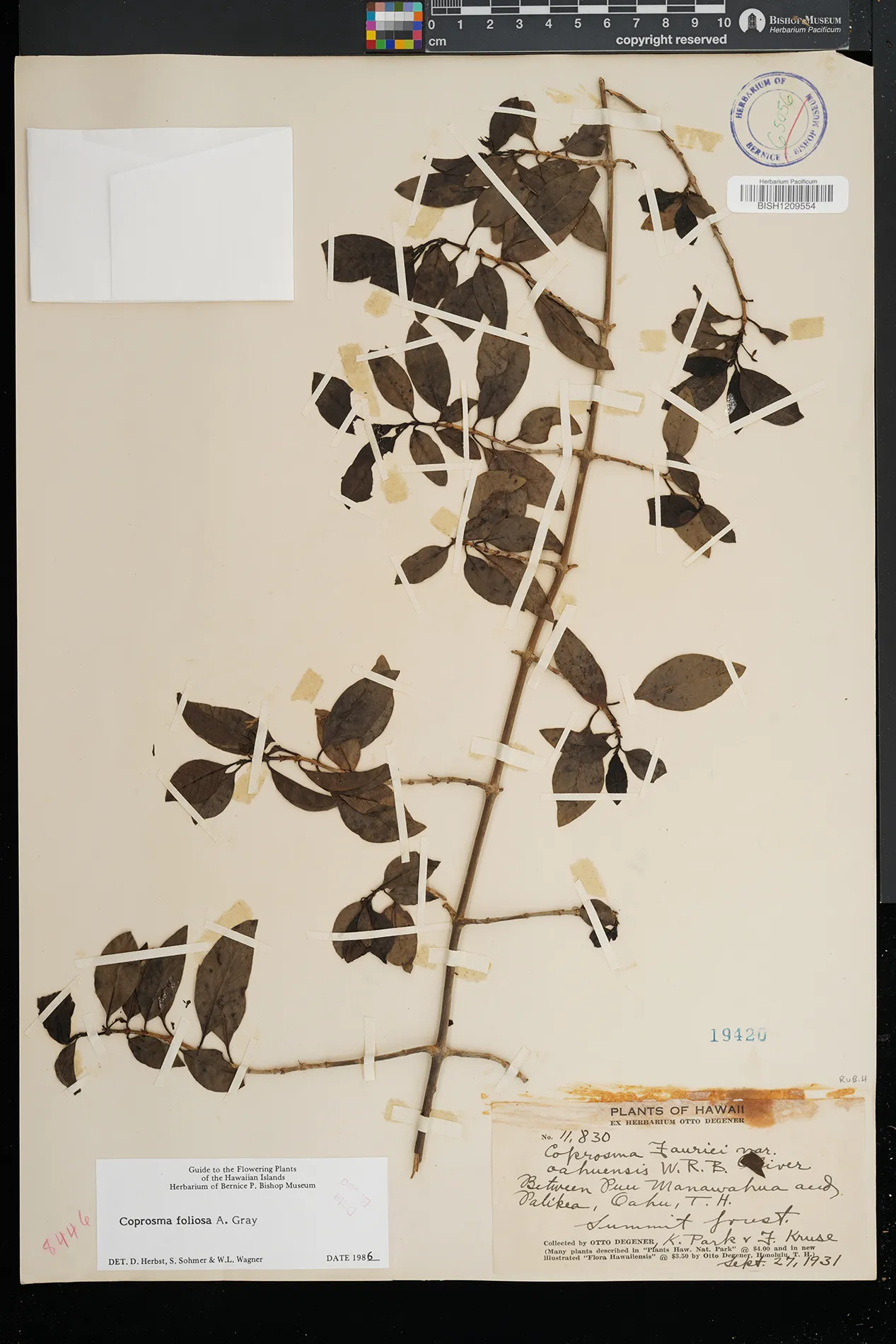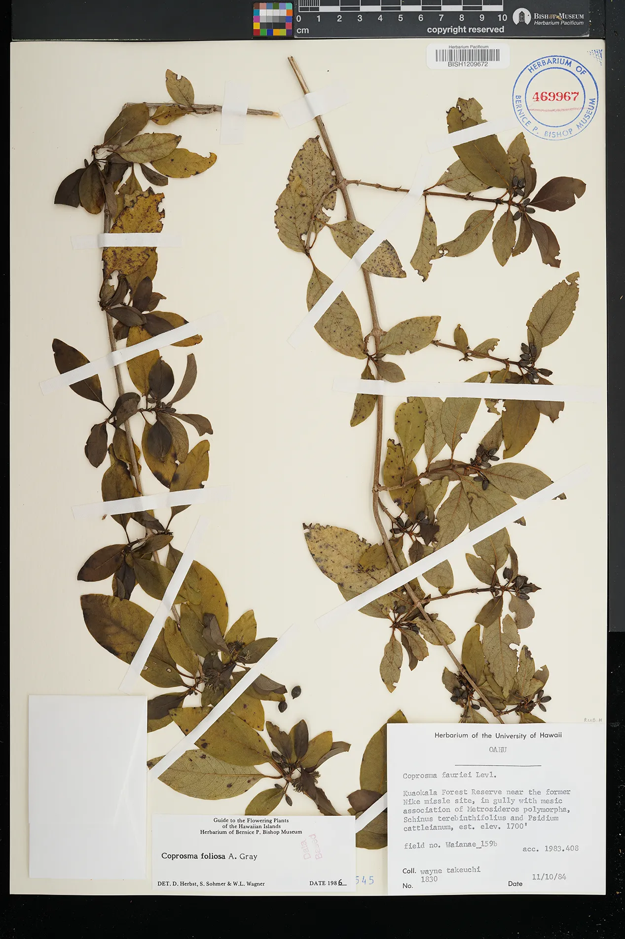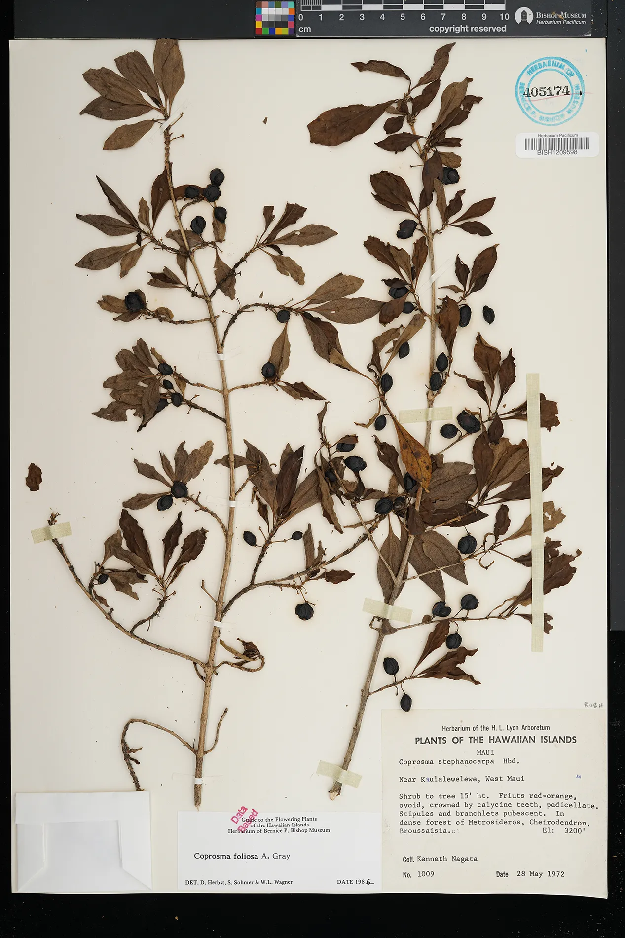 Metrosideros-Acacia-Alphitonia montane mesic forest with Euphorbia atrococca, Myrsine lanaiensis, Dodonaea viscosa, Psychotria mariniana, Wikstroema furcata, Diospyros sandwicensis, Kadua affinis, Coprosma waimeae, C. foliosa, Polyscias kavaiensis, Anti |