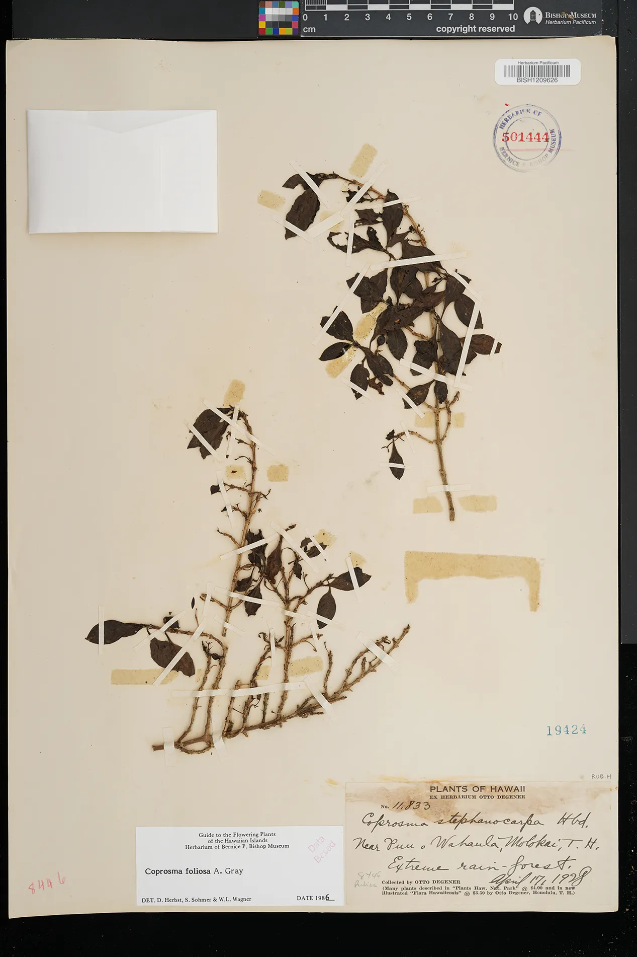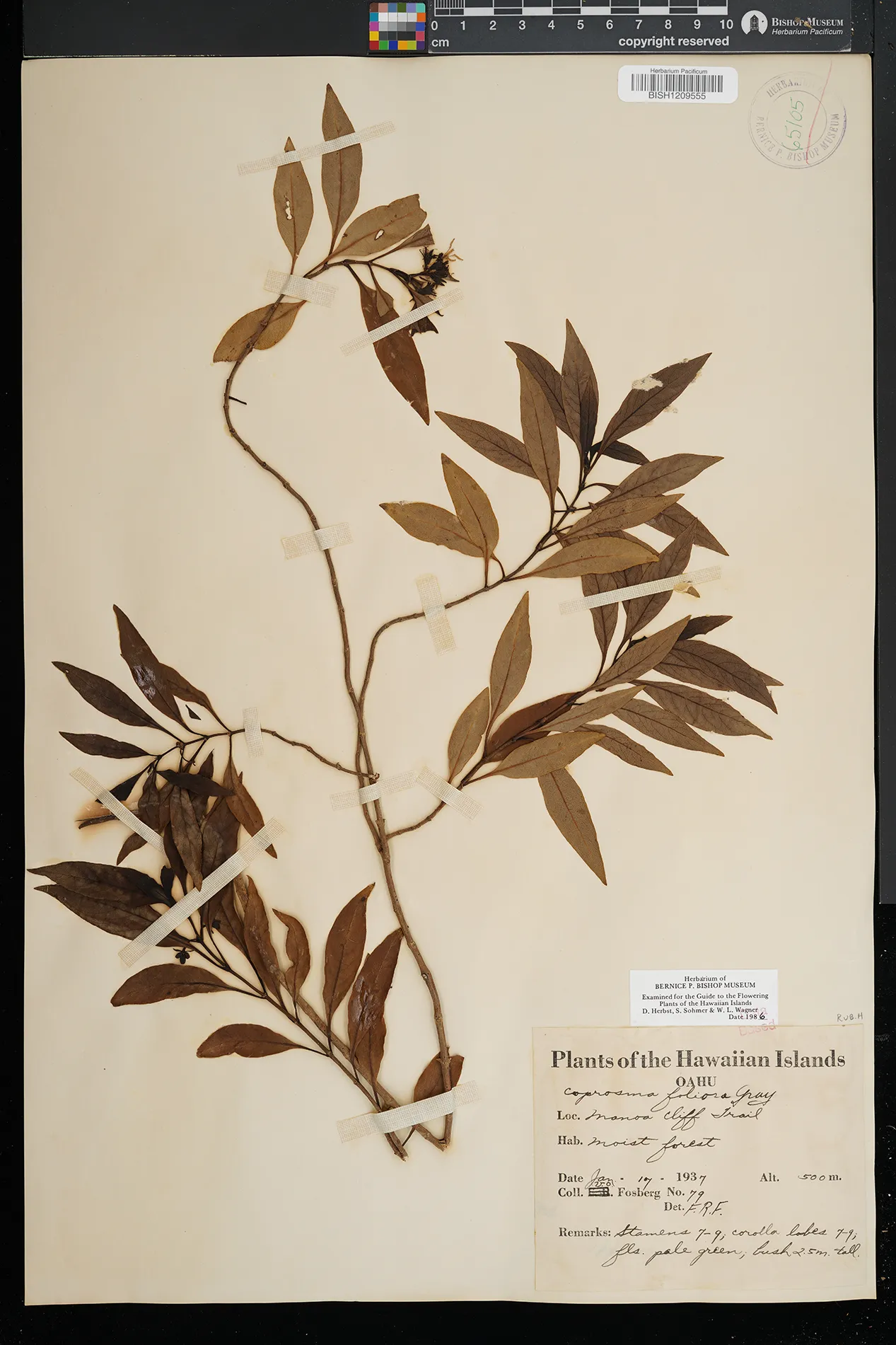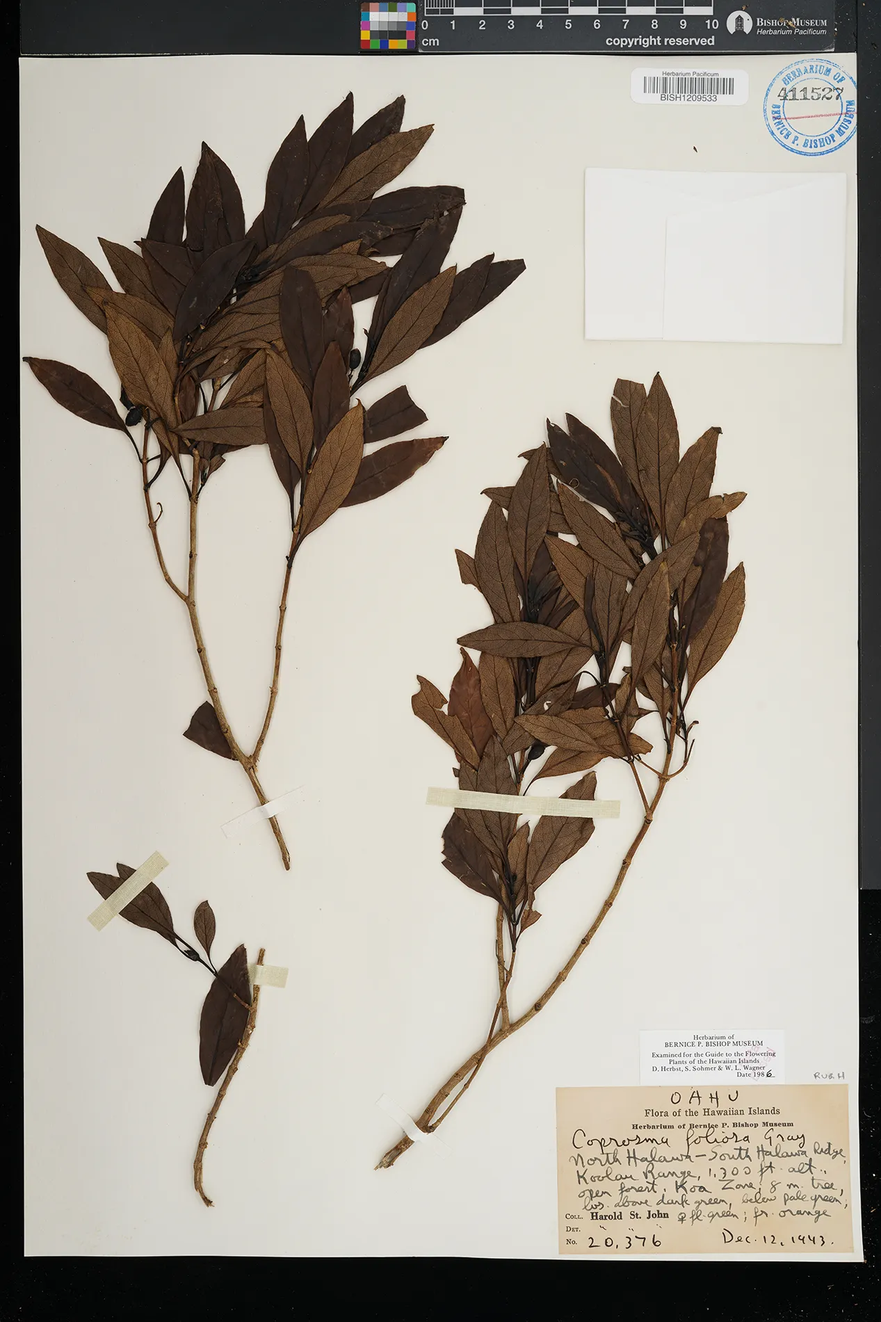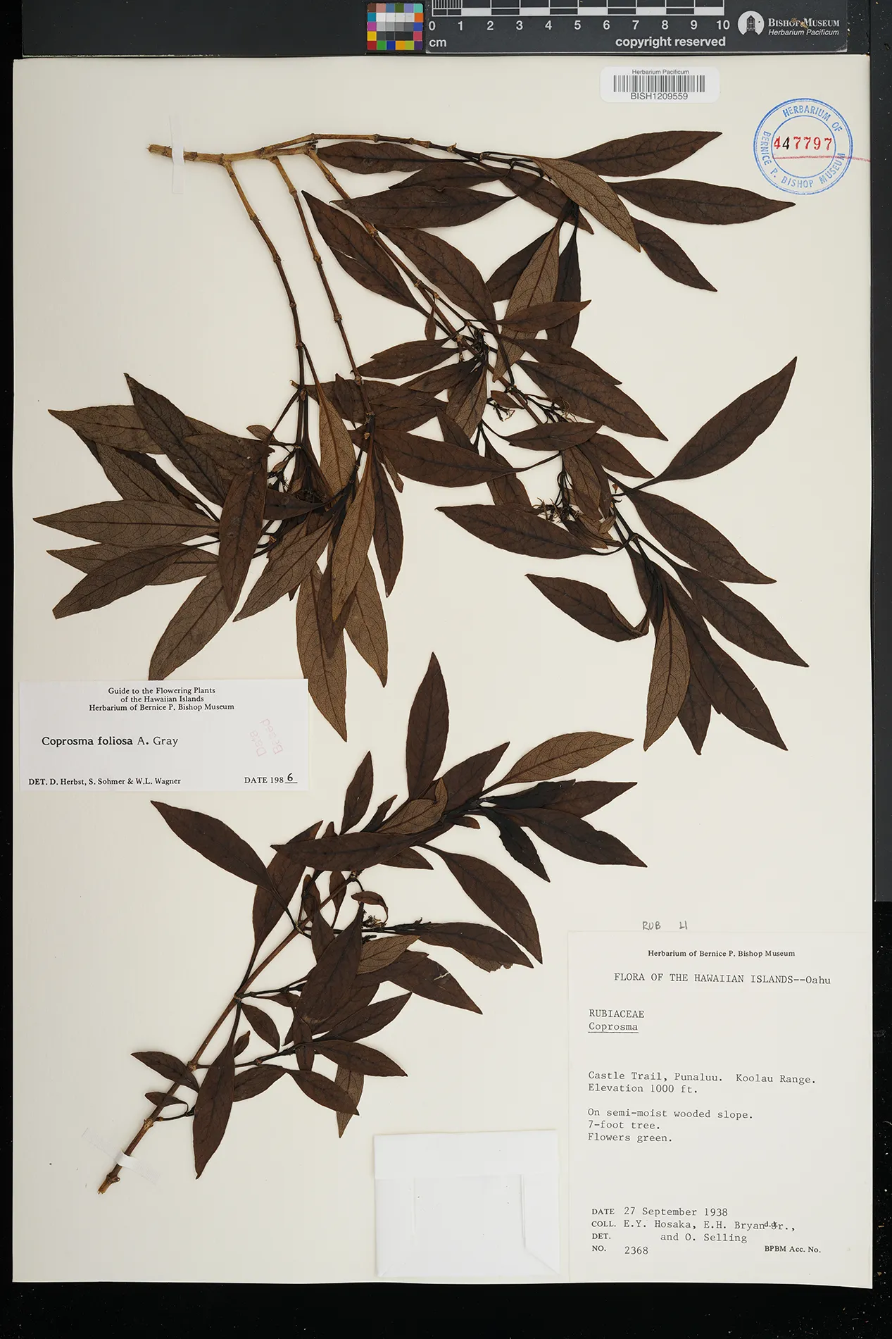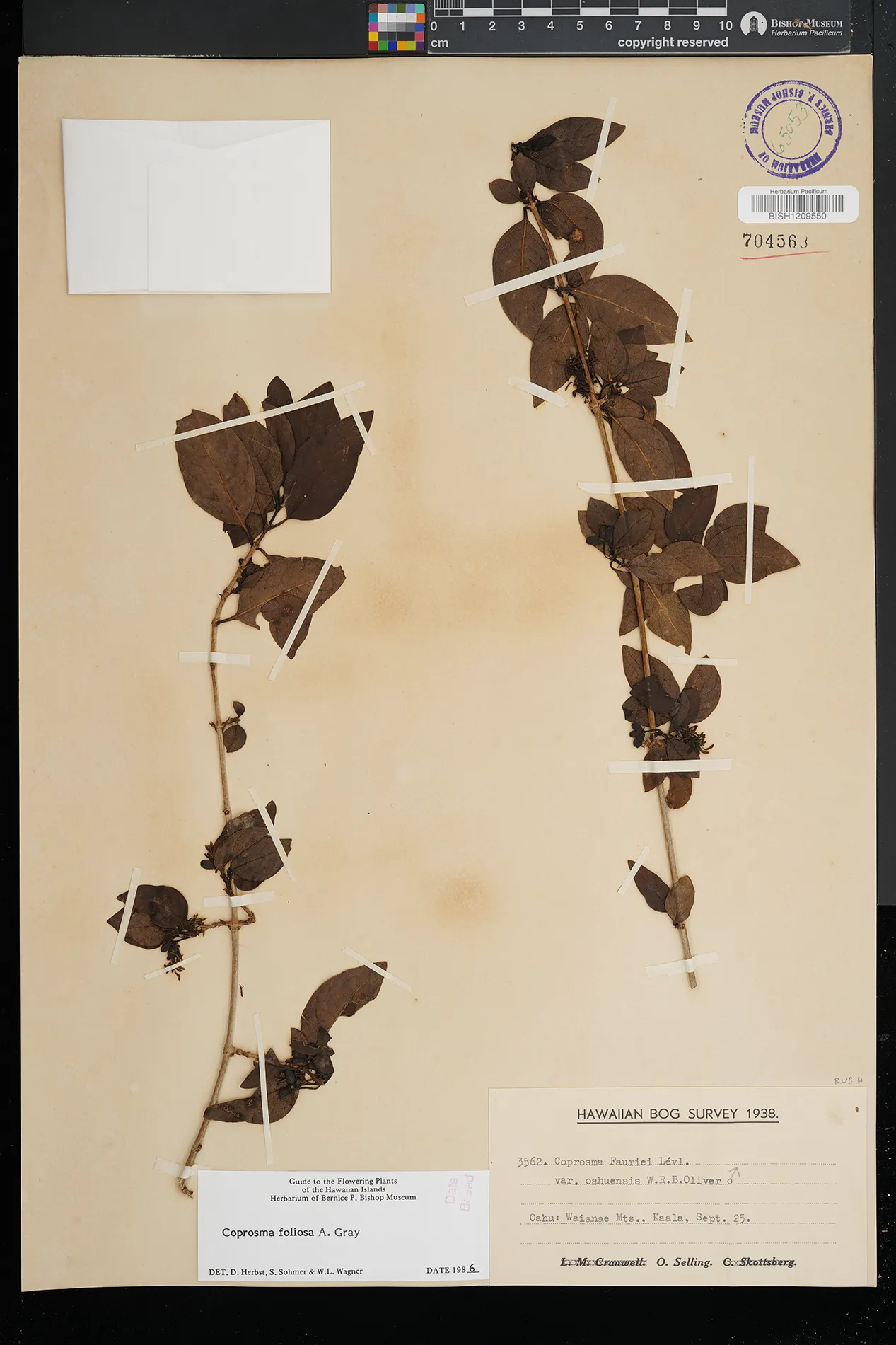 Metrosideros-Acacia-Alphitonia montane mesic forest with Euphorbia atrococca, Myrsine lanaiensis, Dodonaea viscosa, Psychotria mariniana, Wikstroema furcata, Diospyros sandwicensis, Kadua affinis, Coprosma waimeae, C. foliosa, Polyscias kavaiensis, Anti |