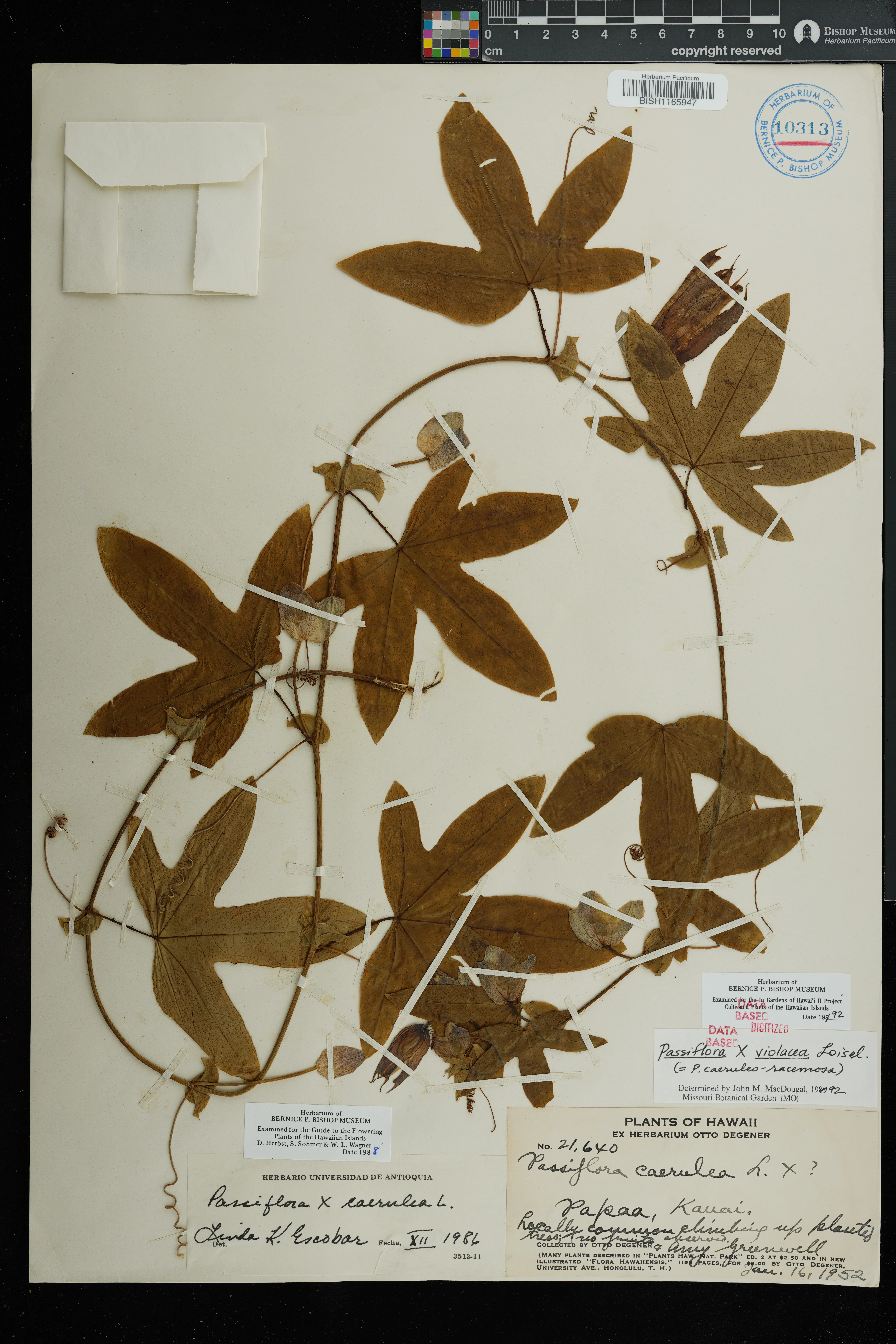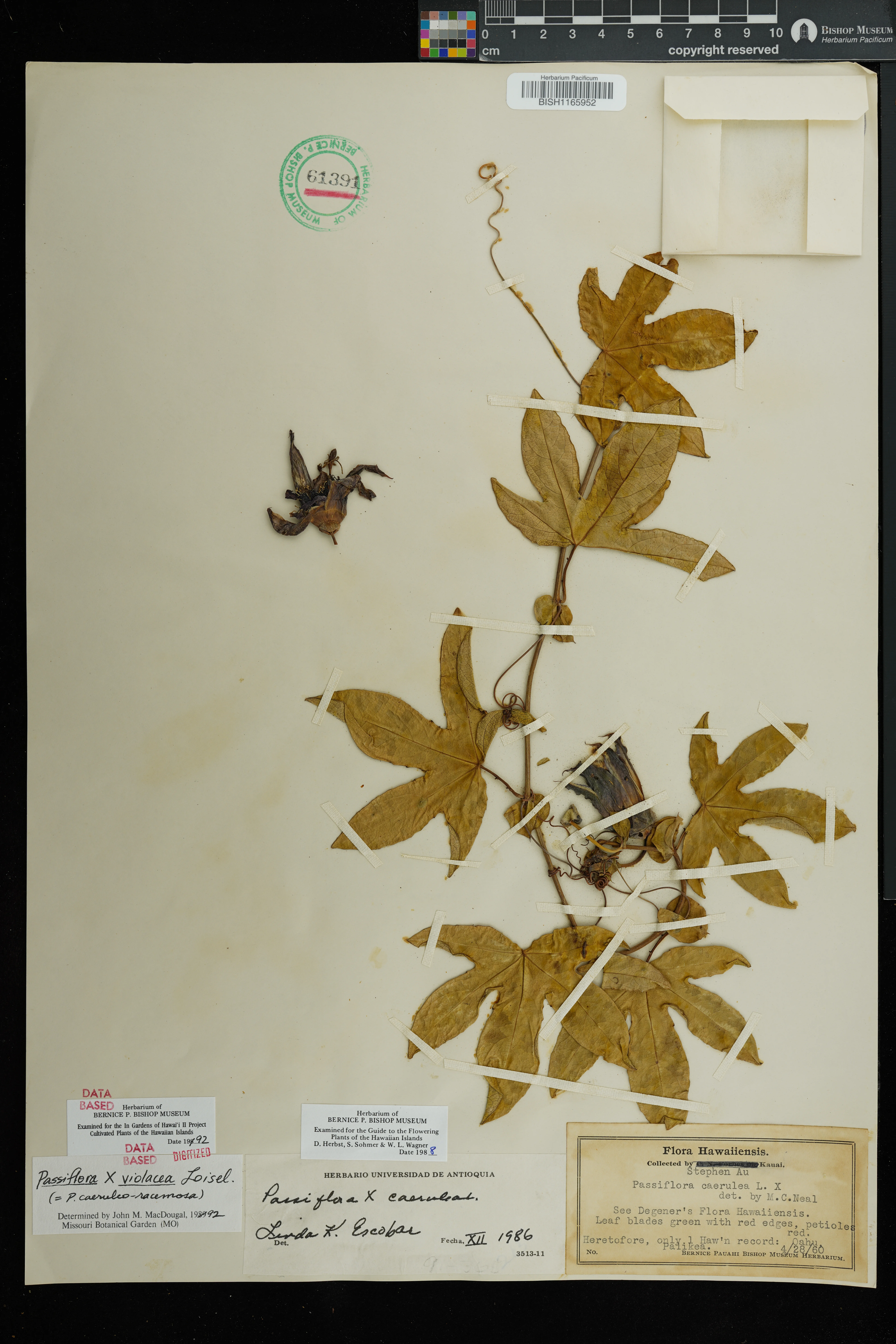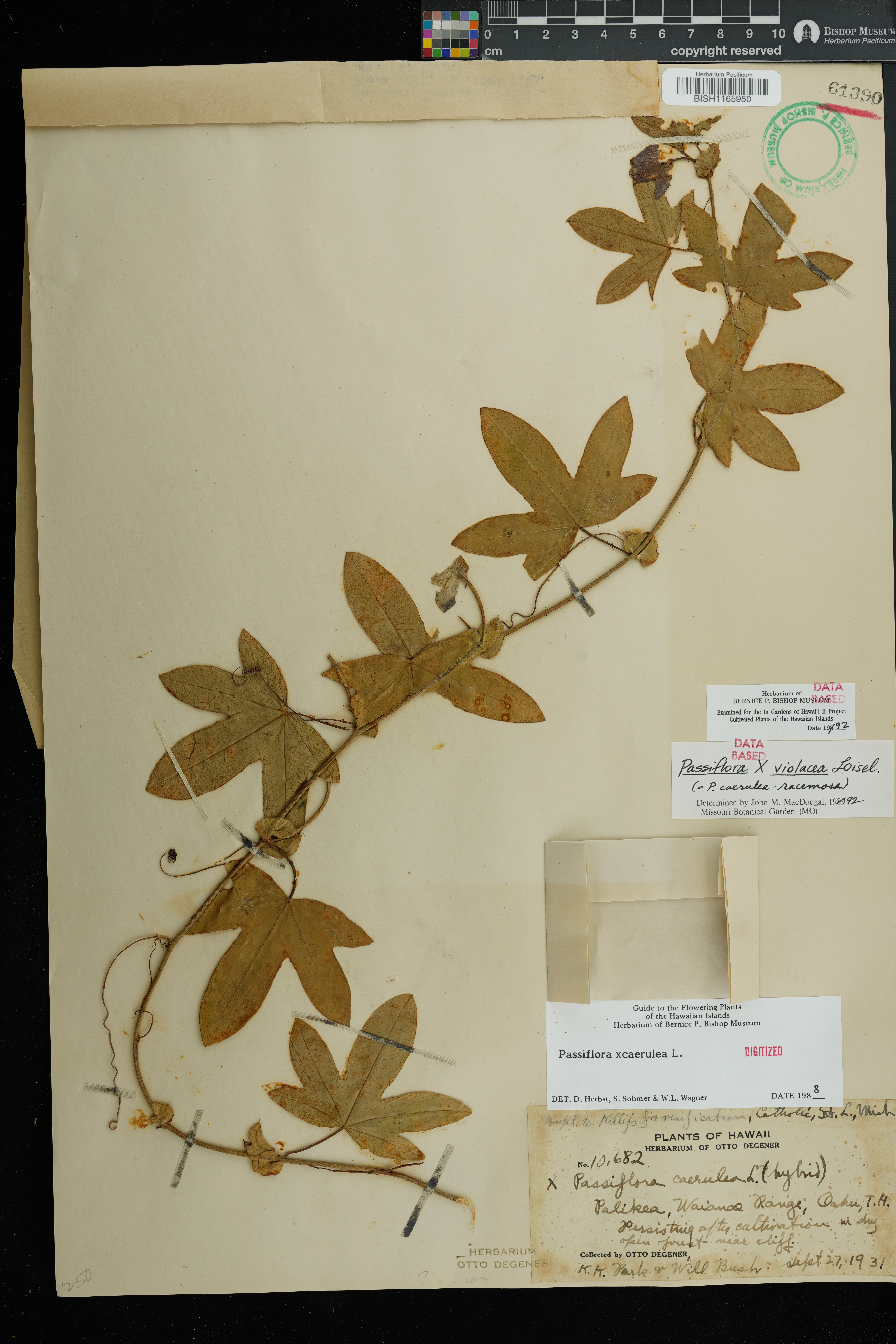 Wagner et al. 1990:1010 (K, O [as P. × caerulea]); Starr et al. 1999:13 (EM, P. × caerulea misapplied = P. × violacea); Staples & Herbst 2005:450 (KEY), 451 (DESCR); Faccenda, Arthur, et al. 2025:200 (remove EM [re-IDed as P. caerulea]); Note: stabilized hybrid