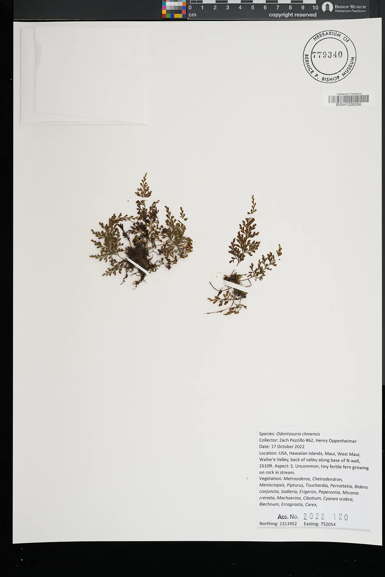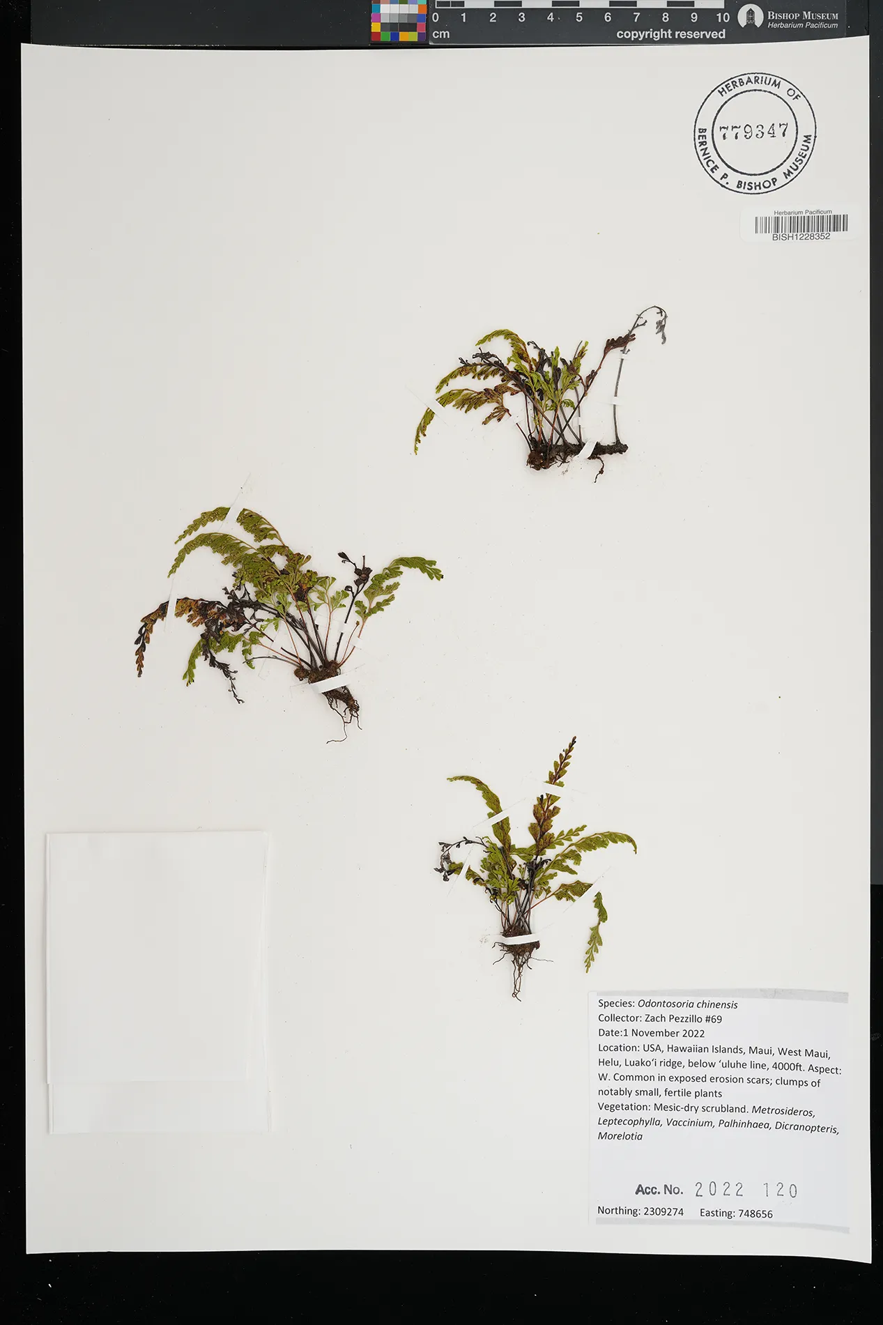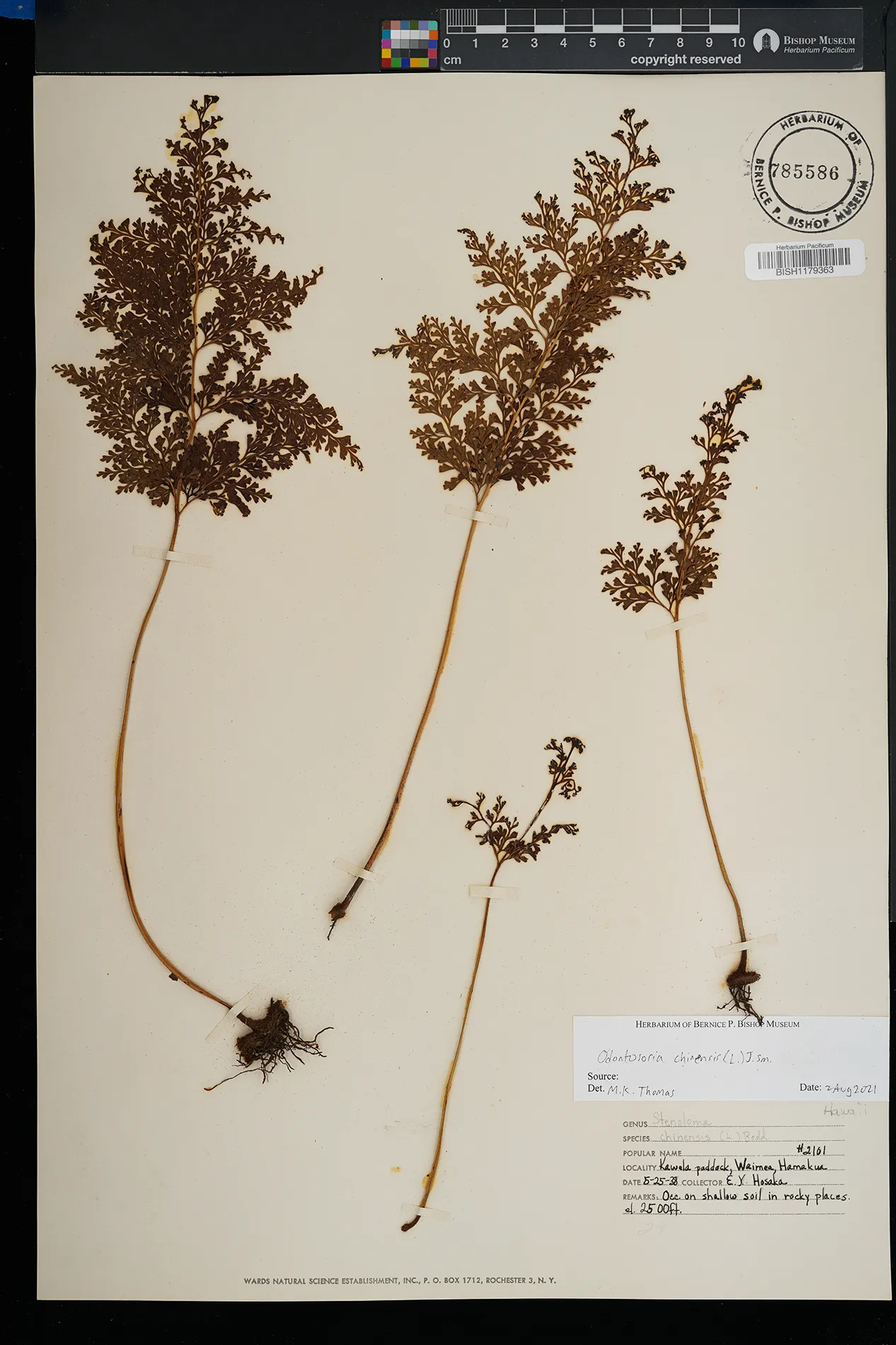 On exposed bank. Common locally. Secondary forest of Psidium guajava and Schinus, with scattered Pandanus tectorius, Metrosideros and Aleurites, ground cover of Kalanchoe pinnata and Zingiber zerumbet. |
