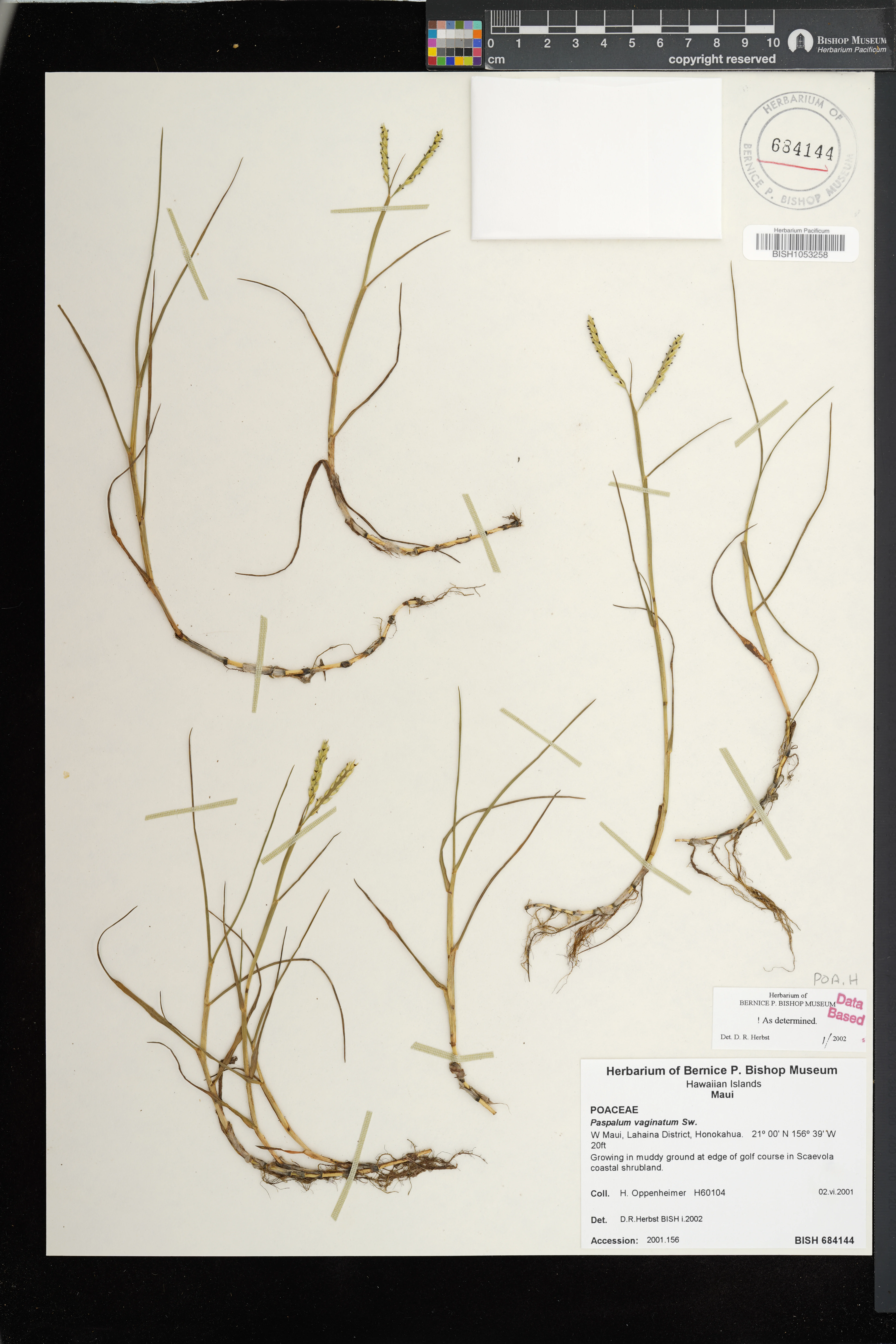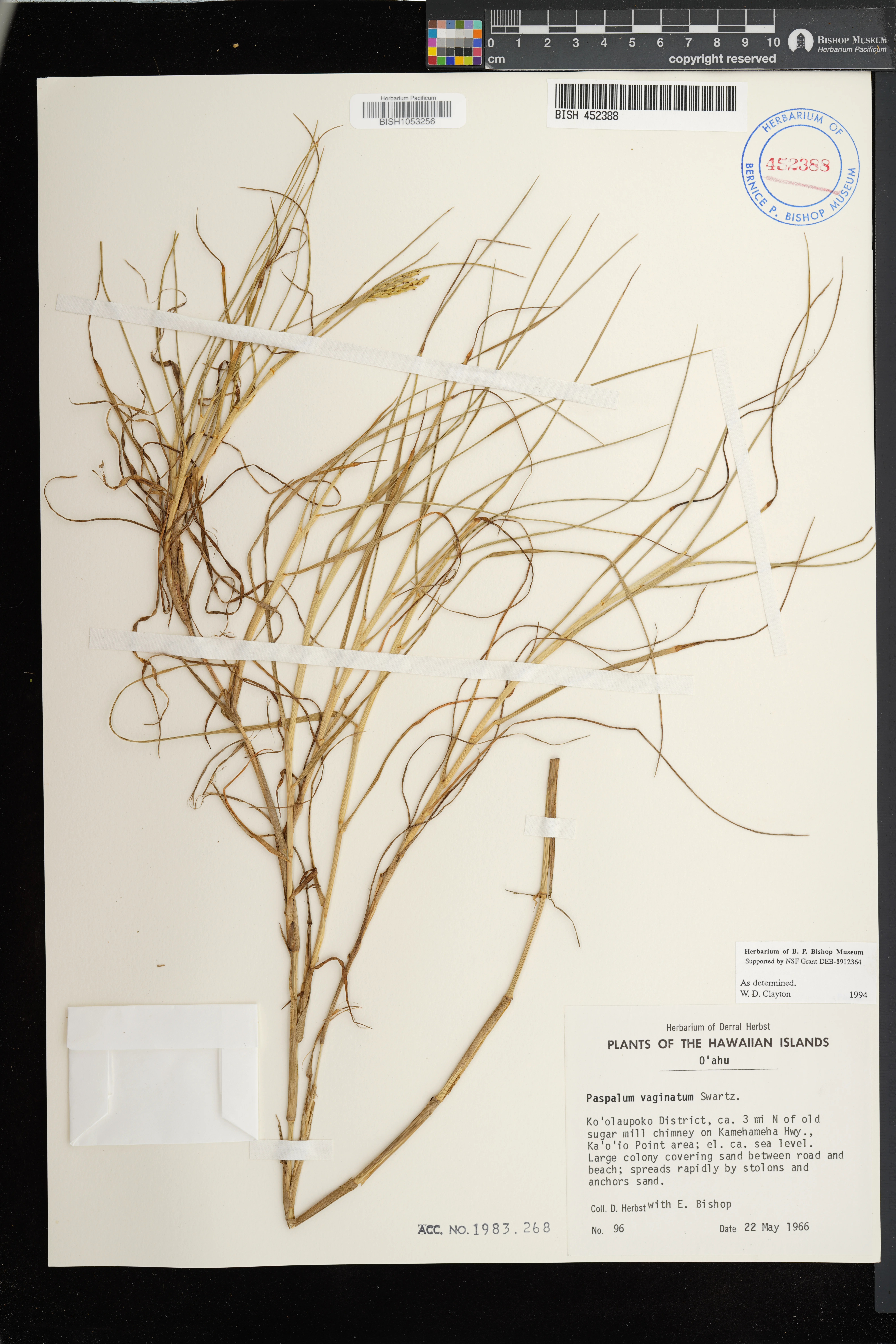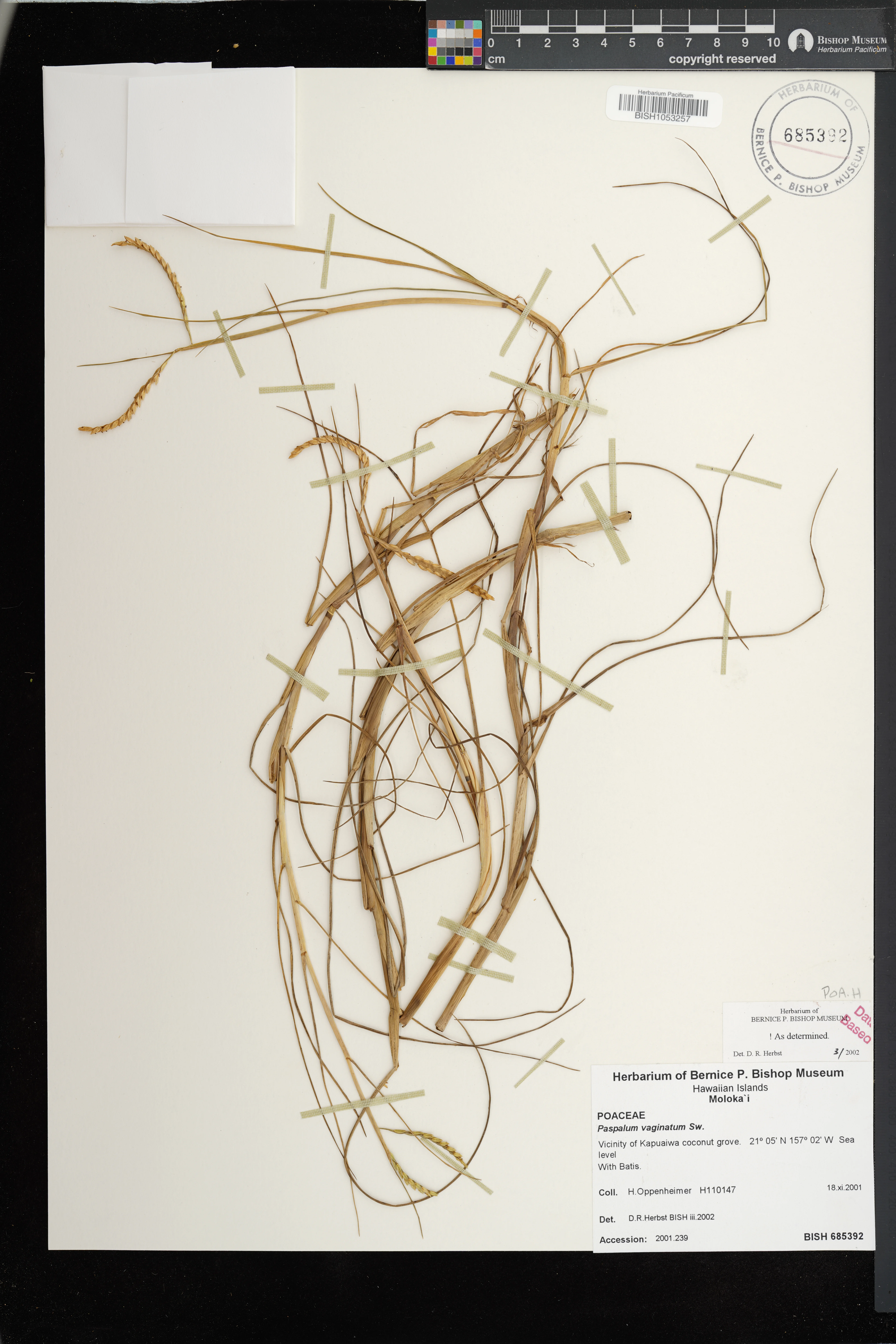 Common weedy grass on pond banks in former baitfish facility W of Kealia Pond. Associated with Distichlis spicata, Pluchea indica, P. xfosbergii. Fertile. |