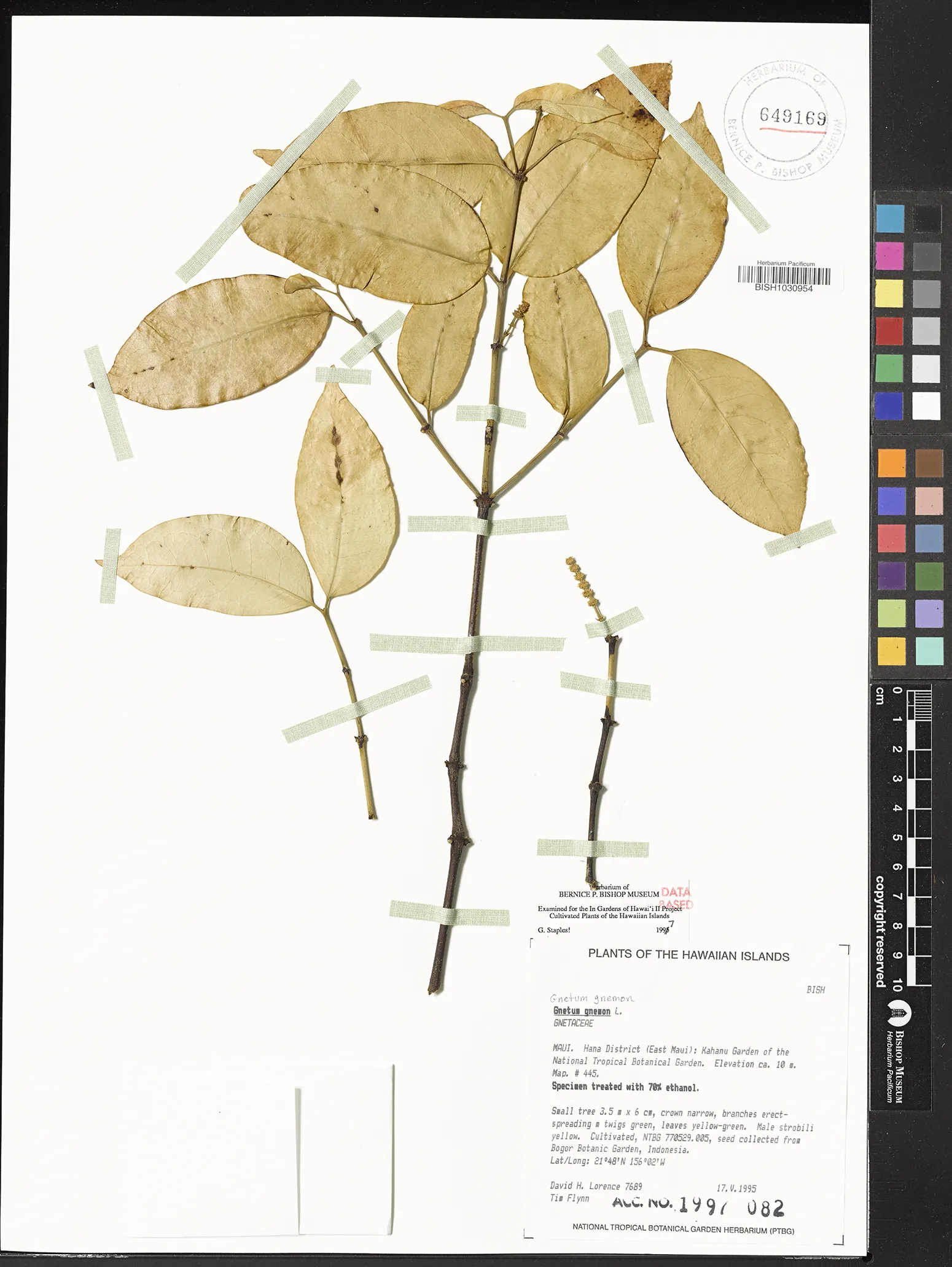 | 3 | Gnetum gnemon | L. | east maui, hana district, kahanu garden of ntbg. map #445 | PRESERVED_SPECIMEN | lorence, d.h. flynn, t. | collector number: 7689 | Maui | BISH | 5/17/1995 | |