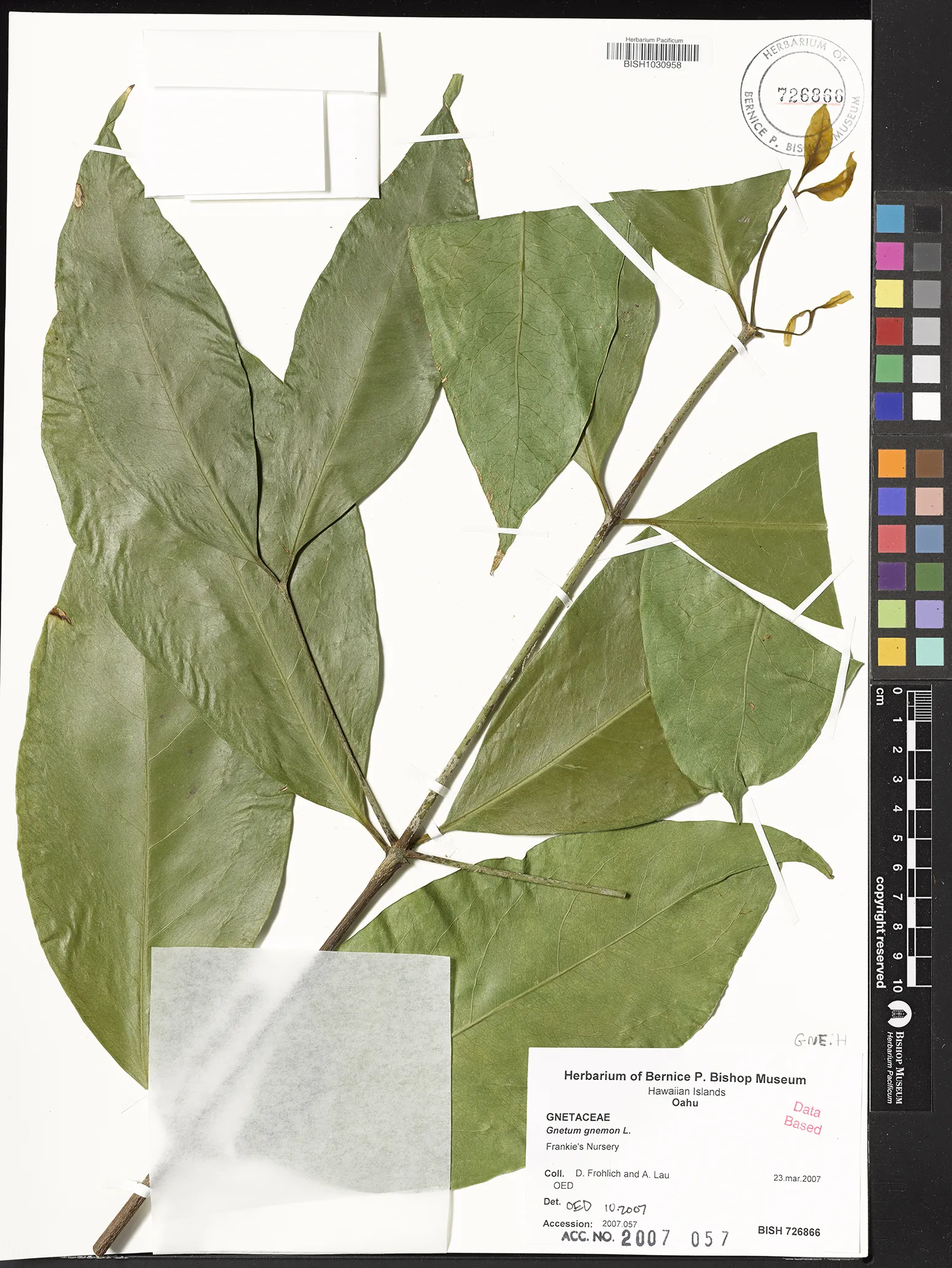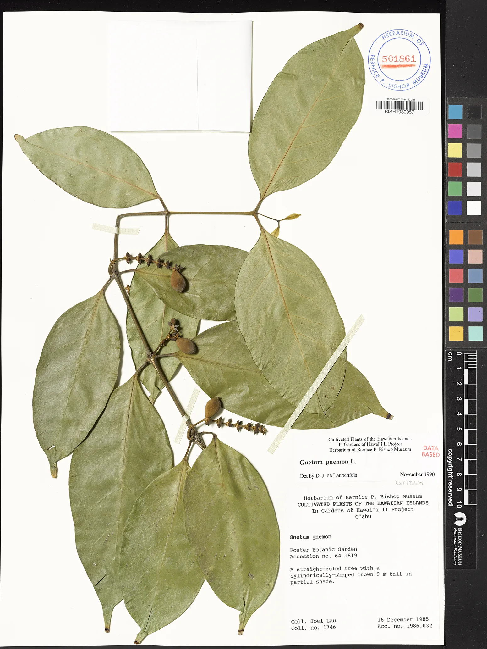 | 2 | Gnetum gnemon | L. | honolulu: foster botanical garden | PRESERVED_SPECIMEN | miller, j.s. merello, m. | collector number: 7849 | Oahu | BISH | 7/30/1992 | |