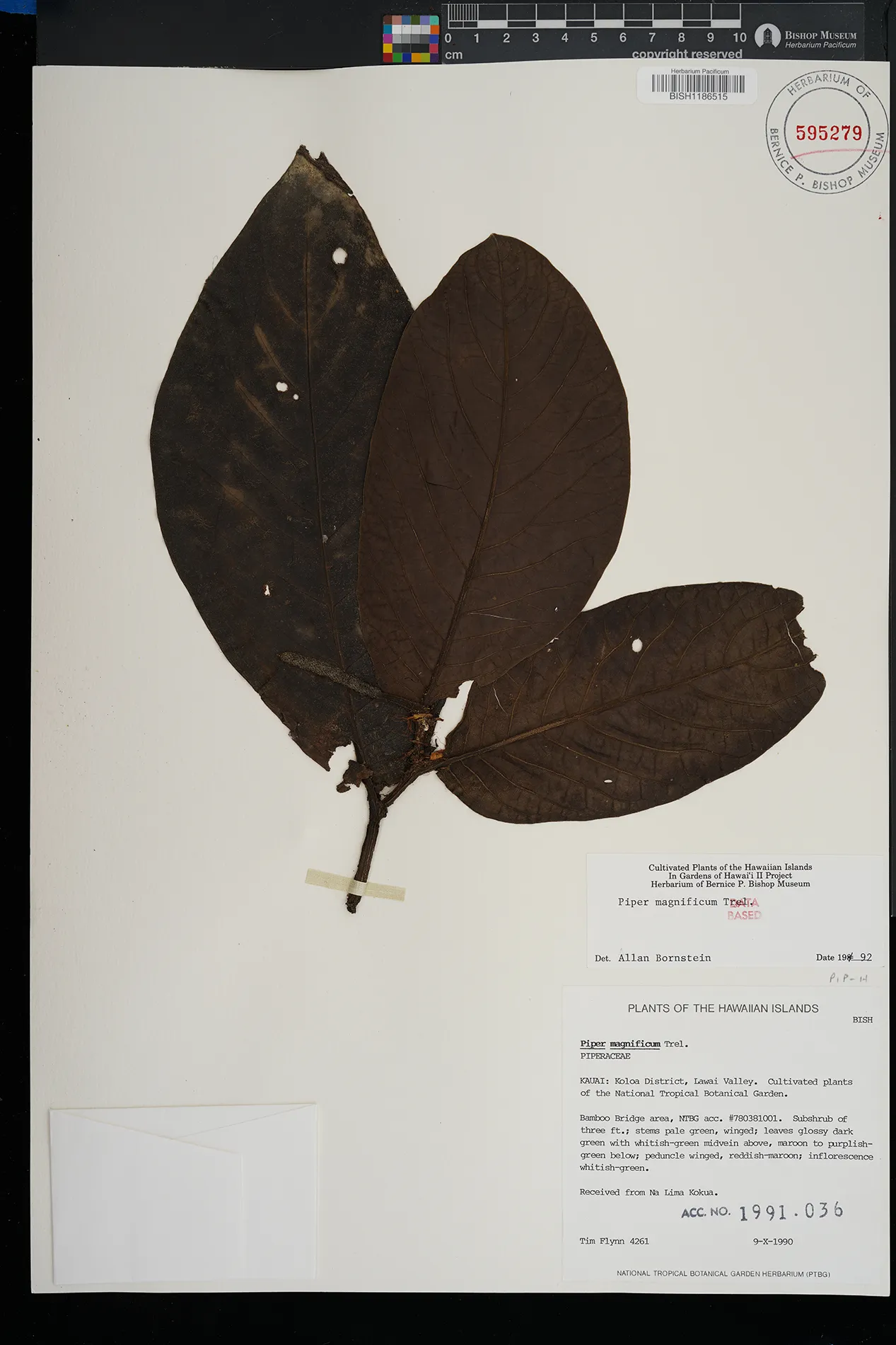 | 5 | Piper magnificum | Gentil ex Trel. | koloa, lawaii valley, ntbg, bamboo bridge area | PRESERVED_SPECIMEN | flynn, t. | collector number: 4261 | Kauai | BISH | 10/9/1990 | |