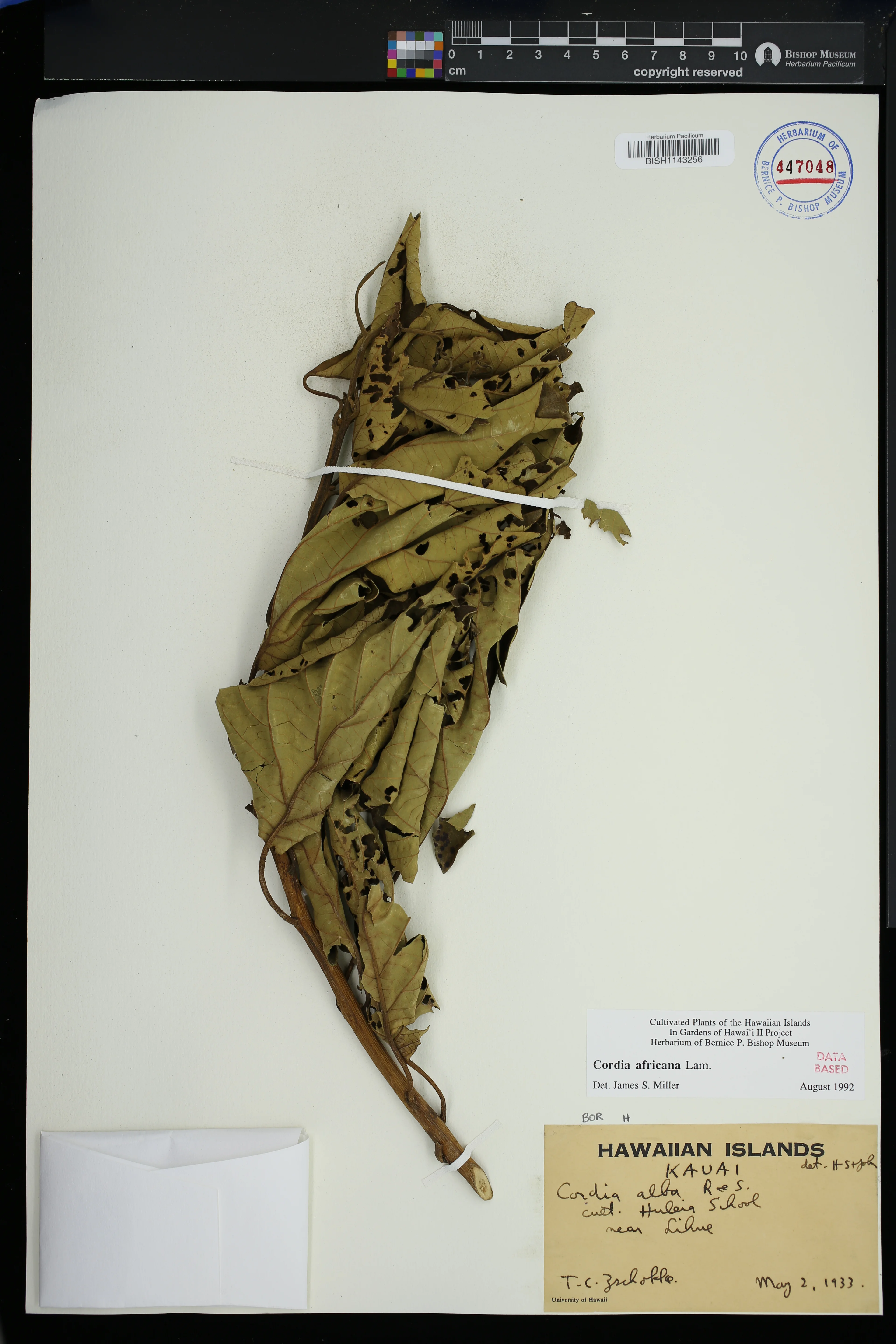 | 16 | Cordia africana | Lam. | Huleia School, near Lihue | PRESERVED_SPECIMEN | Zschokke, T.C. | s.n. | Kauai | BISH | 5/2/1933 | |