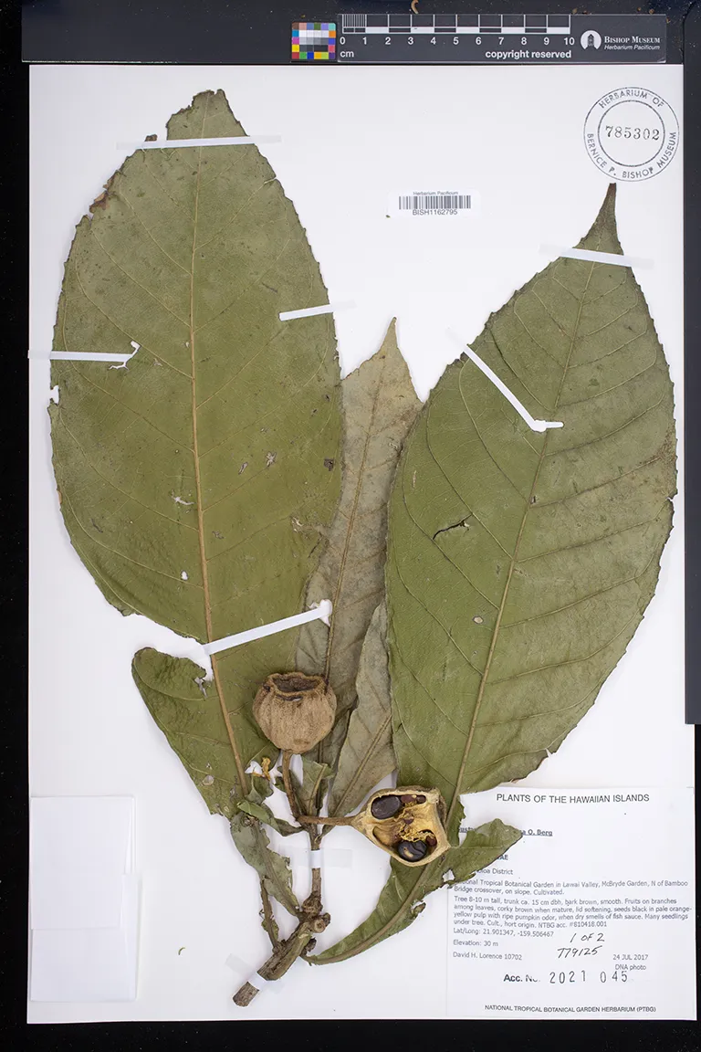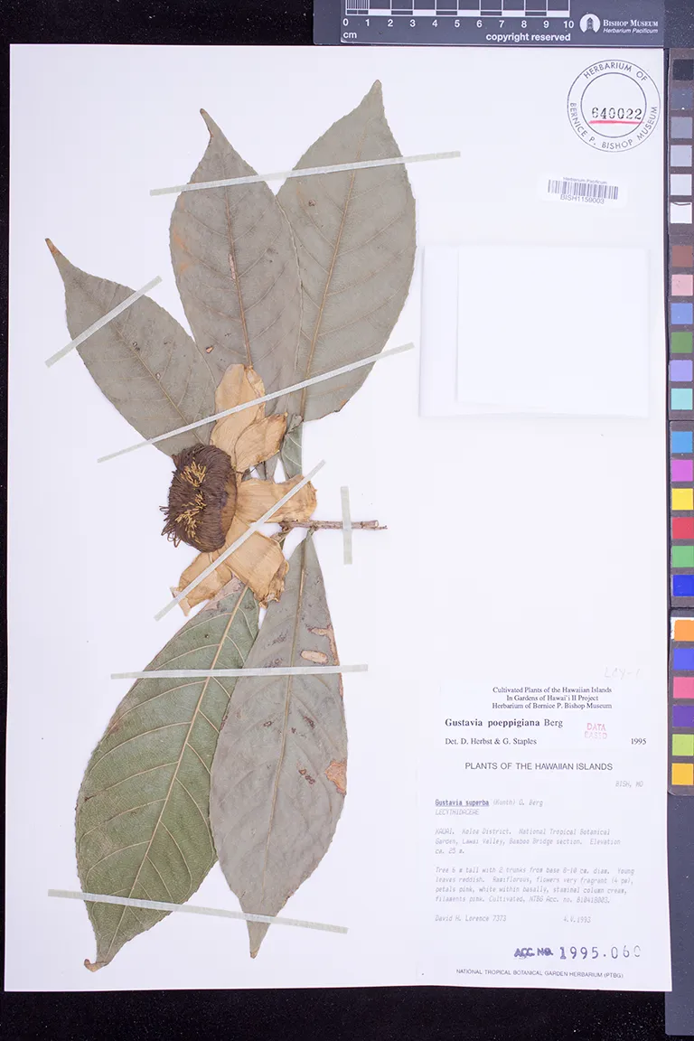 | 2 | Gustavia poeppigiana | O.Berg | waimea arboretum | PRESERVED_SPECIMEN | lau, j. | collector number: 2699 | Oahu | BISH | 8/4/1986 | |