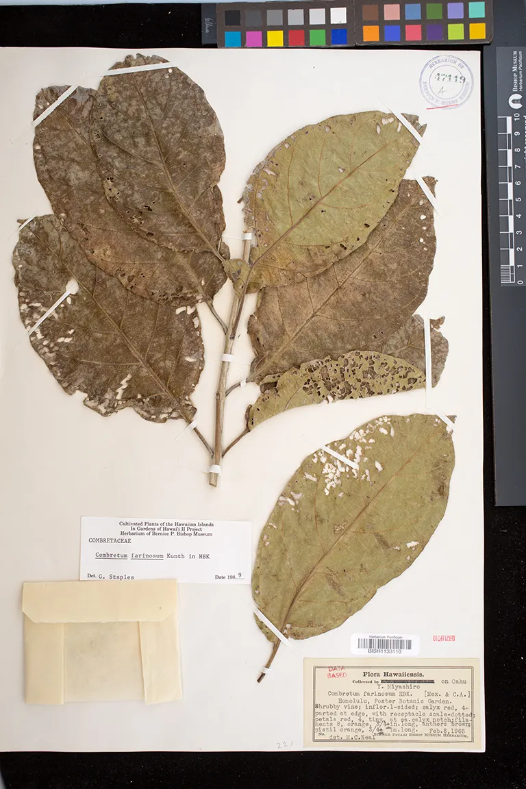 | 3 | Combretum farinosum | Kunth | foster gardens | PRESERVED_SPECIMEN | ayers, p. | collector number: 7549 | Oahu | BISH | ||