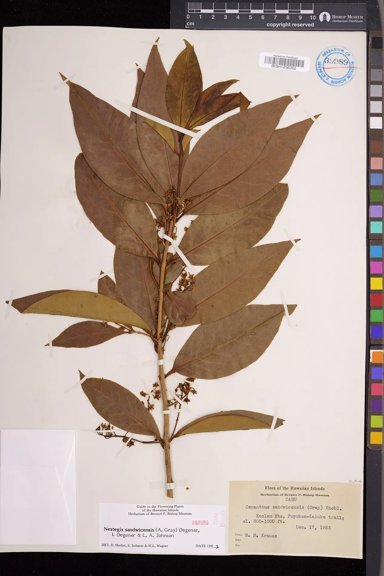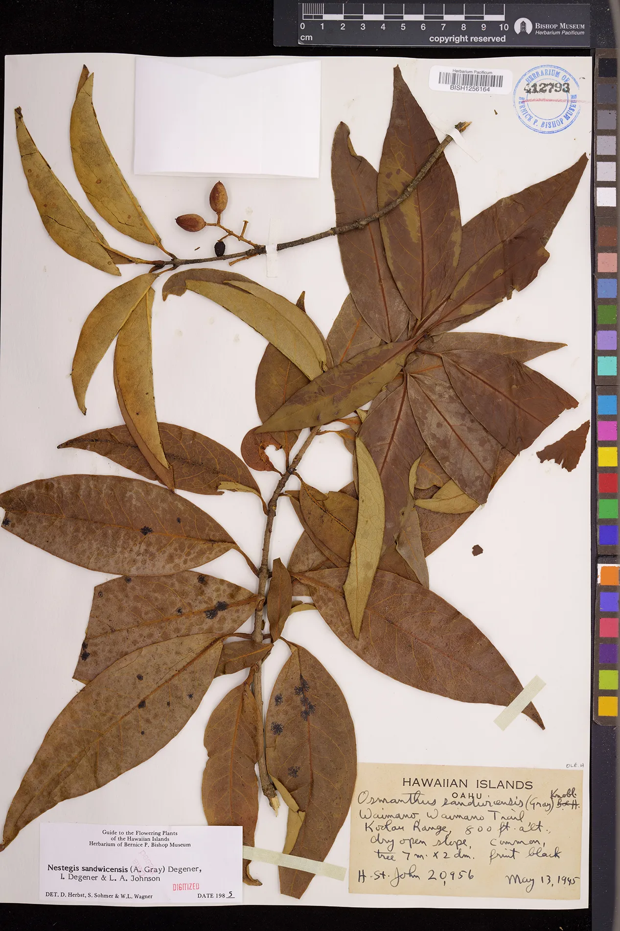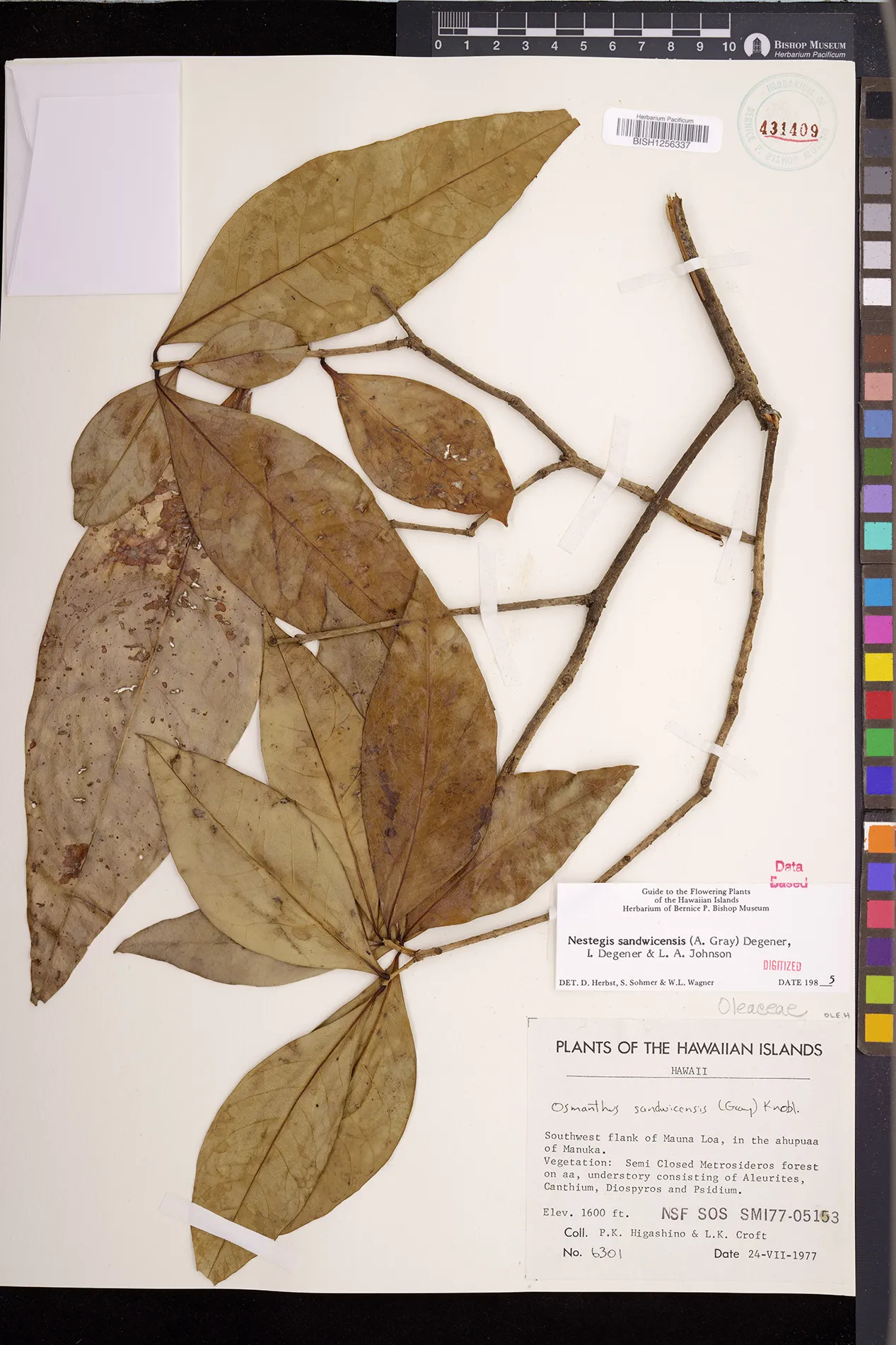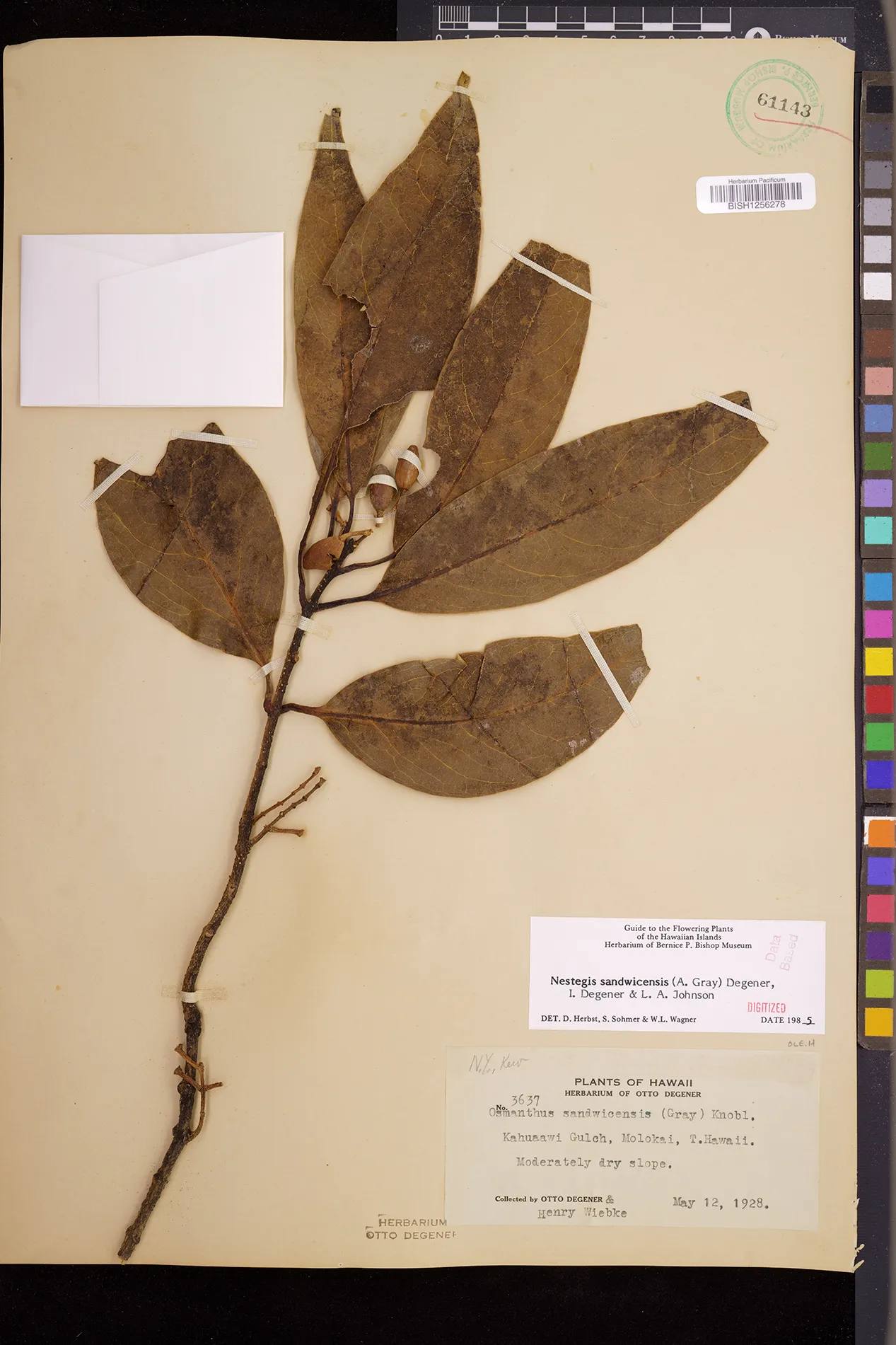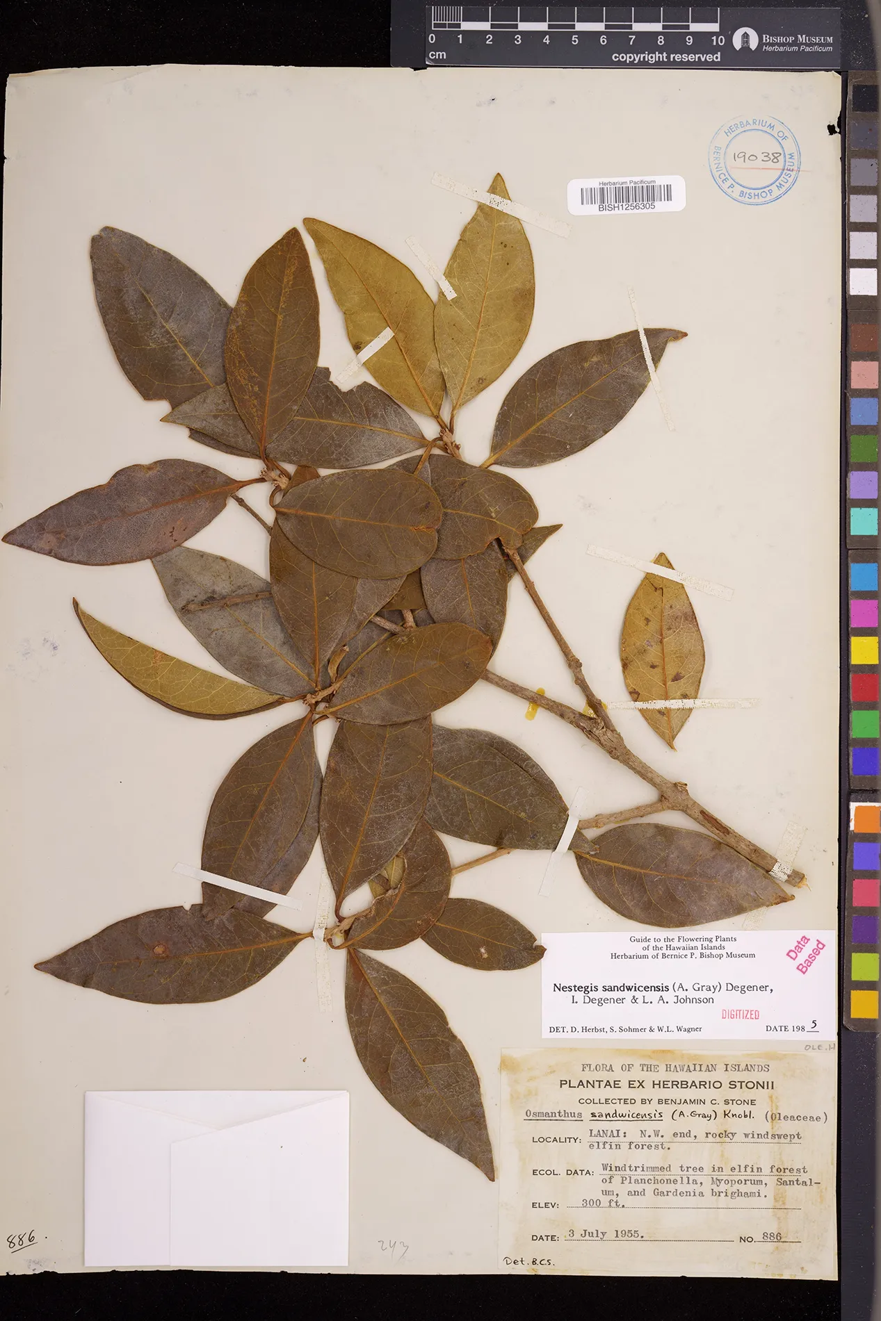 Wagner et al. 1990:992 (K, O, Mo, L, M, H [as Nestegis sandwicensis]); Dupin et al. 2022:16 (COMBNOV, Syn. Nestegis sandwicensis = Notelaea sandwicensis)