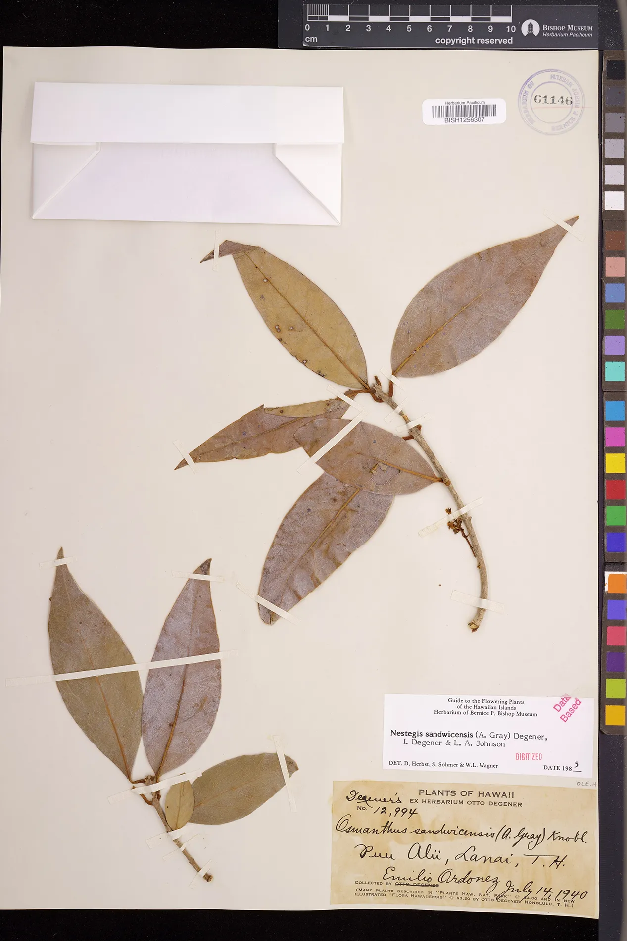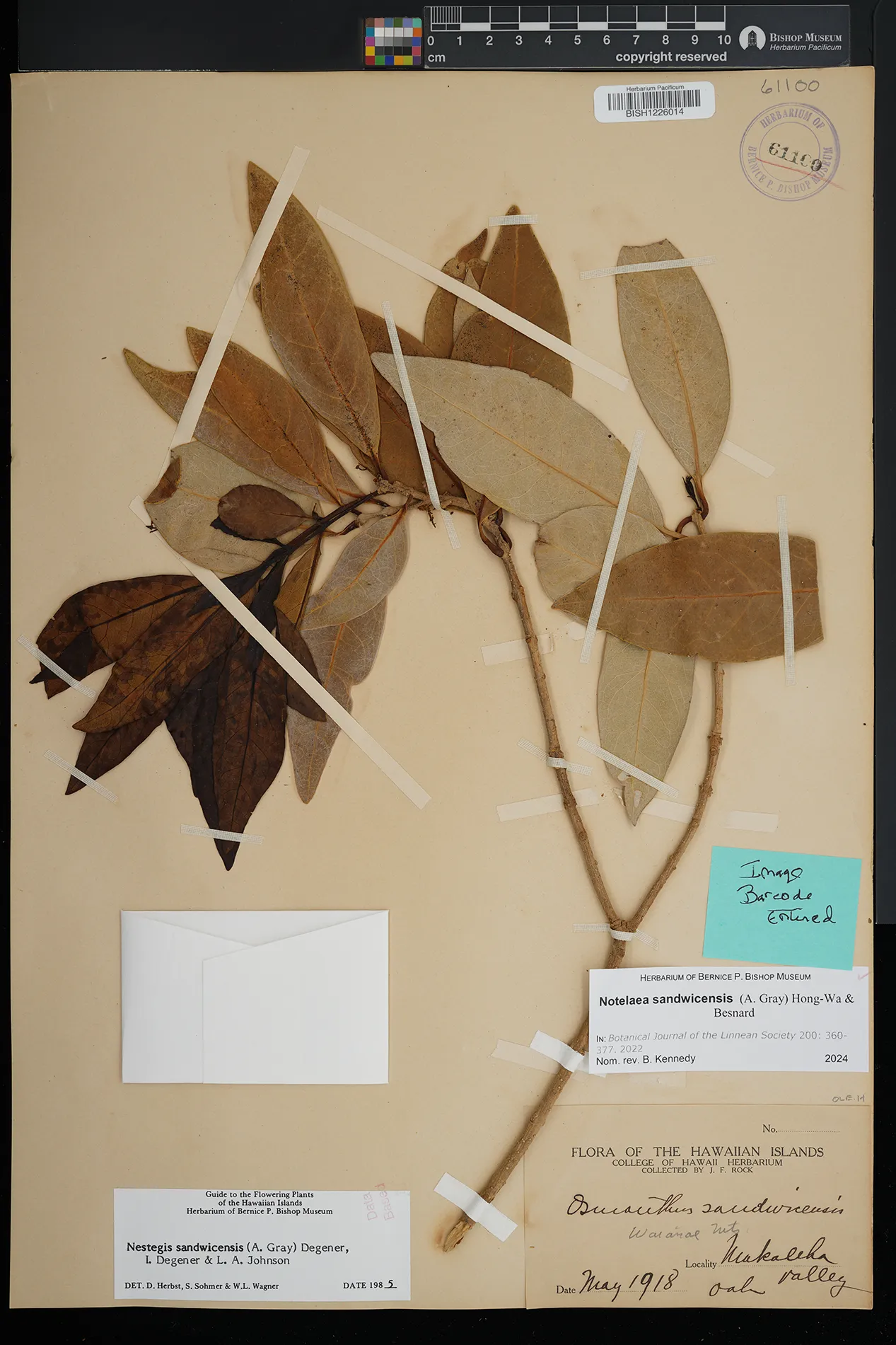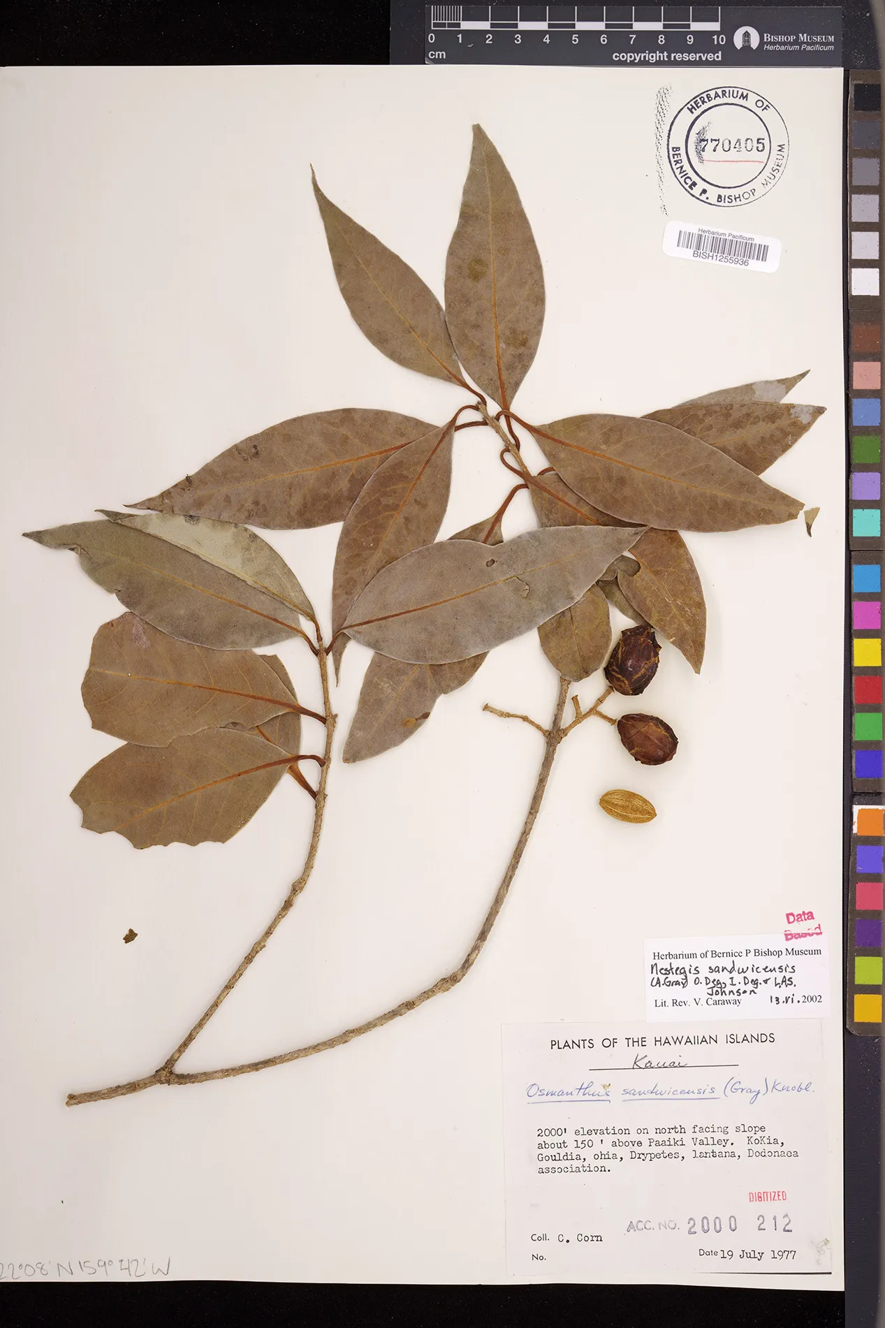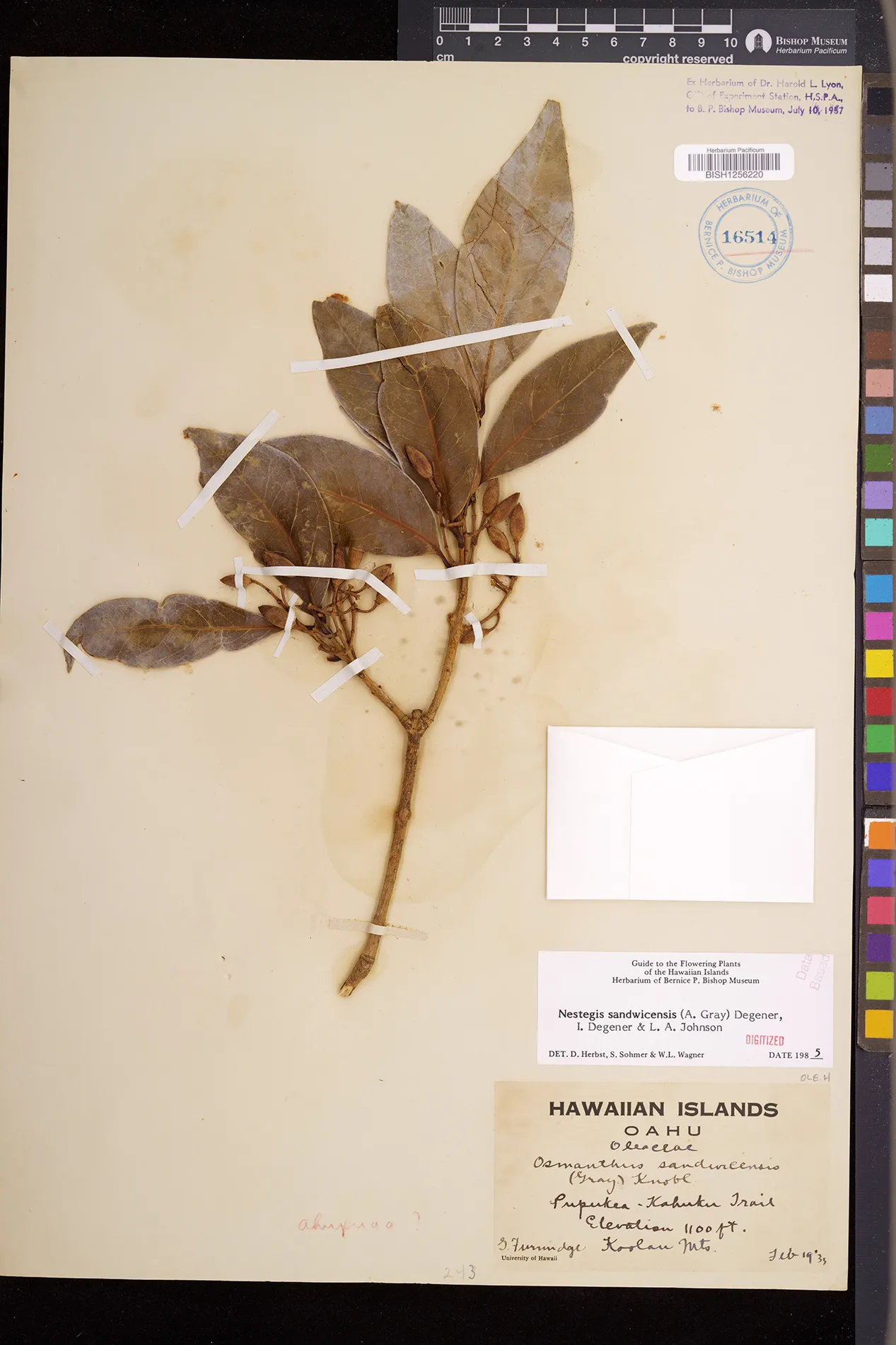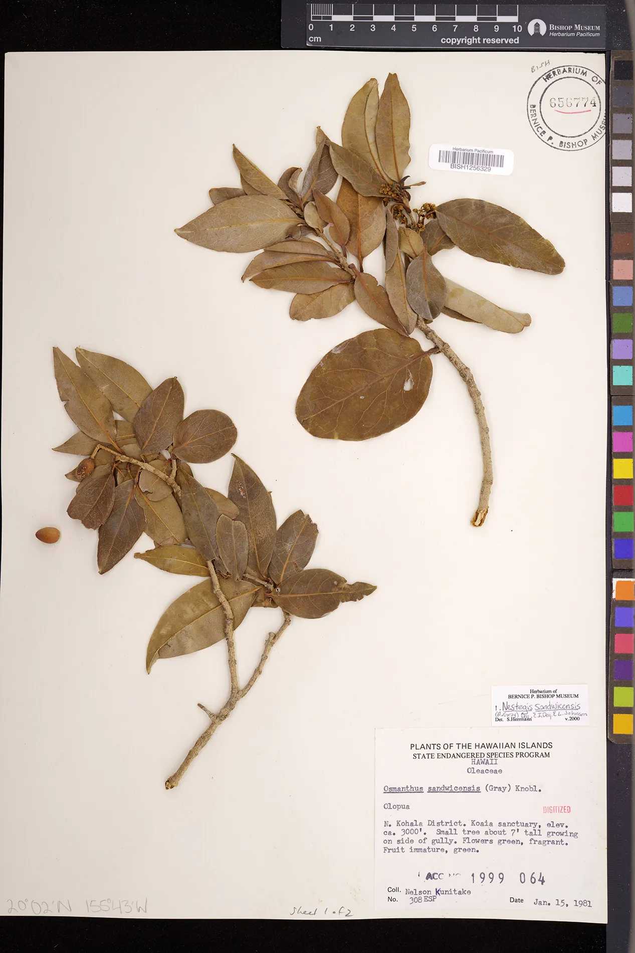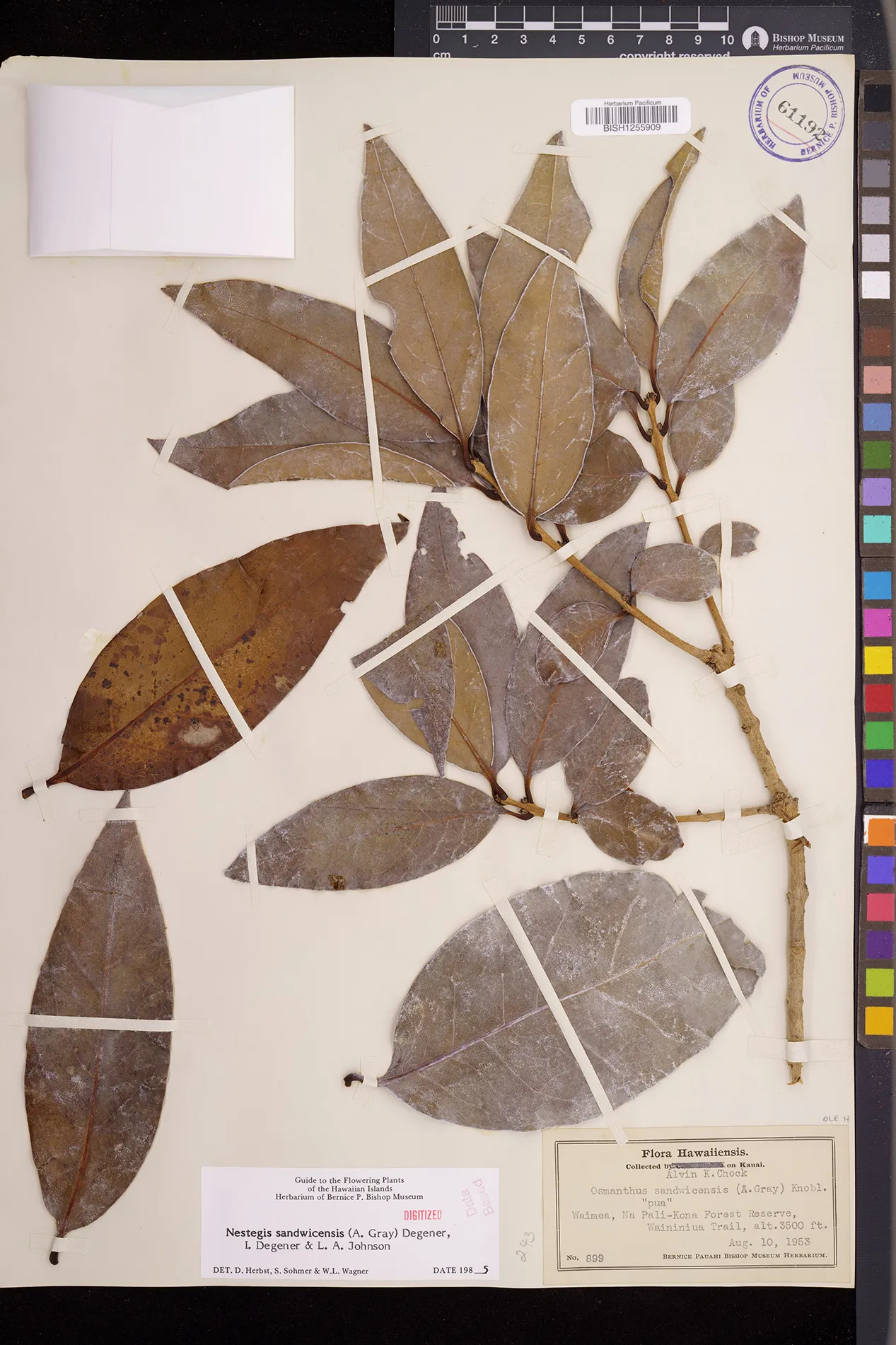Wagner et al. 1990:992 (K, O, Mo, L, M, H [as Nestegis sandwicensis]); Dupin et al. 2022:16 (COMBNOV, Syn. Nestegis sandwicensis = Notelaea sandwicensis)