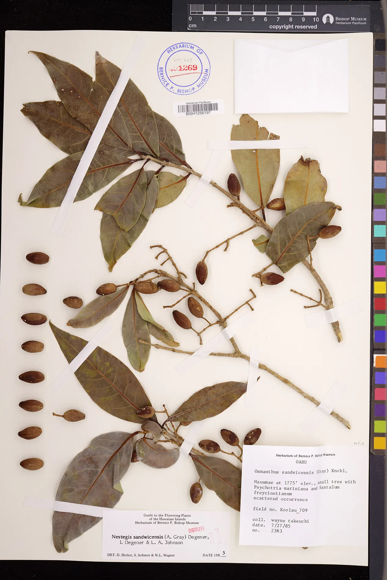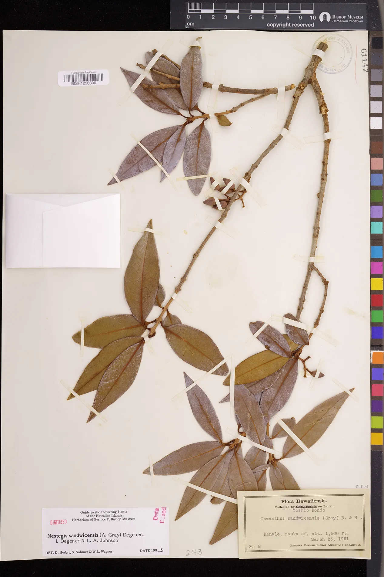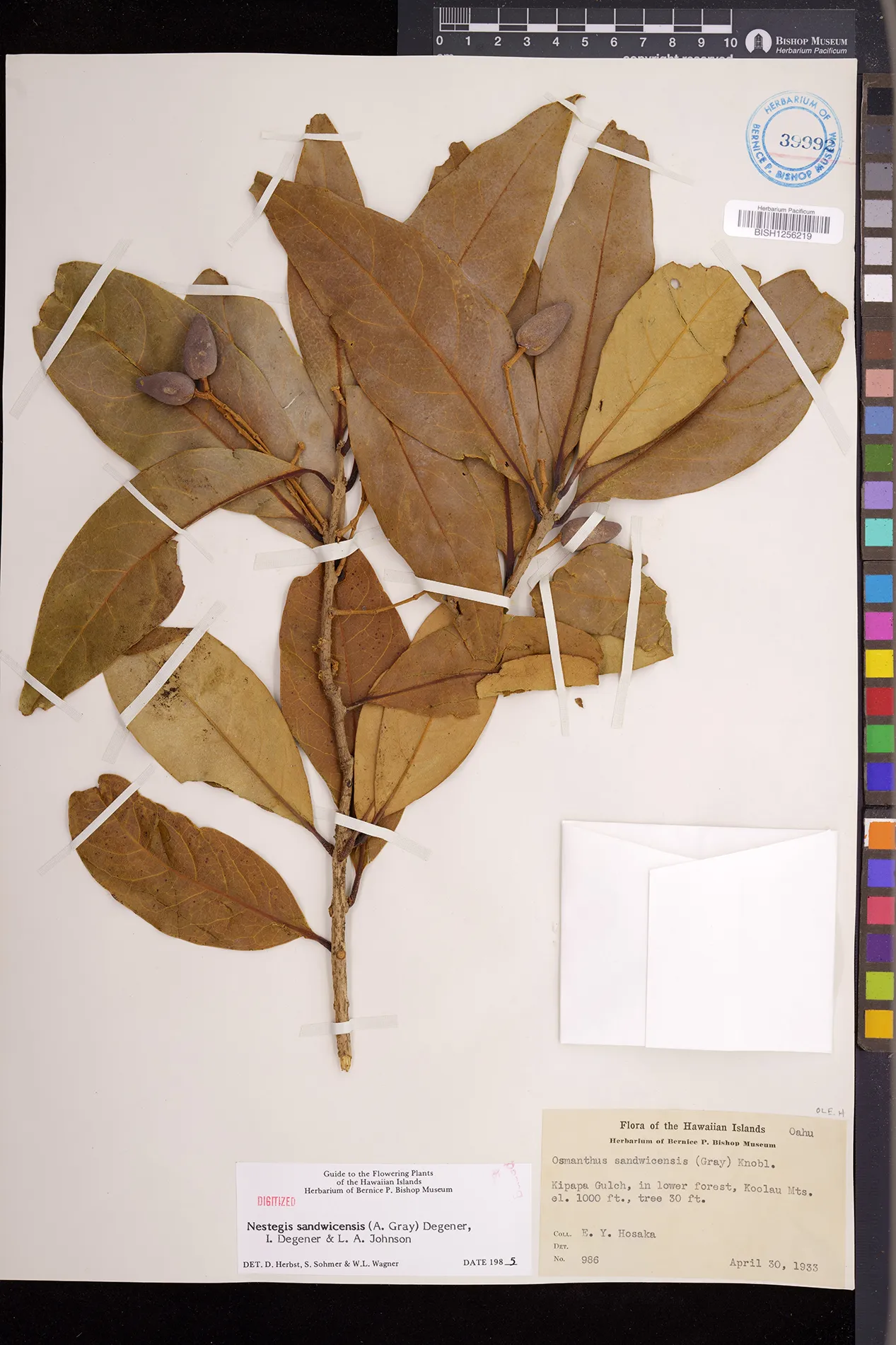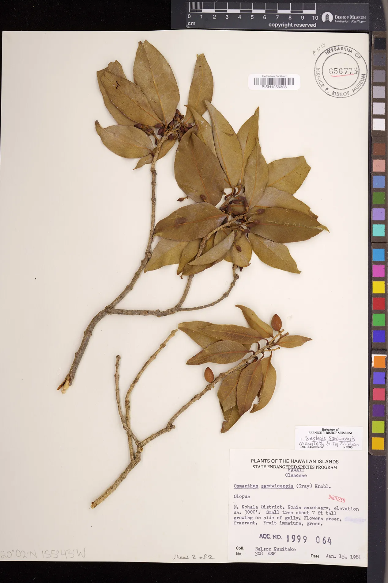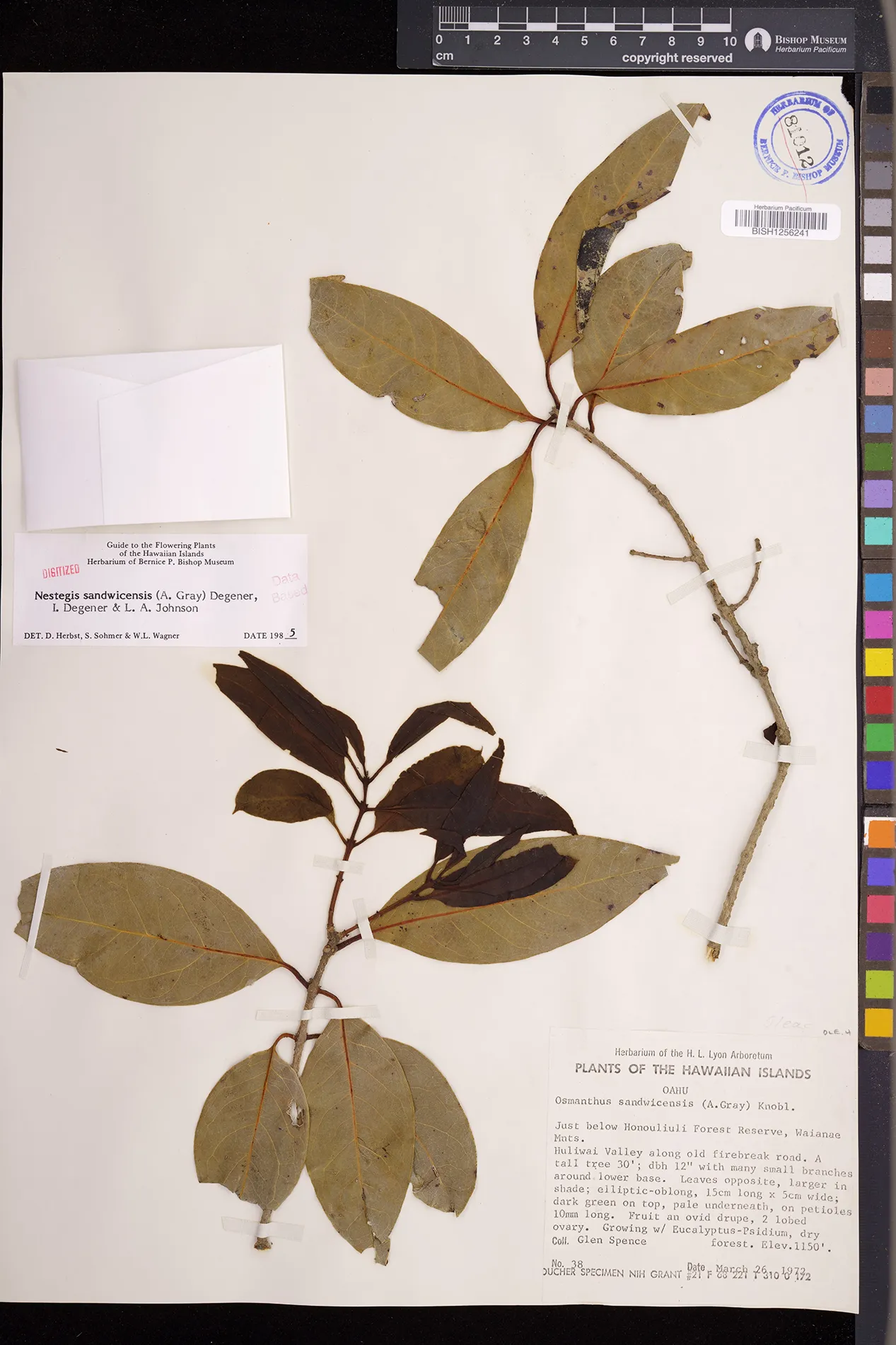 Wagner et al. 1990:992 (K, O, Mo, L, M, H [as Nestegis sandwicensis]); Dupin et al. 2022:16 (COMBNOV, Syn. Nestegis sandwicensis = Notelaea sandwicensis)