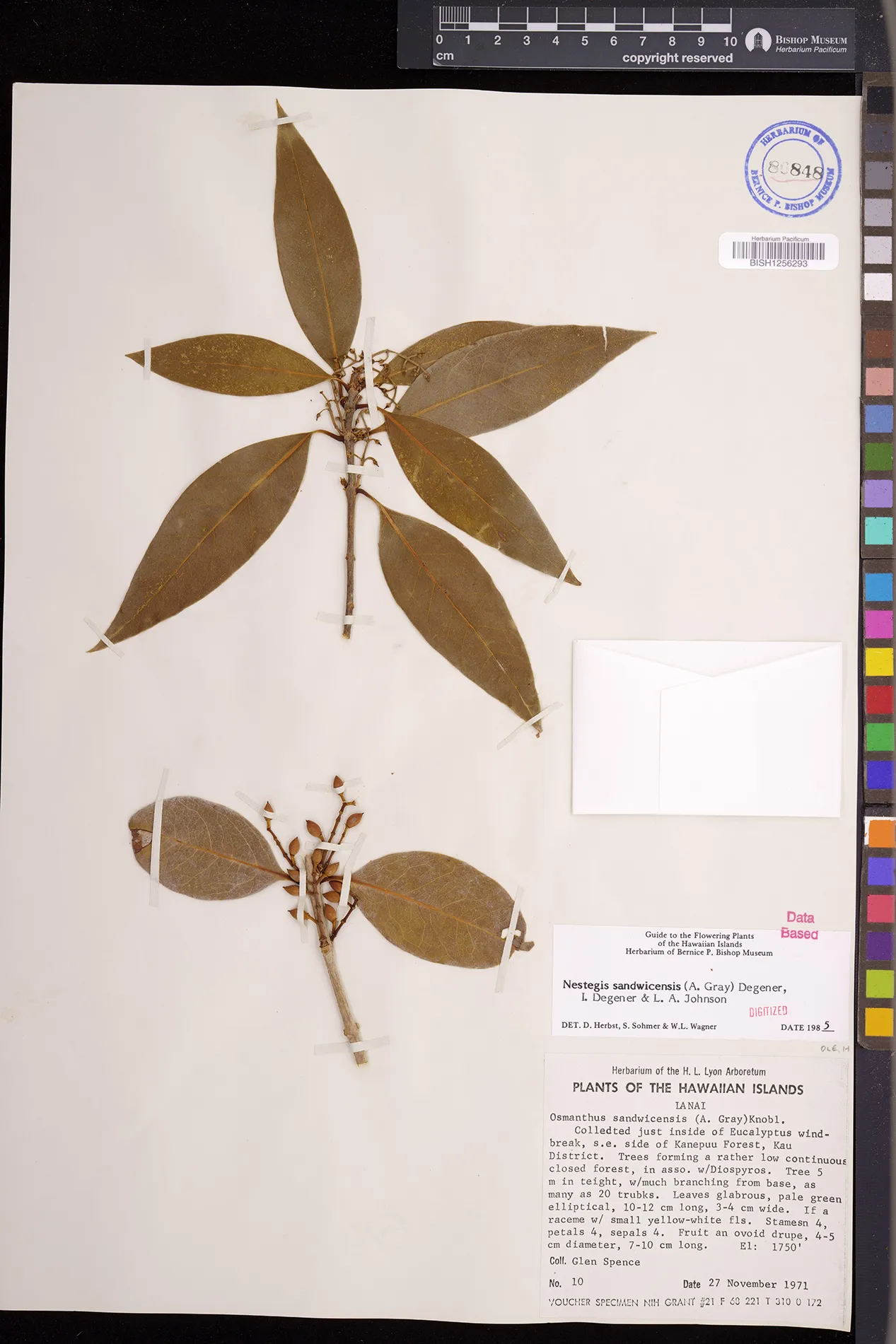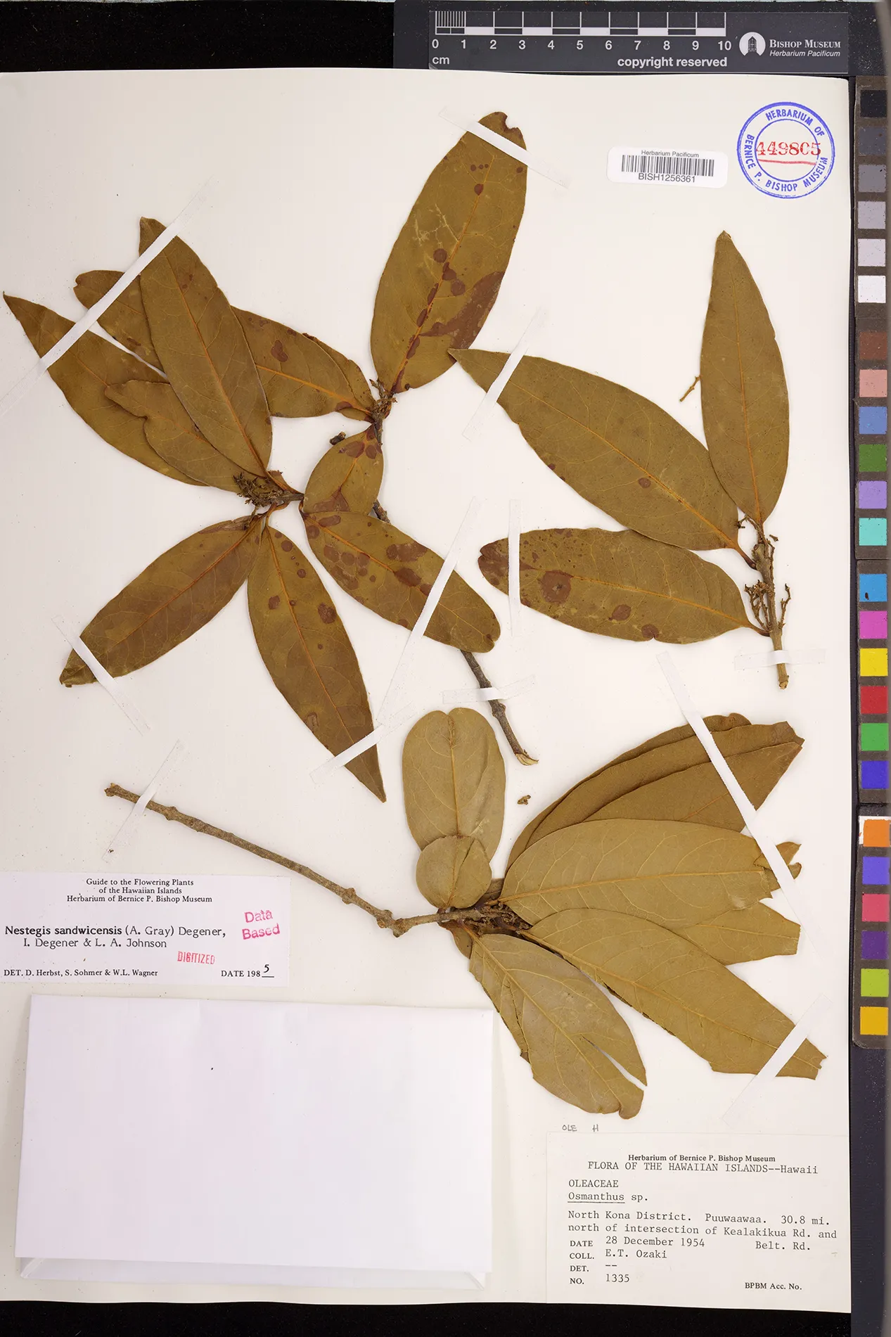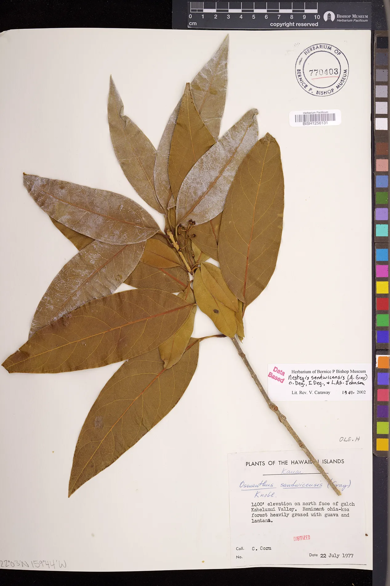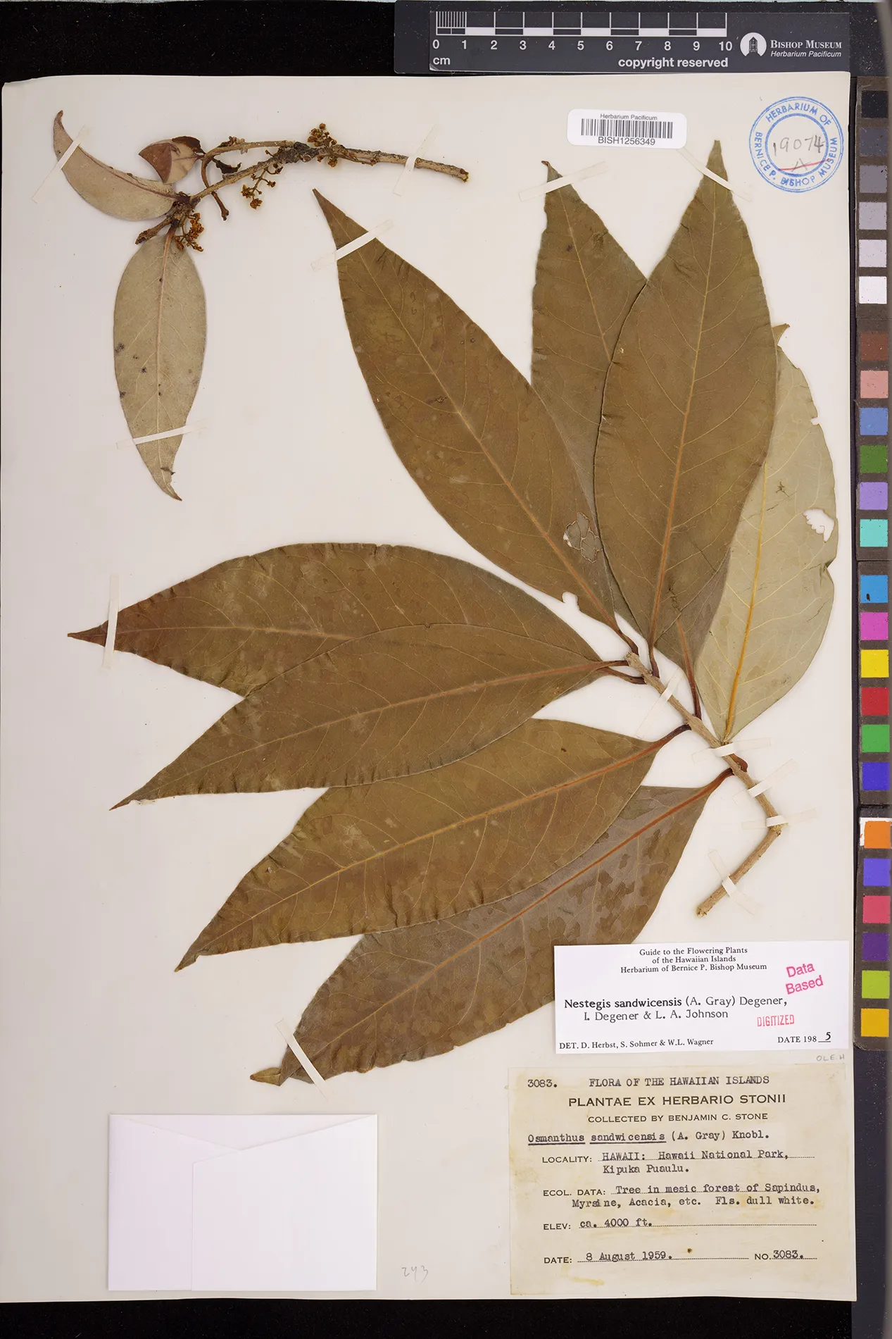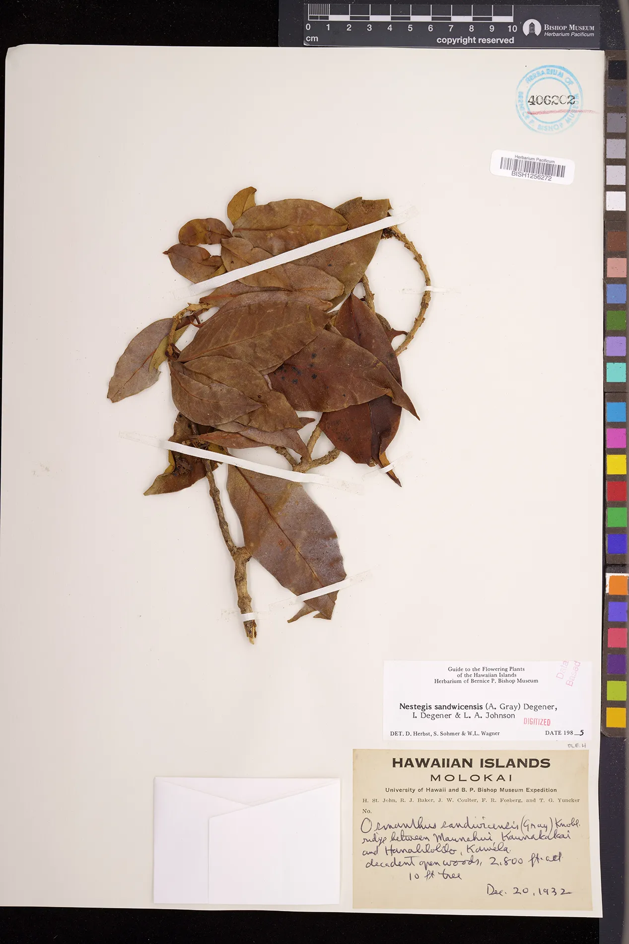 Wagner et al. 1990:992 (K, O, Mo, L, M, H [as Nestegis sandwicensis]); Dupin et al. 2022:16 (COMBNOV, Syn. Nestegis sandwicensis = Notelaea sandwicensis)