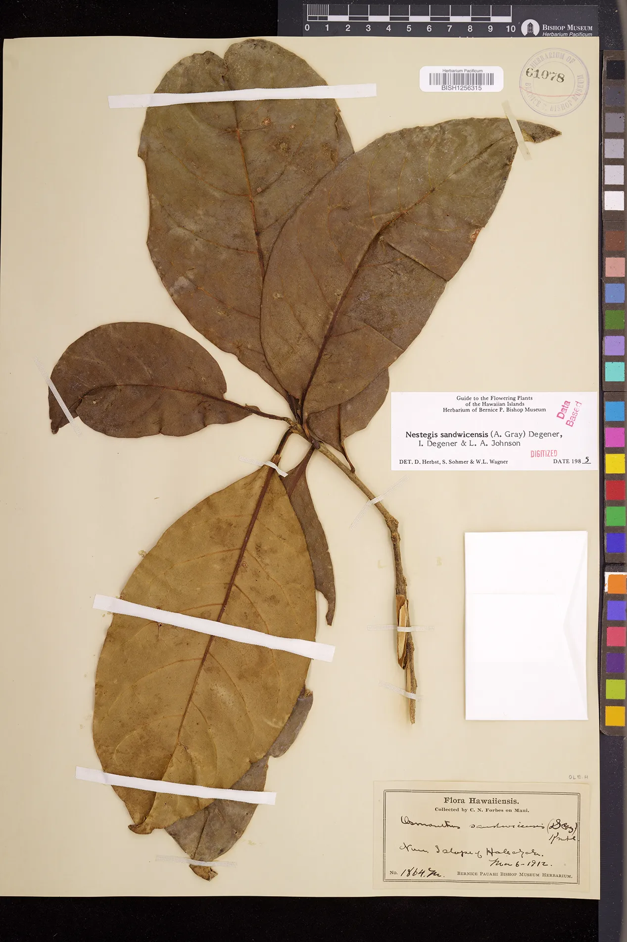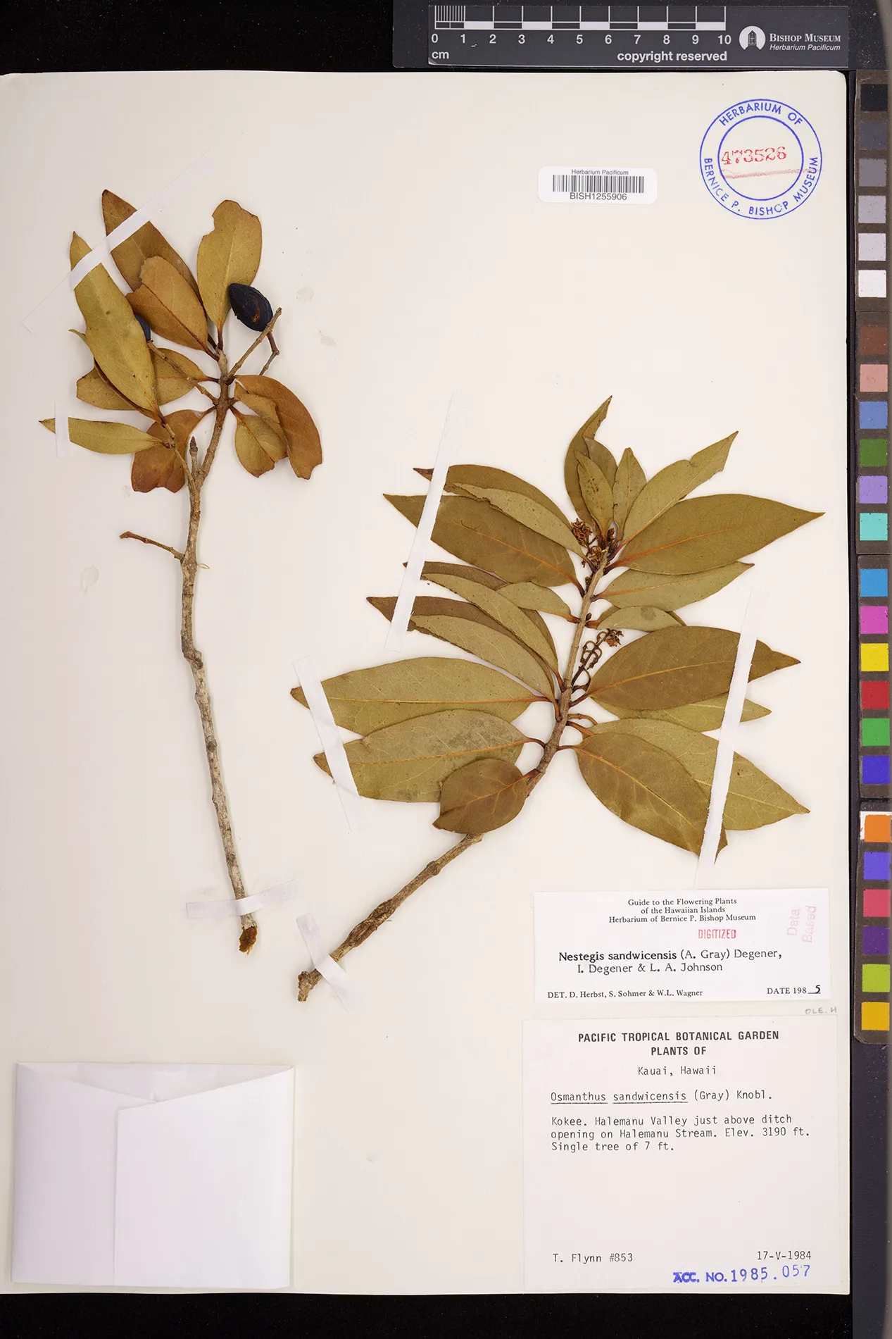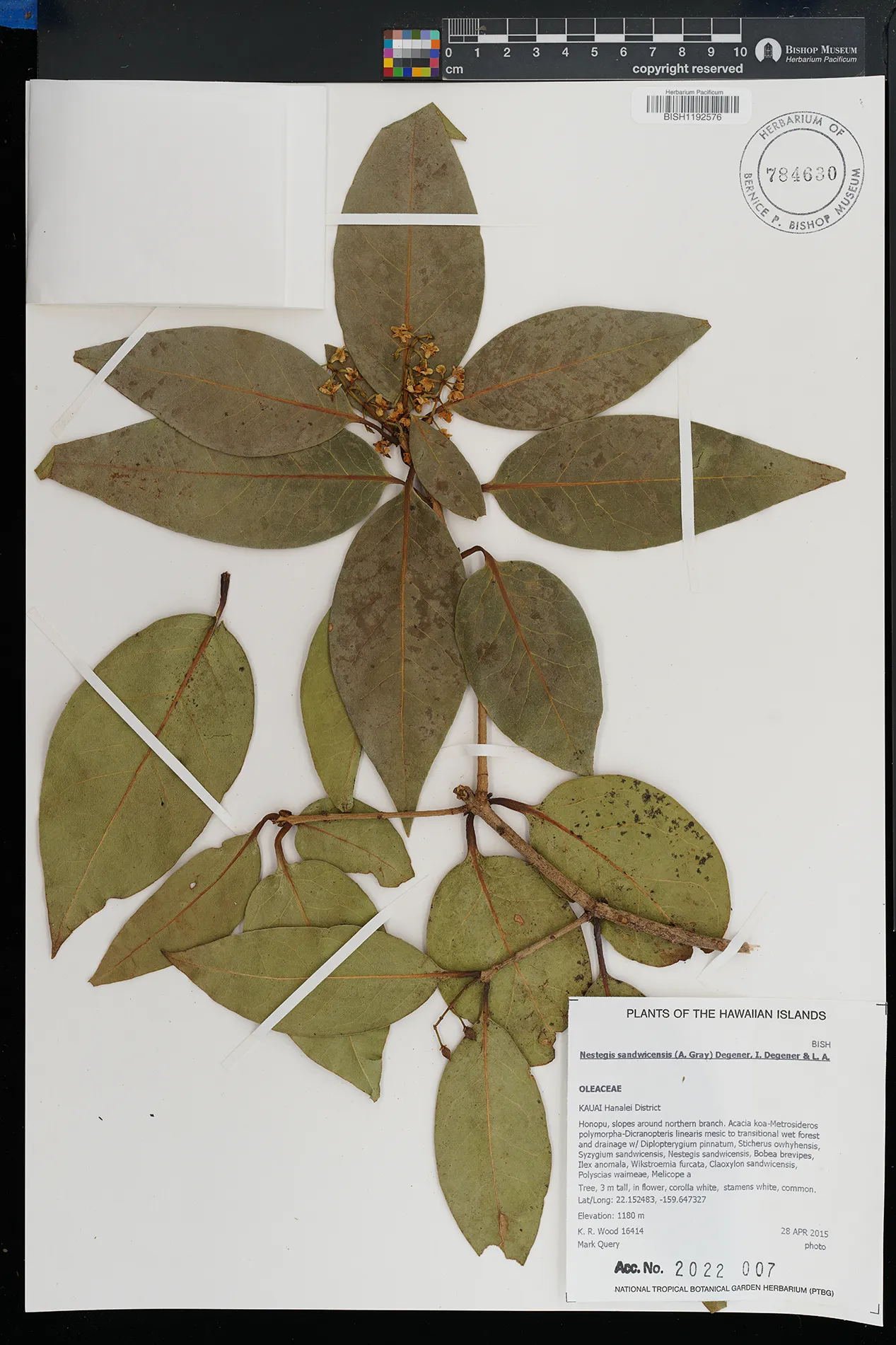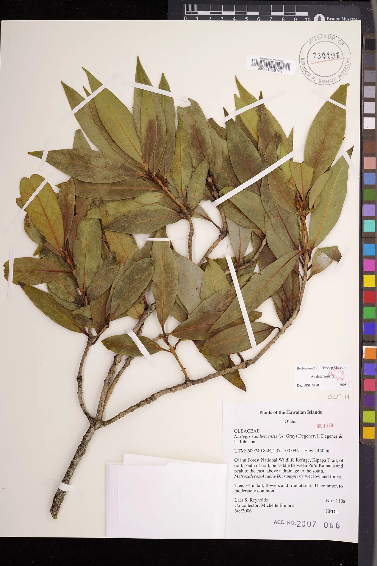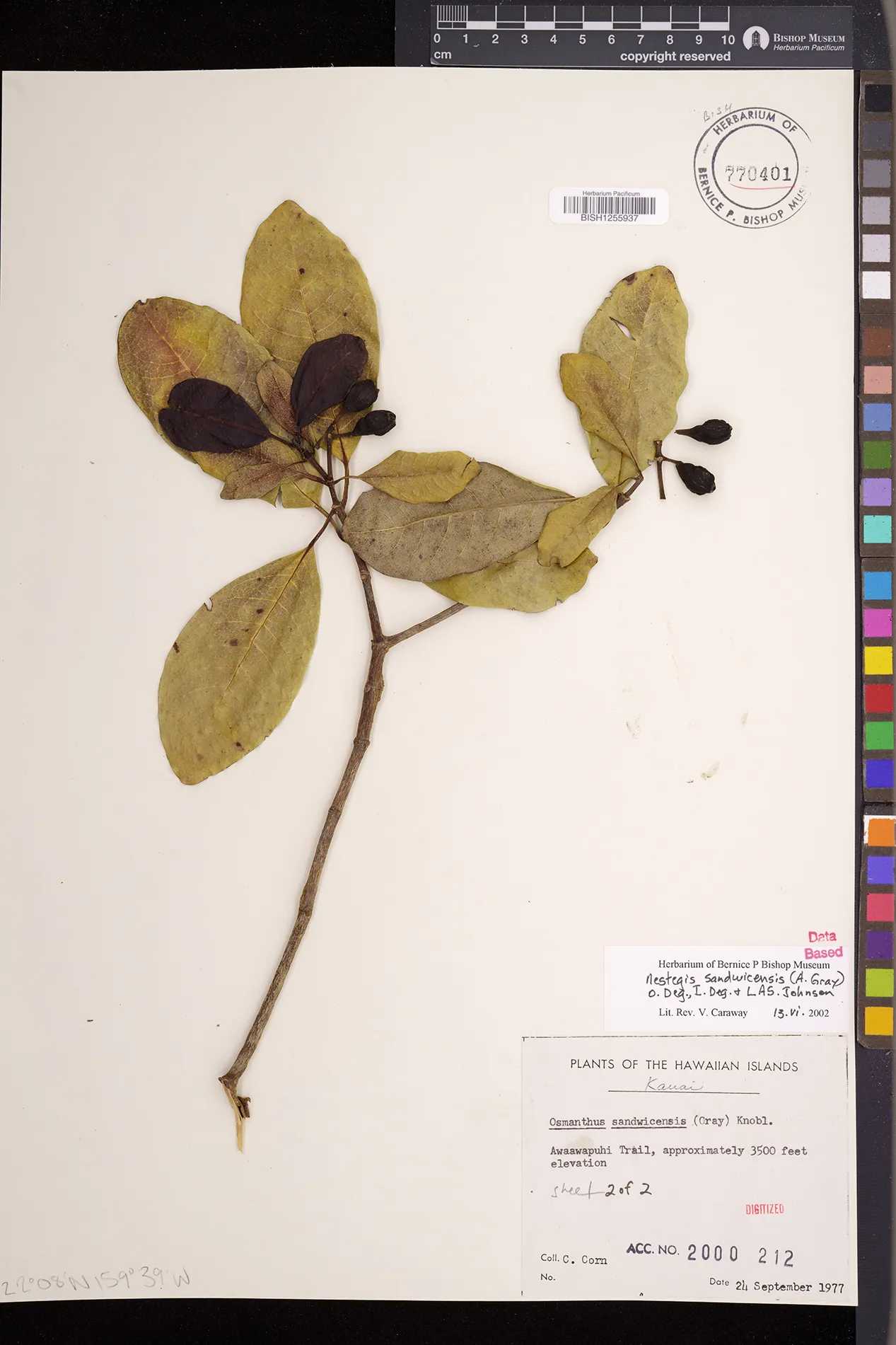 Wagner et al. 1990:992 (K, O, Mo, L, M, H [as Nestegis sandwicensis]); Dupin et al. 2022:16 (COMBNOV, Syn. Nestegis sandwicensis = Notelaea sandwicensis)