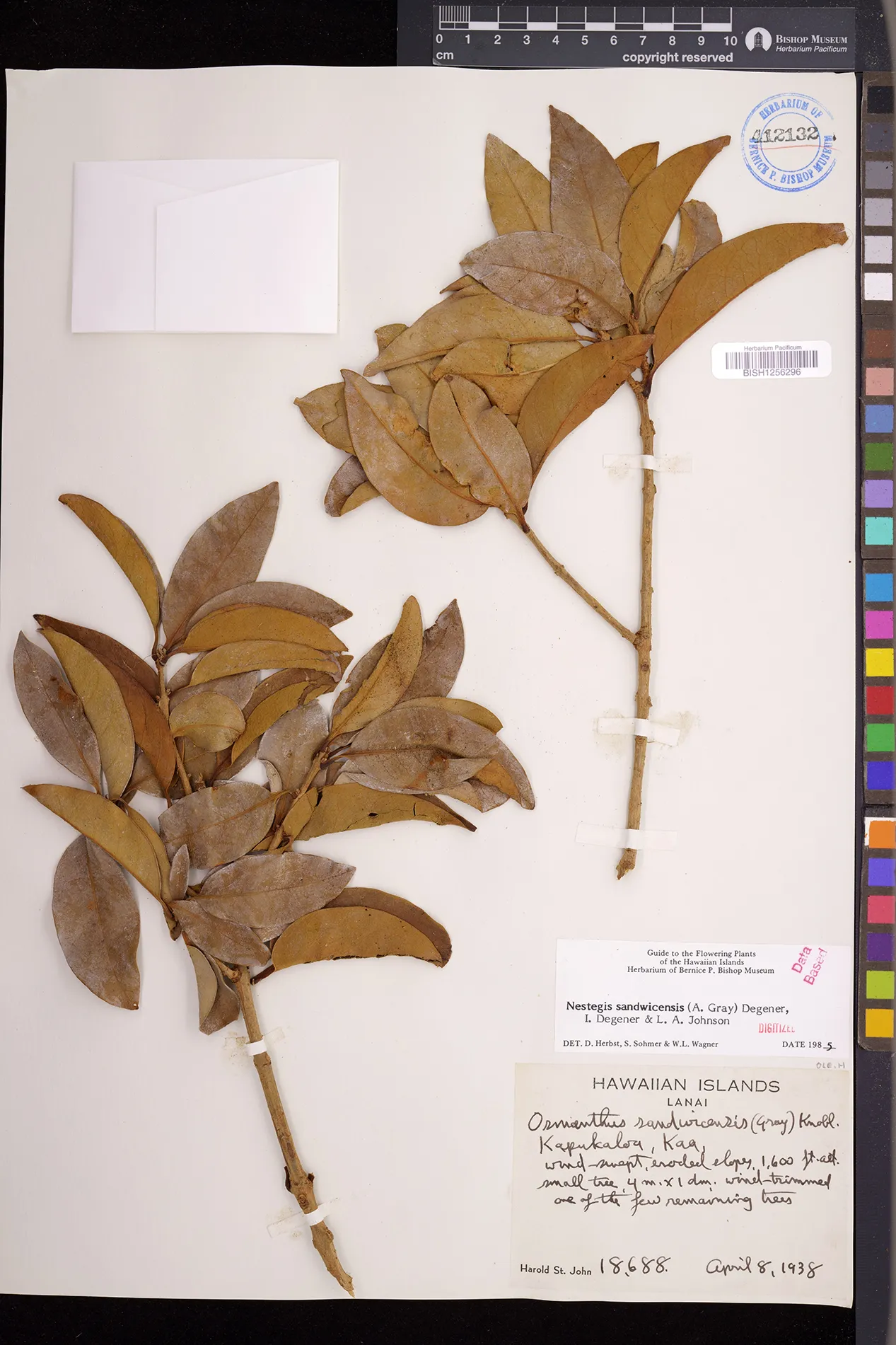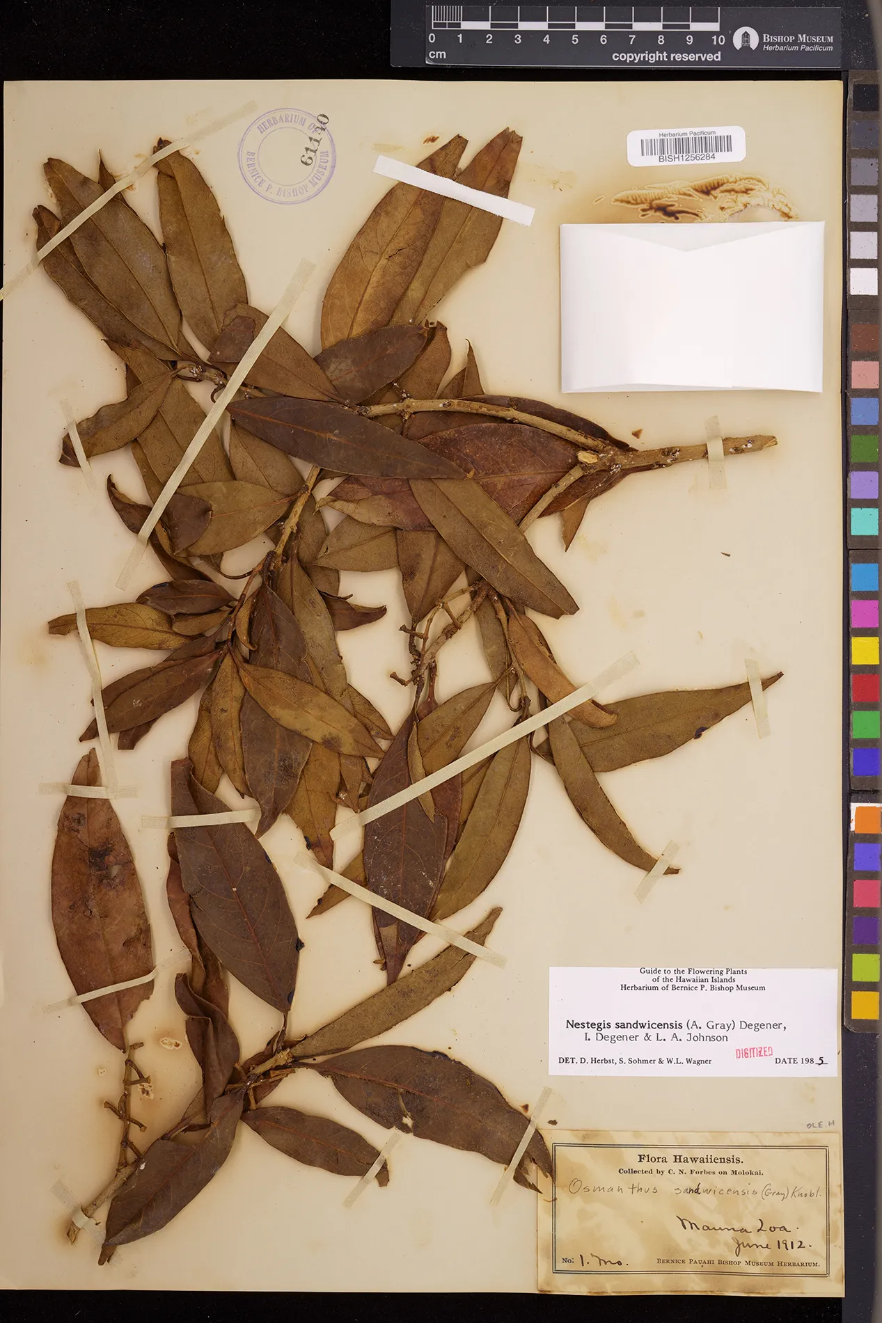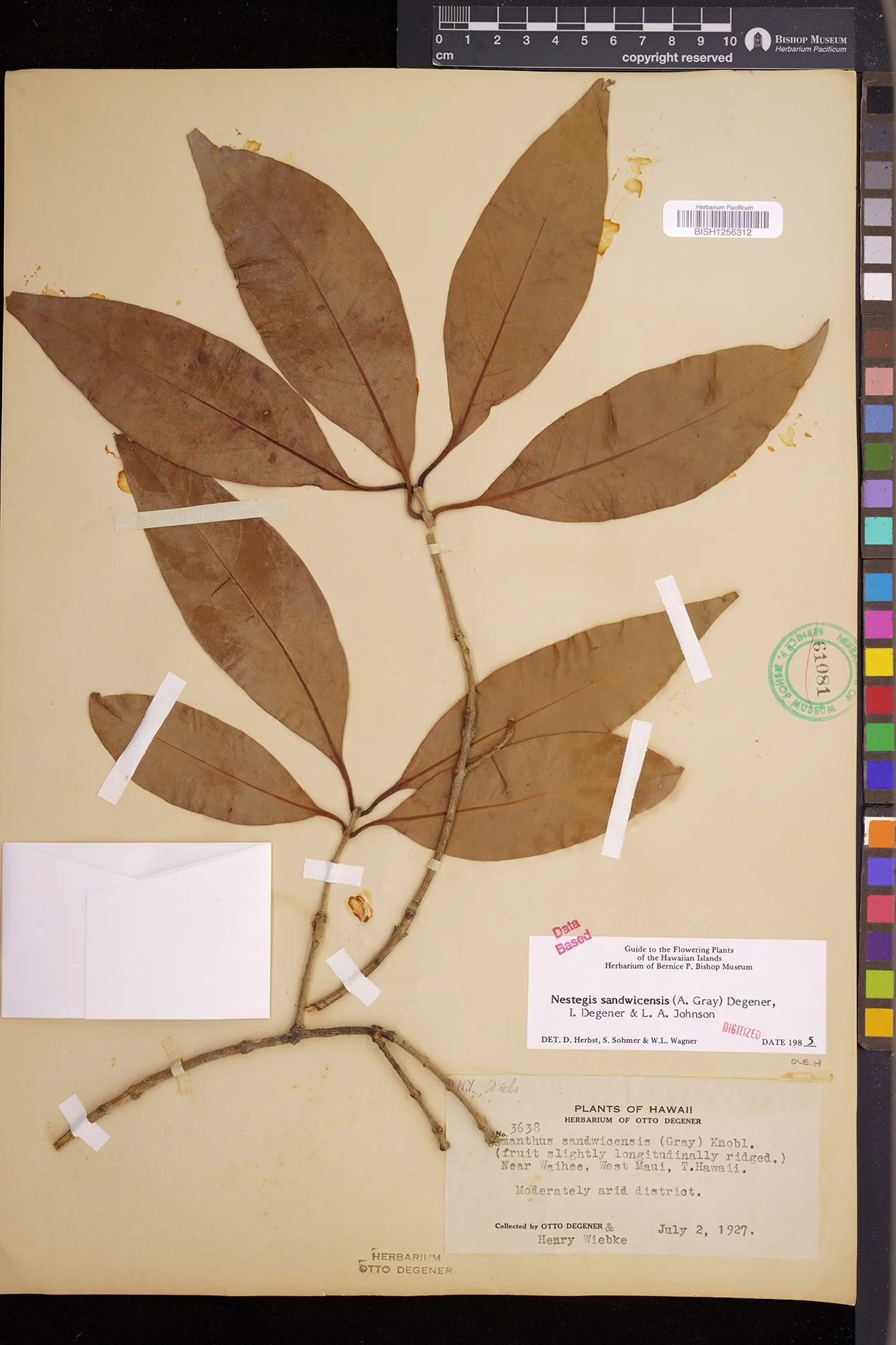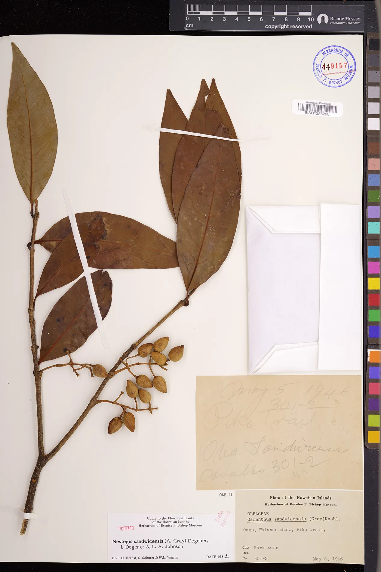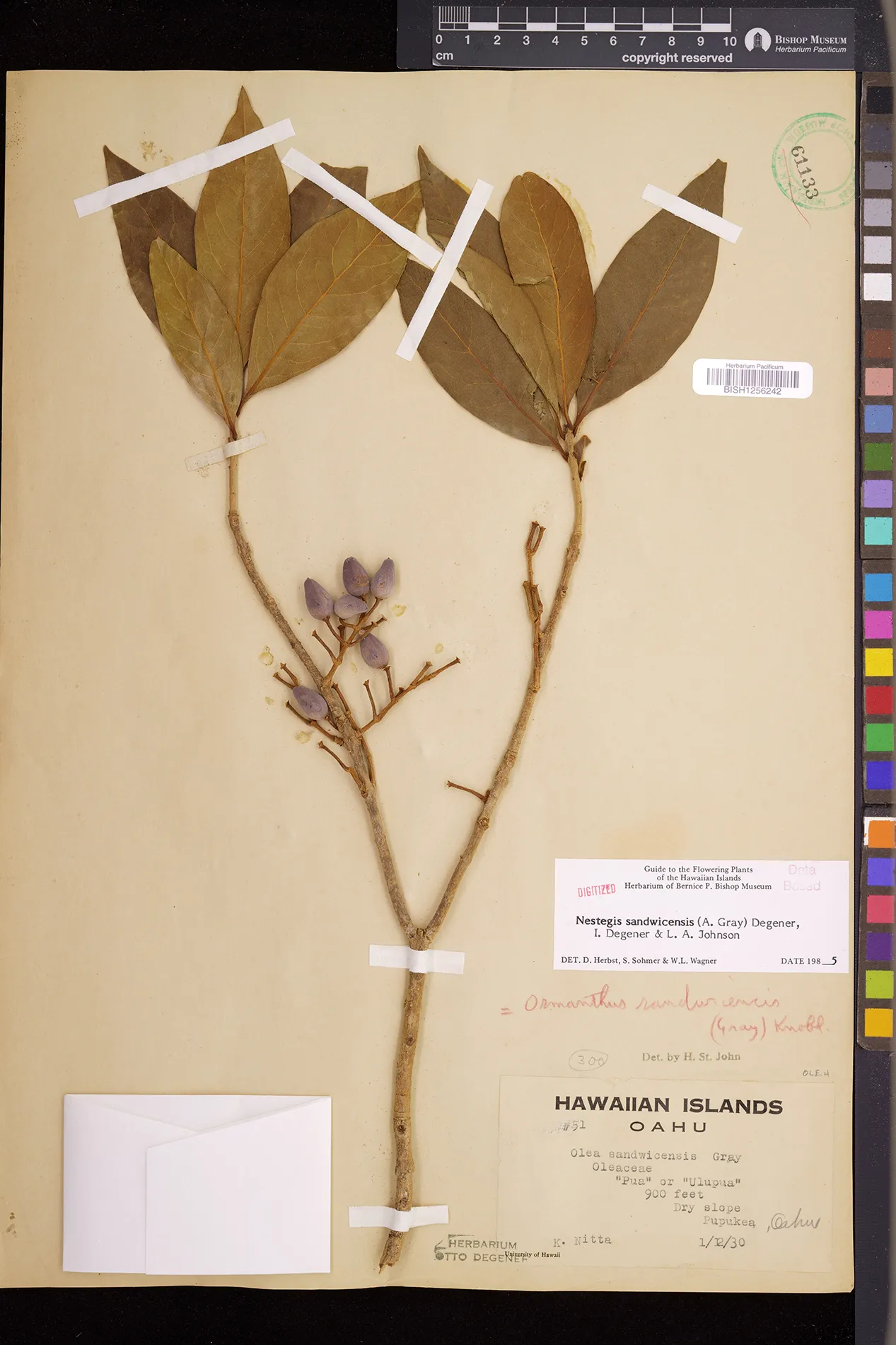 Wagner et al. 1990:992 (K, O, Mo, L, M, H [as Nestegis sandwicensis]); Dupin et al. 2022:16 (COMBNOV, Syn. Nestegis sandwicensis = Notelaea sandwicensis)