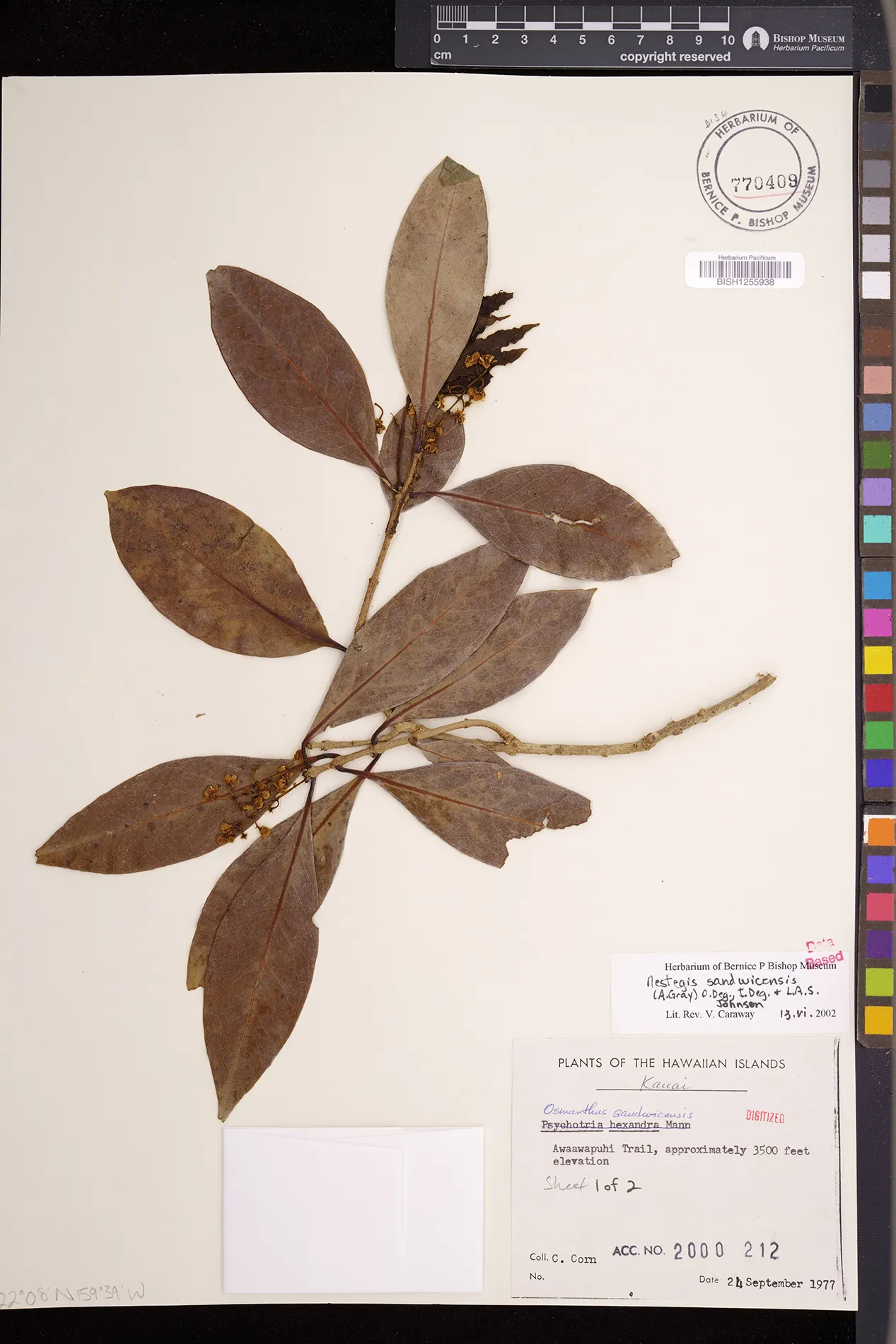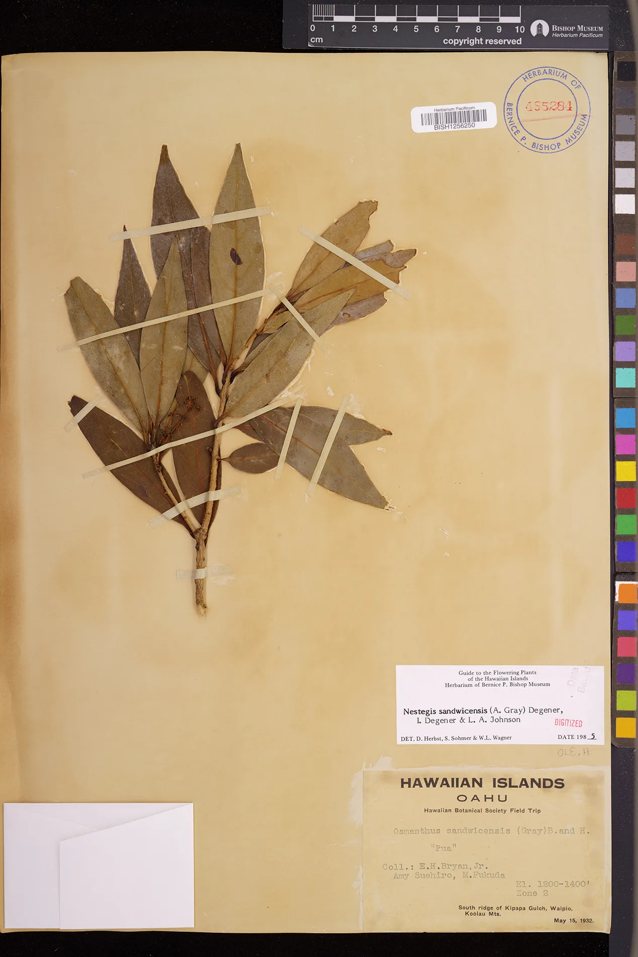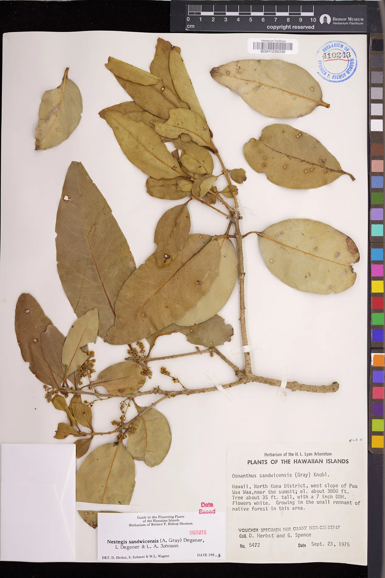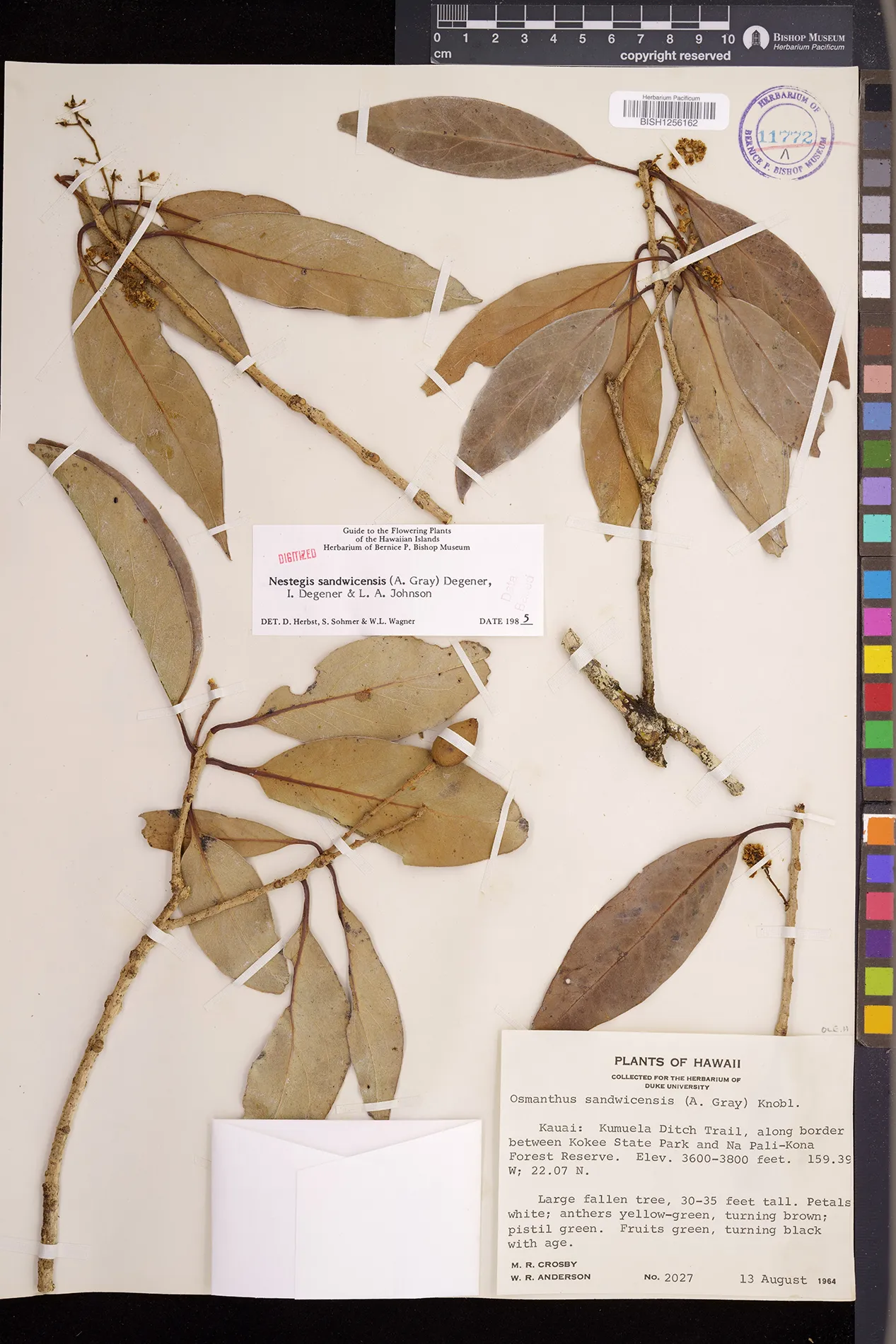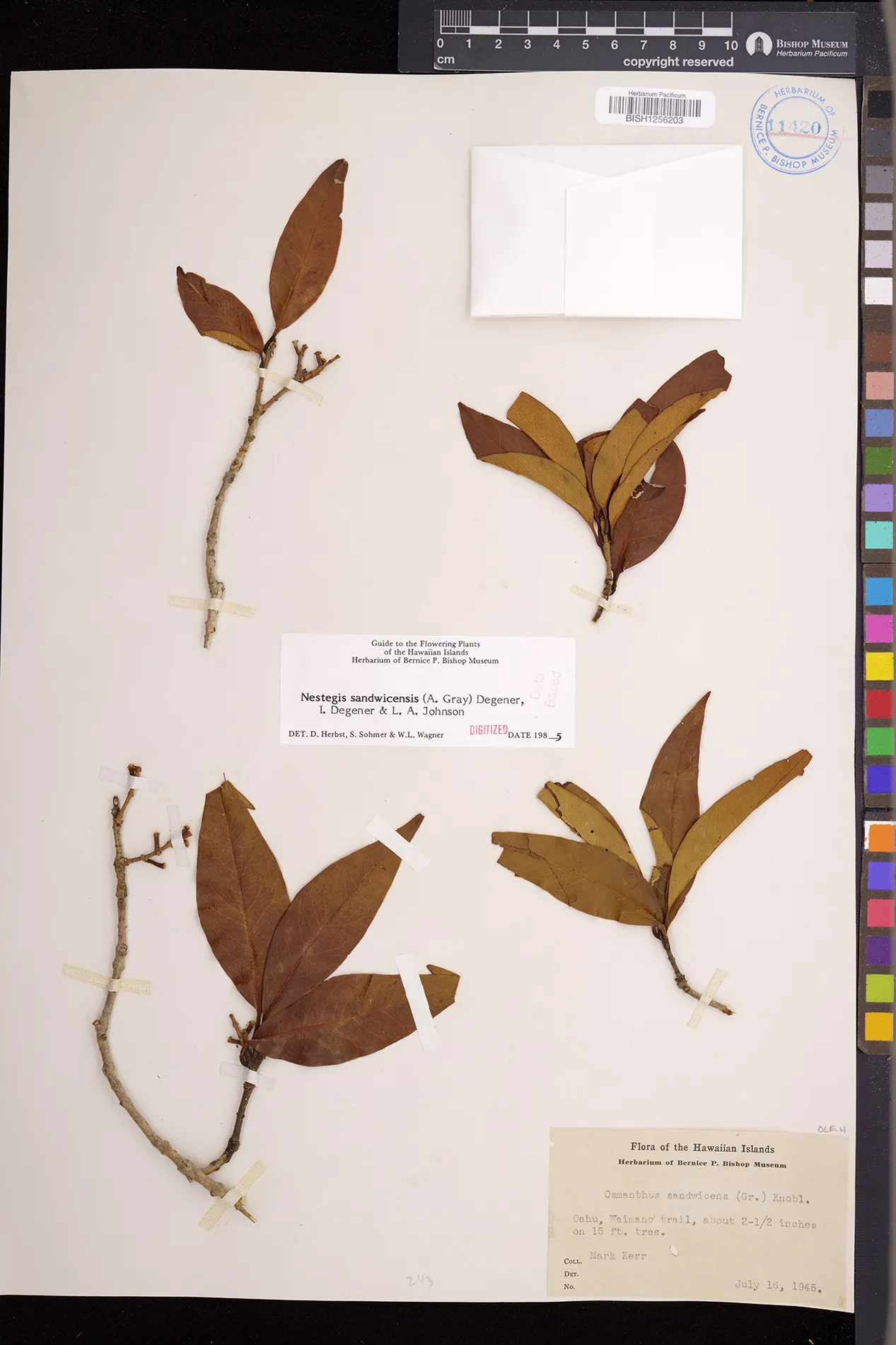 Wagner et al. 1990:992 (K, O, Mo, L, M, H [as Nestegis sandwicensis]); Dupin et al. 2022:16 (COMBNOV, Syn. Nestegis sandwicensis = Notelaea sandwicensis)