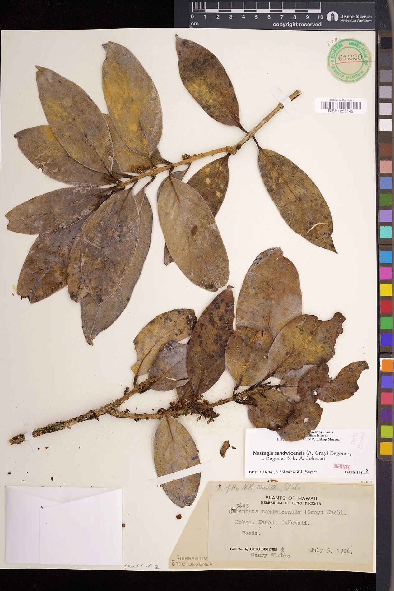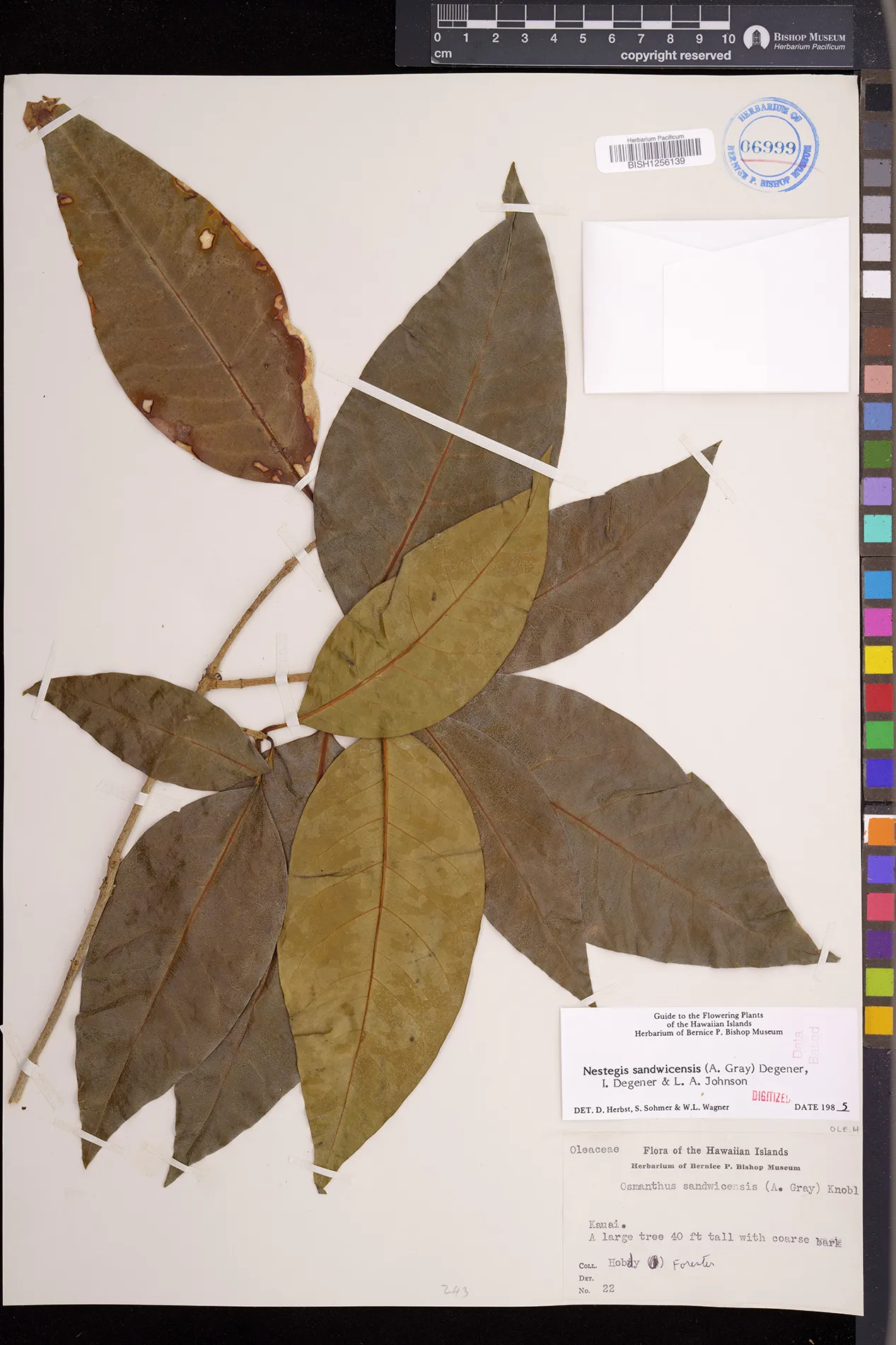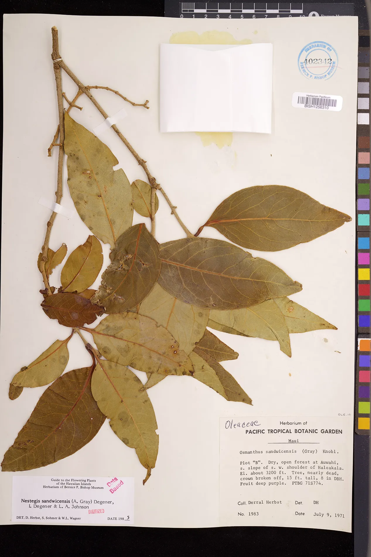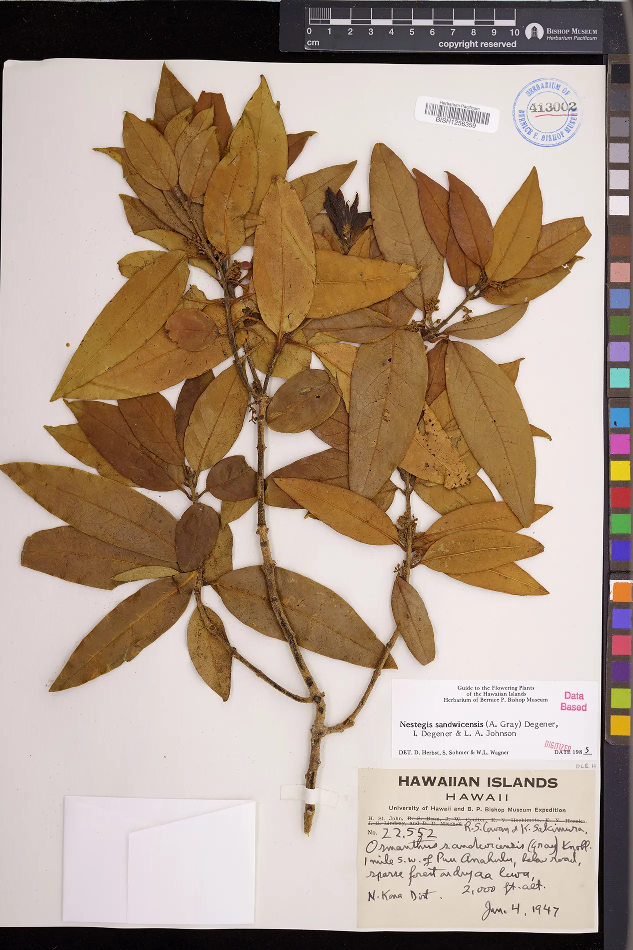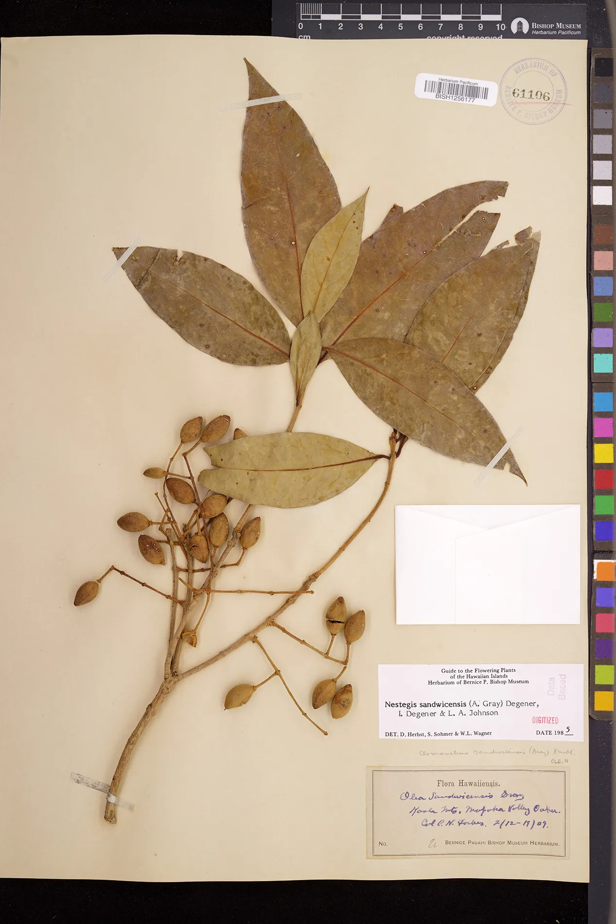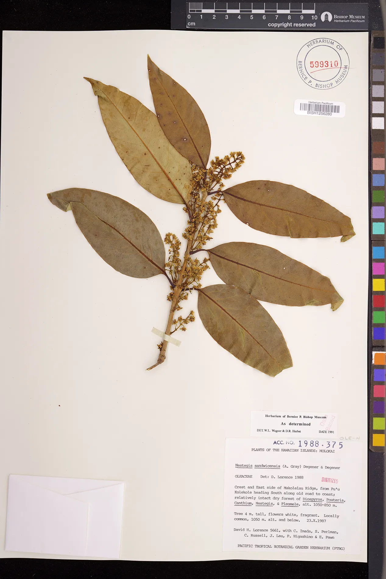 Wagner et al. 1990:992 (K, O, Mo, L, M, H [as Nestegis sandwicensis]); Dupin et al. 2022:16 (COMBNOV, Syn. Nestegis sandwicensis = Notelaea sandwicensis)