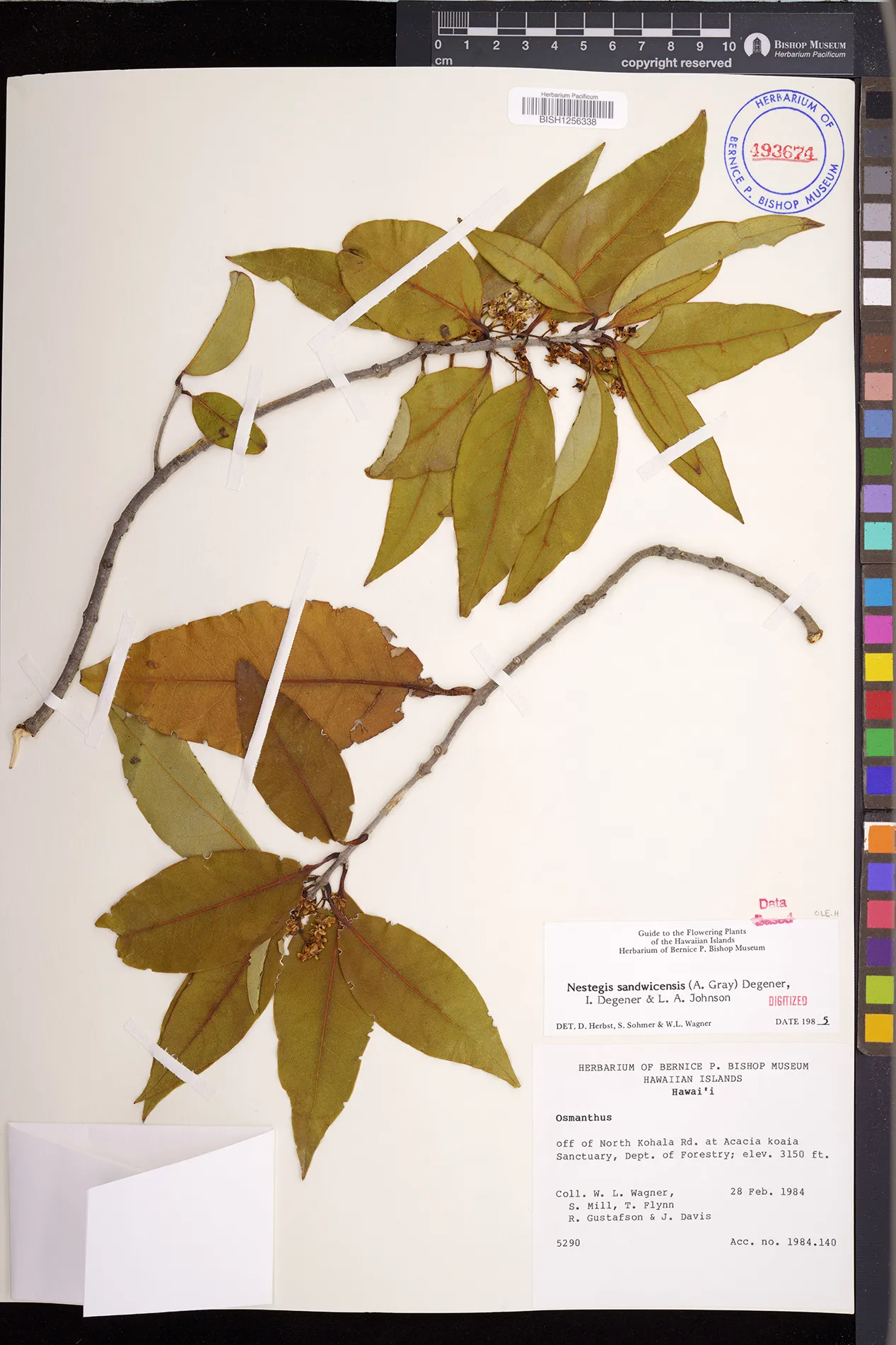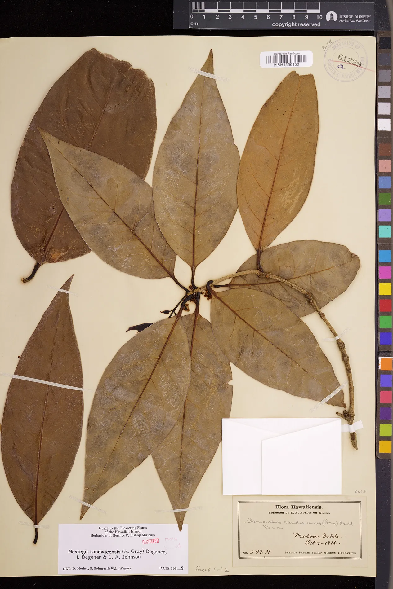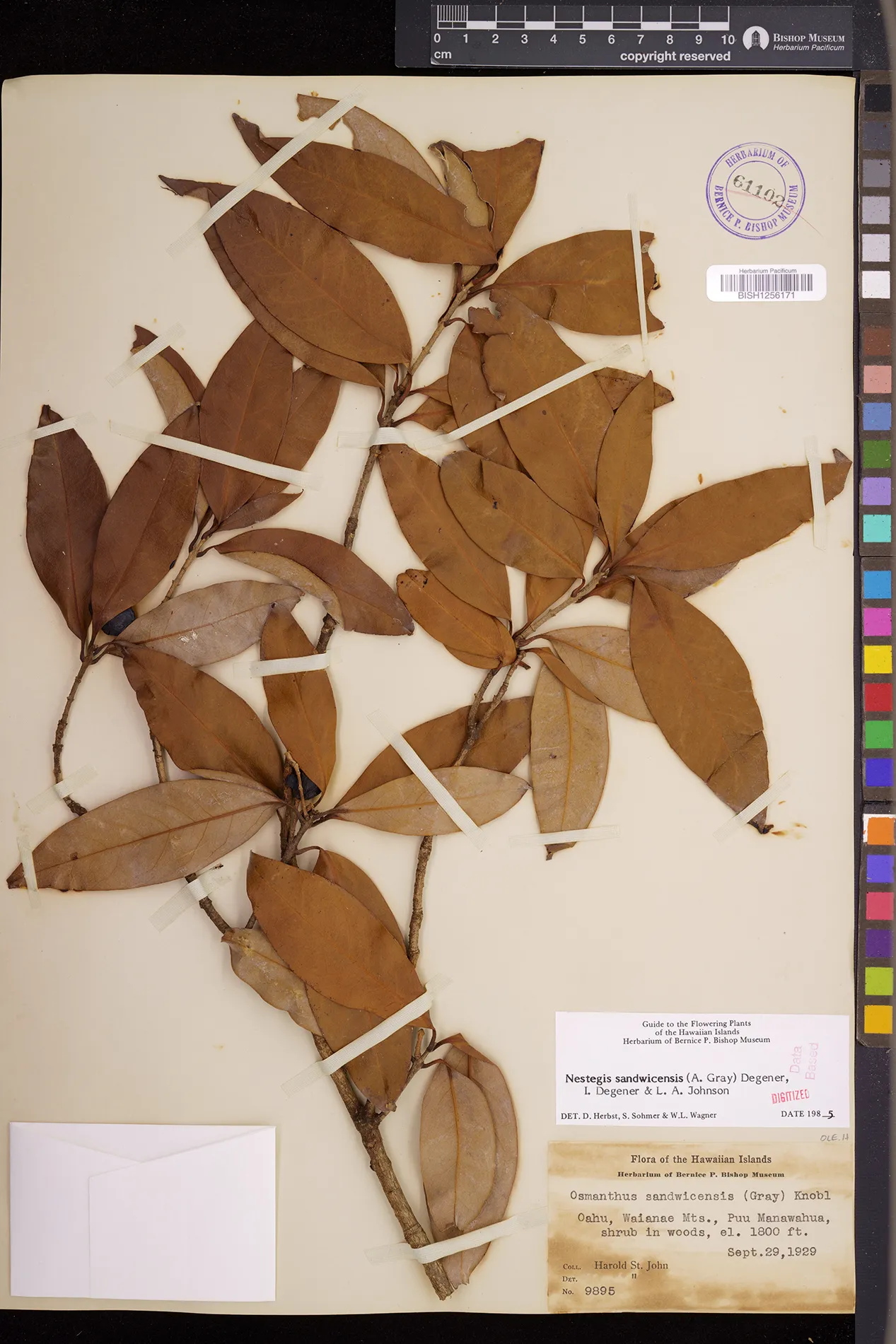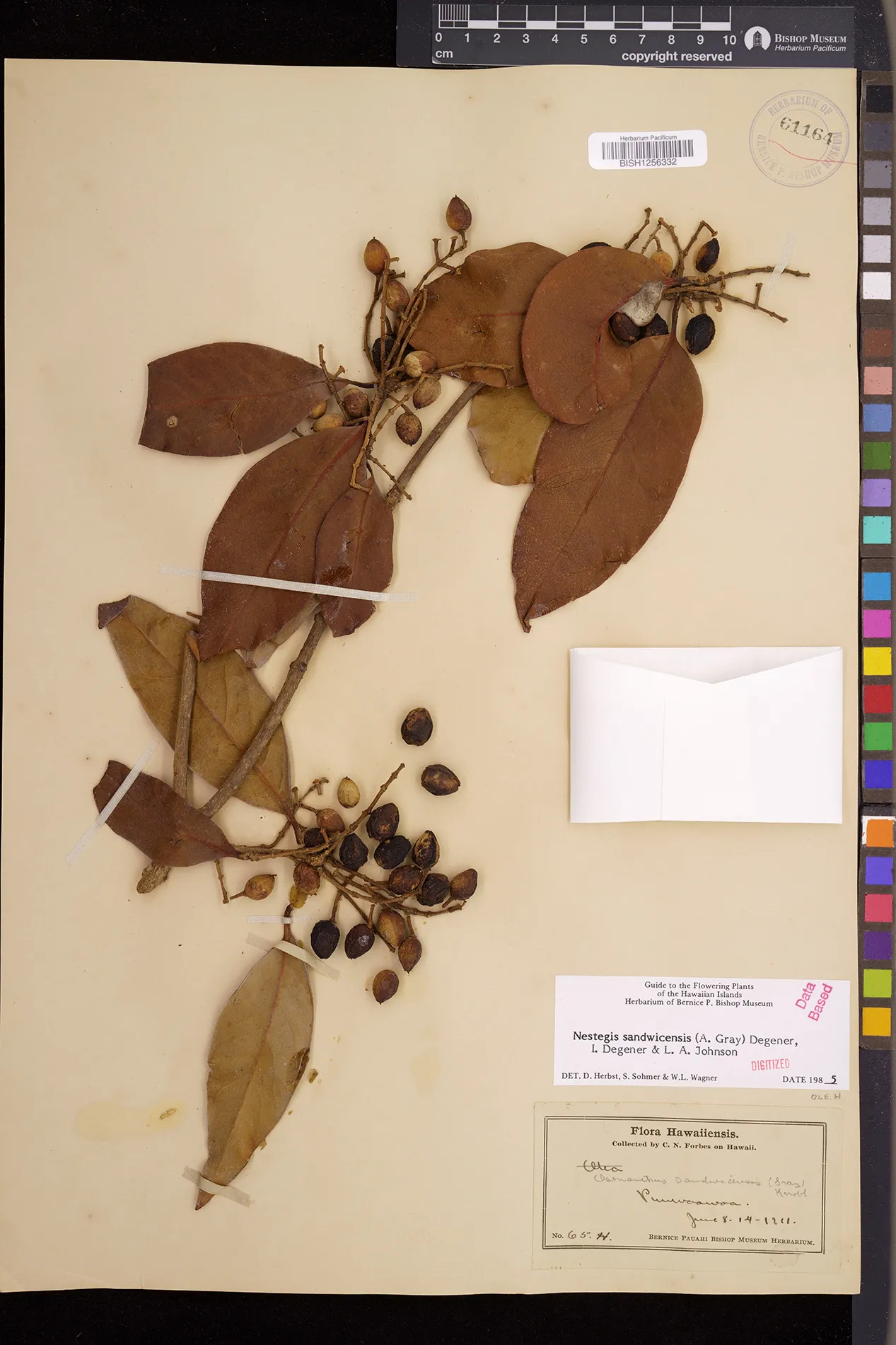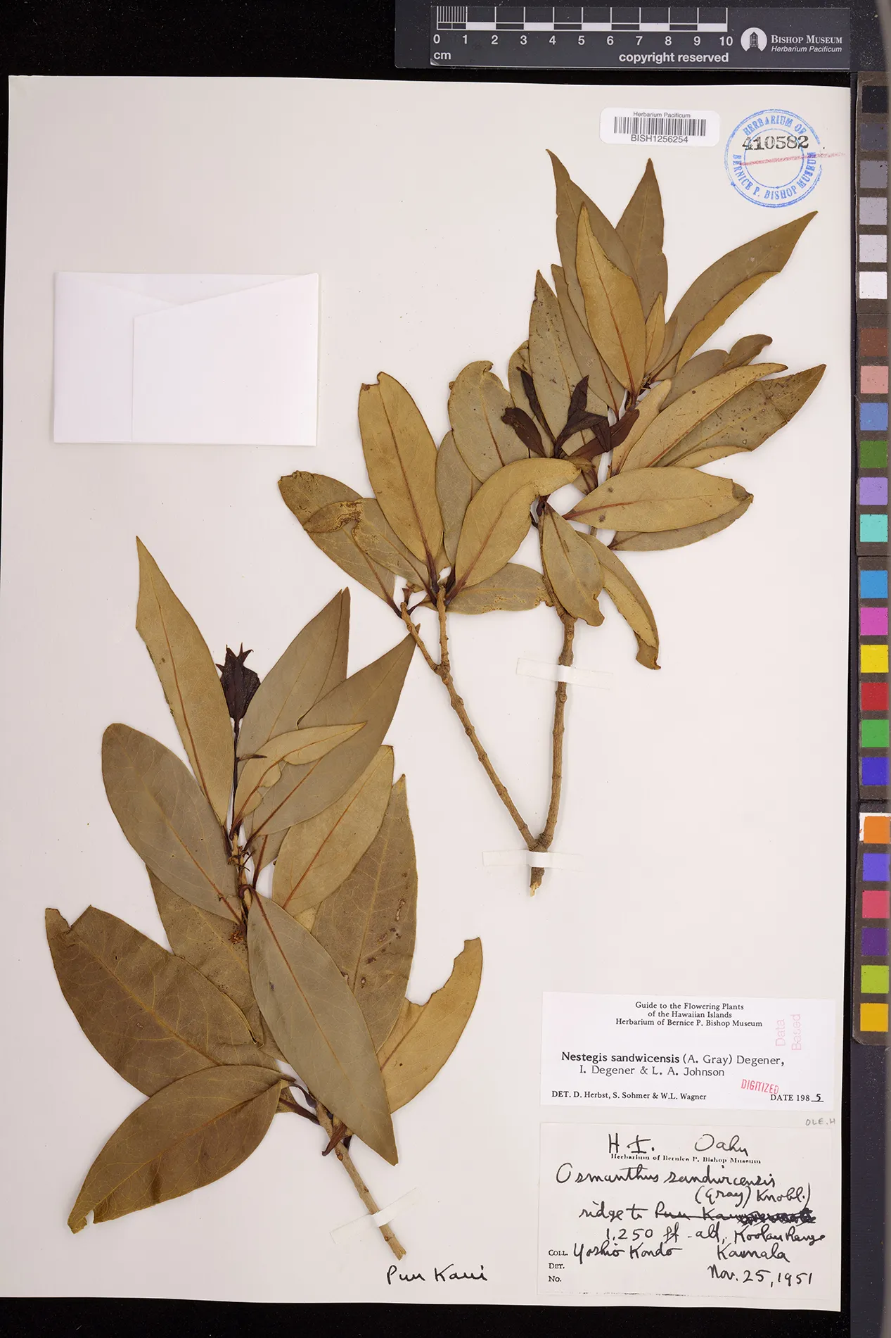 Wagner et al. 1990:992 (K, O, Mo, L, M, H [as Nestegis sandwicensis]); Dupin et al. 2022:16 (COMBNOV, Syn. Nestegis sandwicensis = Notelaea sandwicensis)