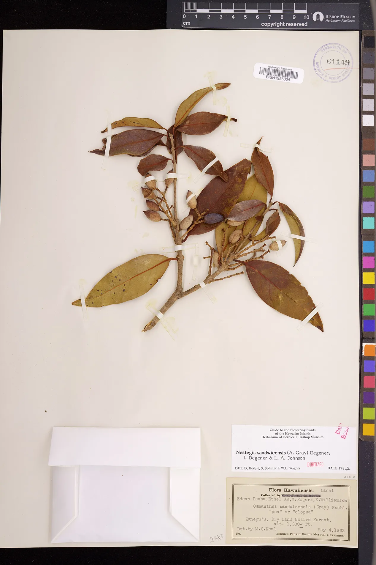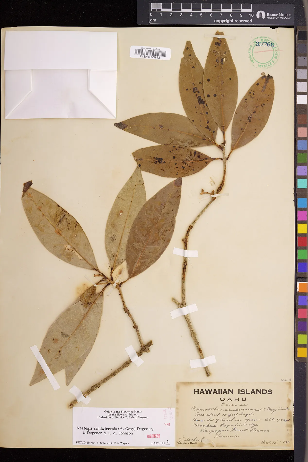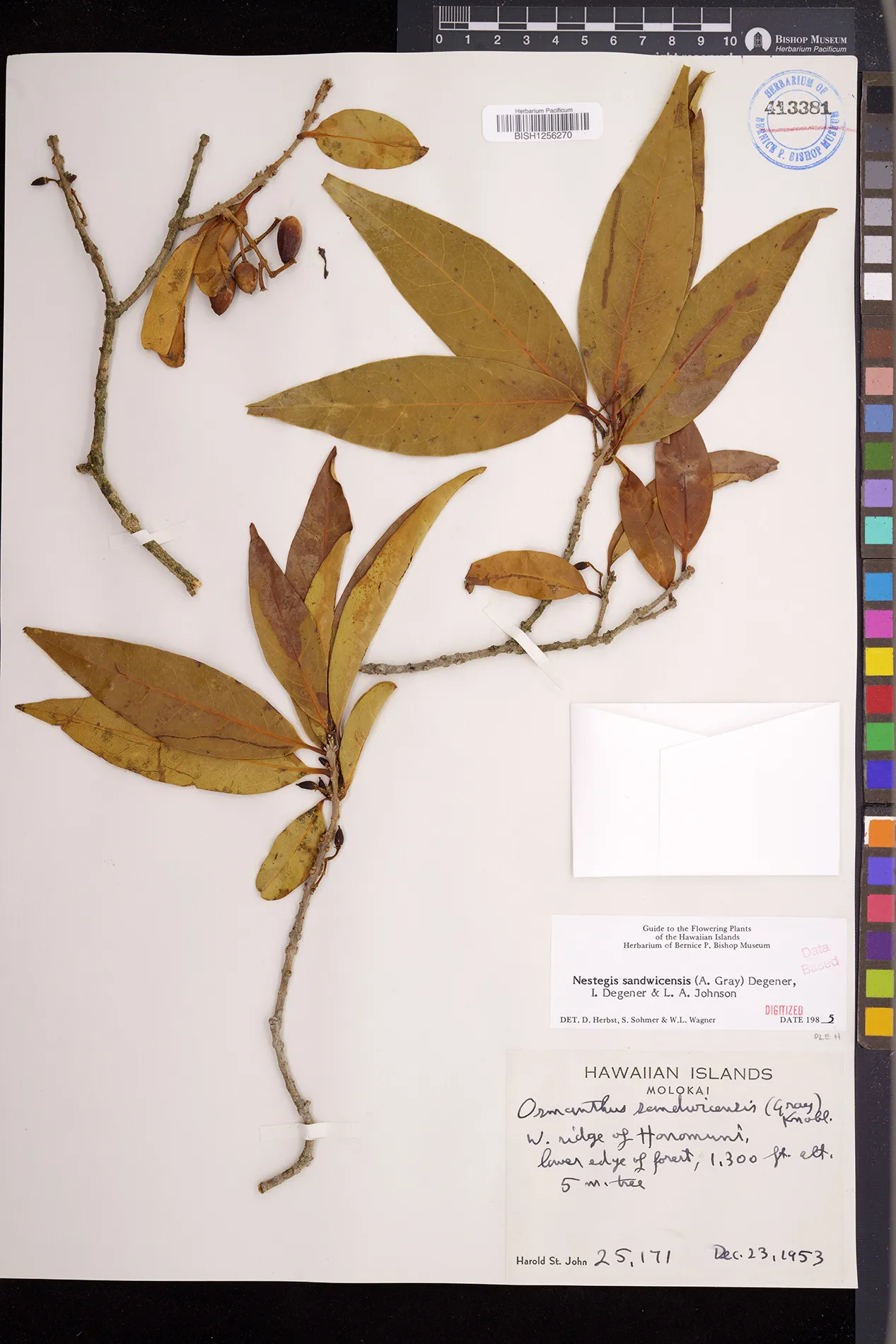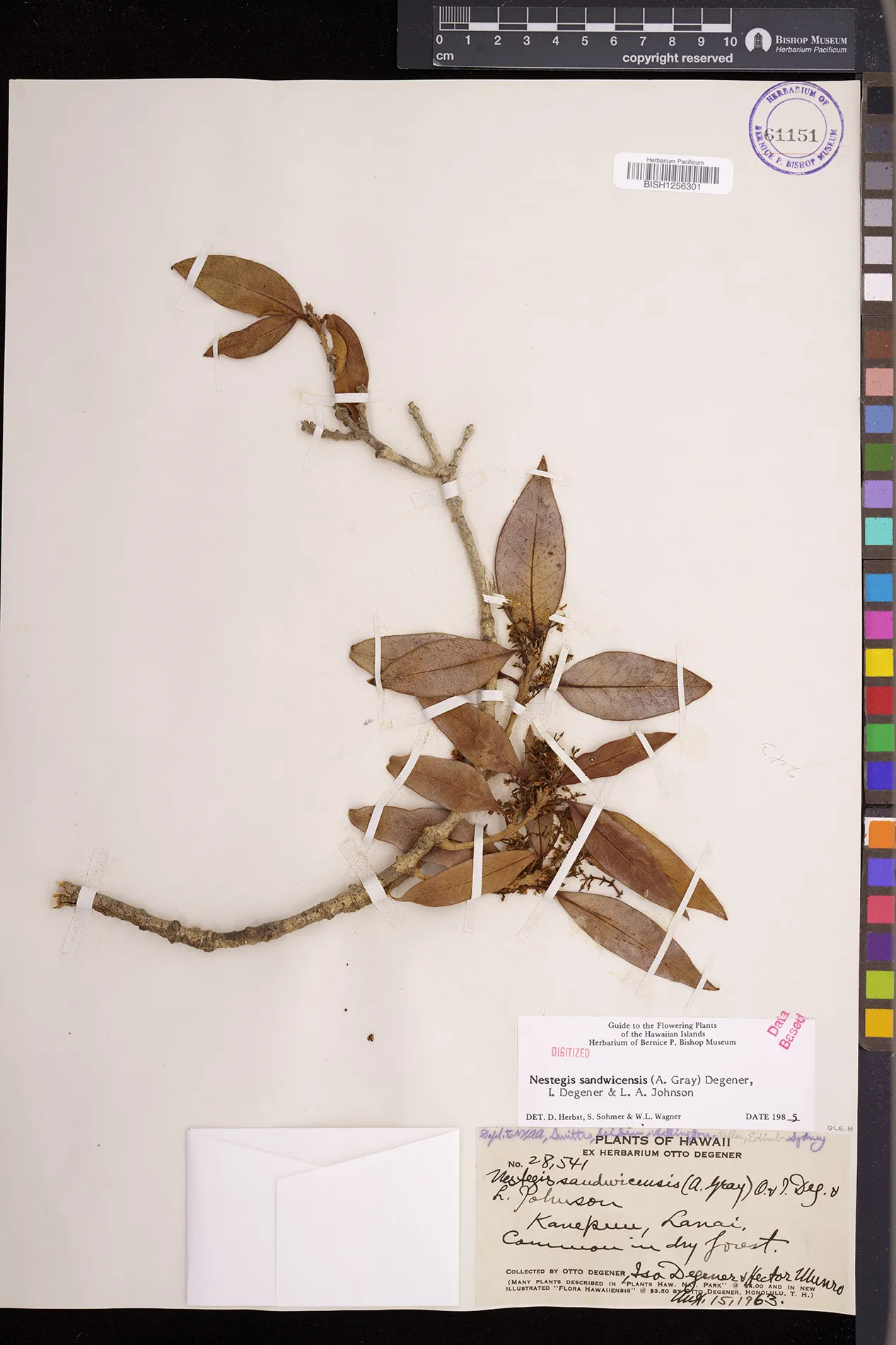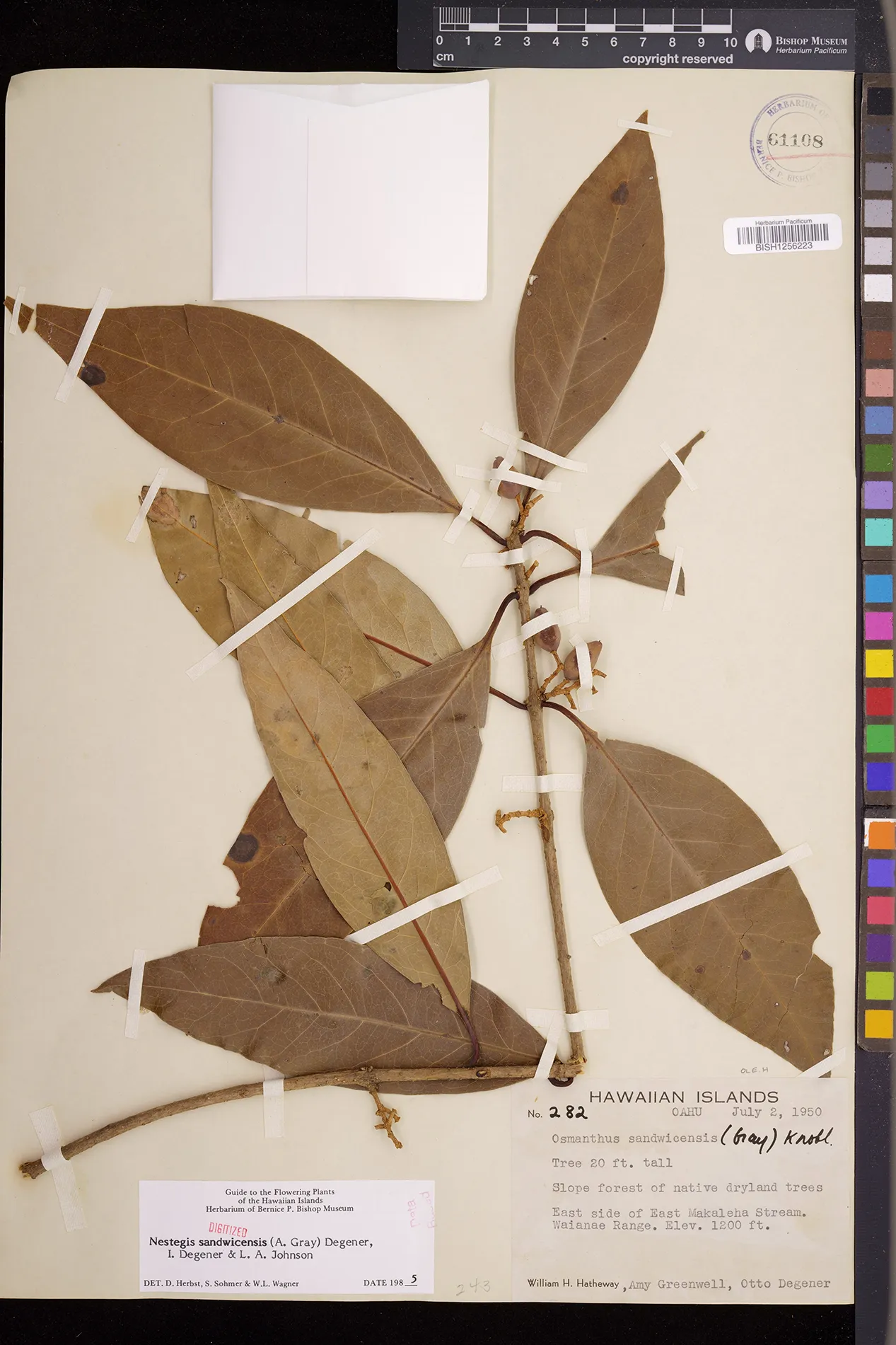 Wagner et al. 1990:992 (K, O, Mo, L, M, H [as Nestegis sandwicensis]); Dupin et al. 2022:16 (COMBNOV, Syn. Nestegis sandwicensis = Notelaea sandwicensis)