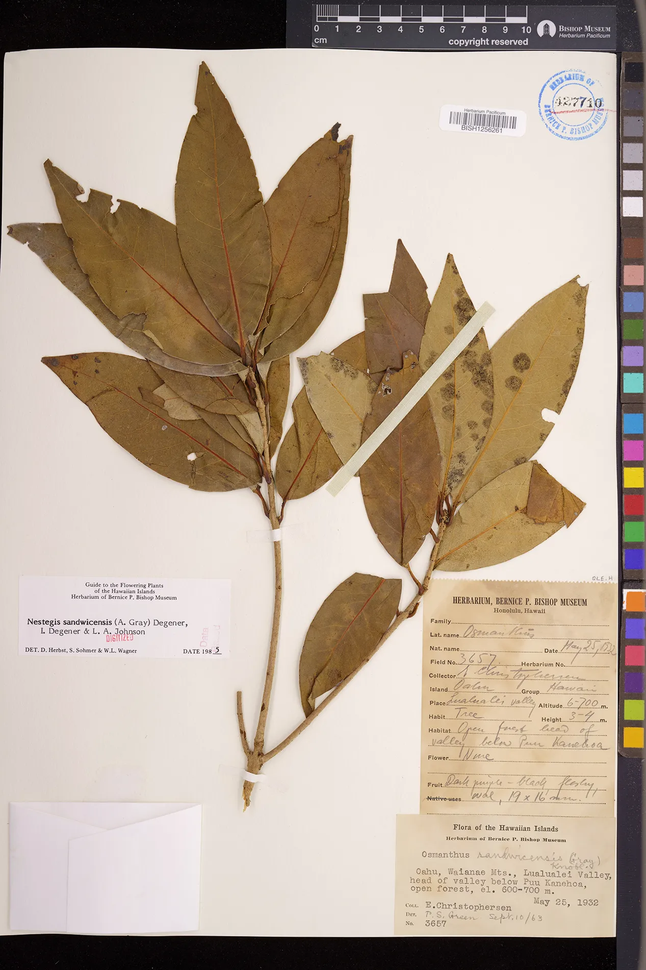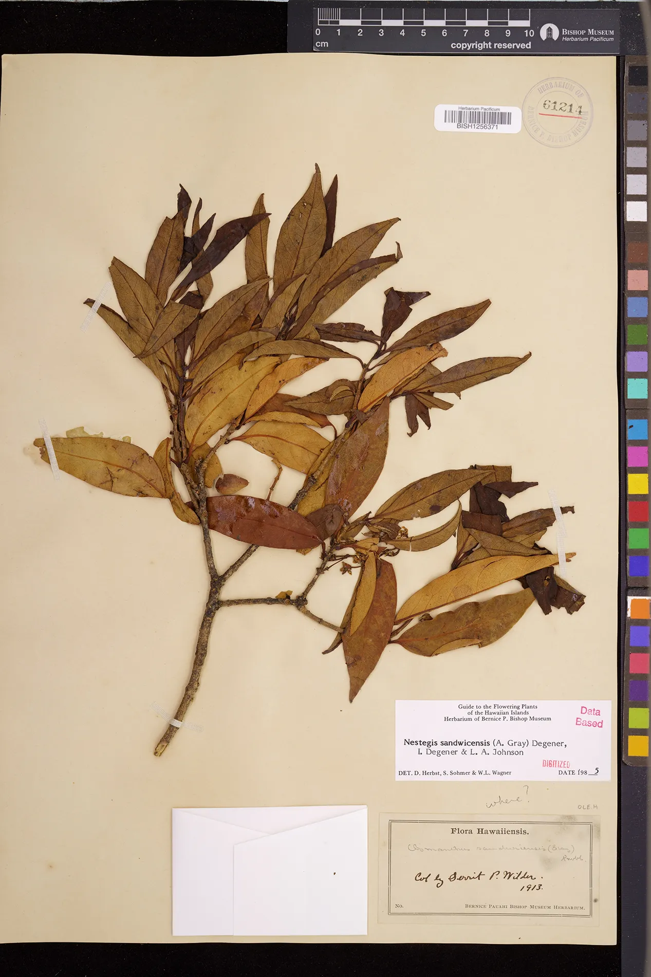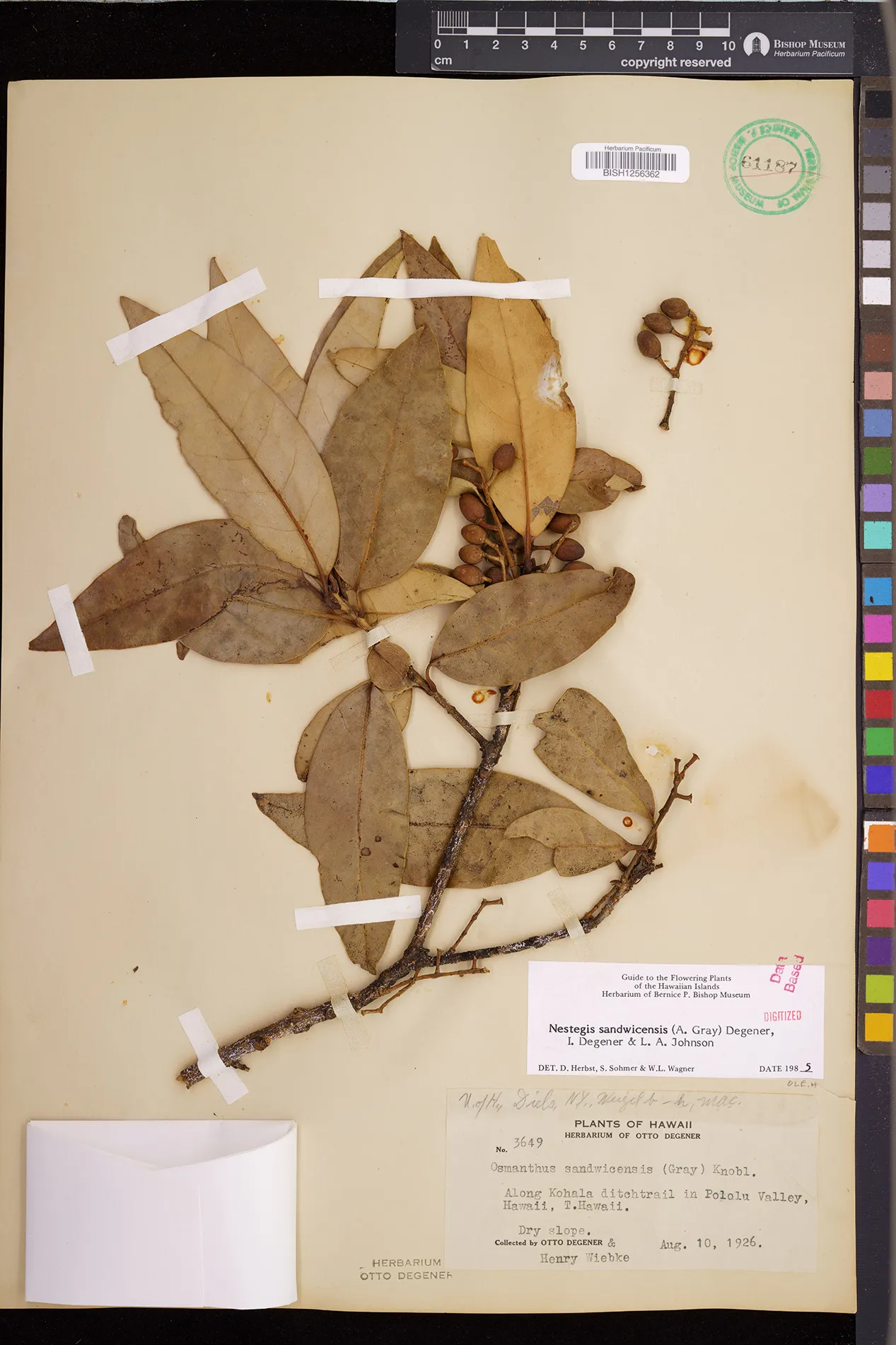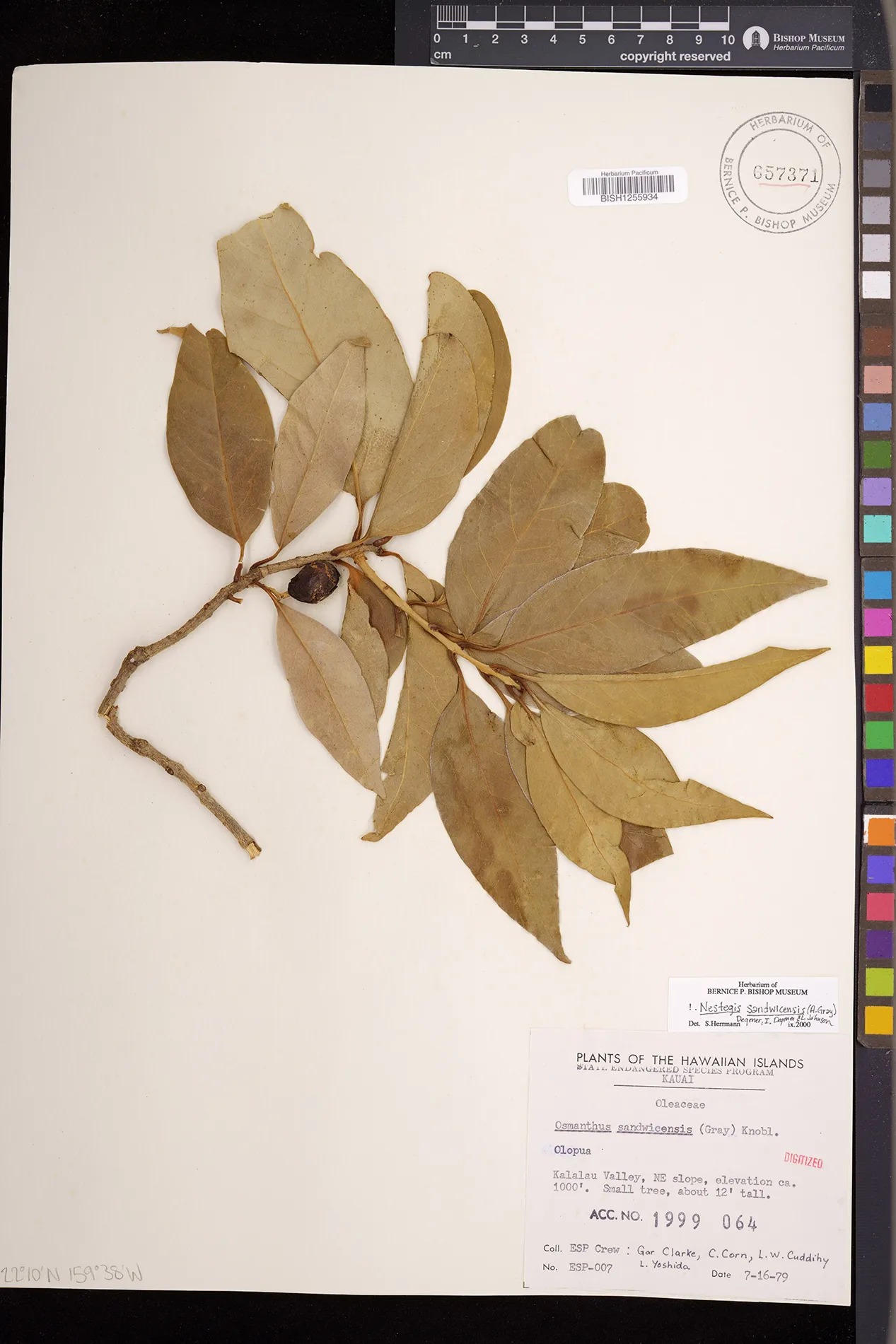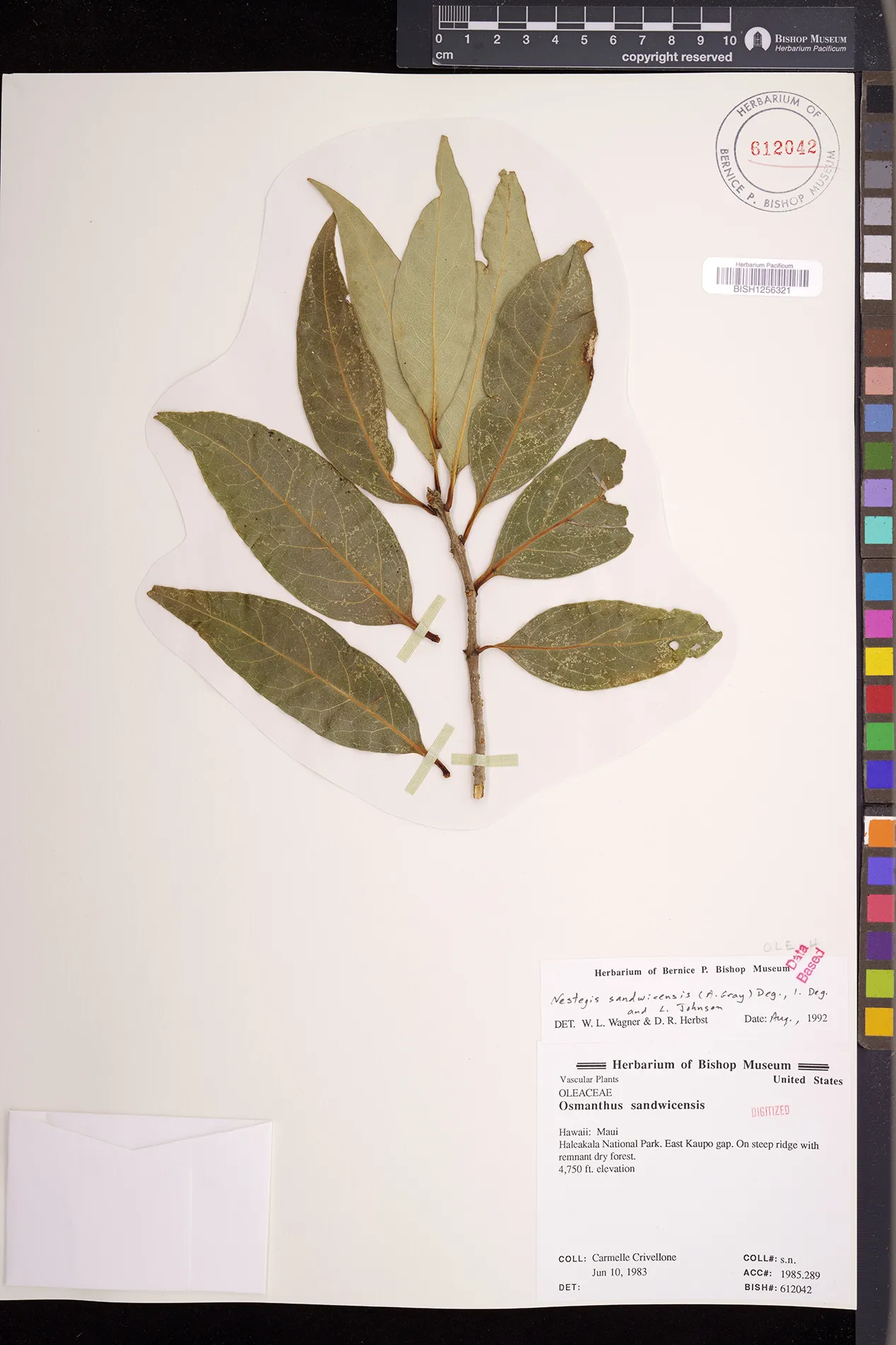 Wagner et al. 1990:992 (K, O, Mo, L, M, H [as Nestegis sandwicensis]); Dupin et al. 2022:16 (COMBNOV, Syn. Nestegis sandwicensis = Notelaea sandwicensis)